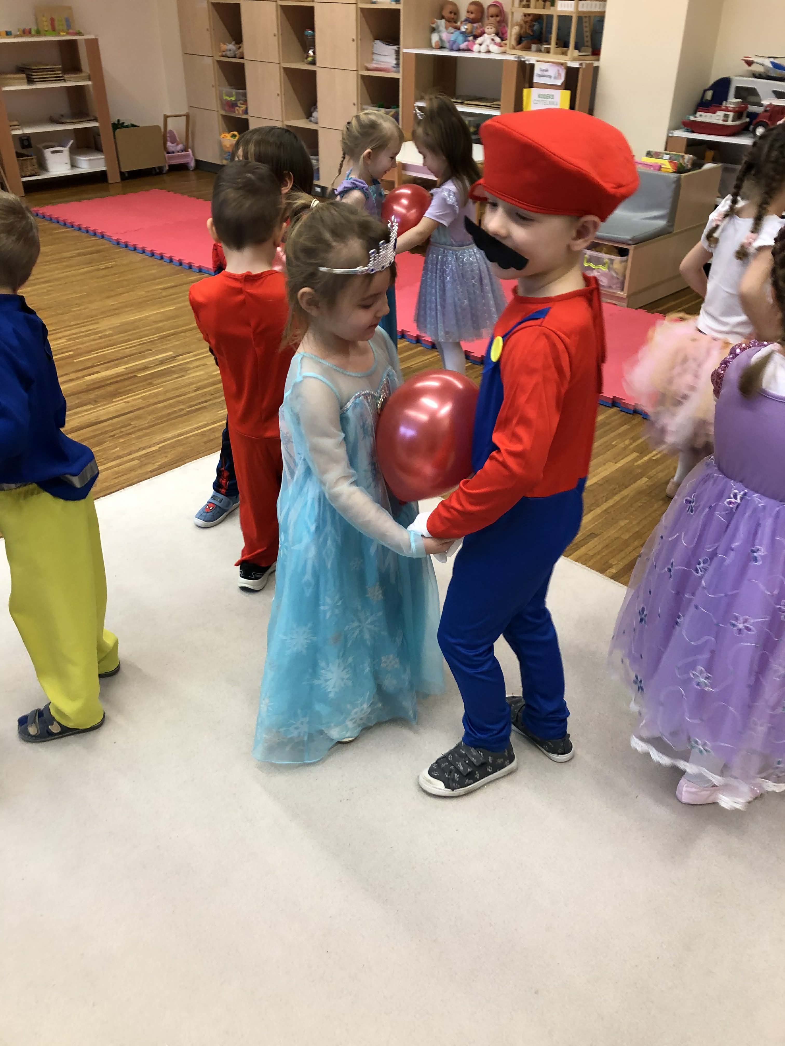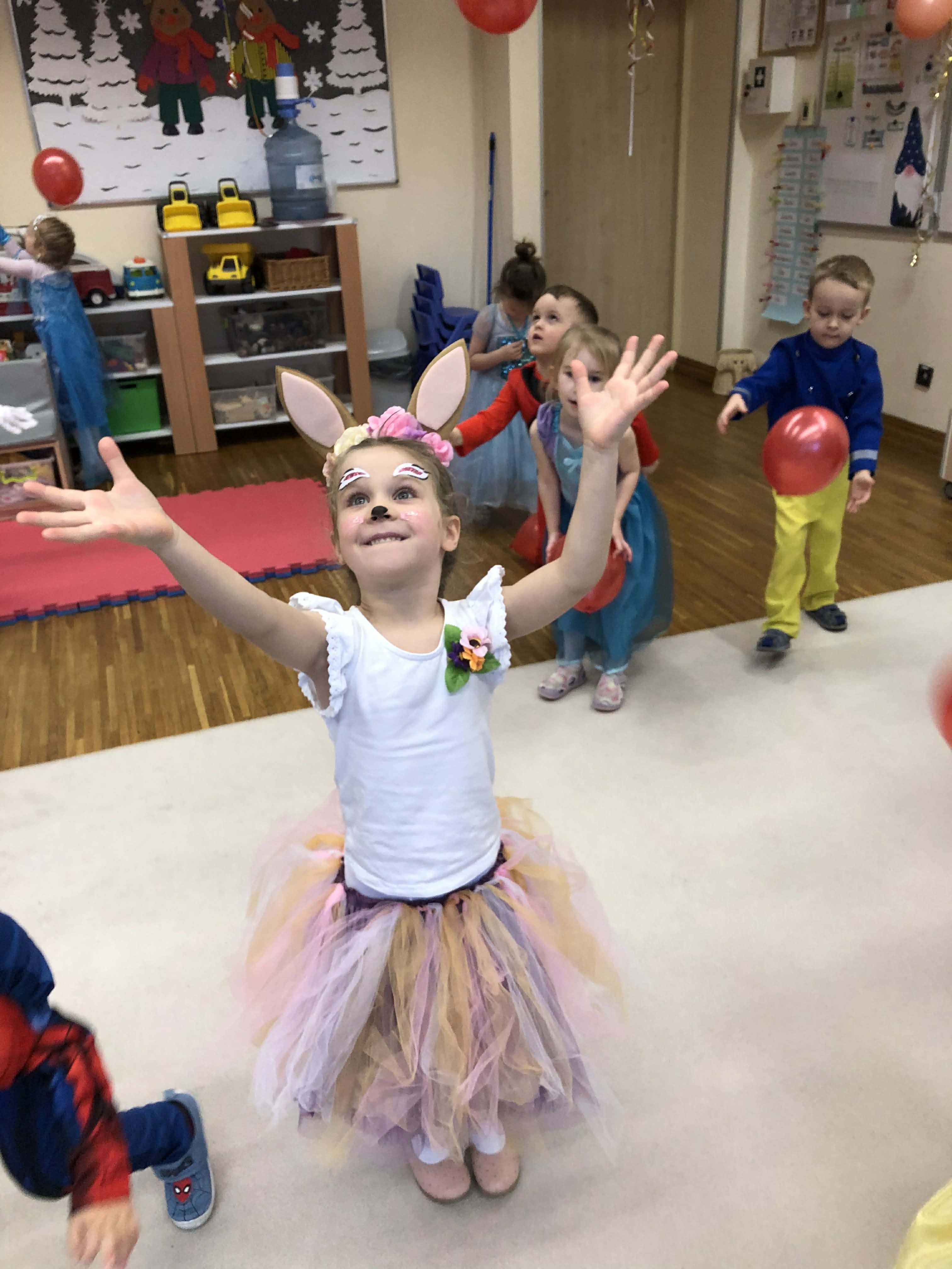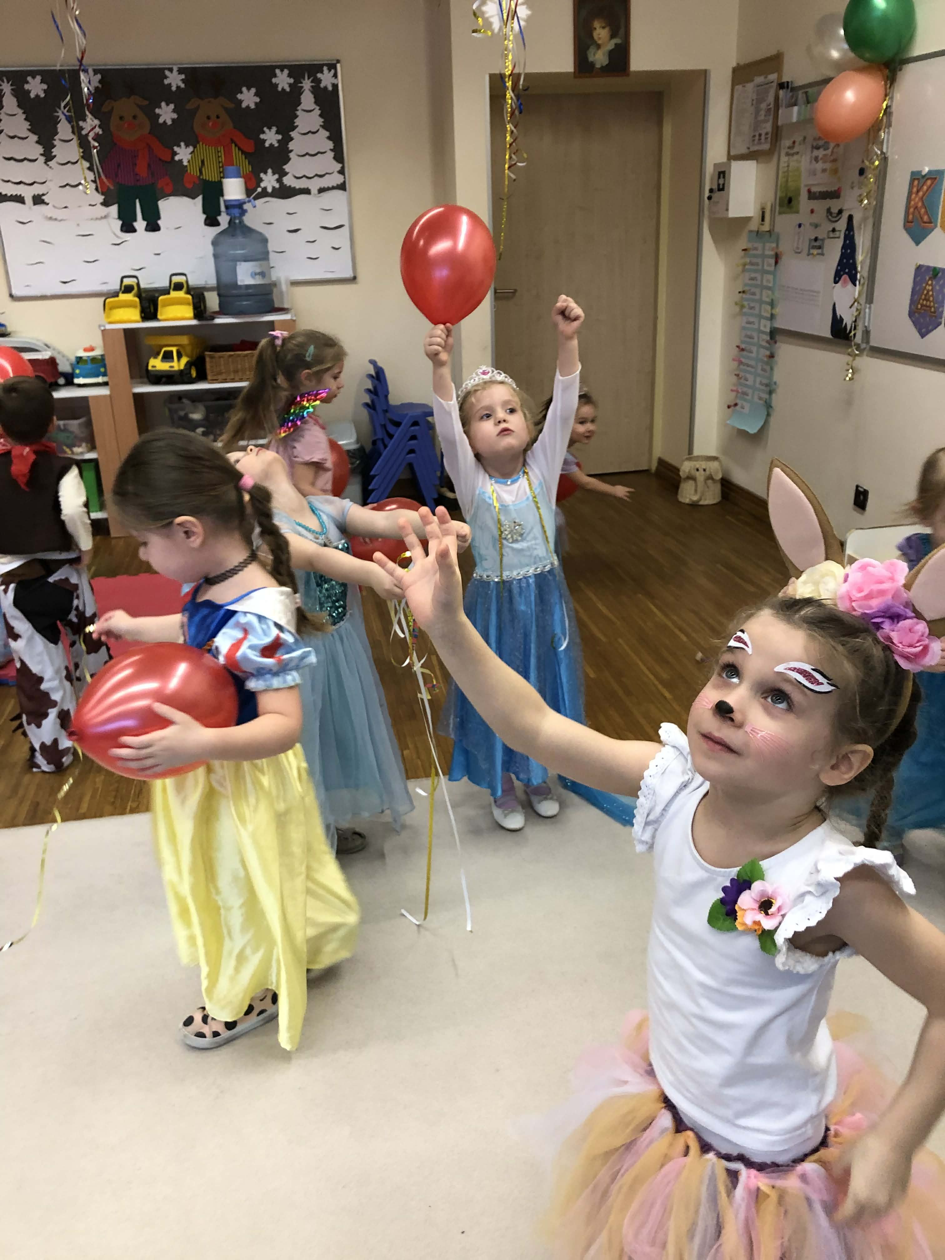 Dnia 30 stycznia w grupie 4-latków odbył się bal karnawałowy. Sala została pięknie udekorowana kolorowymi serpentynami i balonami, co stworzyło radosną, karnawałową atmosferę. Dzieci przebrane były w bajkowe postacie – chłopcy wcielili się w superbohaterów, a dziewczynki w księżniczki. Bal obfitował w tańce przy muzyce znanych dziecięcych przebojów oraz liczne konkursy i zabawy ruchowe z wykorzystaniem m.in. gumy animacyjnej i balonów. Po wyczerpujących pląsach na dzieci czekał poczęstunek: soki, owoce, chrupki, słone paluszki oraz faworki. Zabawa przebiegła w radosnej atmosferze i dostarczyła dzieciom wielu uśmiechów oraz niezapomnianych wrażeń.