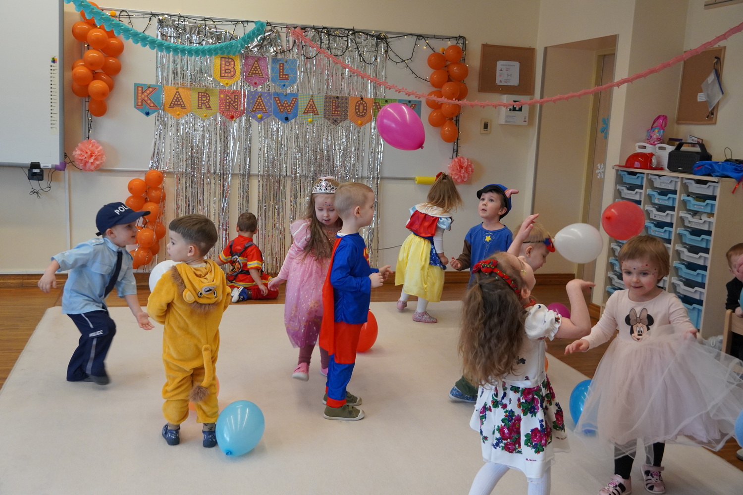 2 lutego w naszej grupie odbył się bal karnawałowy. Dzieci przebrane za różne postacie z bajek, policjantów, strażaków itp. brały udział w konkursach i zabawach. Bal umożliwił dzieciom i wychowawcom spędzenie czasu w miłej atmosferze. Na zmęczonych tańcami, tancerzy czekał pyszny poczęstunek przygotowany przez rodziców.
