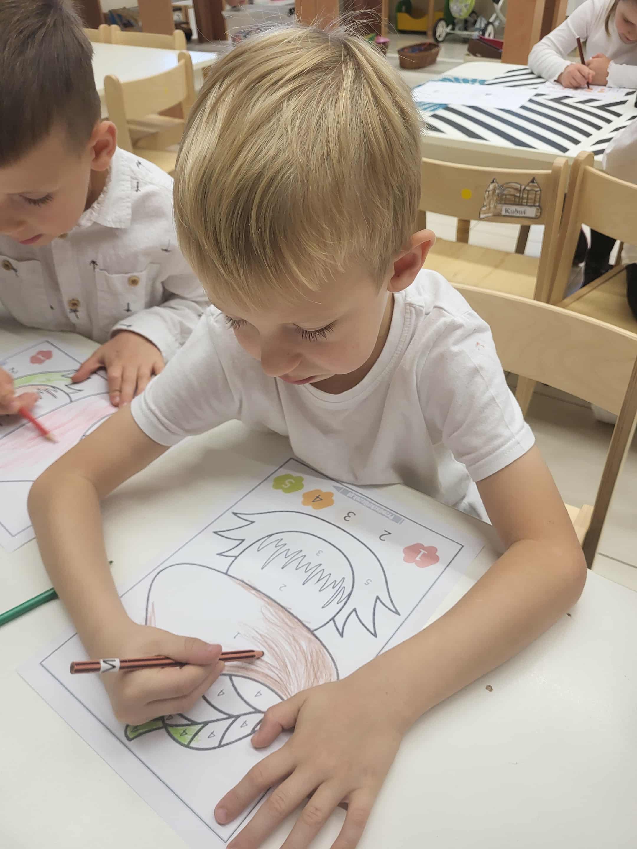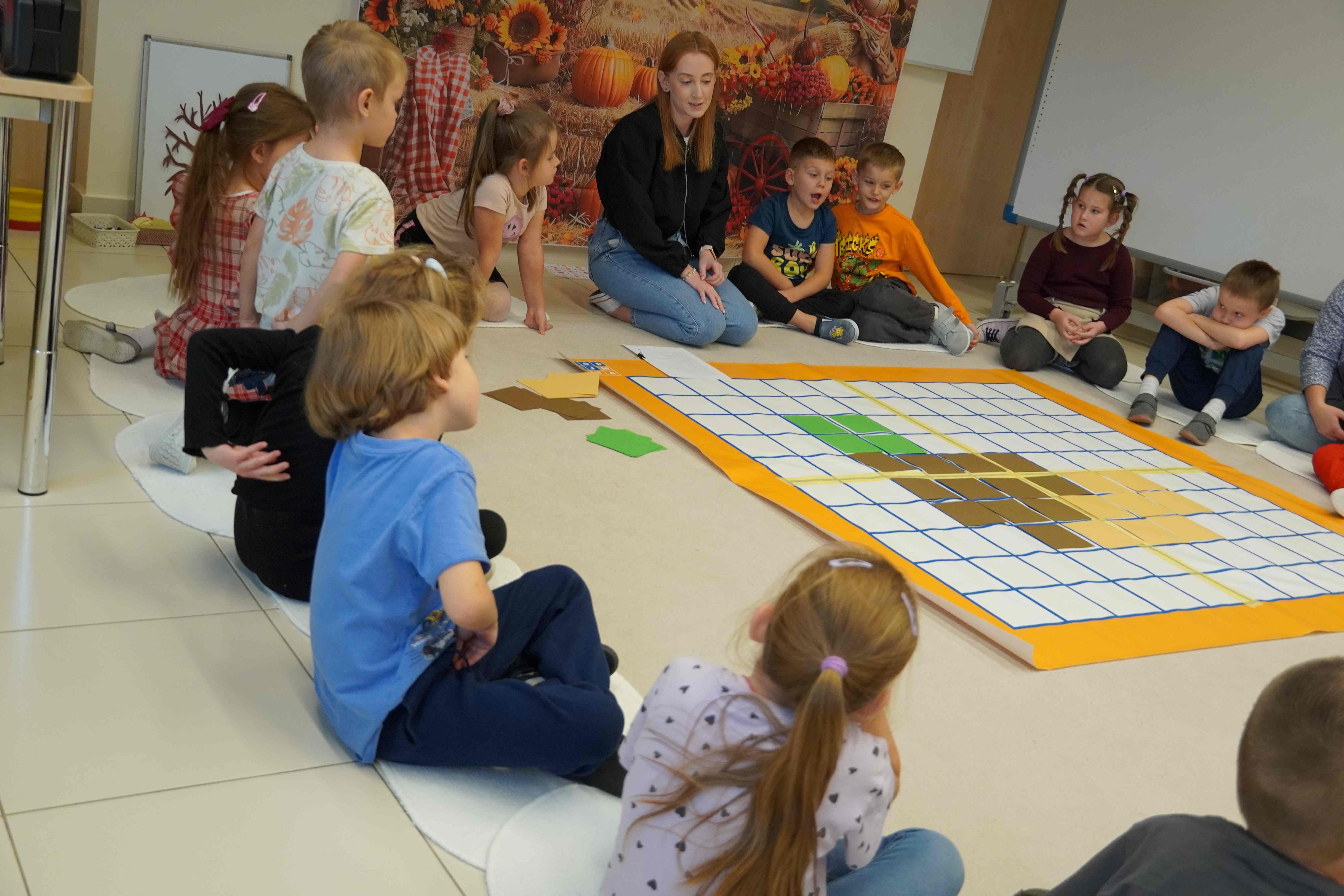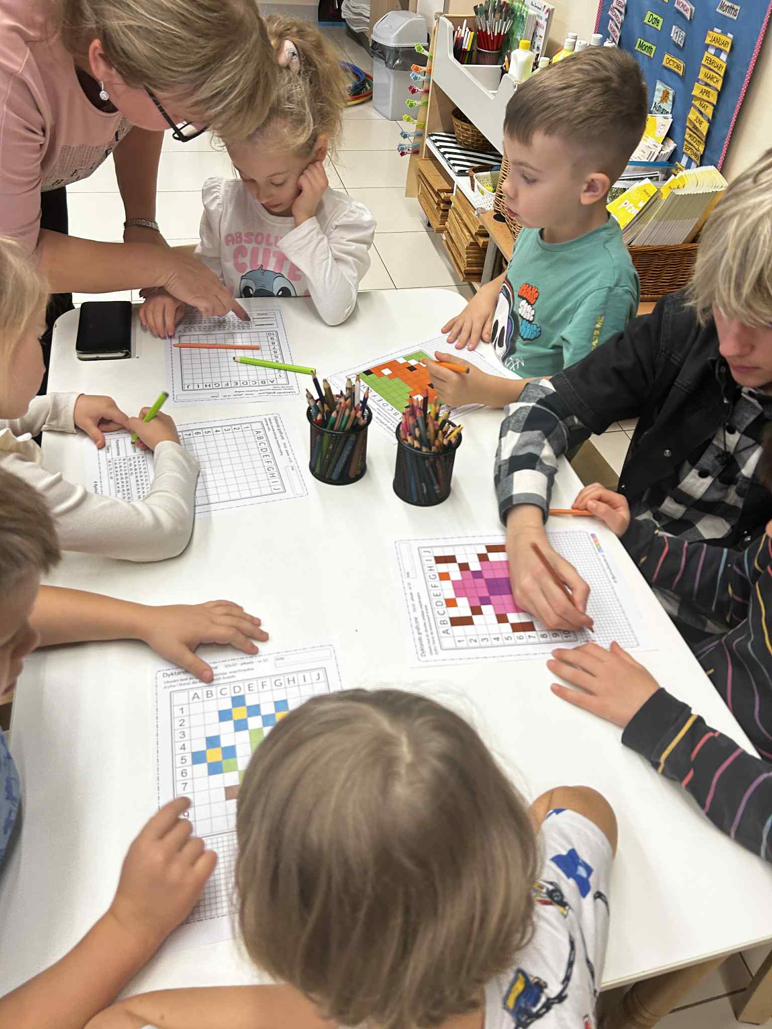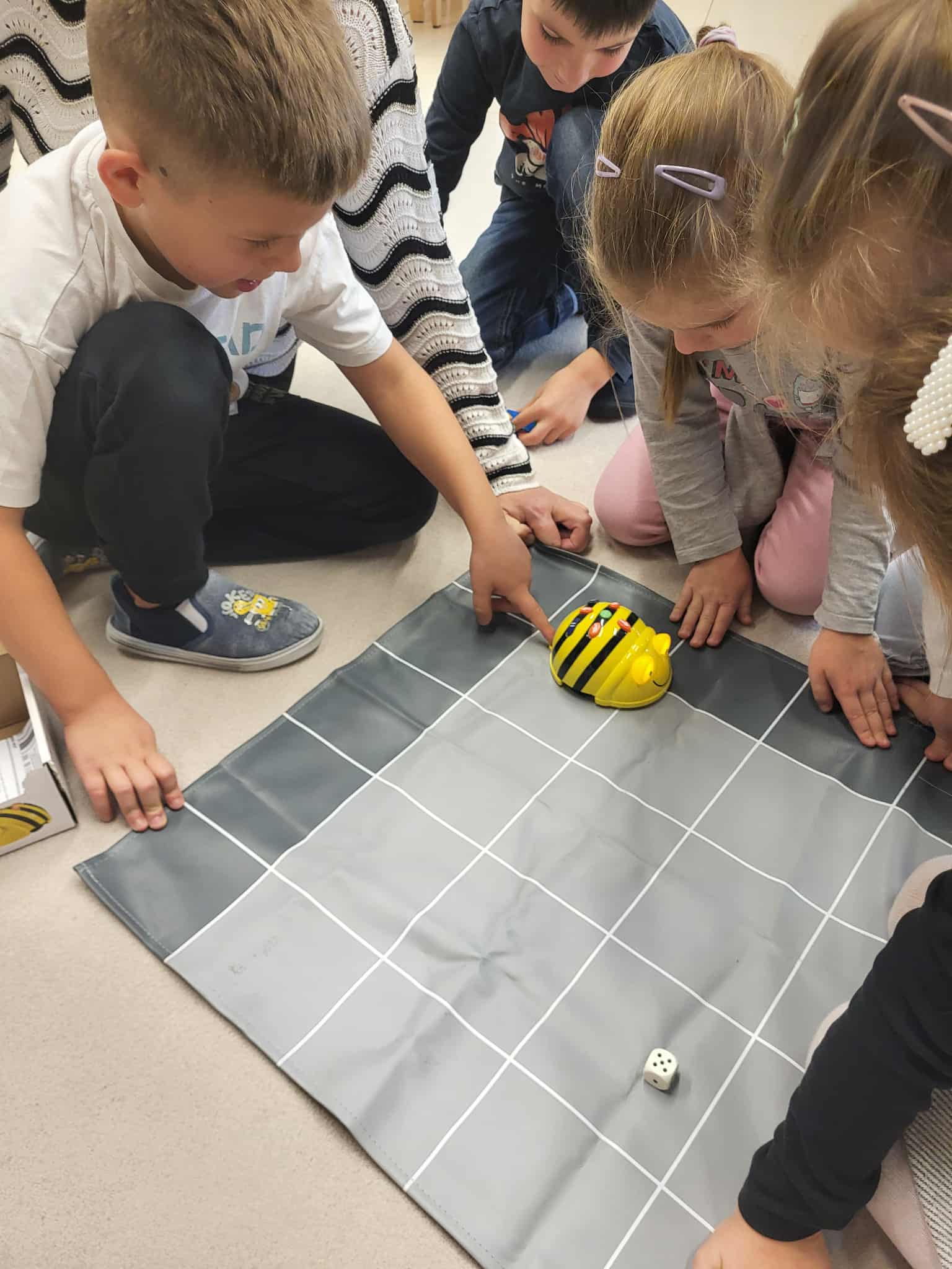 W październiku nasza grupa 6-latków wzięła udział w Europejskim Tygodniu Kodowania – Code Week, którego celem jest rozwijanie logicznego myślenia, kreatywności i umiejętności współpracy poprzez zabawę w kodowanie. Podczas zajęć dzieci kodowały trasy na mapie, poznawały kierunki i sekwencje ruchów, a także tworzyły własne wzory i kody z darów jesieni – liści, szyszek, kasztanów i żołędzi. W ten sposób przekonały się, że kodowanie to nie tylko praca z komputerem, ale także świetna zabawa z wykorzystaniem natury. Nie zabrakło również gier i zabaw ruchowych, podczas których dzieci poruszały się zgodnie z ustalonymi komendami, ćwicząc orientację w przestrzeni i współpracę w grupie. W ramach Code Week odwiedzili nas także licealiści, którzy w ciekawy sposób pokazali przedszkolakom świat nowoczesnych technologii i zachęcili do dalszego odkrywania tajników programowania.