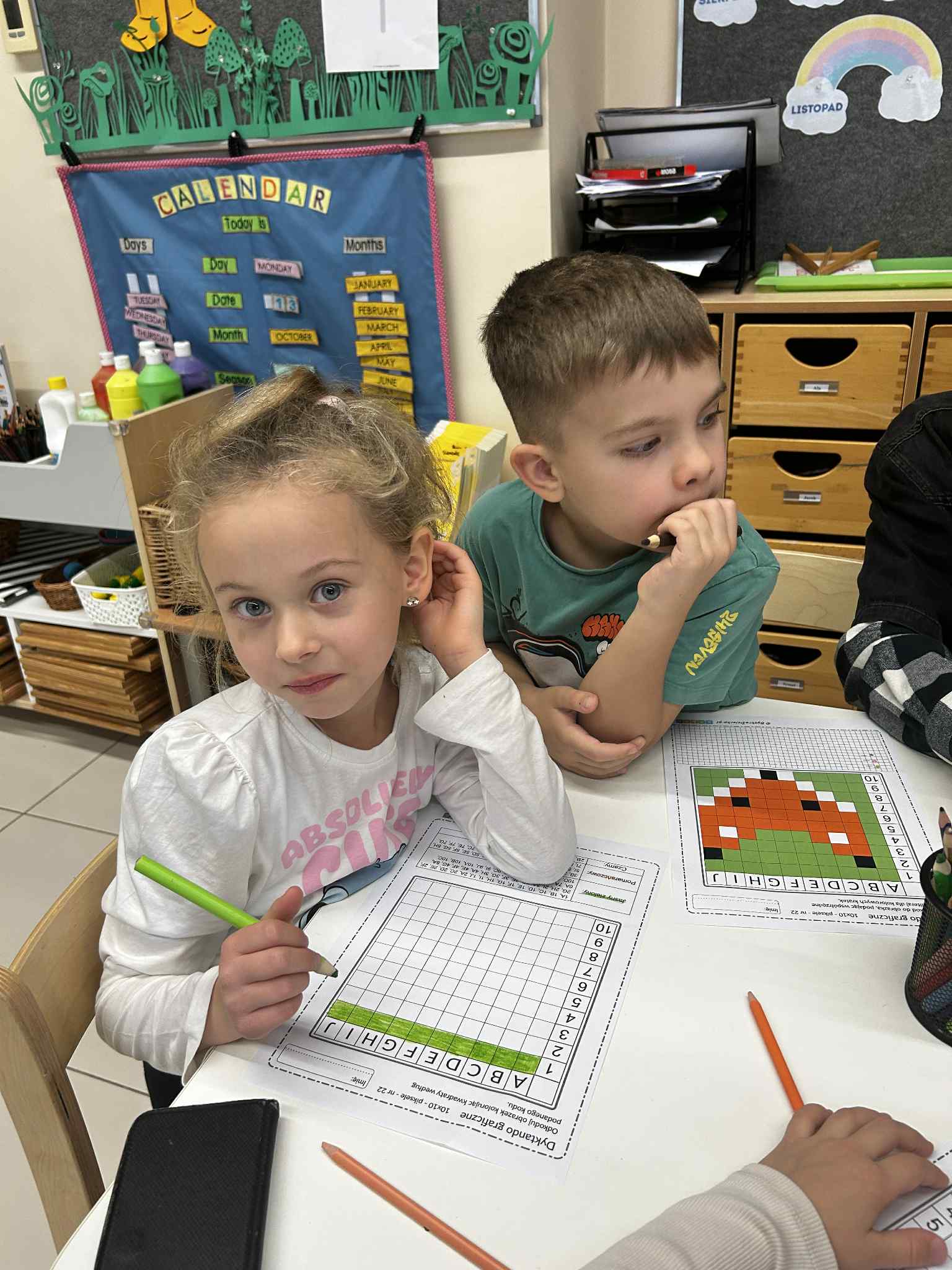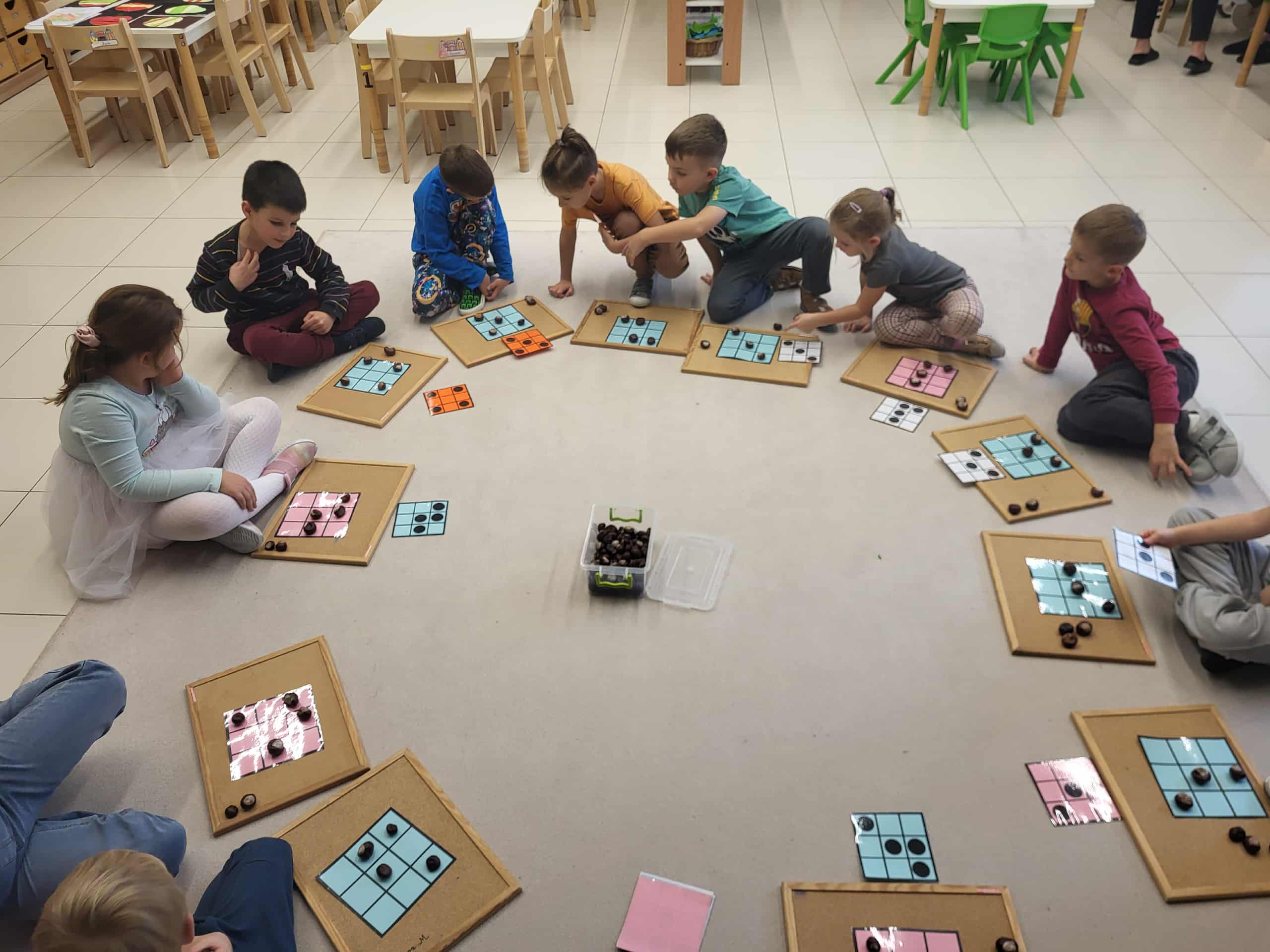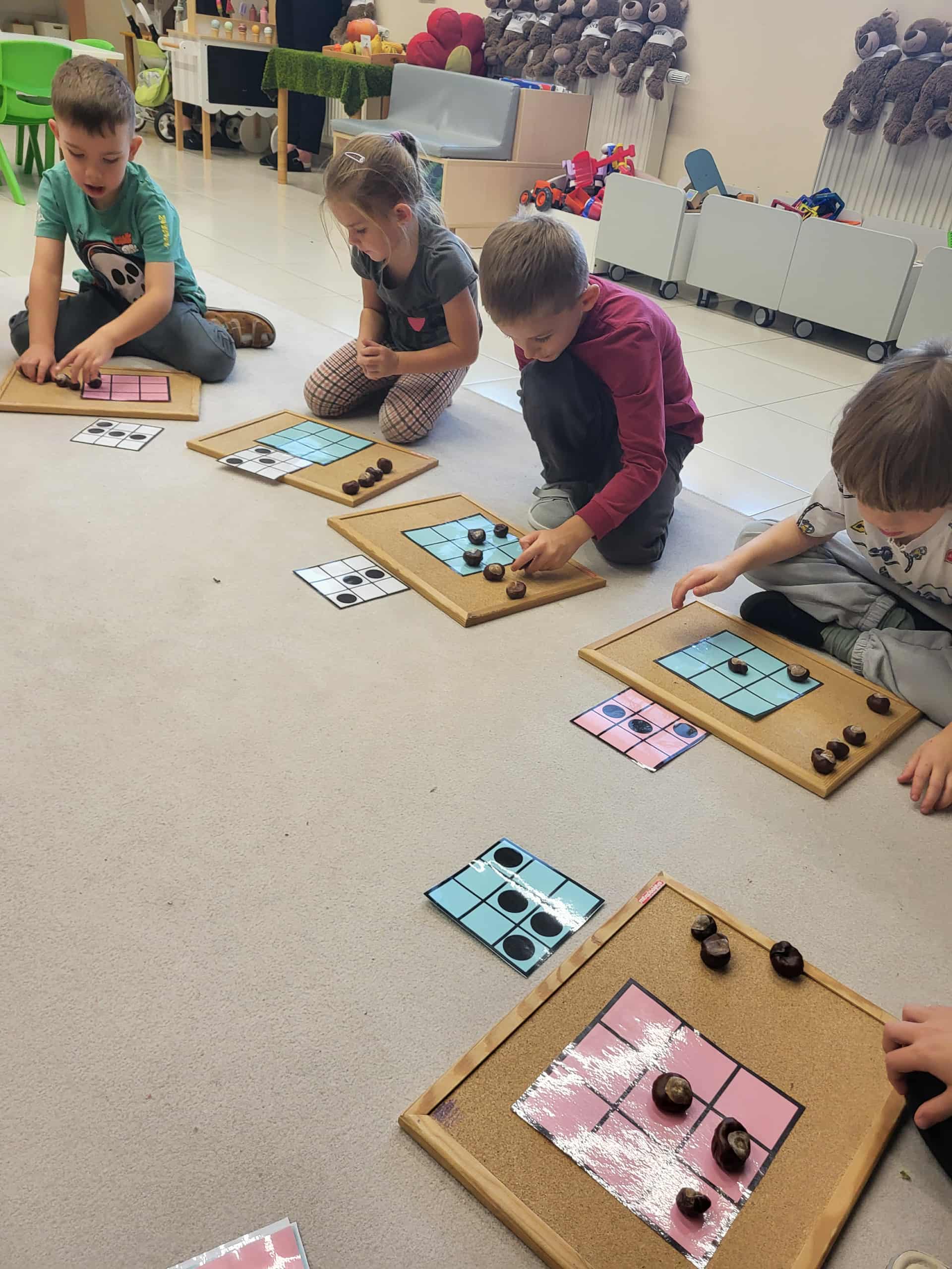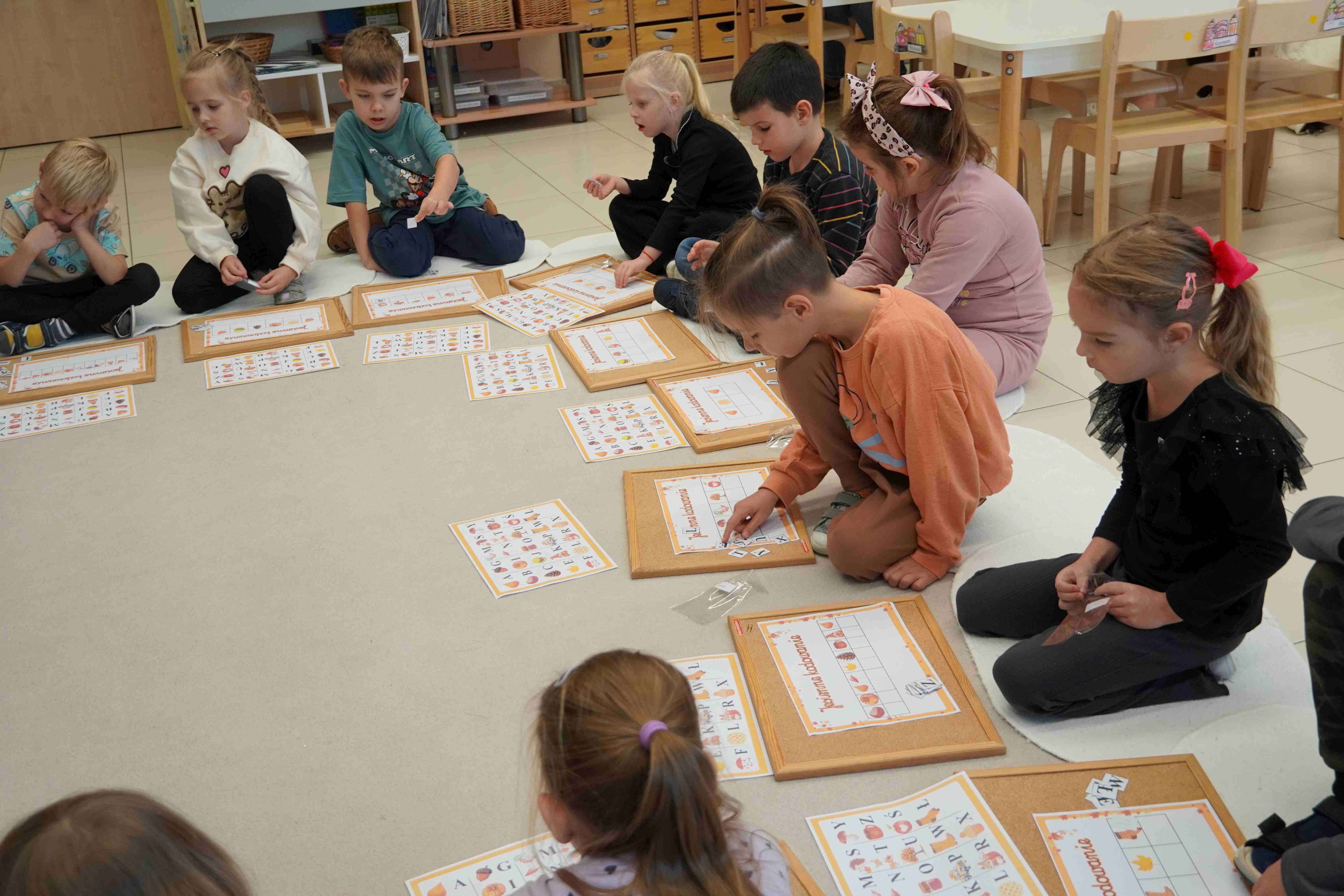 W październiku nasza grupa 6-latków wzięła udział w Europejskim Tygodniu Kodowania – Code Week, którego celem jest rozwijanie logicznego myślenia, kreatywności i umiejętności współpracy poprzez zabawę w kodowanie. Podczas zajęć dzieci kodowały trasy na mapie, poznawały kierunki i sekwencje ruchów, a także tworzyły własne wzory i kody z darów jesieni – liści, szyszek, kasztanów i żołędzi. W ten sposób przekonały się, że kodowanie to nie tylko praca z komputerem, ale także świetna zabawa z wykorzystaniem natury. Nie zabrakło również gier i zabaw ruchowych, podczas których dzieci poruszały się zgodnie z ustalonymi komendami, ćwicząc orientację w przestrzeni i współpracę w grupie. W ramach Code Week odwiedzili nas także licealiści, którzy w ciekawy sposób pokazali przedszkolakom świat nowoczesnych technologii i zachęcili do dalszego odkrywania tajników programowania.