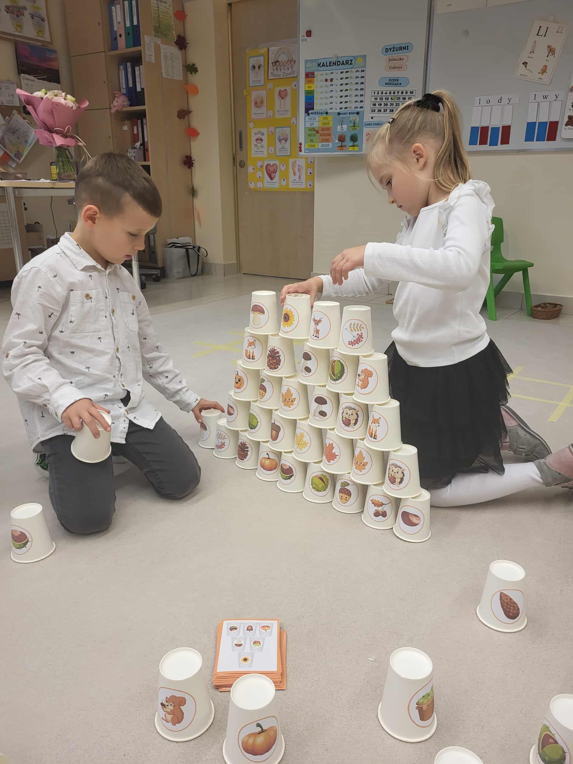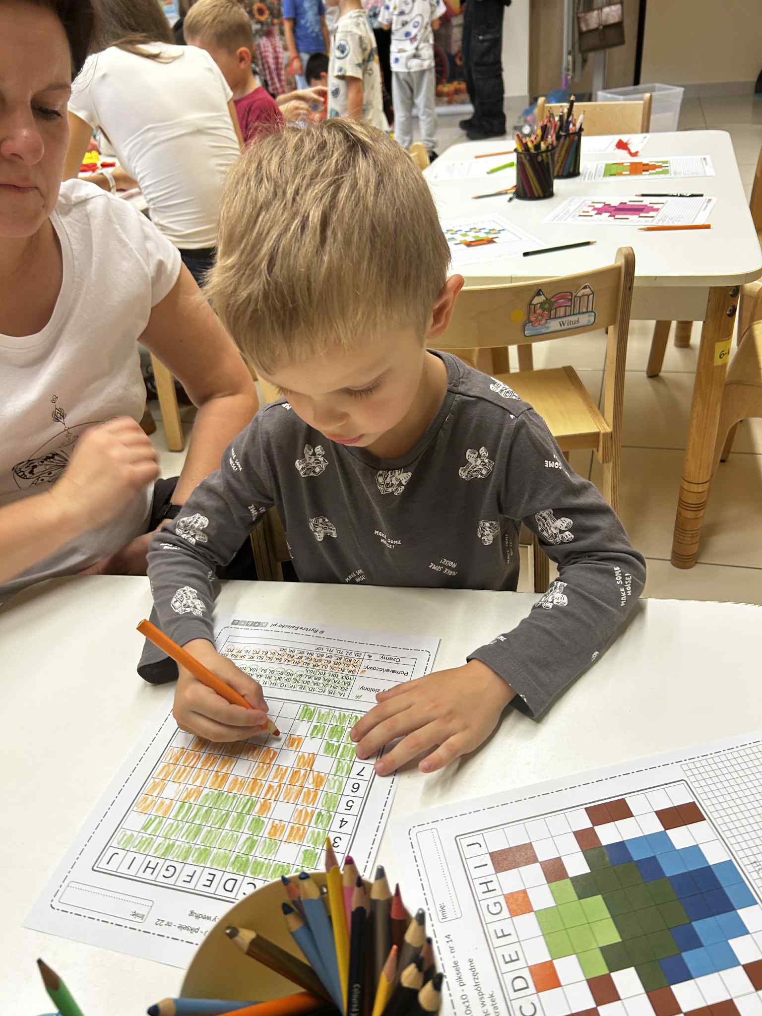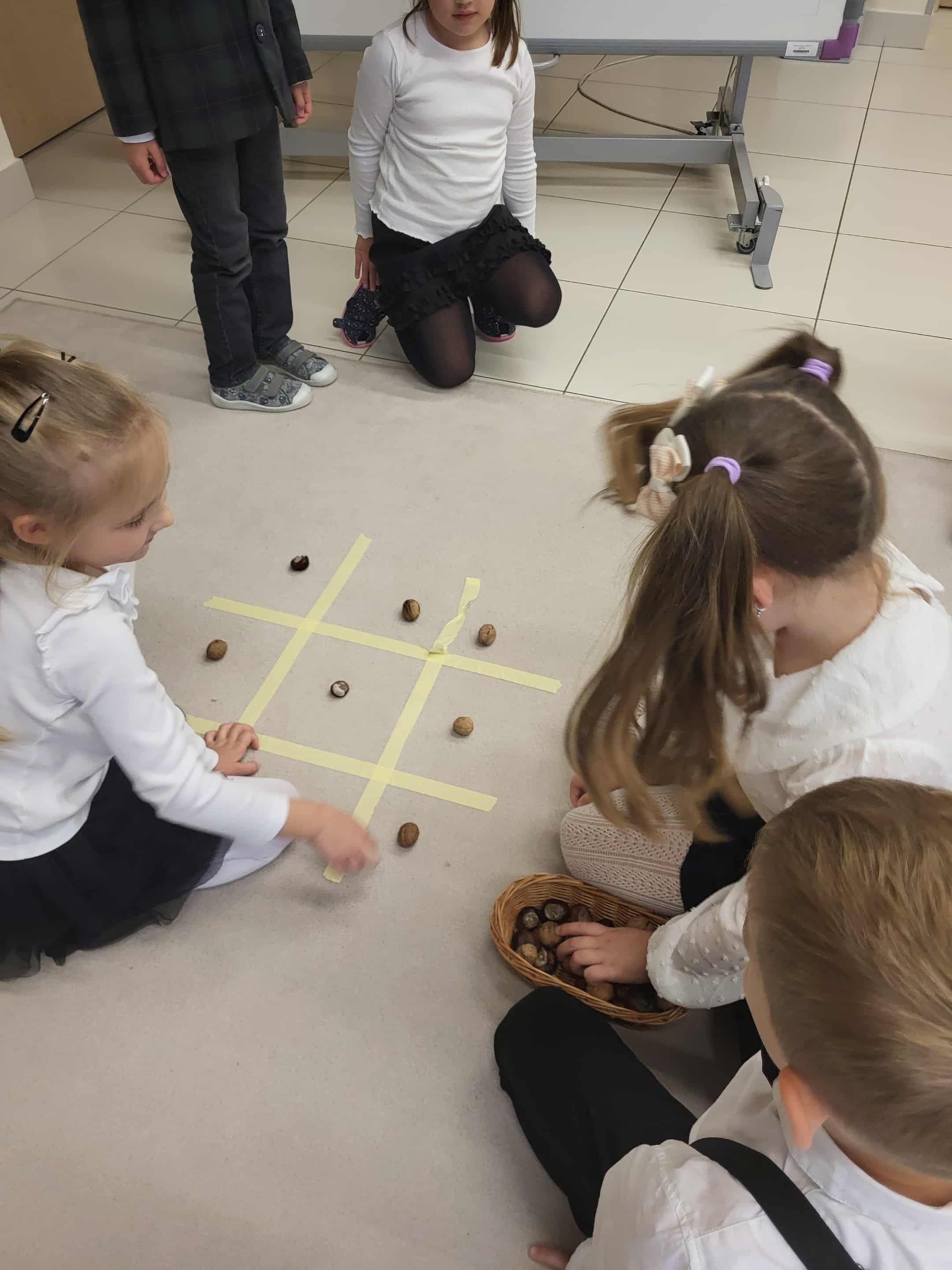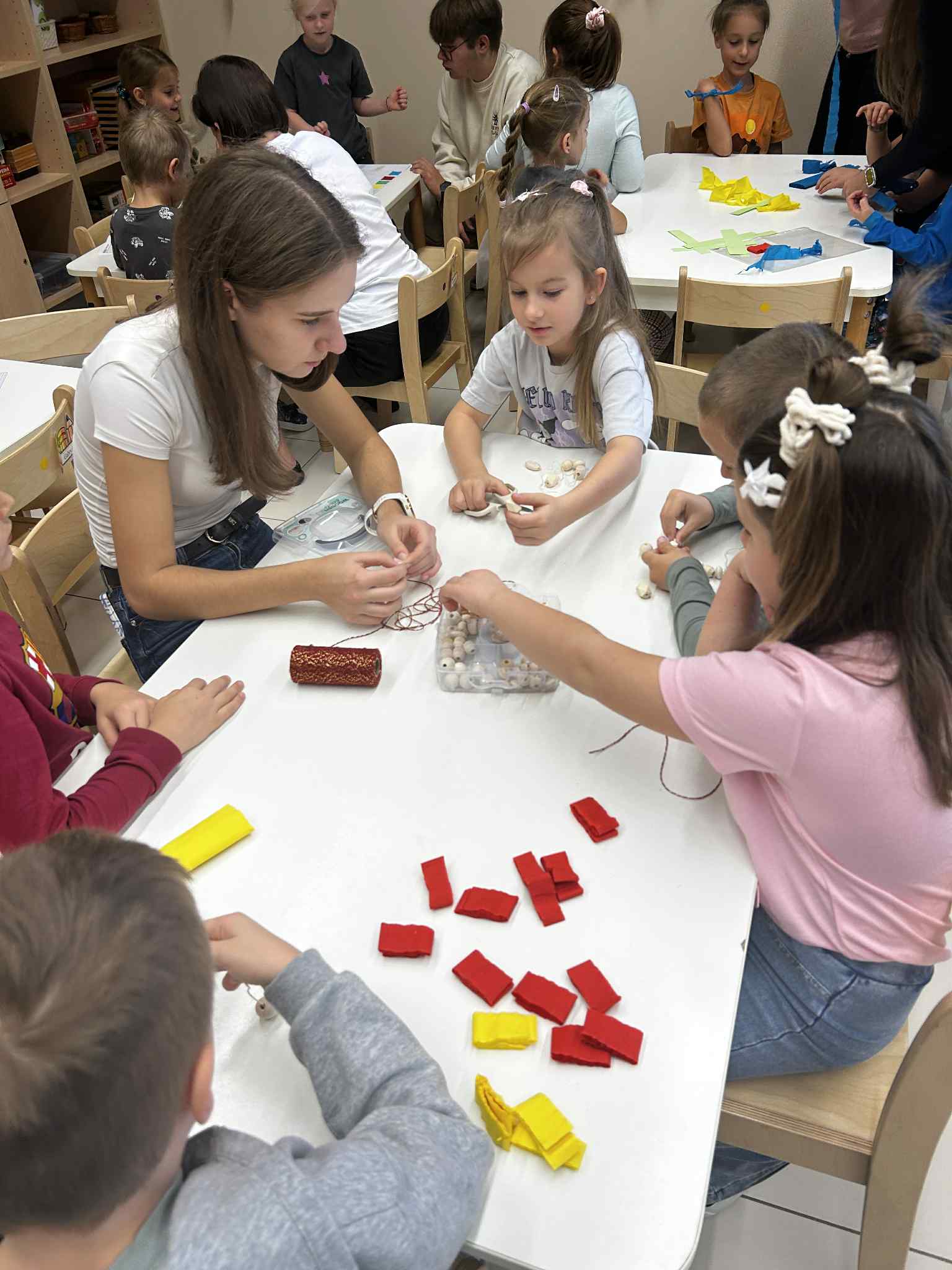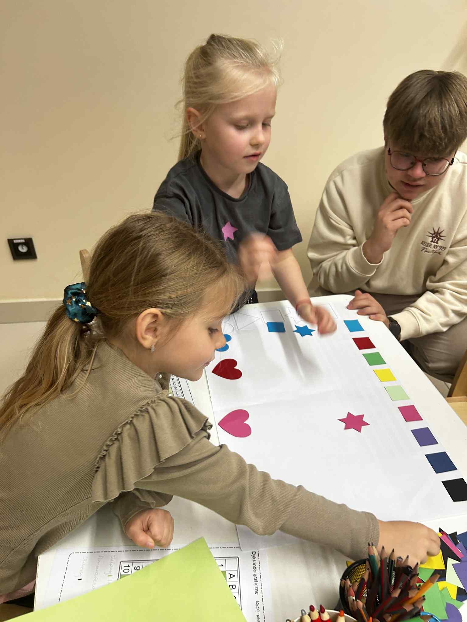 W październiku nasza grupa 6-latków wzięła udział w Europejskim Tygodniu Kodowania – Code Week, którego celem jest rozwijanie logicznego myślenia, kreatywności i umiejętności współpracy poprzez zabawę w kodowanie. Podczas zajęć dzieci kodowały trasy na mapie, poznawały kierunki i sekwencje ruchów, a także tworzyły własne wzory i kody z darów jesieni – liści, szyszek, kasztanów i żołędzi. W ten sposób przekonały się, że kodowanie to nie tylko praca z komputerem, ale także świetna zabawa z wykorzystaniem natury. Nie zabrakło również gier i zabaw ruchowych, podczas których dzieci poruszały się zgodnie z ustalonymi komendami, ćwicząc orientację w przestrzeni i współpracę w grupie. W ramach Code Week odwiedzili nas także licealiści, którzy w ciekawy sposób pokazali przedszkolakom świat nowoczesnych technologii i zachęcili do dalszego odkrywania tajników programowania.
