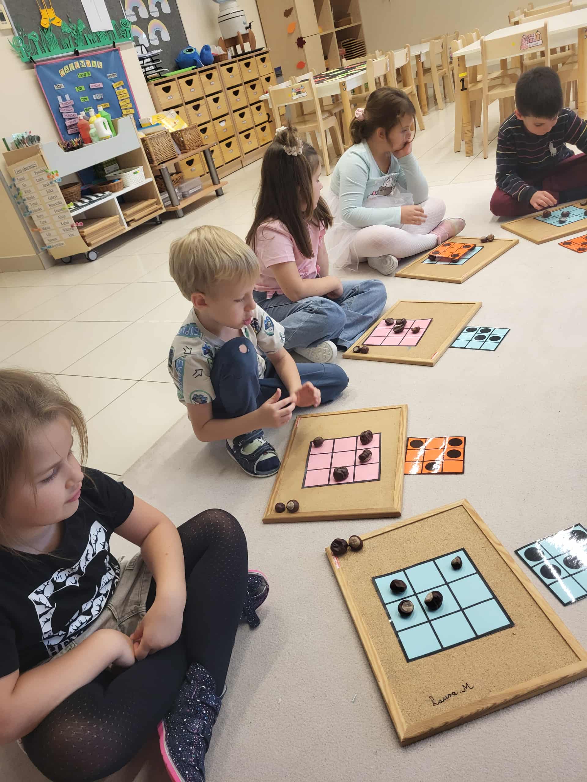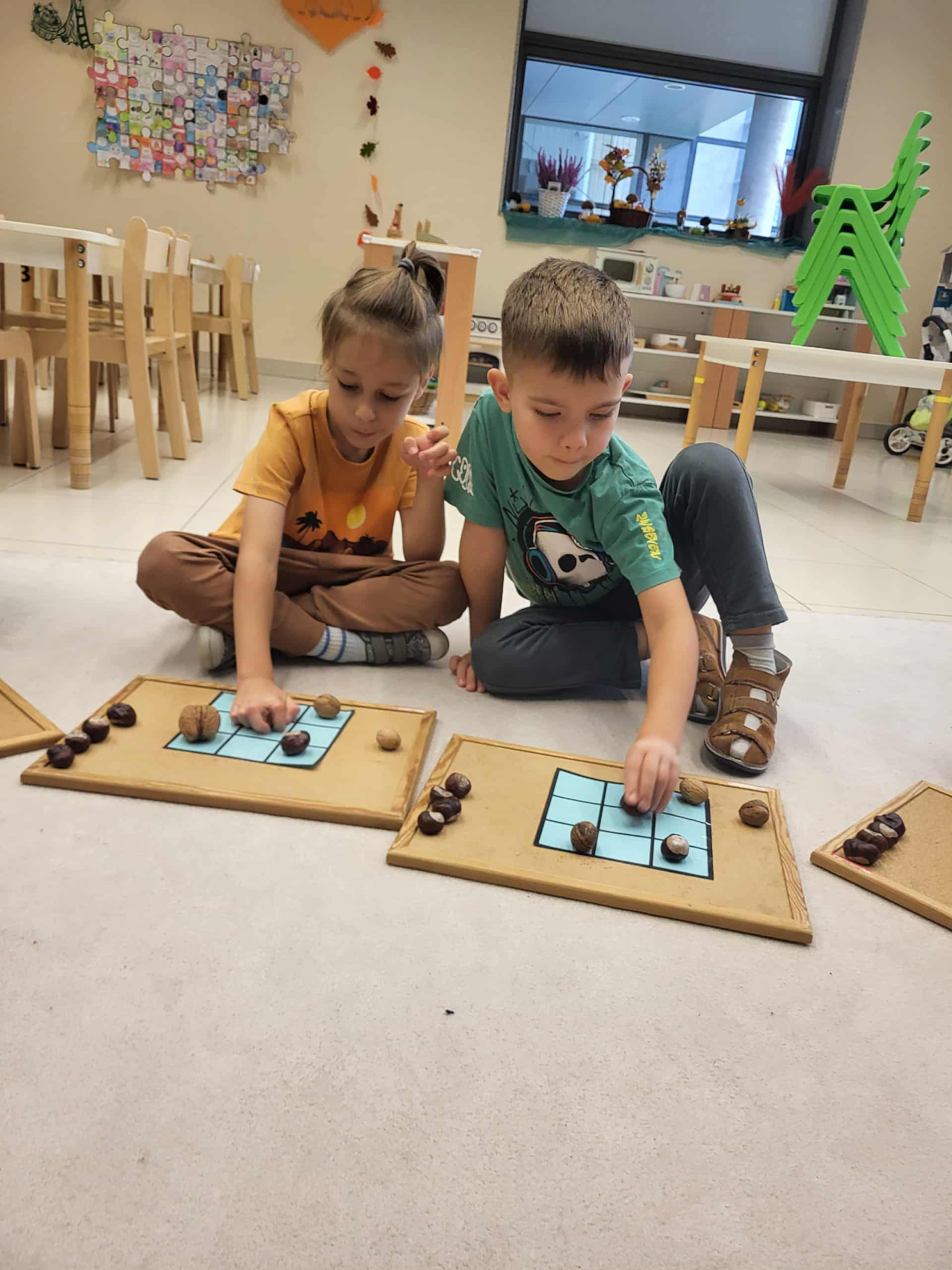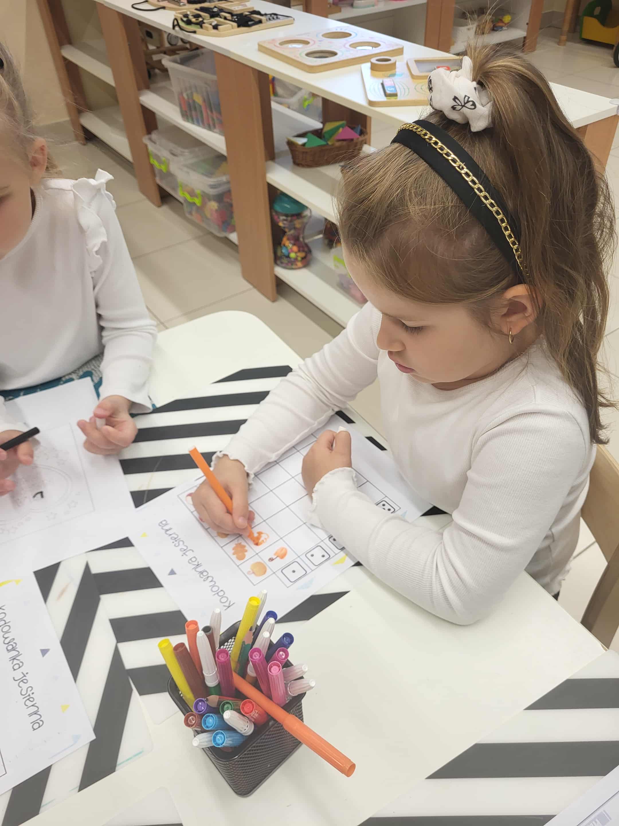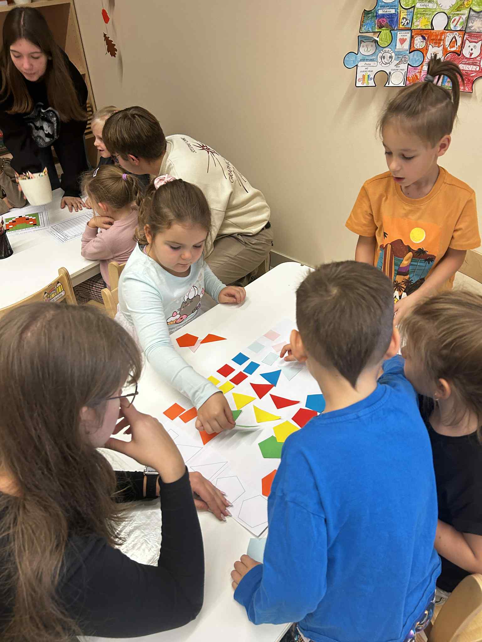 W październiku nasza grupa 6-latków wzięła udział w Europejskim Tygodniu Kodowania – Code Week, którego celem jest rozwijanie logicznego myślenia, kreatywności i umiejętności współpracy poprzez zabawę w kodowanie. Podczas zajęć dzieci kodowały trasy na mapie, poznawały kierunki i sekwencje ruchów, a także tworzyły własne wzory i kody z darów jesieni – liści, szyszek, kasztanów i żołędzi. W ten sposób przekonały się, że kodowanie to nie tylko praca z komputerem, ale także świetna zabawa z wykorzystaniem natury. Nie zabrakło również gier i zabaw ruchowych, podczas których dzieci poruszały się zgodnie z ustalonymi komendami, ćwicząc orientację w przestrzeni i współpracę w grupie. W ramach Code Week odwiedzili nas także licealiści, którzy w ciekawy sposób pokazali przedszkolakom świat nowoczesnych technologii i zachęcili do dalszego odkrywania tajników programowania.