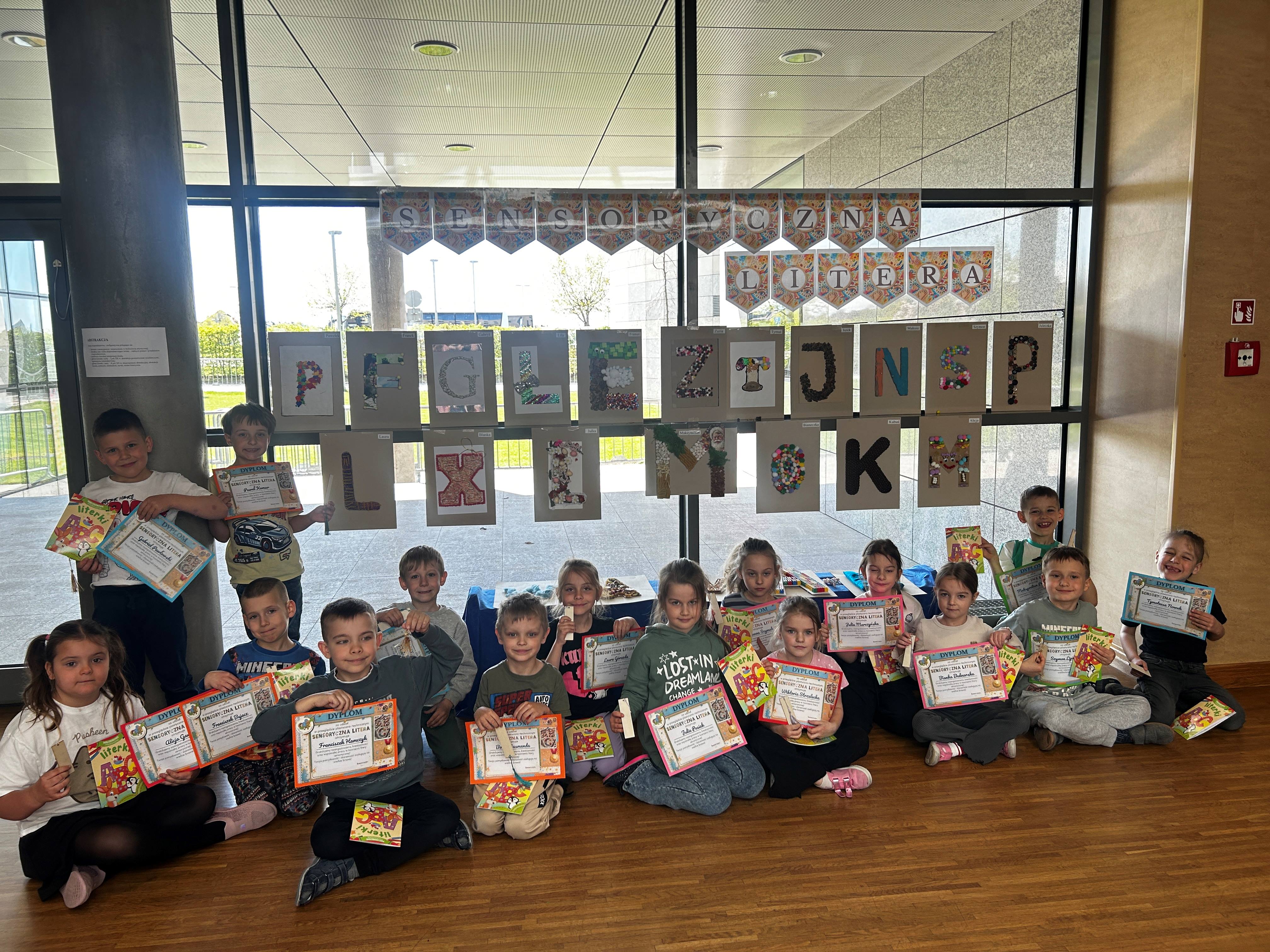 Czy literę można poczuć? Nasze 6-latki udowodniły, że tak! W ramach realizowanej w naszej grupie innowacji pedagogicznej „Zabawa w czytanie” zorganizowaliśmy przegląd plastyczno-techniczny pt. „Sensoryczna litera”. Głównym celem tego wyzwania było rozbudzenie zainteresowania pismem poprzez wielozmysłowe doświadczenia. Dzieci wypełniły kontury liter różnorodnymi strukturami i materiałami, co nie tylko pomogło im utrwalić kształty alfabetu, ale też doskonale wpłynęło na rozwój motoryki małej i wyobraźni. Każda praca była unikalna, pełna ciekawych faktur i kolorów.