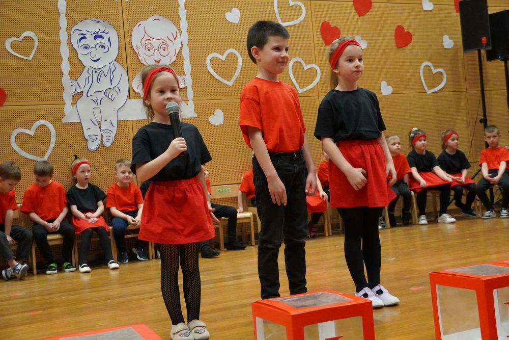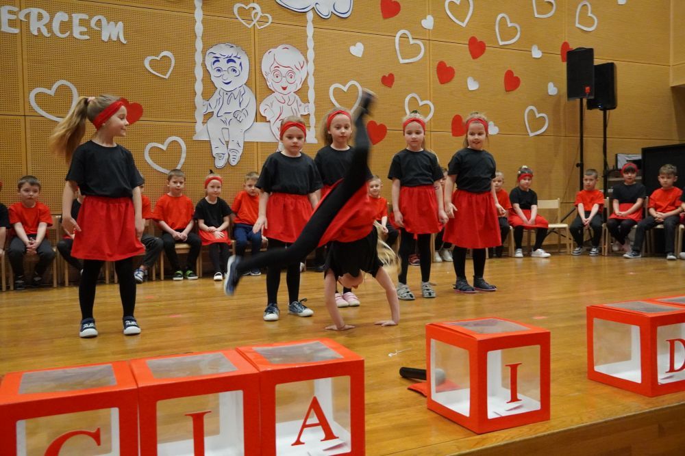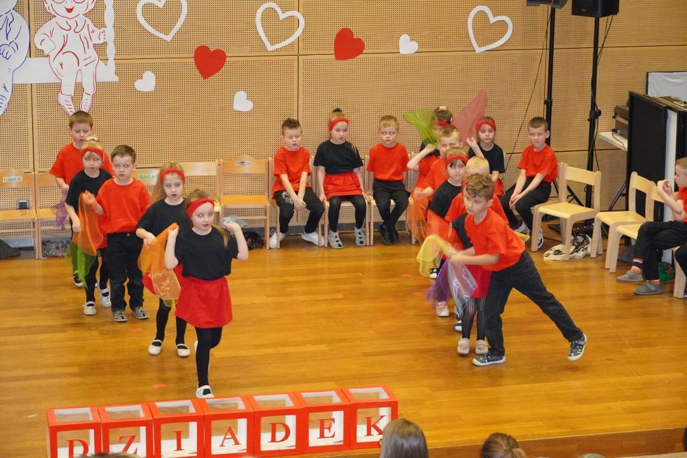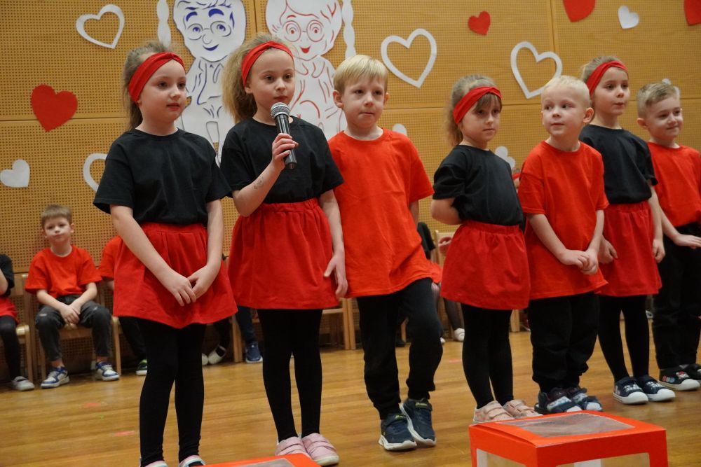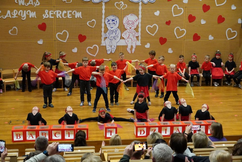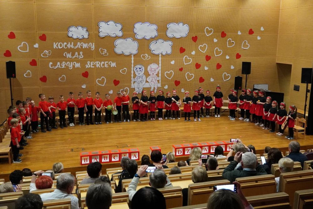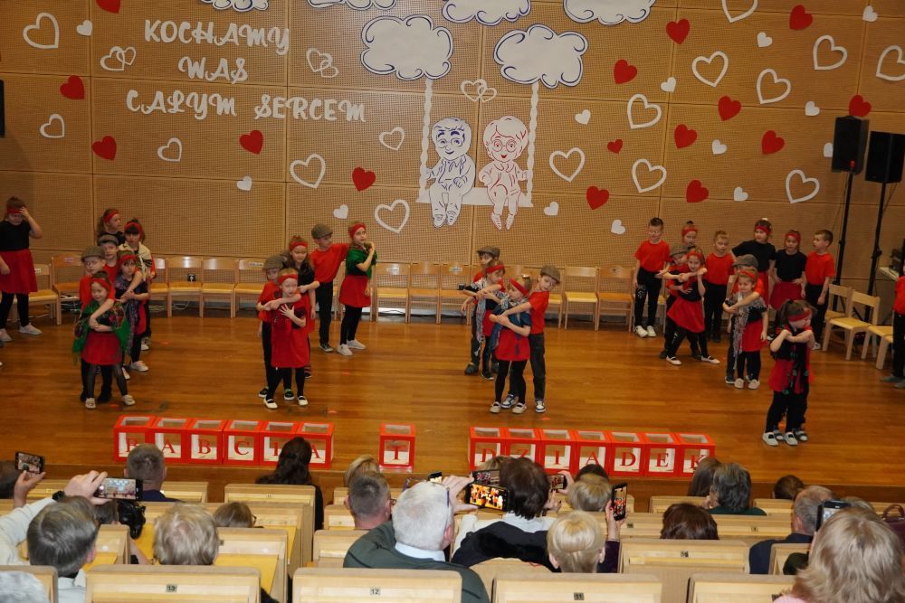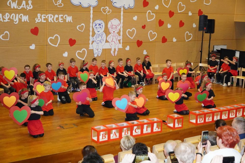 Z okazji Dnia Babci i Dziadka w auli Solparku odbyła się wyjątkowa uroczystość, która na długo pozostanie w naszych sercach. Przedszkolaki z grupy 5 i 6-latków zaprezentowały piękny, pełen emocji występ artystyczny, nagrodzony gromkimi brawami i uśmiechami dumnych Dziadków. Po części artystycznej, dzieci wręczyły ukochanym dziadkom drobne , własnoręcznie wykonane upominki. Następnie wszyscy goście zostali zaproszeni do wspólnej zabawy z niezastąpionym wodzirejem Pająkiem, który zadbał o doskonałą atmosferę, śmiech i integrację międzypokoleniową. Na wszystkich gości czekał słodki poczęstunek – serdecznie dziękujemy Rodzicom za przygotowanie pysznych deserków dla Babć i Dziadków. To był dzień pełen ciepła, radości i wspólnego świętowania.