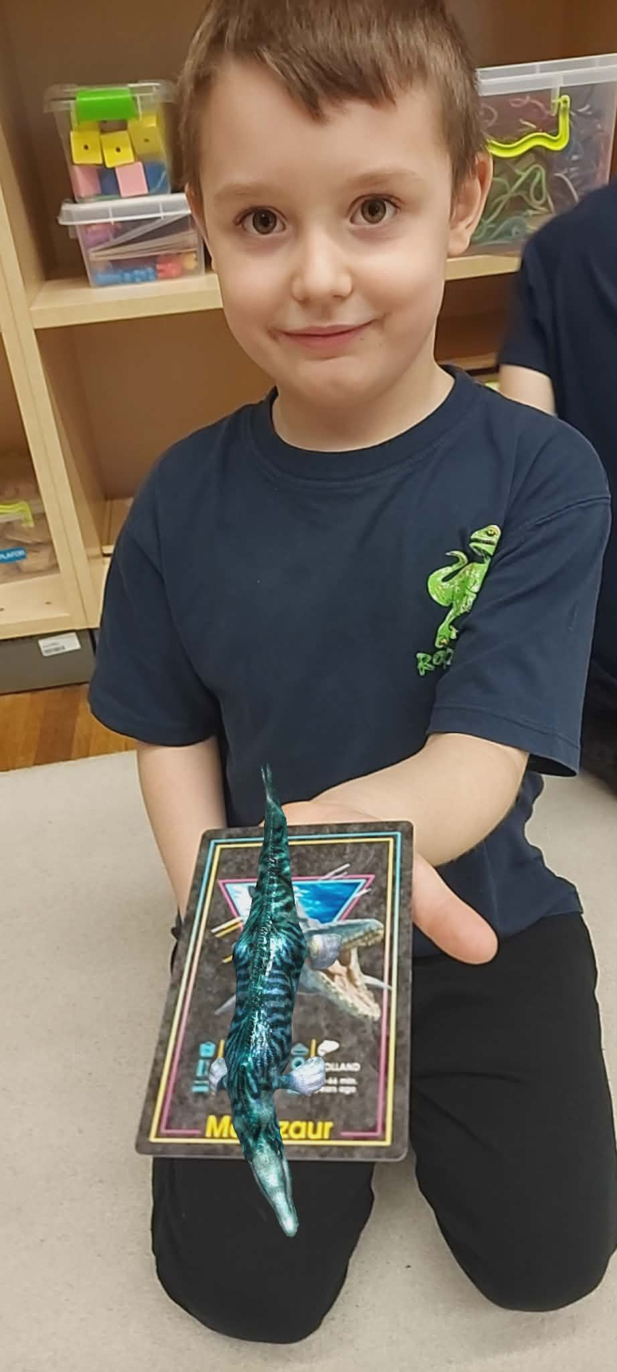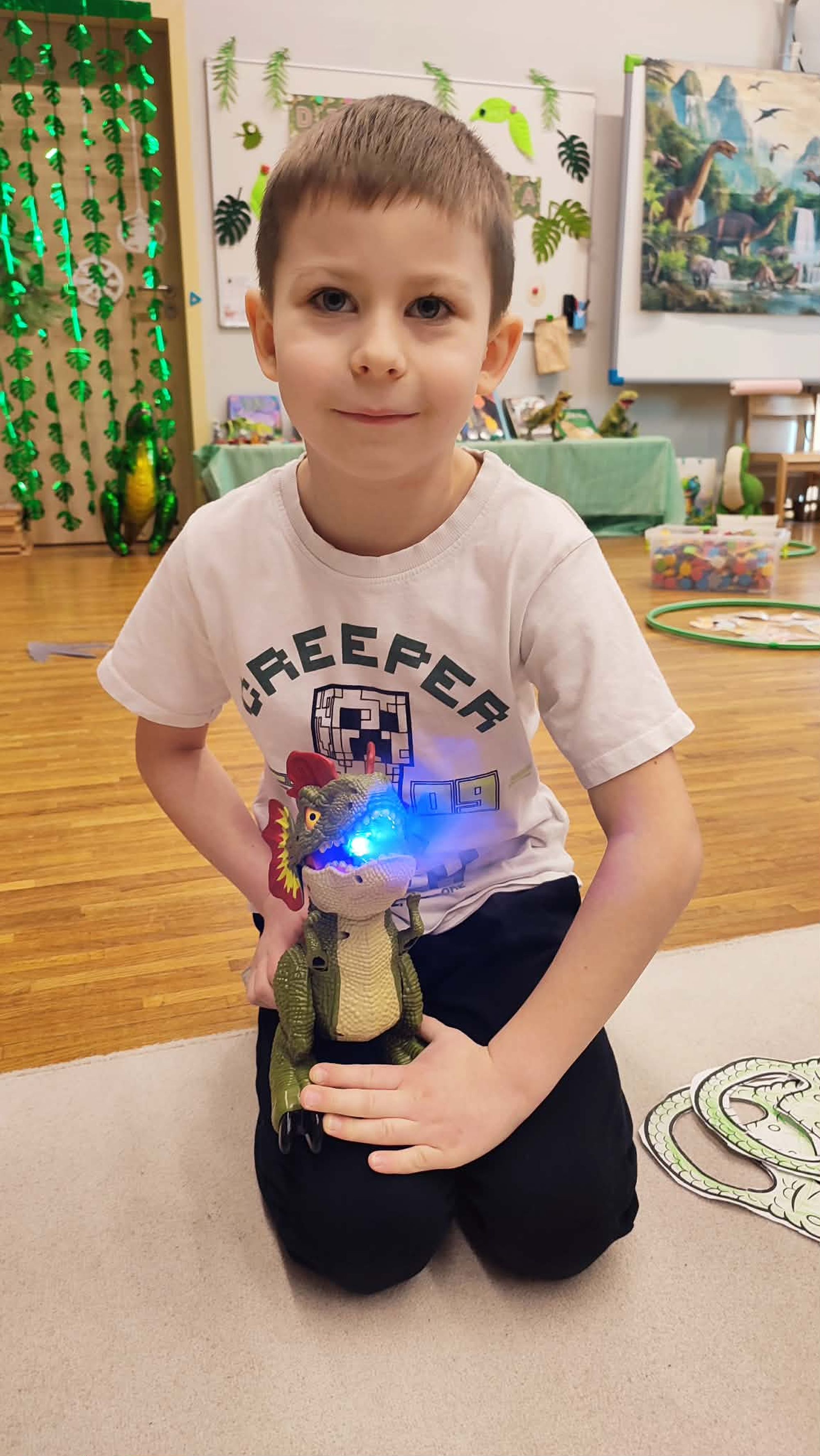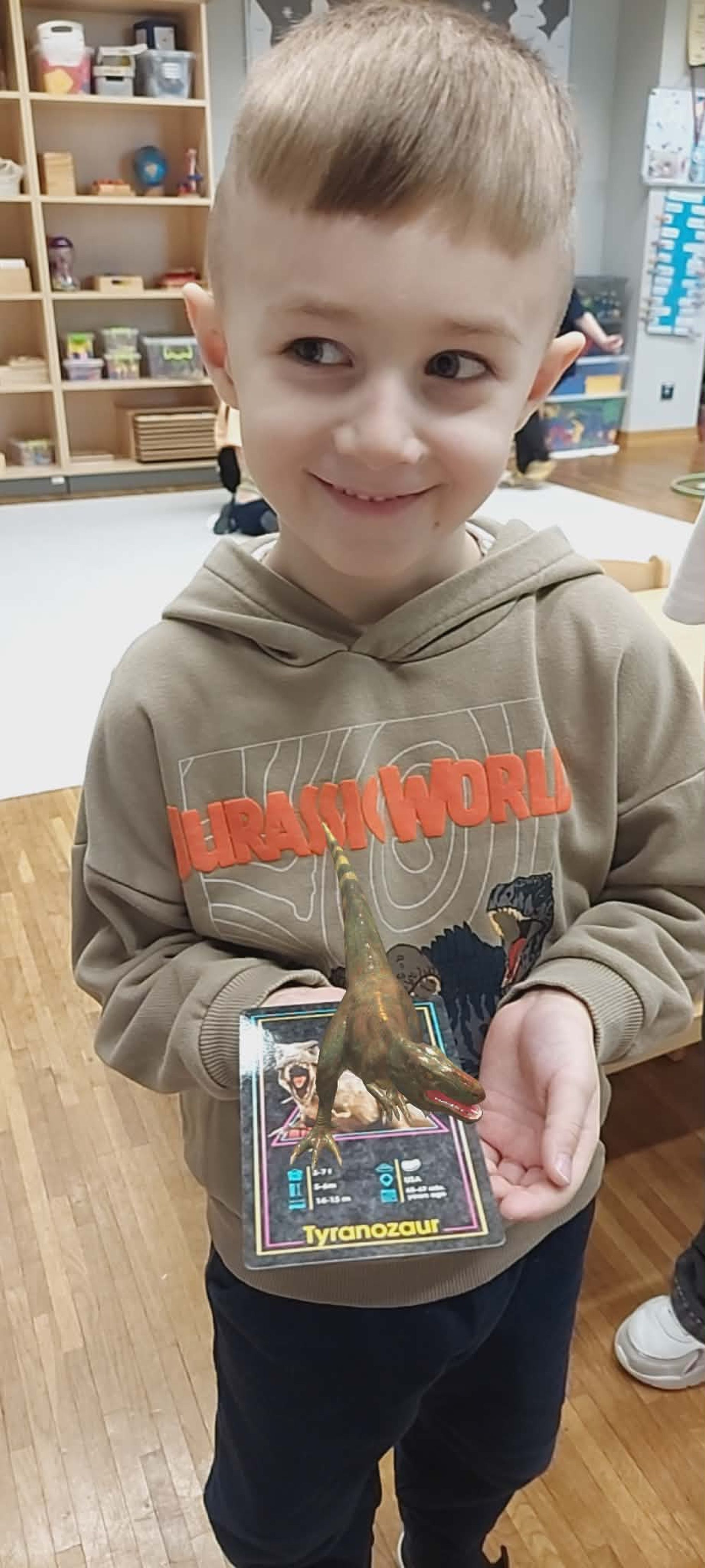 W naszej grupie 5-latków obchodziliśmy wyjątkowy Dzień Dinozaura! Tego dnia przedszkolaki zamieniły się w prawdziwych miłośników prehistorycznych gadów. Dzieci z ogromnym zaangażowaniem przyniosły swoje kolekcje dinozaurów, zabawki, maskotki oraz książki, tworząc w sali małą, dinozaurową wystawę. Podczas zajęć wysłuchaliśmy ciekawej historii pt. „Jak wymarły dinozaury?”, która wzbudziła wiele pytań i inspirujących rozmów. Przedszkolaki z zainteresowaniem dzieliły się swoją wiedzą i spostrzeżeniami. Nie zabrakło również pracy zespołowej – dzieci pracowały w grupach, wykonując różnorodne zadania związane z tematyką dinozaurów. Było dużo radości, współpracy i świetnej zabawy! To był dzień pełen odkryć, uśmiechu i wspólnego poznawania fascynującego świata dinozaurów.