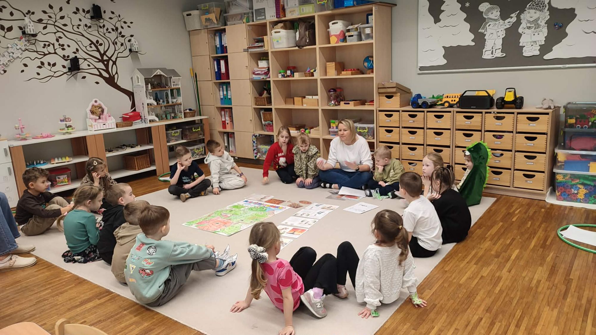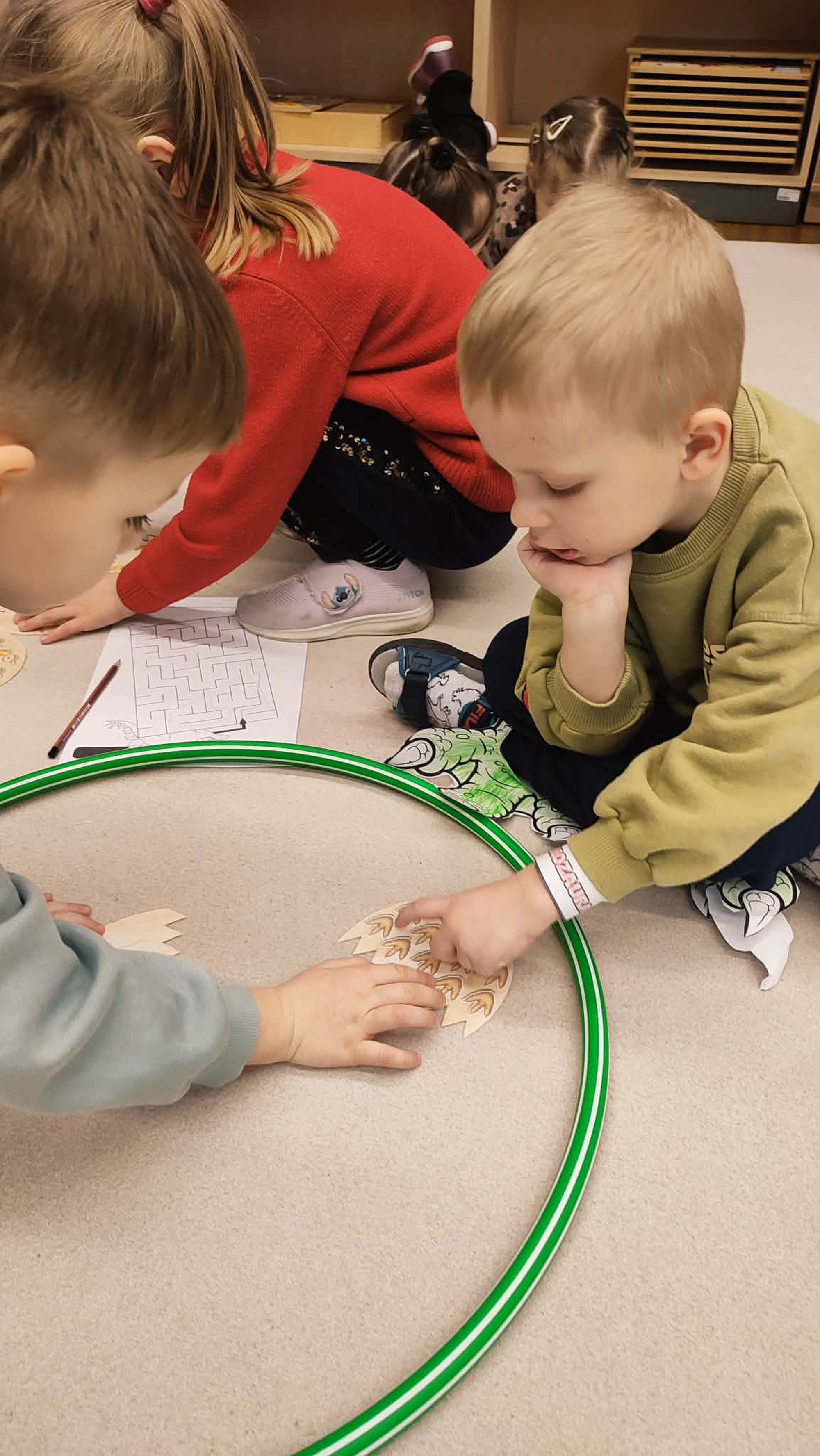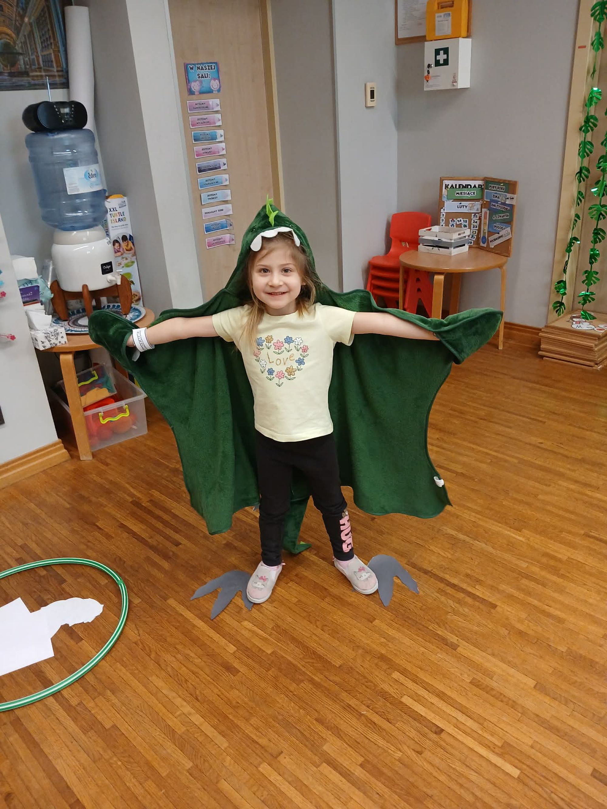 W naszej grupie 5-latków obchodziliśmy wyjątkowy Dzień Dinozaura! Tego dnia przedszkolaki zamieniły się w prawdziwych miłośników prehistorycznych gadów. Dzieci z ogromnym zaangażowaniem przyniosły swoje kolekcje dinozaurów, zabawki, maskotki oraz książki, tworząc w sali małą, dinozaurową wystawę. Podczas zajęć wysłuchaliśmy ciekawej historii pt. „Jak wymarły dinozaury?”, która wzbudziła wiele pytań i inspirujących rozmów. Przedszkolaki z zainteresowaniem dzieliły się swoją wiedzą i spostrzeżeniami. Nie zabrakło również pracy zespołowej – dzieci pracowały w grupach, wykonując różnorodne zadania związane z tematyką dinozaurów. Było dużo radości, współpracy i świetnej zabawy! To był dzień pełen odkryć, uśmiechu i wspólnego poznawania fascynującego świata dinozaurów.