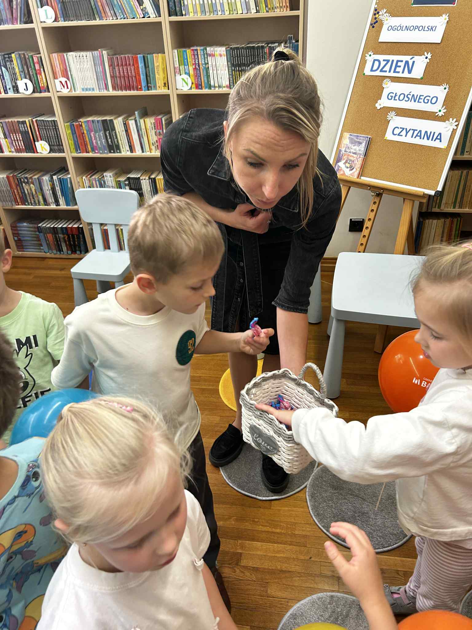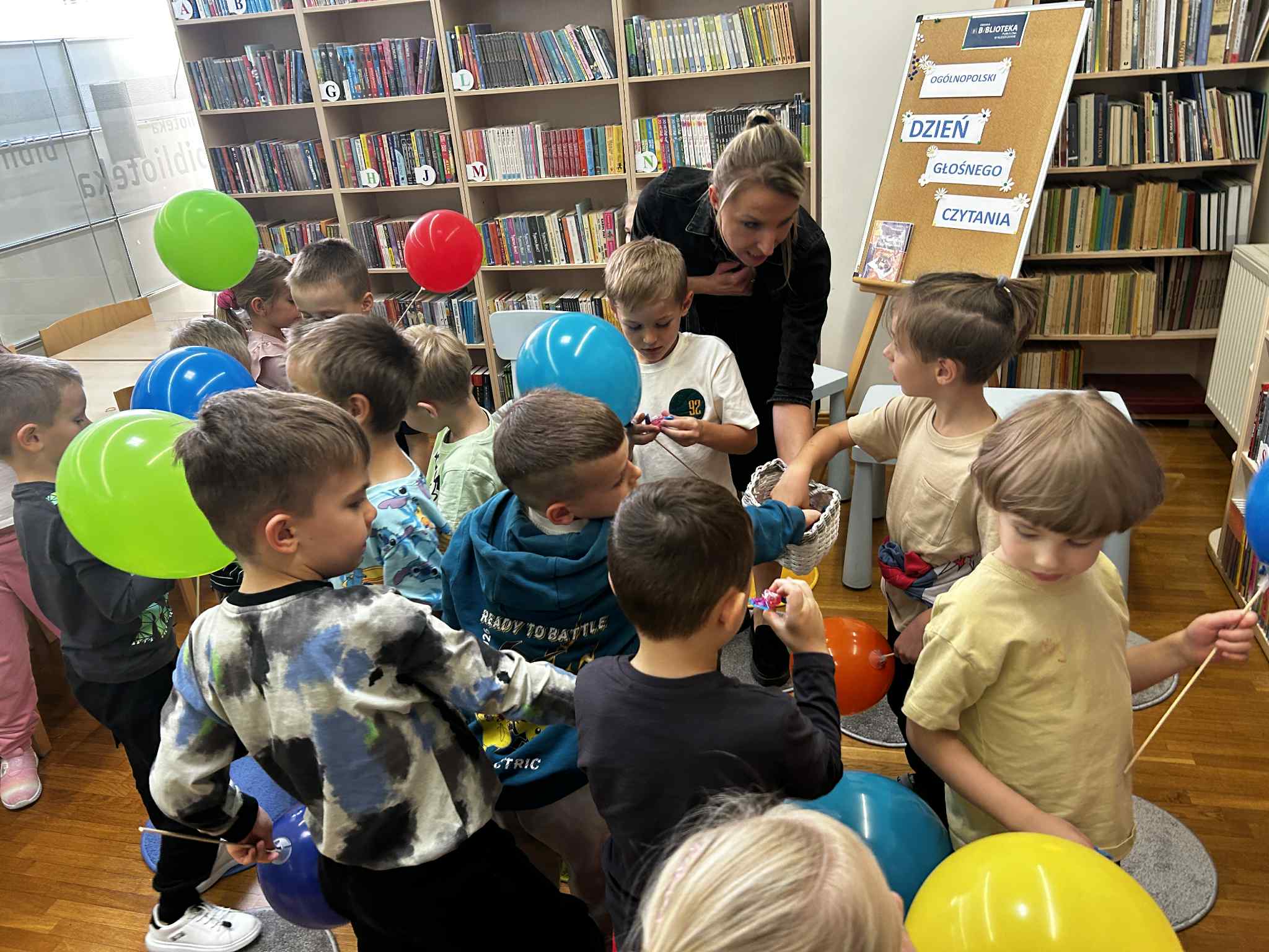 Z okazji Dnia Głośnego Czytania grupa 5- i 6-latków została zaproszona do Gminnej Biblioteki w Solparku. Pani bibliotekarka przeczytała dzieciom fragment książki „Pamiętnik Czarnego Noska”, a następnie przedszkolaki mogły samodzielnie obejrzeć wybrane przez siebie książki. Spotkanie zakończyło się miłym akcentem – każde dziecko otrzymało balonik i słodką niespodziankę. Celem wyjścia było rozwijanie zainteresowań czytelniczych, kształtowanie nawyku uważnego słuchania, budowanie pozytywnych skojarzeń z biblioteką, a także rozwijanie wyobraźni i wrażliwości literackiej oraz integrowanie grupy poprzez wspólne przeżycia.