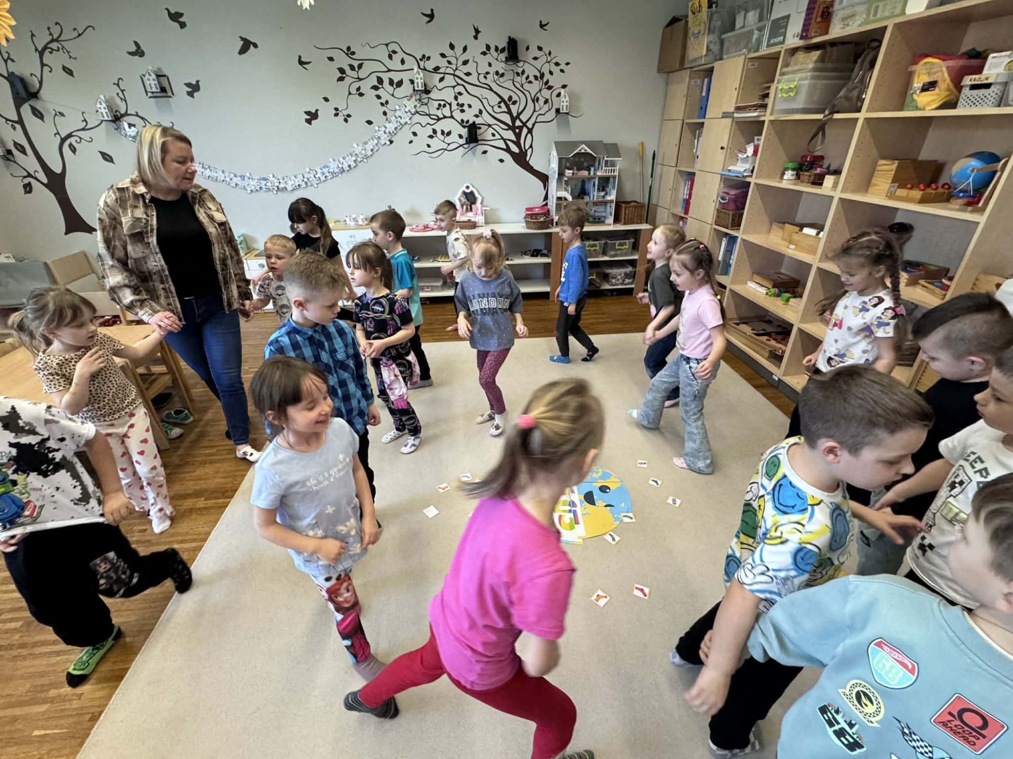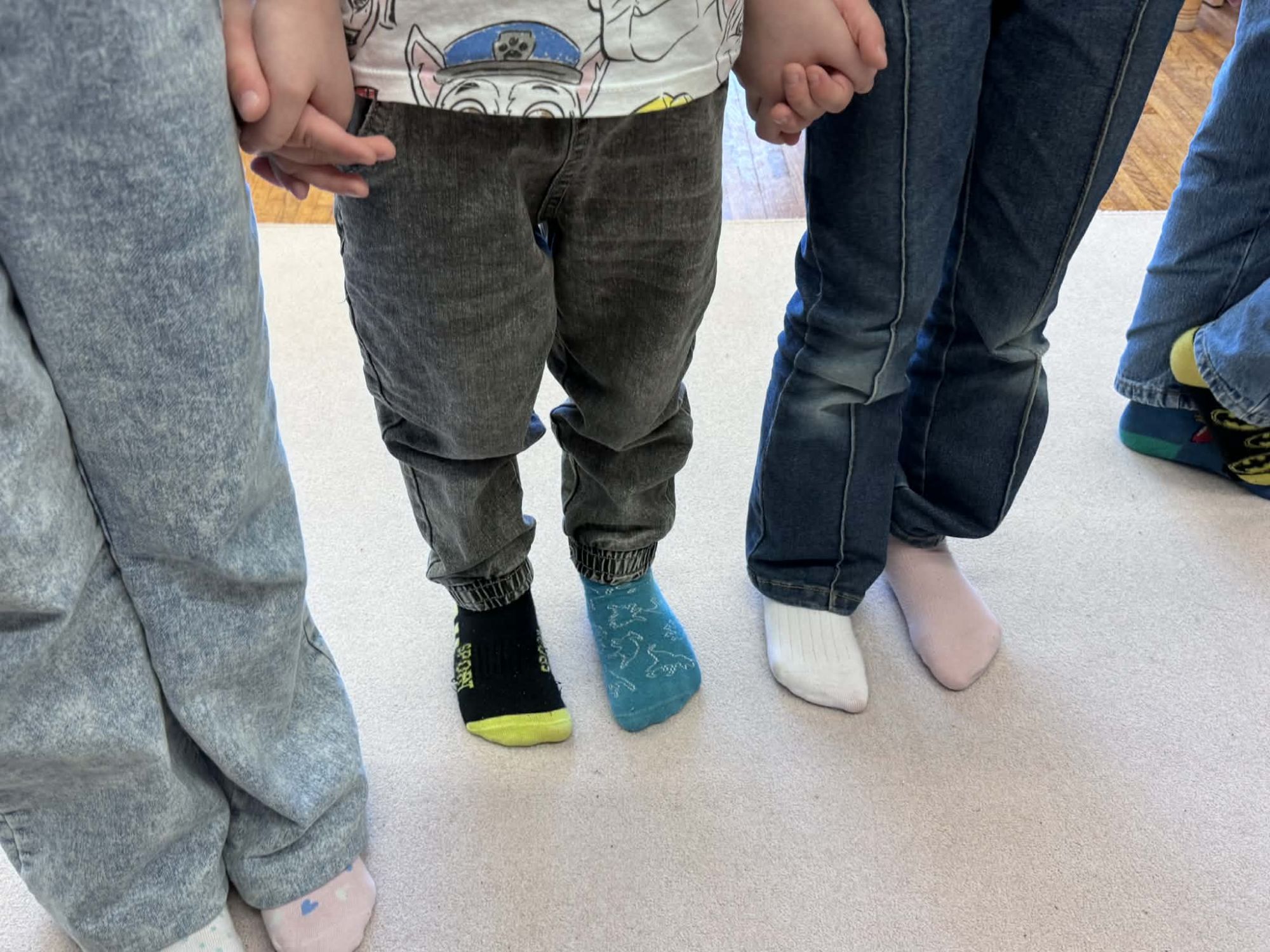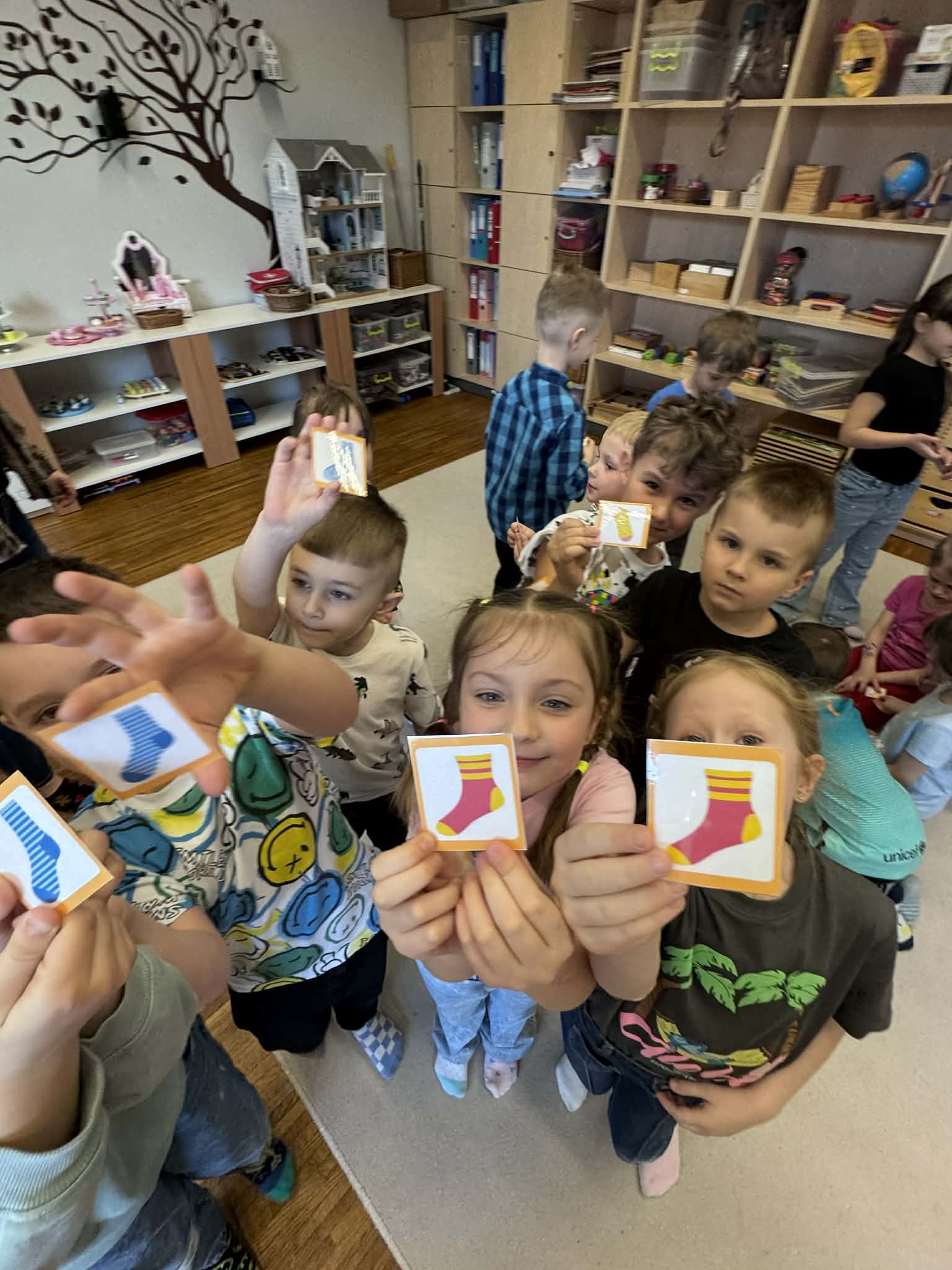 W naszej grupie z radością obchodziliśmy Dzień Kolorowej Skarpetki, który jest jednocześnie Dniem Świadomości o Zespole Downa. To wyjątkowe święto przypomina nam o akceptacji, różnorodności i szacunku dla innych.Tego dnia dzieci przyszły ubrane w dwie różne, kolorowe skarpetki, symbolizujące otwartość na drugiego człowieka i jego odmienność. Podczas zajęć rozmawialiśmy o tym, jak ważna jest empatia, pomaganie innym oraz dostrzeganie piękna w różnicach. Podkreślaliśmy również ważne przesłanie tego dnia – że miłość nie liczy chromosomów.Nie zabrakło także wspólnych zabaw, prac plastycznych i wesołych aktywności, które wywołały uśmiech na twarzach wszystkich przedszkolaków. To był dzień pełen radości, kolorów i ważnych wartości, które chcemy przekazywać naszym dzieciom każdego dnia.
