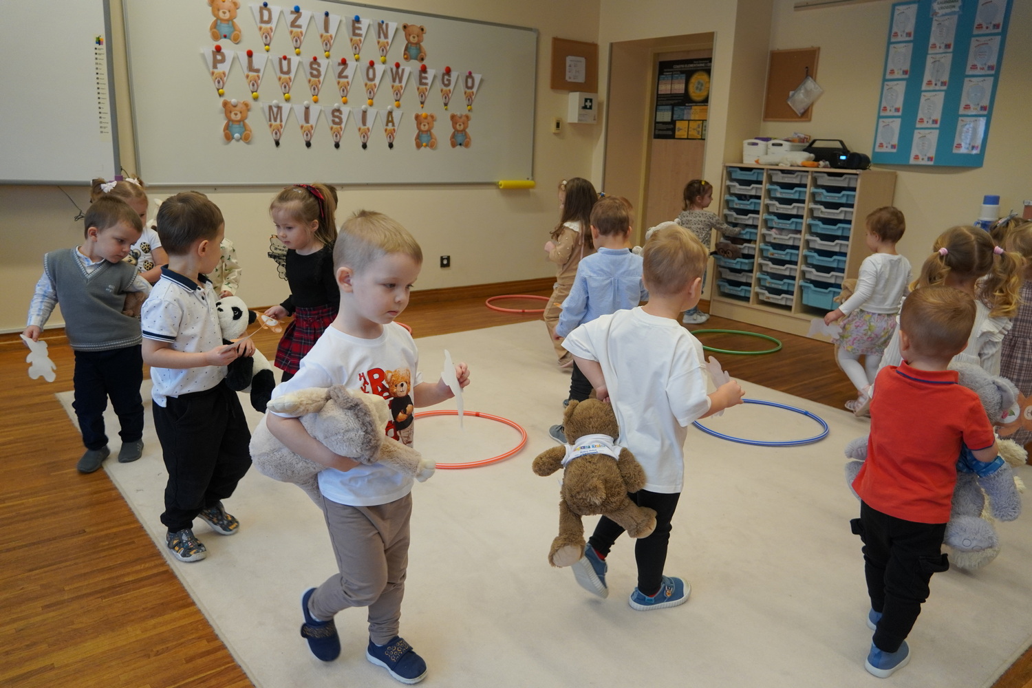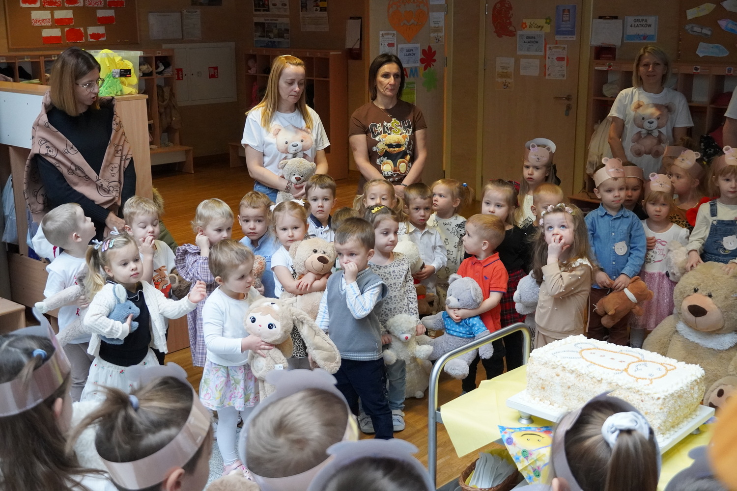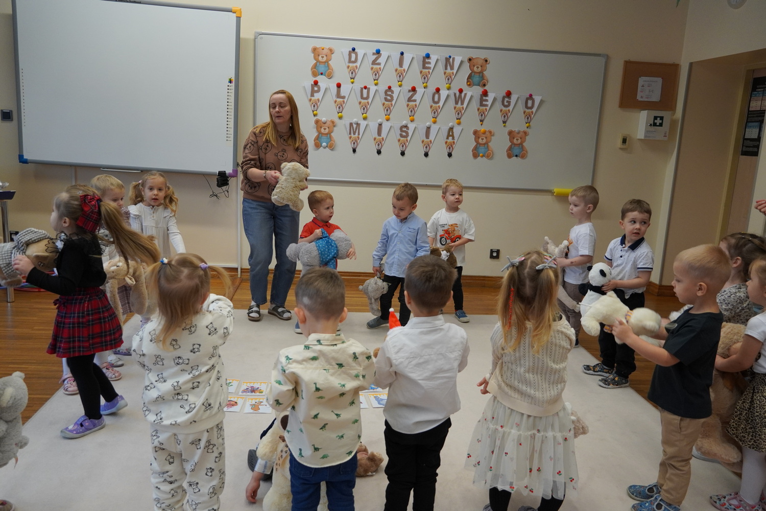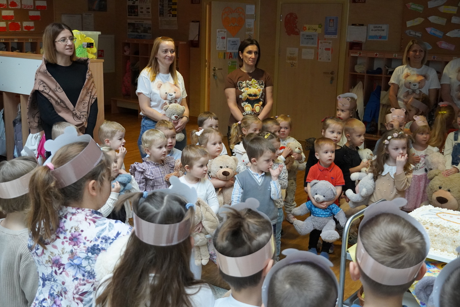 25 listopada maluszki przyniosły do przedszkola swojego ulubionego pluszowego przyjaciela, czyli misia. W tym dniu wszystkie zabawy i aktywności były związane z misiami. Dzieci poznały historię święta, bawiły się przy misiowych piosenkach, uczestniczyły w zabawach ruchowych i zręcznościowych. Przedszkolaki również wykonały przepiękną pracę plastyczną z misiem w roli głównej. Na zakończenie tego miłego na wszystkich czekał pyszny tort.