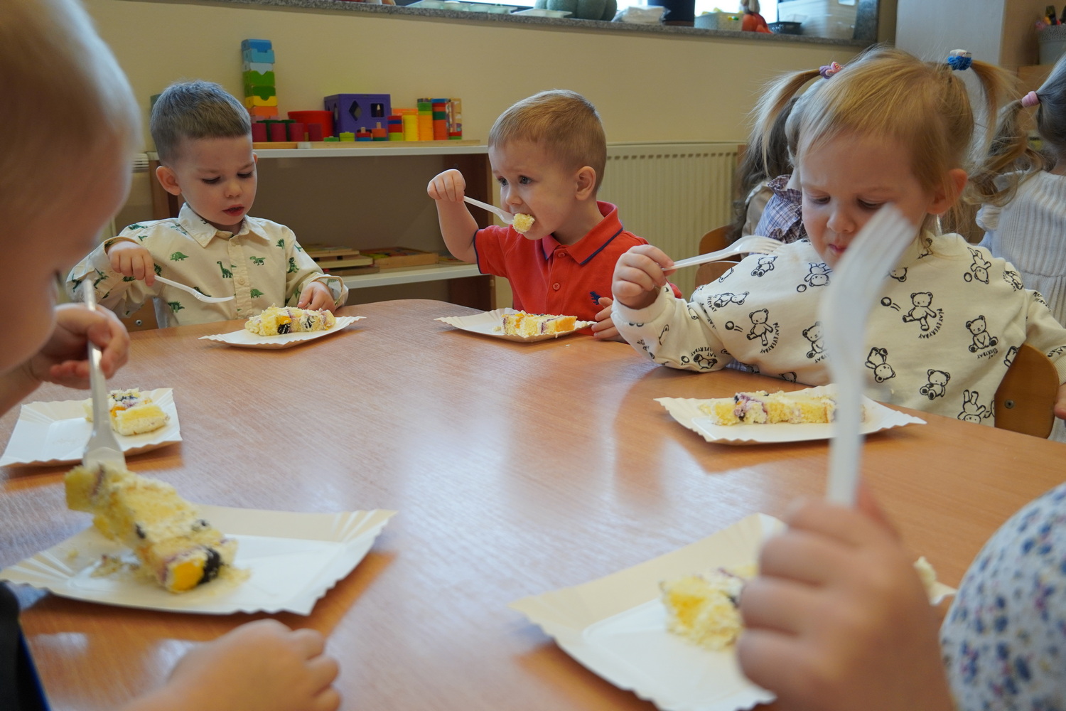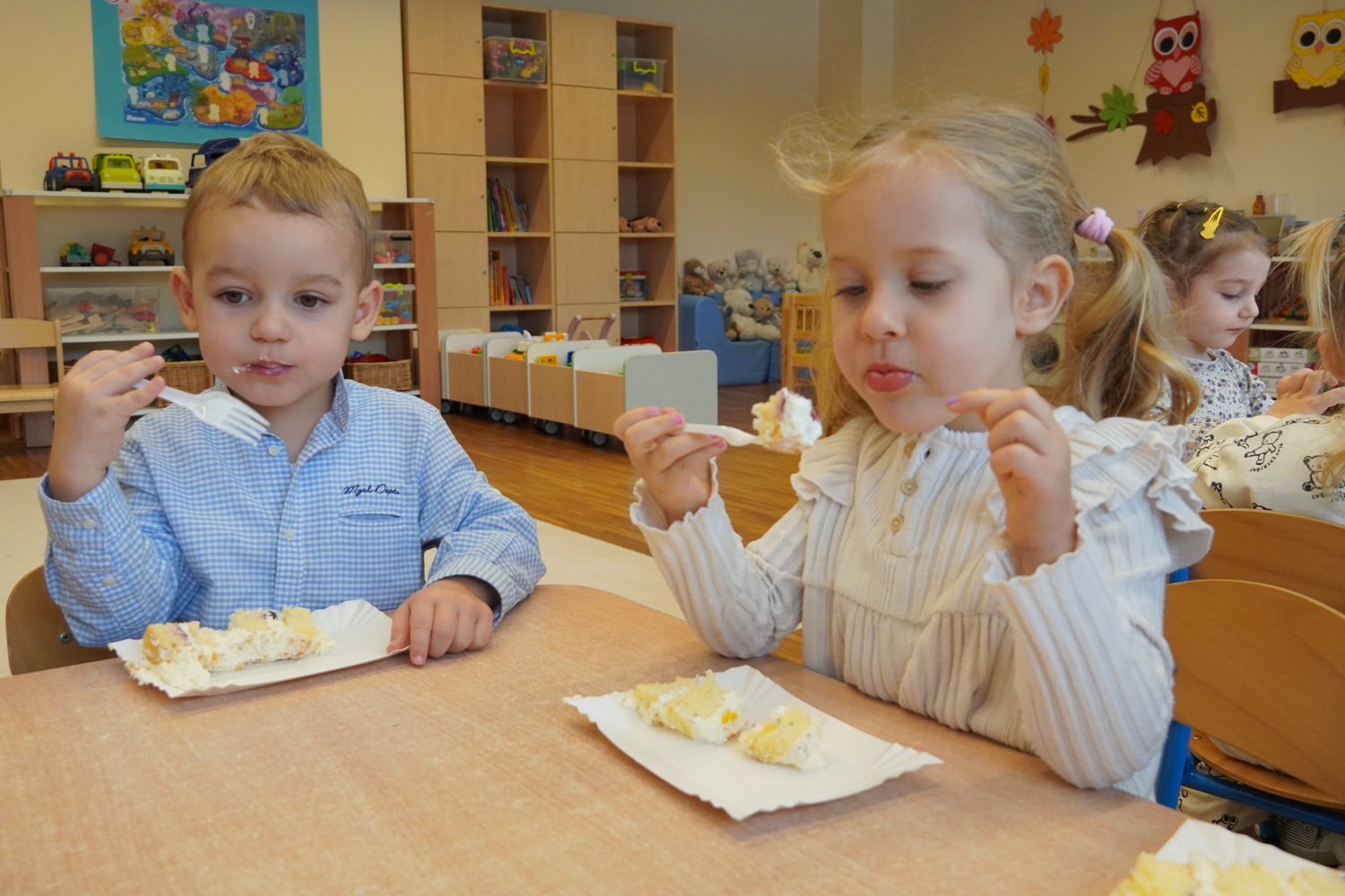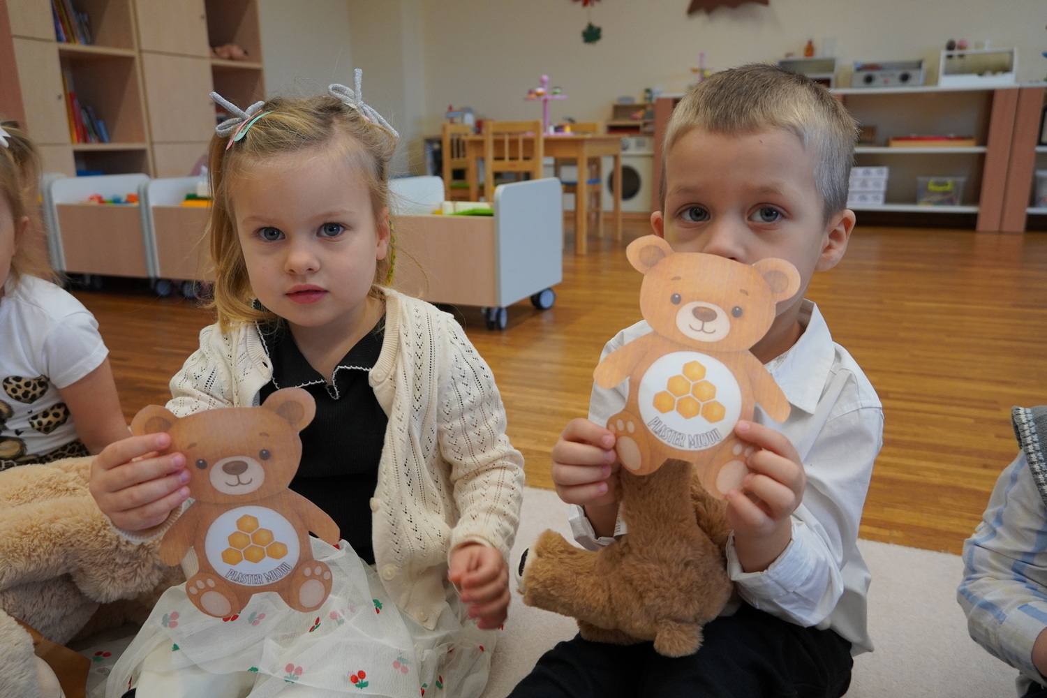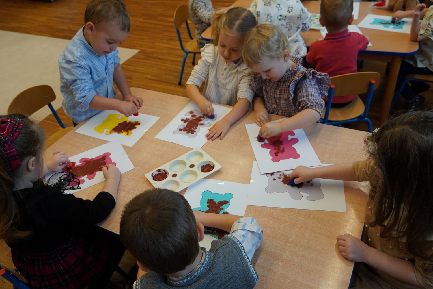 25 listopada maluszki przyniosły do przedszkola swojego ulubionego pluszowego przyjaciela, czyli misia. W tym dniu wszystkie zabawy i aktywności były związane z misiami. Dzieci poznały historię święta, bawiły się przy misiowych piosenkach, uczestniczyły w zabawach ruchowych i zręcznościowych. Przedszkolaki również wykonały przepiękną pracę plastyczną z misiem w roli głównej. Na zakończenie tego miłego na wszystkich czekał pyszny tort.