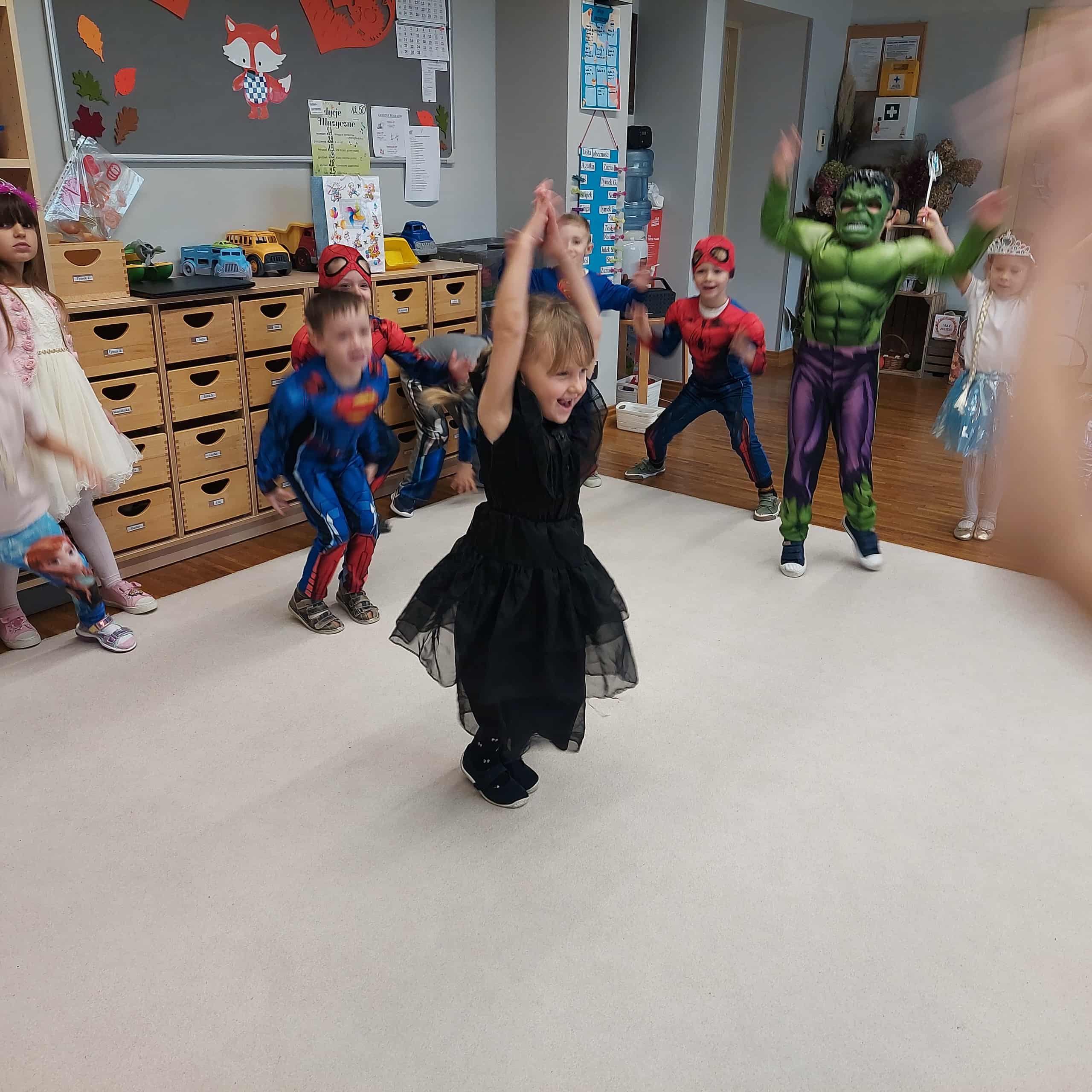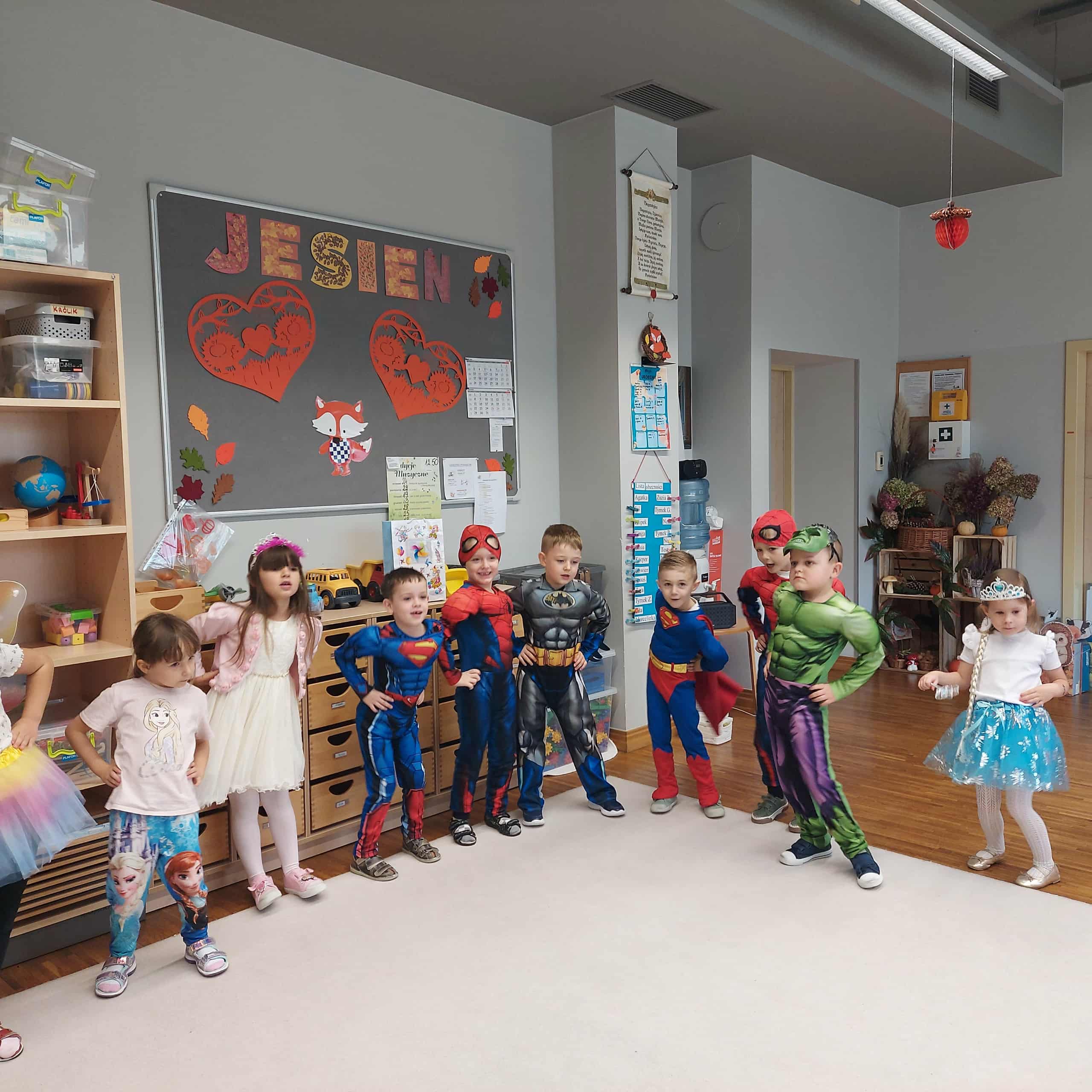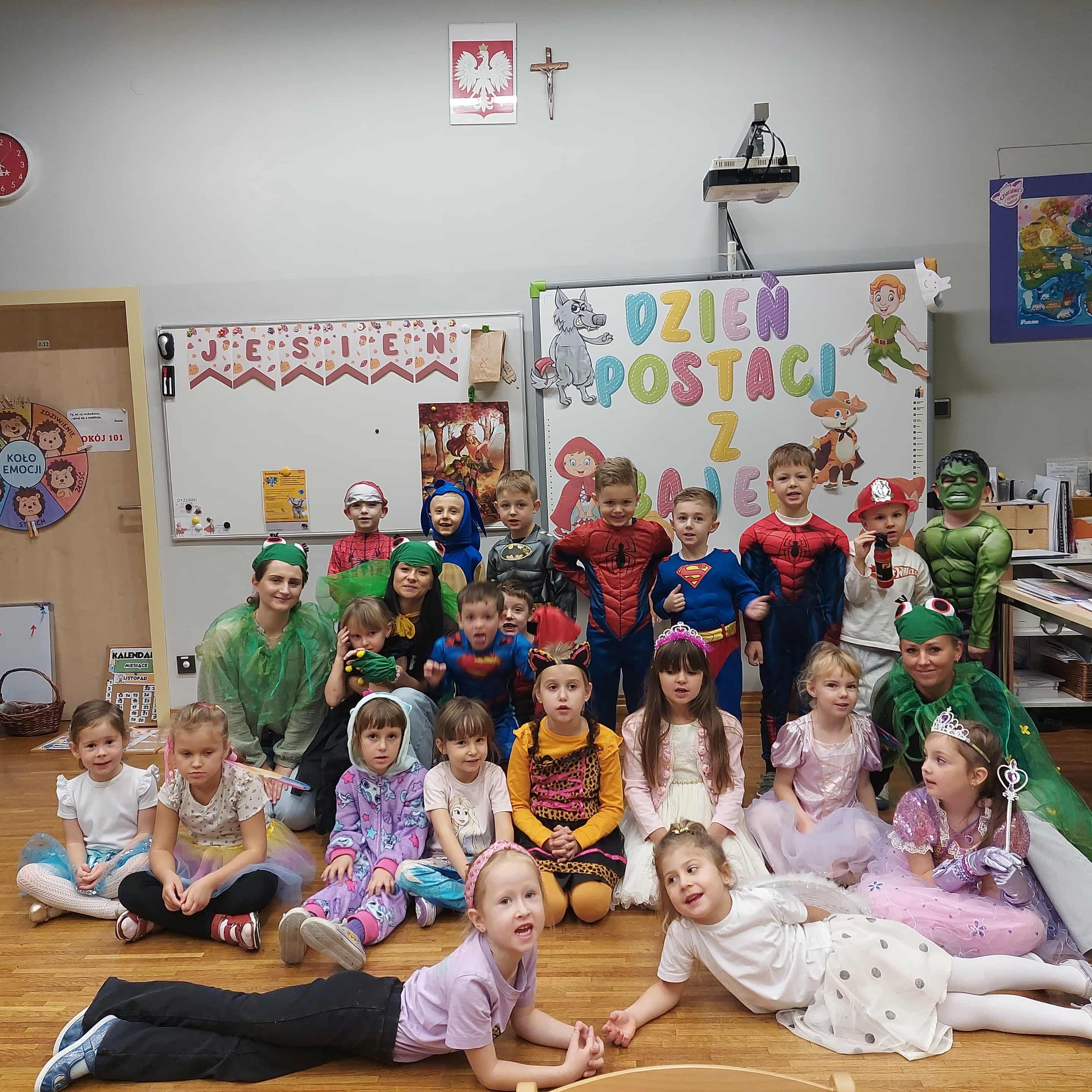 5 listopada w naszym przedszkolu obchodziliśmy wyjątkowe święto – Dzień Postaci z Bajek! To był magiczny dzień pełen uśmiechu, zabawy i wspomnień z ulubionych bajek. Dzieci przyszły ubrane w przepiękne stroje swoich bajkowych bohaterów – wśród nich pojawili się m.in. Superbohaterowie, Elsa, Księżniczki i wielu innych! Podczas zajęć przedszkolaki uczestniczyły w zabawach muzyczno-ruchowych, które wprowadziły wszystkich w radosny, bajkowy nastrój. Wspólnie rozwiązywaliśmy zagadki bajkowe, poznając (lub przypominając sobie) postacie z najpiękniejszych bajek. Nie zabrakło też chwili na historyjkę obrazkową, dzięki której dzieci ćwiczyły spostrzegawczość i opowiadały własne wersje znanych historii. Na zakończenie każdy mały artysta wykonał swoją magiczną różdżkę podczas zajęć plastycznych – powstały prawdziwe dzieła sztuki, które będą przypominać o tym radosnym dniu!