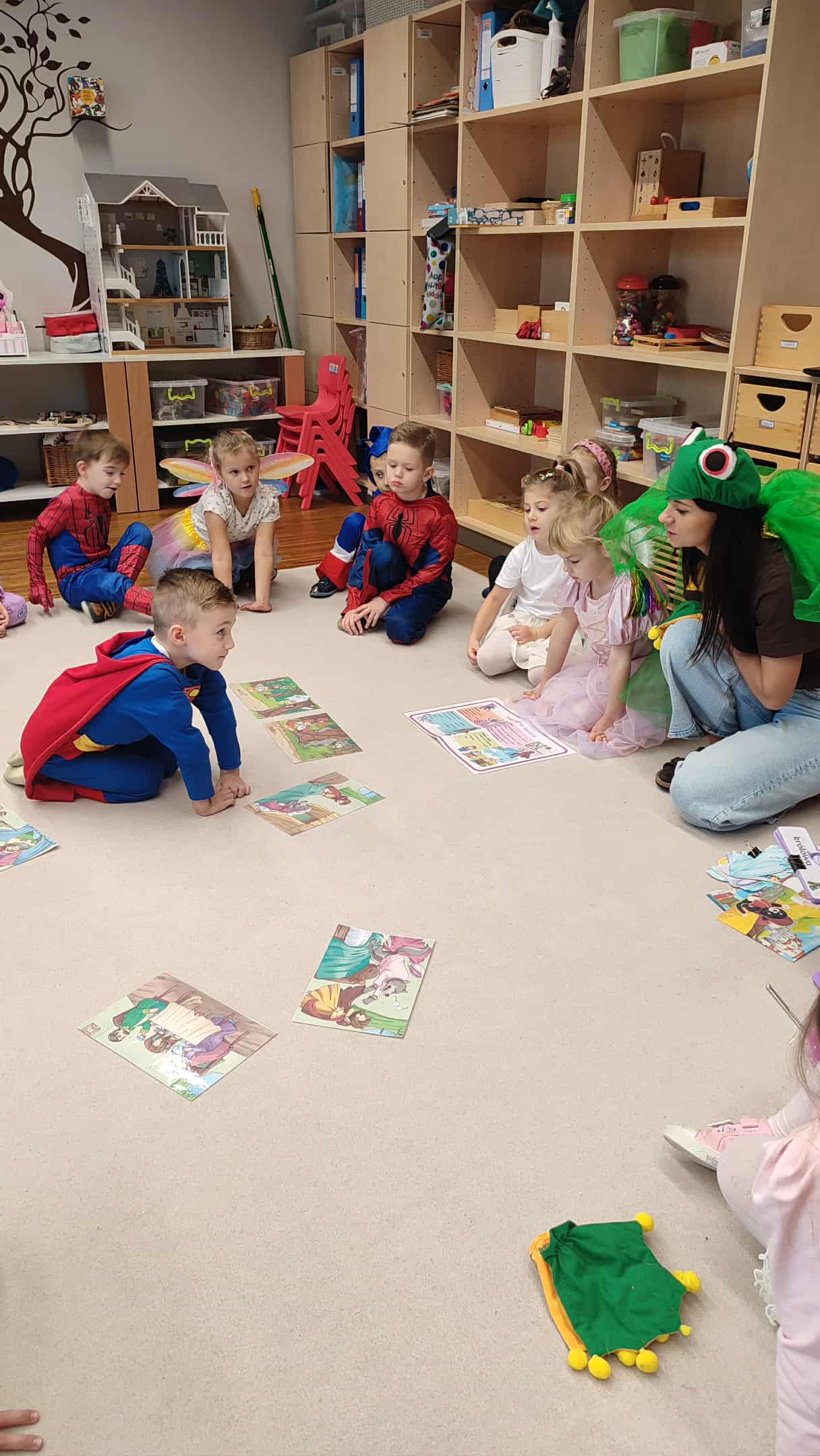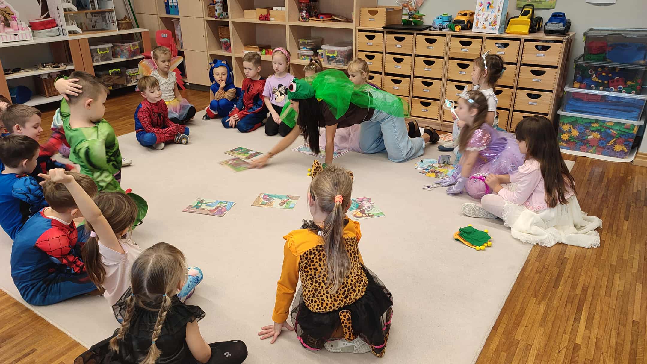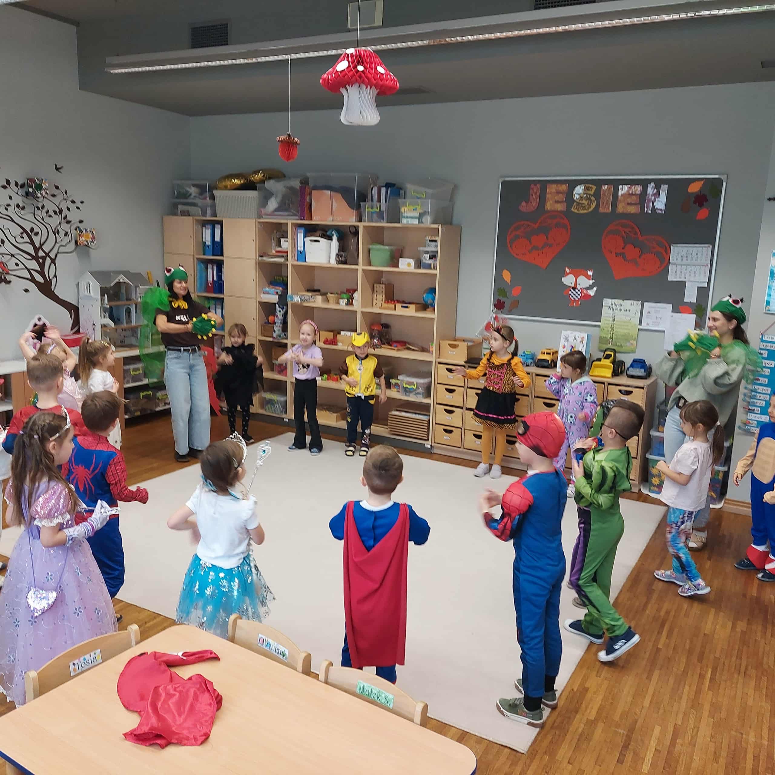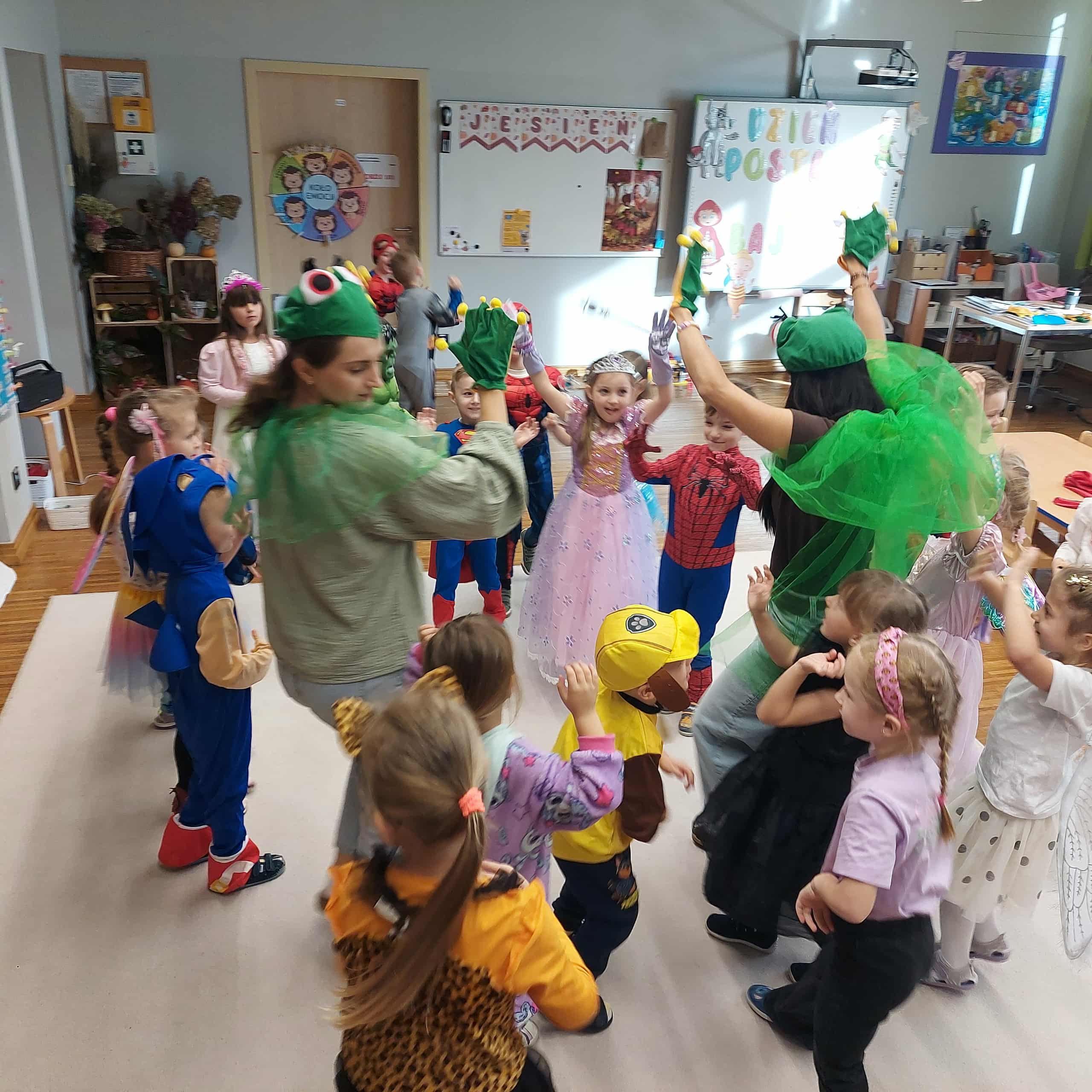 5 listopada w naszym przedszkolu obchodziliśmy wyjątkowe święto – Dzień Postaci z Bajek! To był magiczny dzień pełen uśmiechu, zabawy i wspomnień z ulubionych bajek. Dzieci przyszły ubrane w przepiękne stroje swoich bajkowych bohaterów – wśród nich pojawili się m.in. Superbohaterowie, Elsa, Księżniczki i wielu innych! Podczas zajęć przedszkolaki uczestniczyły w zabawach muzyczno-ruchowych, które wprowadziły wszystkich w radosny, bajkowy nastrój. Wspólnie rozwiązywaliśmy zagadki bajkowe, poznając (lub przypominając sobie) postacie z najpiękniejszych bajek. Nie zabrakło też chwili na historyjkę obrazkową, dzięki której dzieci ćwiczyły spostrzegawczość i opowiadały własne wersje znanych historii. Na zakończenie każdy mały artysta wykonał swoją magiczną różdżkę podczas zajęć plastycznych – powstały prawdziwe dzieła sztuki, które będą przypominać o tym radosnym dniu!