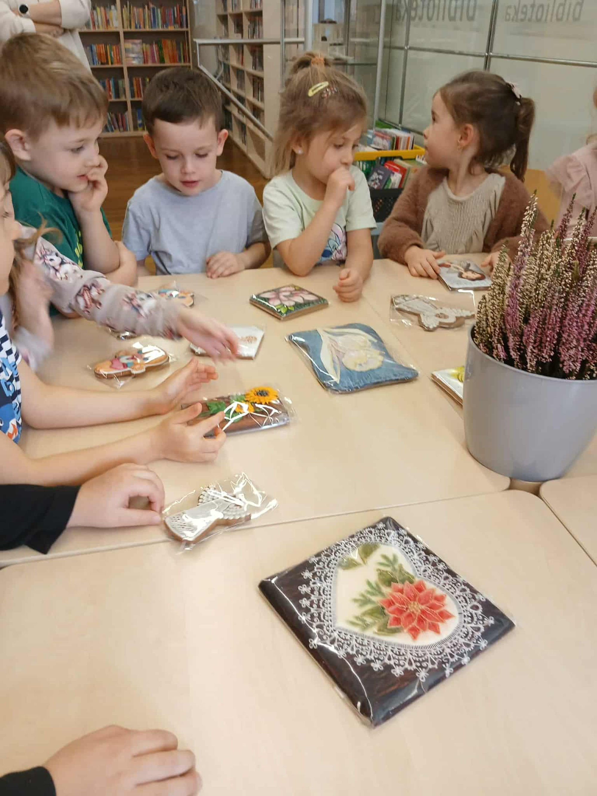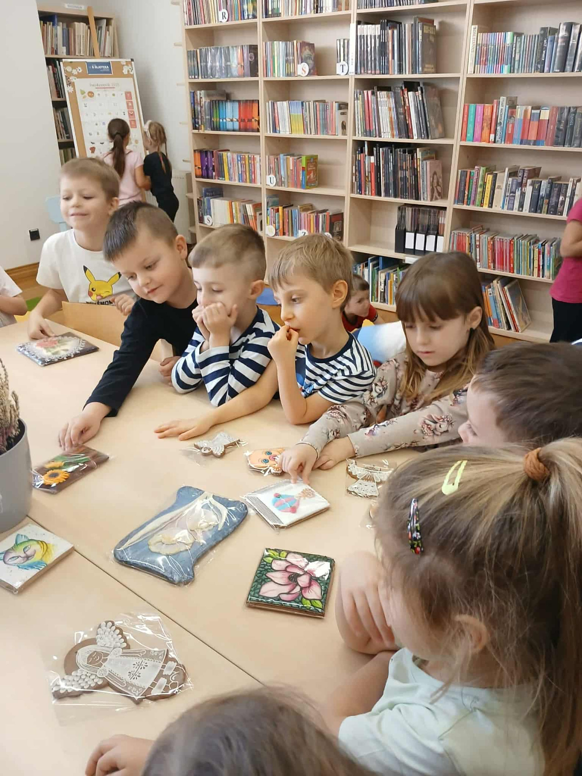 W poniedziałek 20 października dzieci z grupy 5-latków wybrały się do Gminnej Biblioteki, by obejrzeć wystawę pięknych, pachnących pierników. Dzieci z zachwytem oglądały słodkie dzieła sztuki. Nie zabrakło też wspólnego czytania jesiennych opowieści, tym razem były to ,,Przygody Franklina". Dziękujemy za spotkanie i z pewnością jeszcze wrócimy.