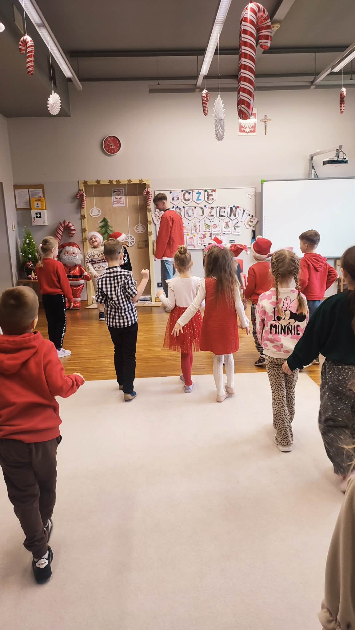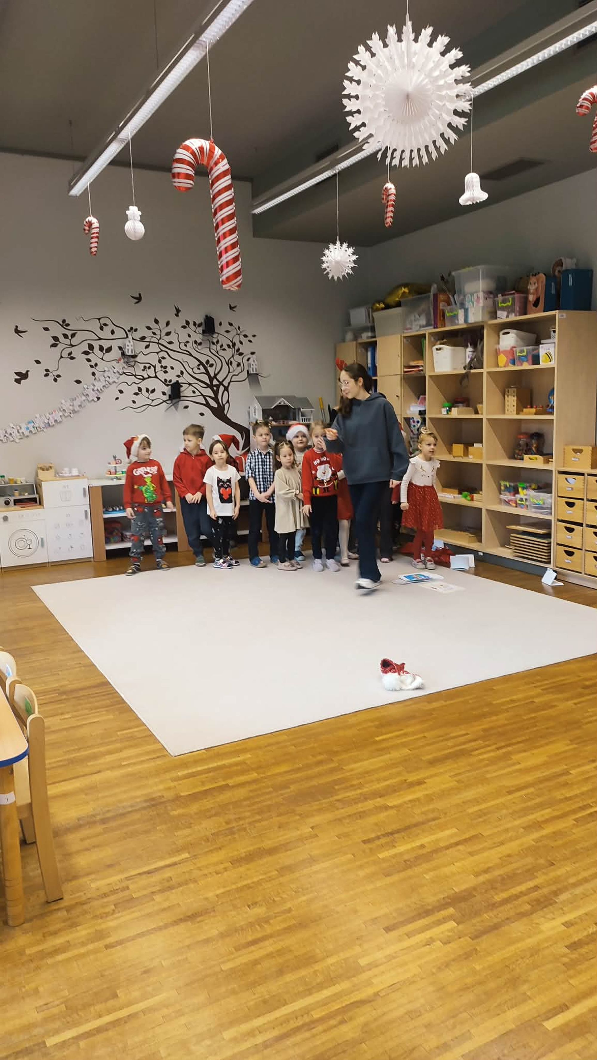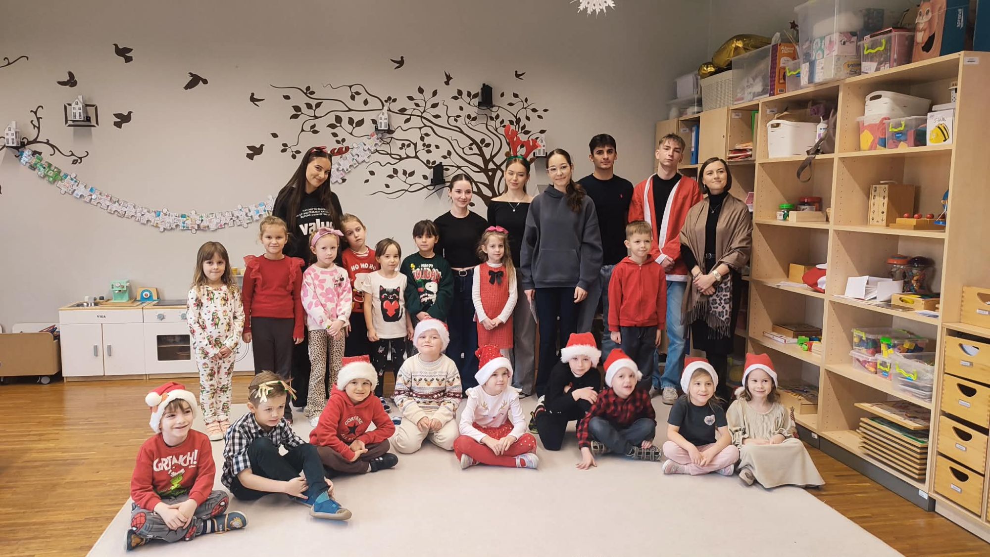 Dzisiaj naszą grupę odwiedzili licealiści z ZSP w Kleszczowie .Przyszli oni w ramach projektu ,,Licealista w przedszkolu ", którego zadaniem było przybliżenie dzieciom tematyki Świąt Bożego Narodzenia w języku angielskim . Dzieci bawiły się z licealistami w różne zabawy ,śpiewały piosenki i wzbogacały słownictwo w zakresie języka angielskiego .Dziękujemy za miłe spotkanie.