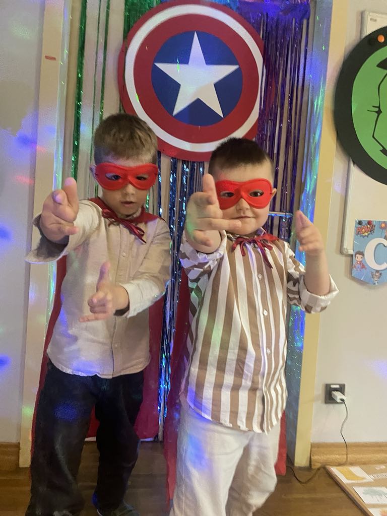 „Mali Superbohaterowie i ich wielkie serca” - w naszej grupie 5-latków obchodziliśmy Dzień Chłopaka w wyjątkowy sposób – jako część tygodnia budowania relacji pod hasłem „Mali superbohaterowie i ich wielkie serca”. To był dzień pełen uśmiechów, wzajemnego wsparcia i dobrej zabawy! Dzieci wzięły udział w integracyjnych grach i zabawach, w których liczyła się odwaga, przyjaźń i współpraca – czyli prawdziwe supermoce każdego z nas. Był „superbohaterski tor przeszkód”, wspólne tworzenie peleryny dobrych uczynków oraz gra memory, w której dzieci w parach szukały znanych duetów superbohaterów. Dziewczynki przygotowały dla chłopców miłe niespodzianki, a każdy chłopiec otrzymał pamiątkowy dyplom „Superchłopaka z wielkim sercem”. To był wyjątkowy dzień, który przypomniał nam, że każdy może być bohaterem – wystarczy mieć dobre serce i być życzliwym dla innych.