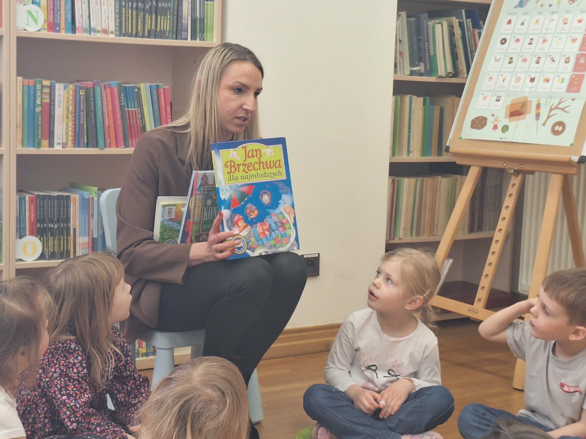 W ramach comiesięcznych spotkań Dyskusyjnego Klubu Książki oraz realizacji innowacji pedagogicznej, dzieci odwiedziły bibliotekę. Podczas spotkania zapoznały się z poezją dziecięcą znanych autorów, takich jak Julian Tuwim, Jan Brzechwa oraz Maria Konopnicka. Z okazji Dnia Poezji dzieci wysłuchały kilku wierszy przeczytanych przez Panią Olę.