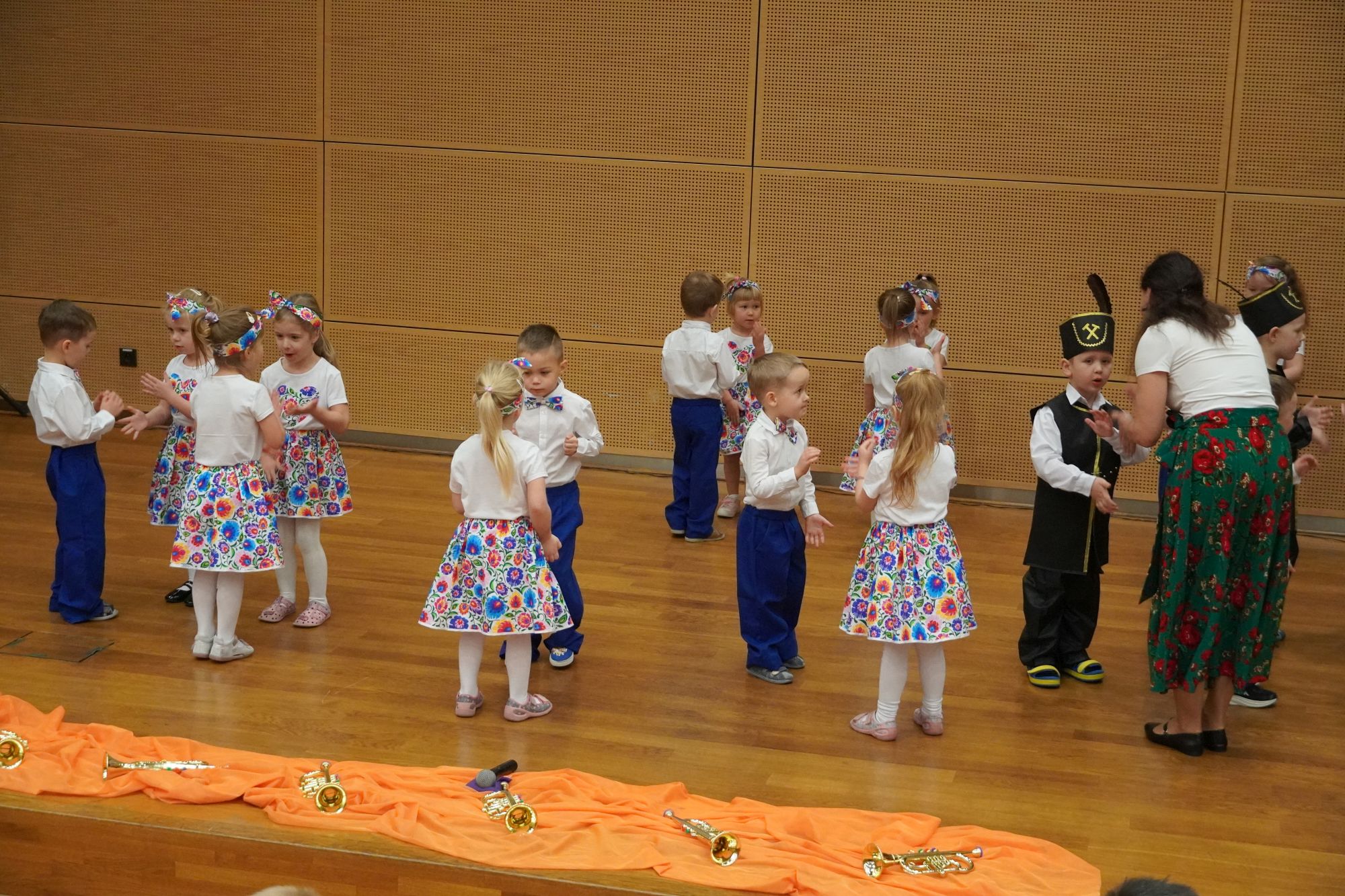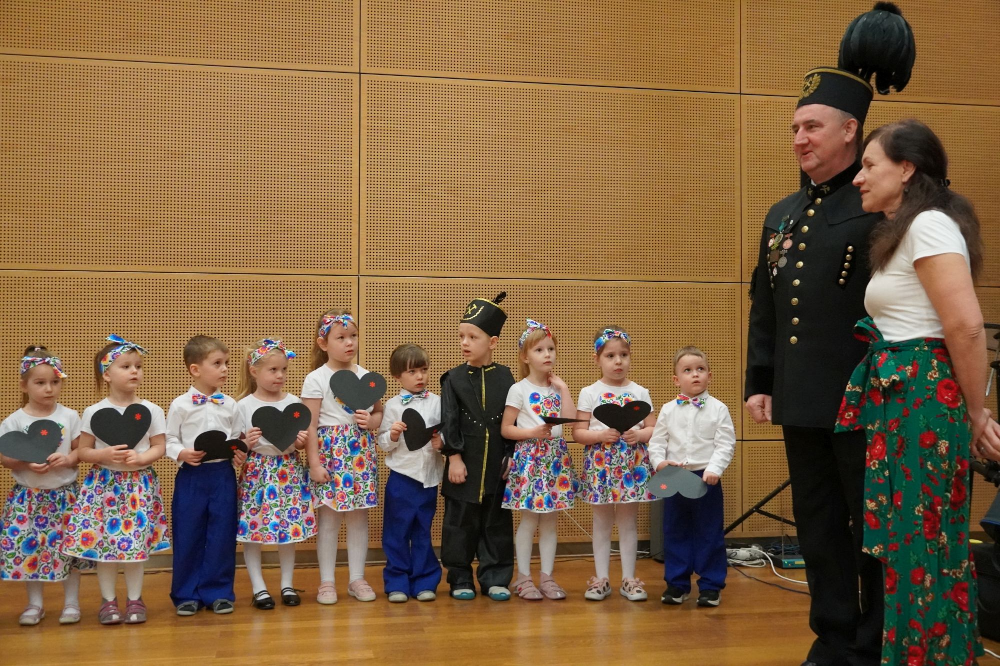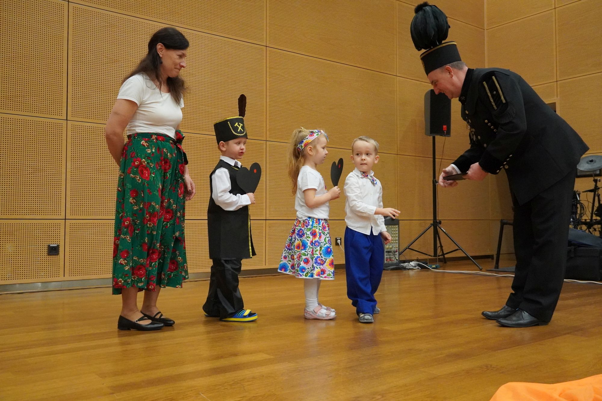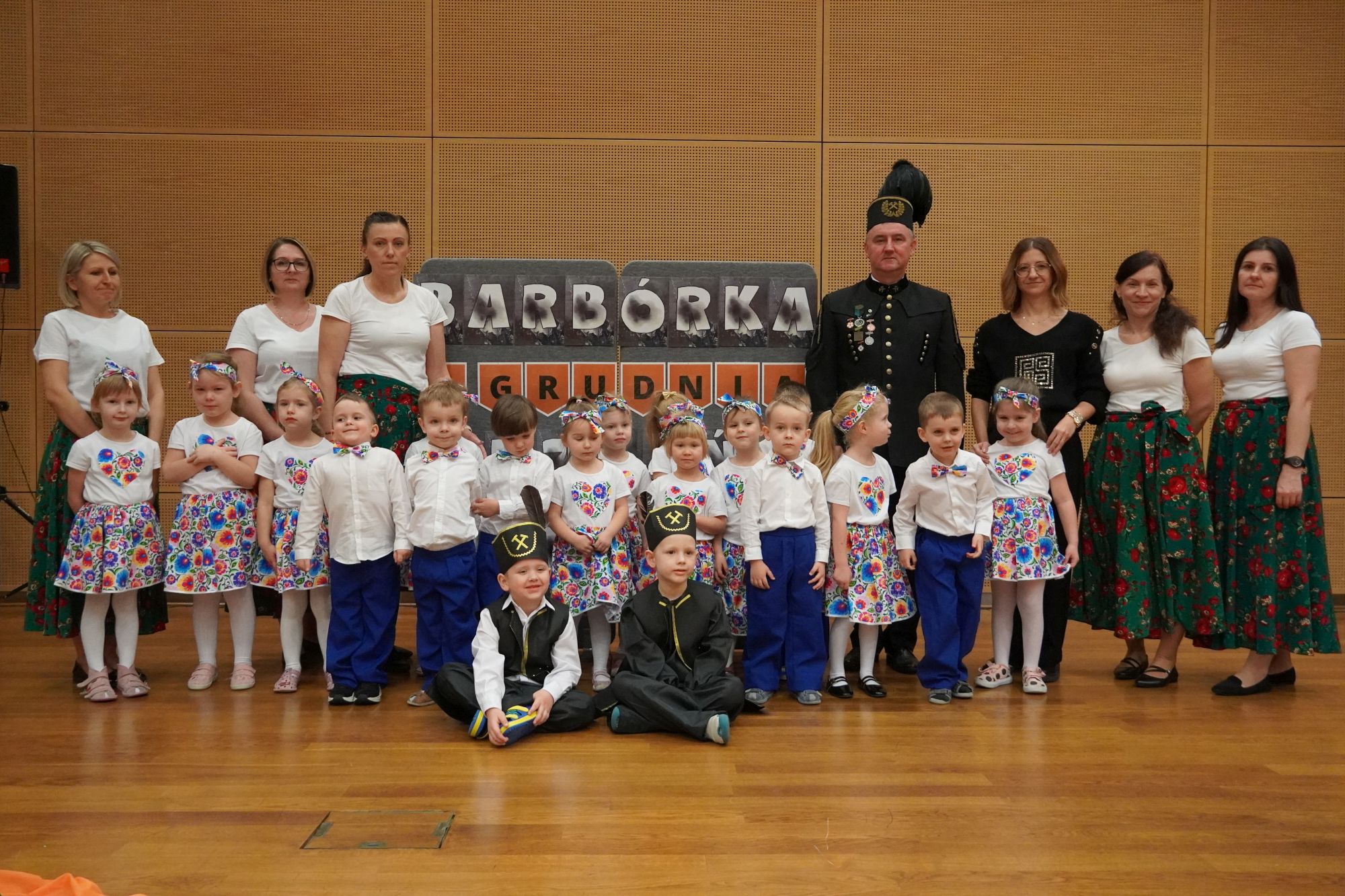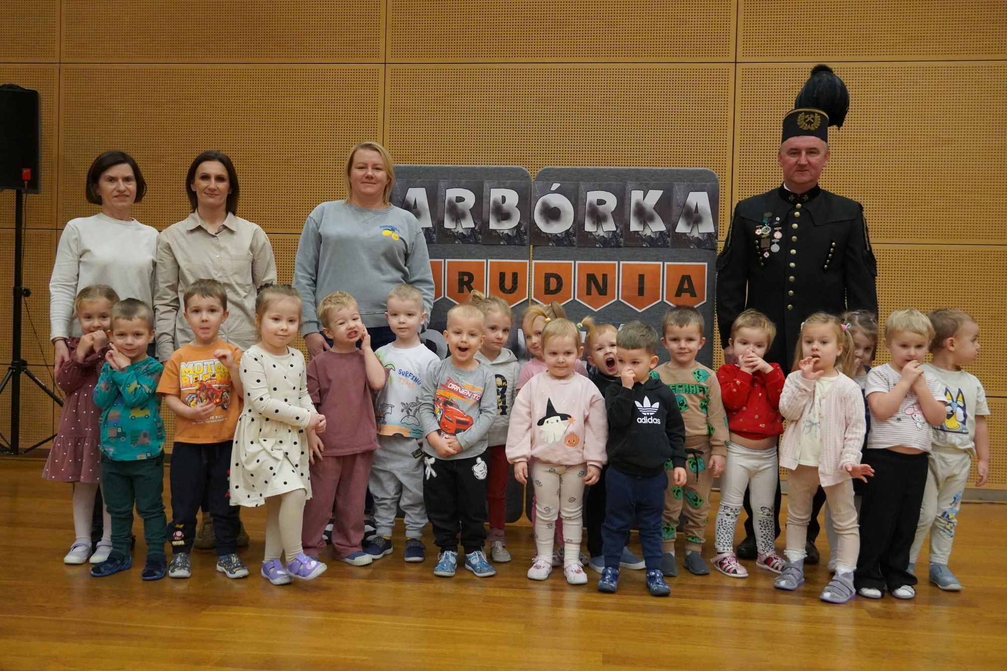 3 grudnia, na auli w Solparku, nasze przedszkole świętowało Dzień Górnika. Z tej okazji 4- latki wystąpiły w przygotowanych strojach: dziewczynki w pięknych strojach folkowych, a chłopcy w jednakowych spodniach i muszkach, co dodało uroczystości elegancji i wyjątkowego charakteru. Podczas spotkania gościliśmy szczególnego gościa — pana Arkadiusza Kowalczyka, górnika z KWB Bełchatów. Dzieci miały okazję zobaczyć mundur górniczy z bliska, dowiedzieć się, na czym polega praca górnika oraz wysłuchać ciekawych opowieści związanych z jego zawodem. Przedszkolaki zaprezentowały krótki występ składający się z piosenek i wierszyków, a całe wydarzenie było dla nich ciekawym i pouczającym doświadczeniem, przybliżającym tradycje górnicze i znaczenie tej pracy.