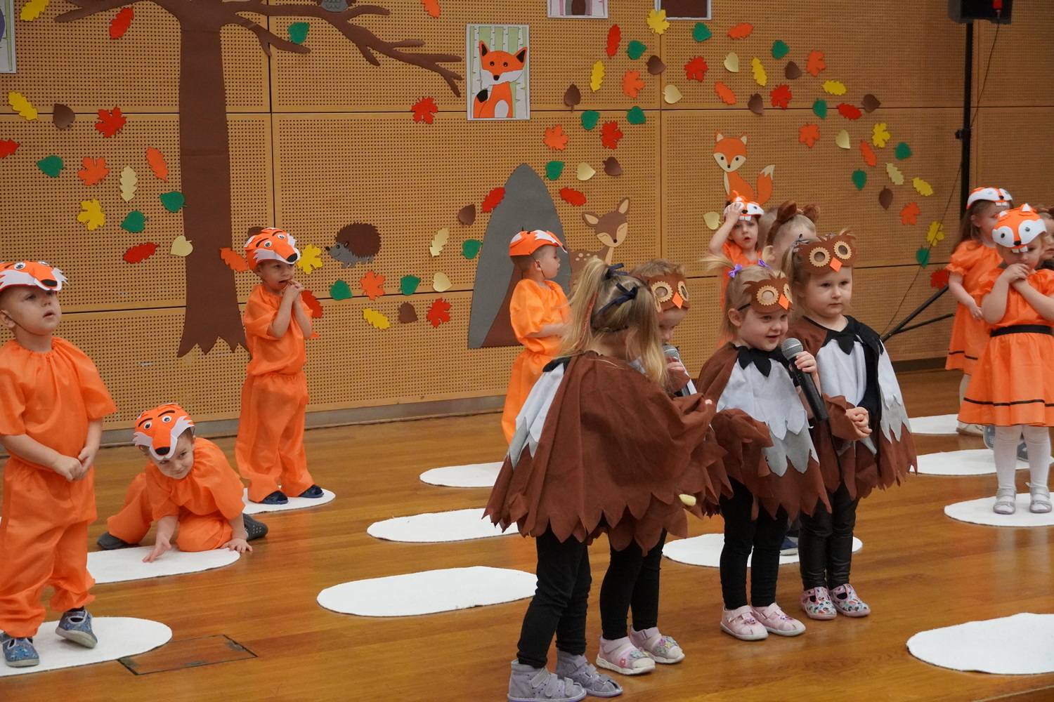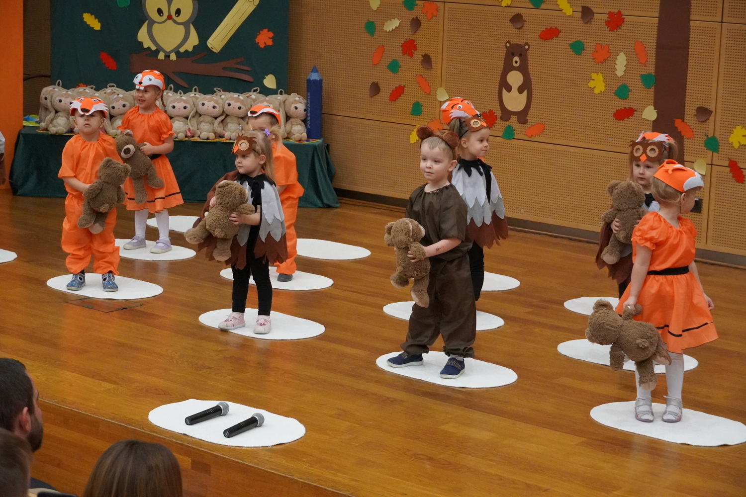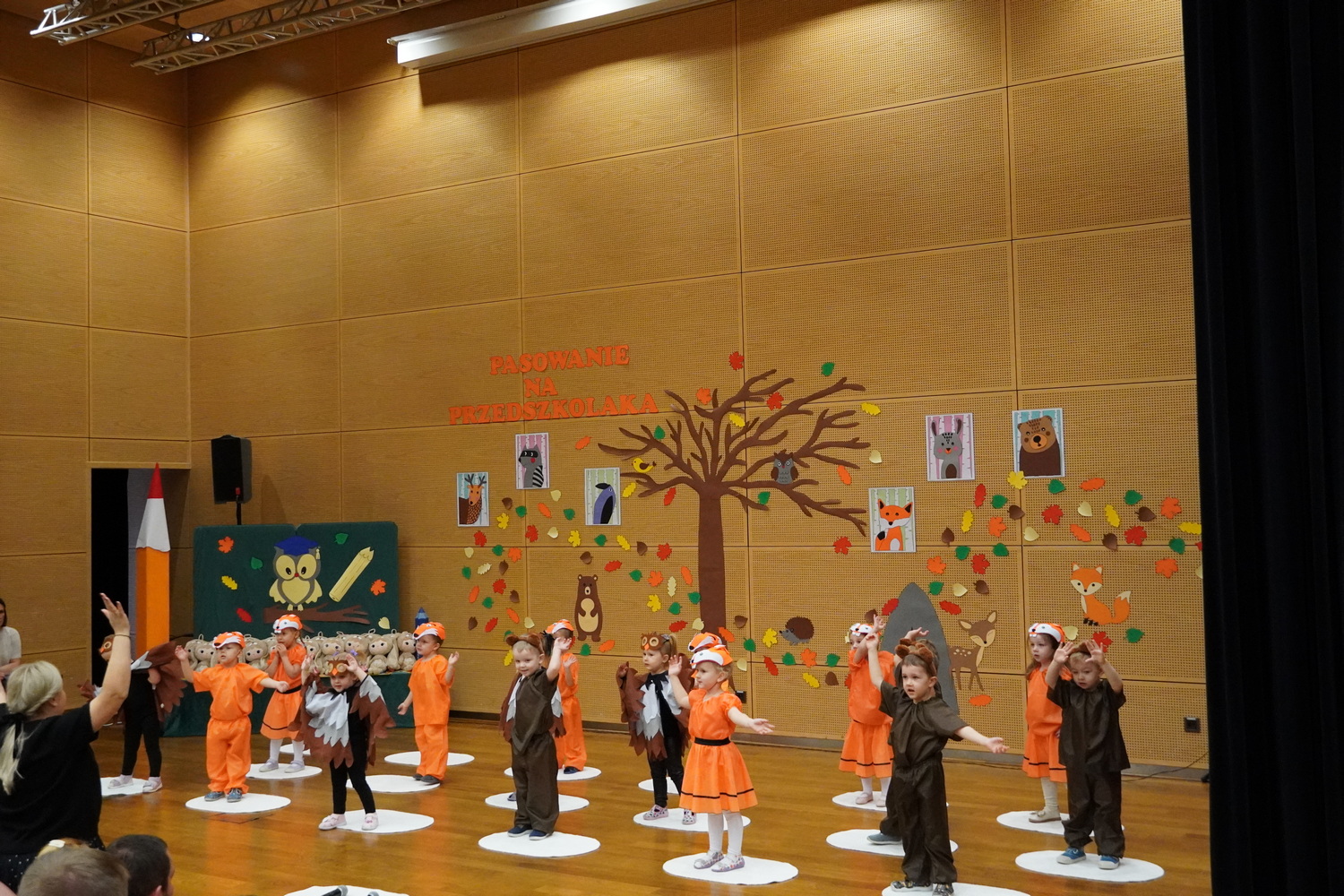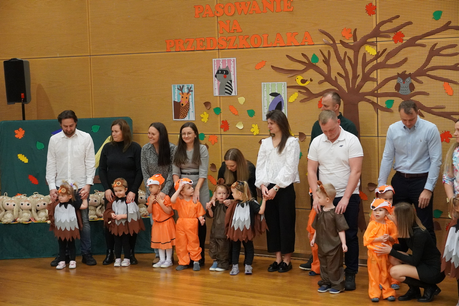 24 listopada odbyło się Pasowanie na Przedszkolaka, czyli uroczystość symbolizująca oficjalne przyjęcie dzieci do grona przedszkolaków. Trzylatki zaprezentowały swoje umiejętności śpiewając piosenki i recytując wierszyki poświęcone leśnej tematyce. Był to ich pierwszy publiczny występ i trzeba przyznać, że spisały się na medal. Po części artystycznej, pani dyrektor przy użyciu dużej kredki, symbolicznie dotknęła ramienia każdego dziecka. I tak oto wszystkie dzieci zostały włączone do grona przedszkolaków. Na zakończenie maluchy otrzymały dyplomy, maskotki i rożki ze słodyczami. W wydarzeniu wziął udział również Wójt Gminy, Dariusz Michałek, składając gratulacje małym przedszkolakom i ich wychowawcom. Uroczystość zakończyła się poczęstunkiem dla dzieci i rodziców.