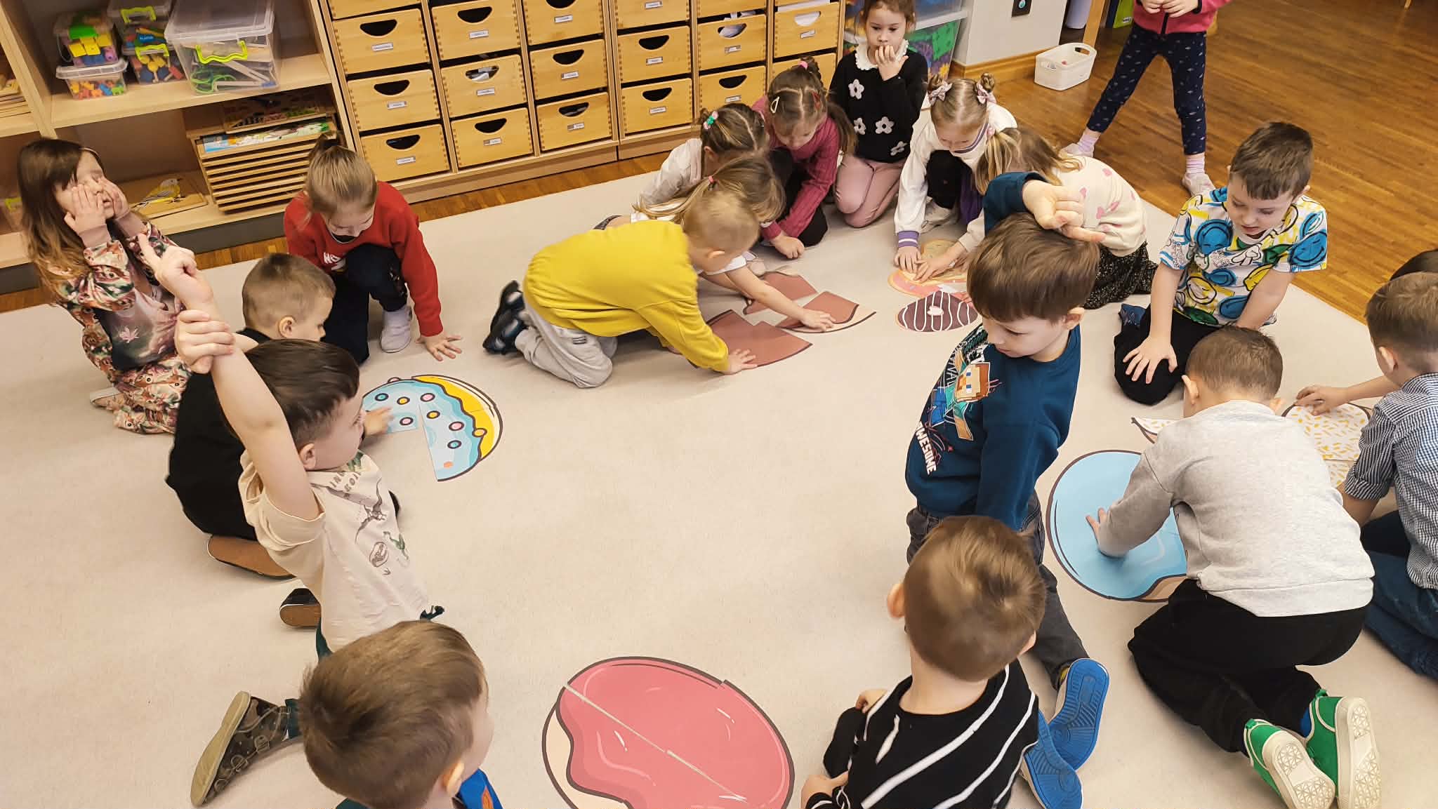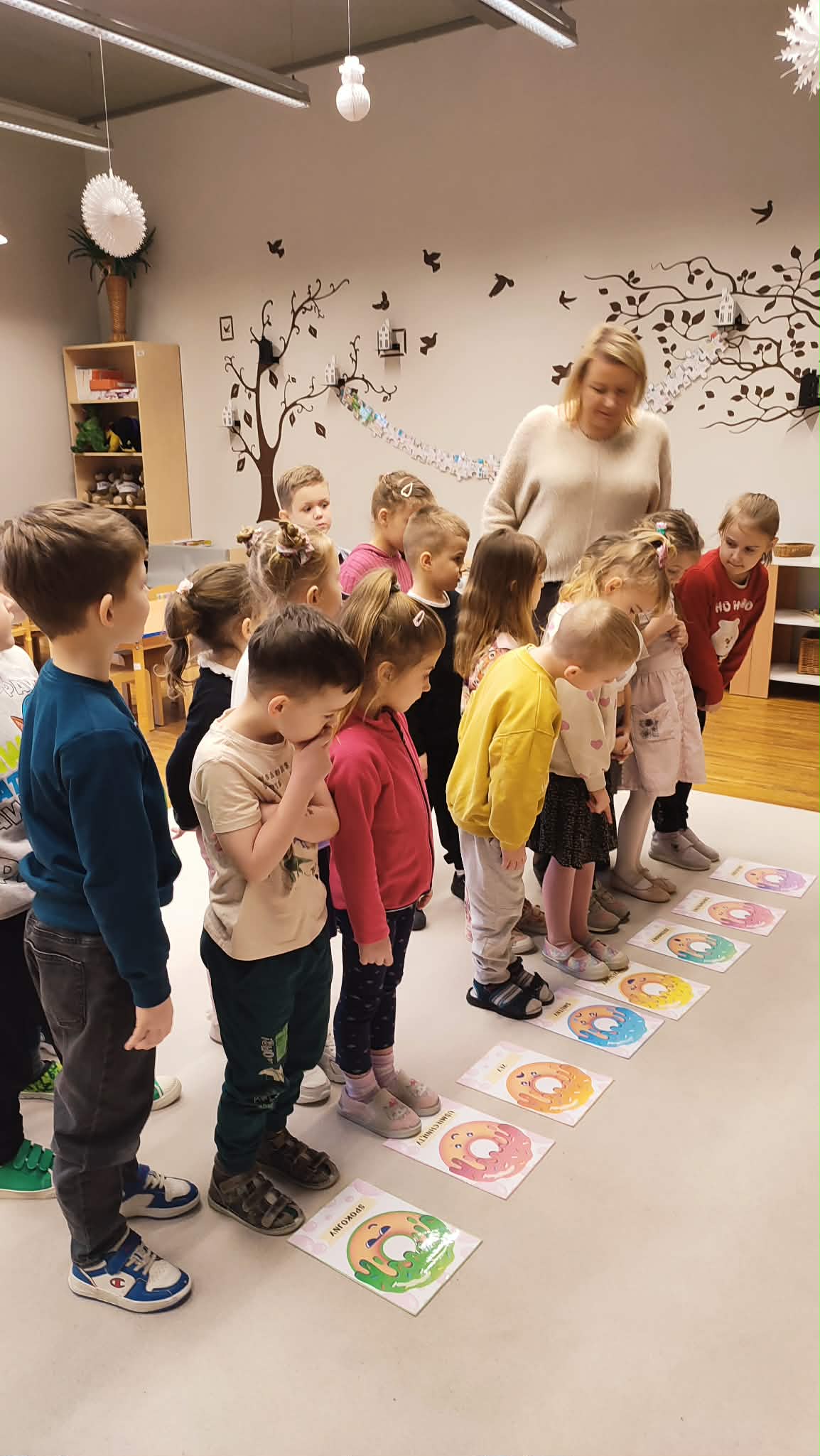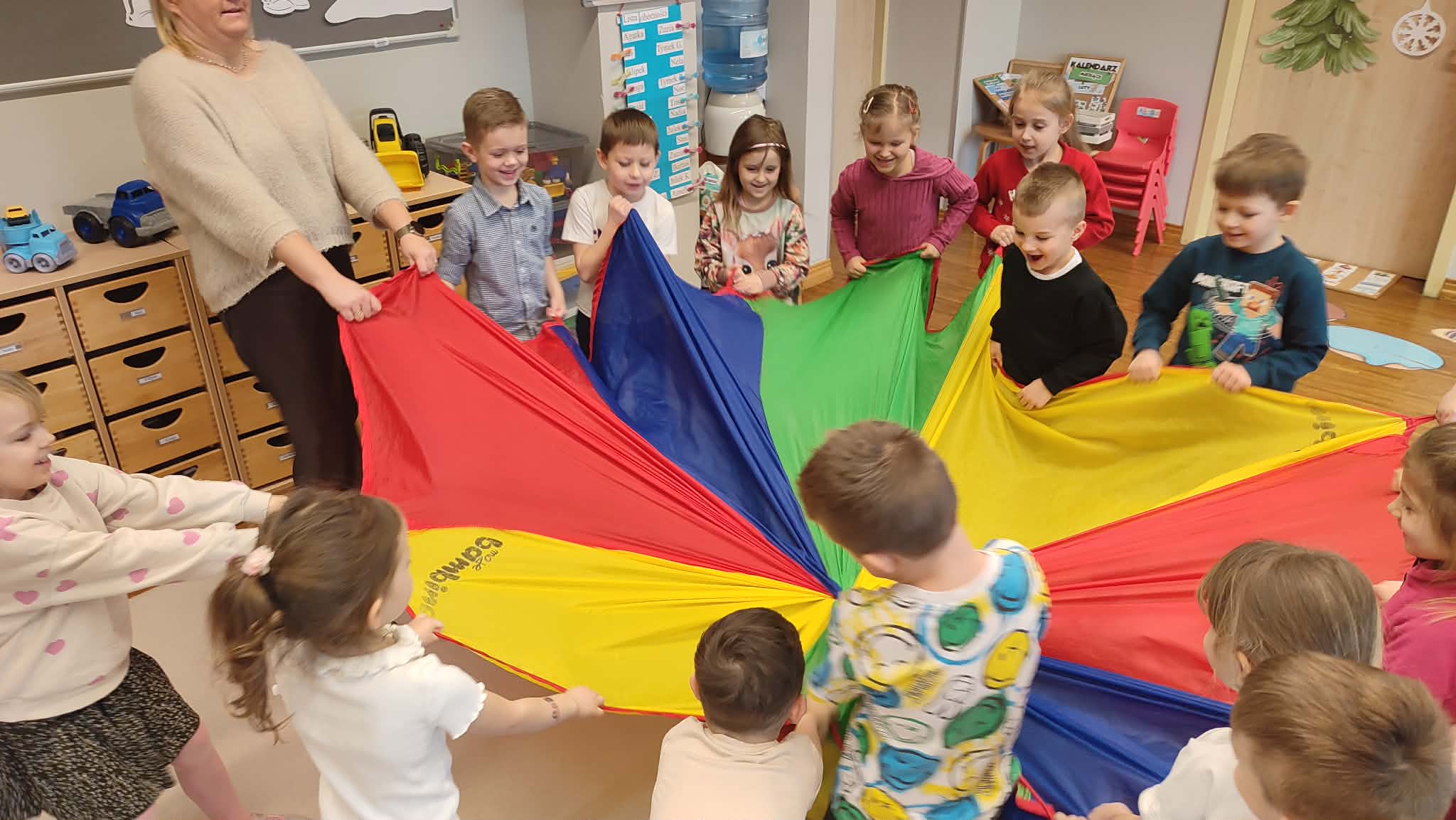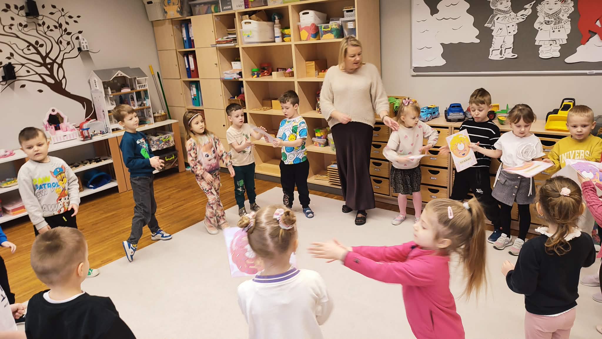 Tłusty Czwartek w naszym przedszkolu był dniem pełnym słodkich tradycji i radosnej atmosfery. Dzieci uczestniczyły w zajęciach poświęconych temu wyjątkowemu dniu, podczas których poznały historię oraz zwyczaje związane z pieczeniem i jedzeniem pączków. Przedszkolaki dowiedziały się, jakie są różne rodzaje pączków oraz jakie nadzienia mogą kryć się w ich wnętrzu. Poznały także przepis na tradycyjne pączki i kolejne etapy ich przygotowania. Nie zabrakło również wesołych zabaw z wykorzystaniem pączków oraz aktywności ruchowych z chustą animacyjną, które sprawiły dzieciom wiele radości. To był dzień pełen uśmiechu, nauki i wspólnego świętowania polskich tradycji.