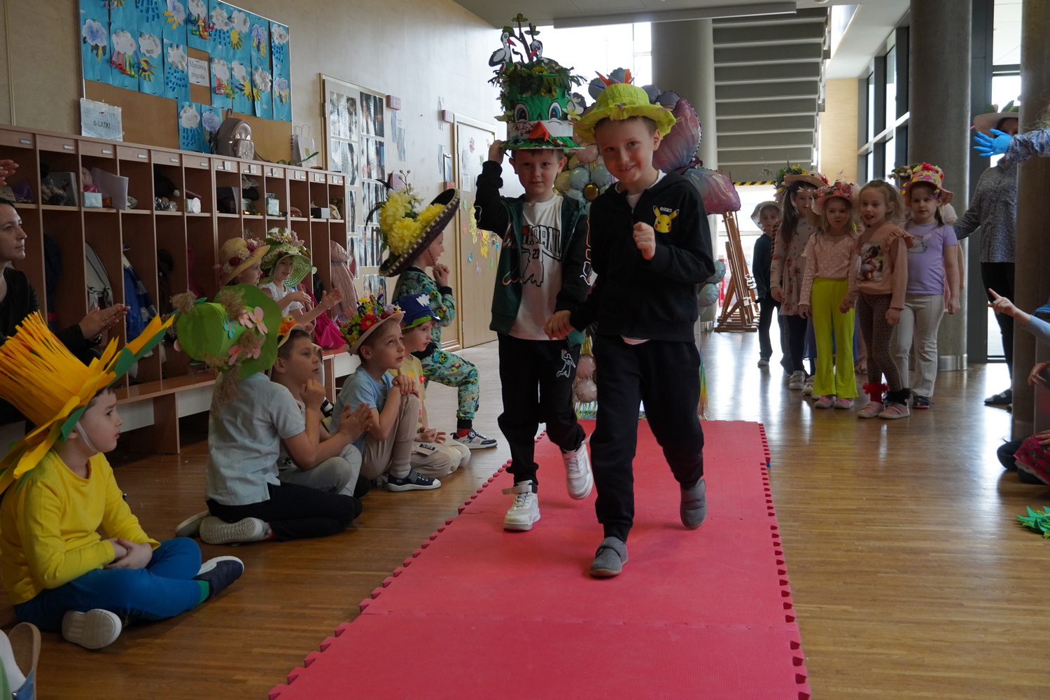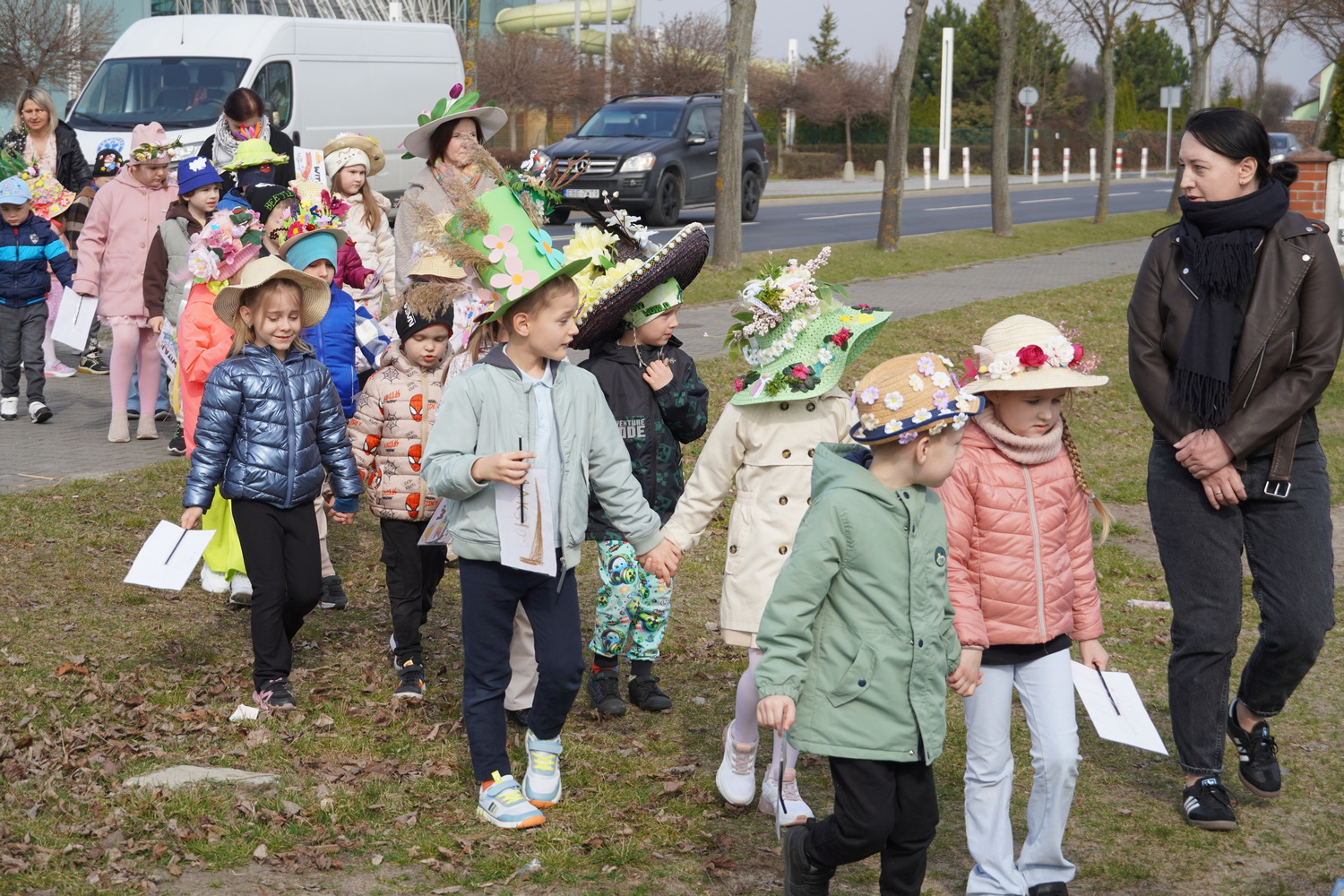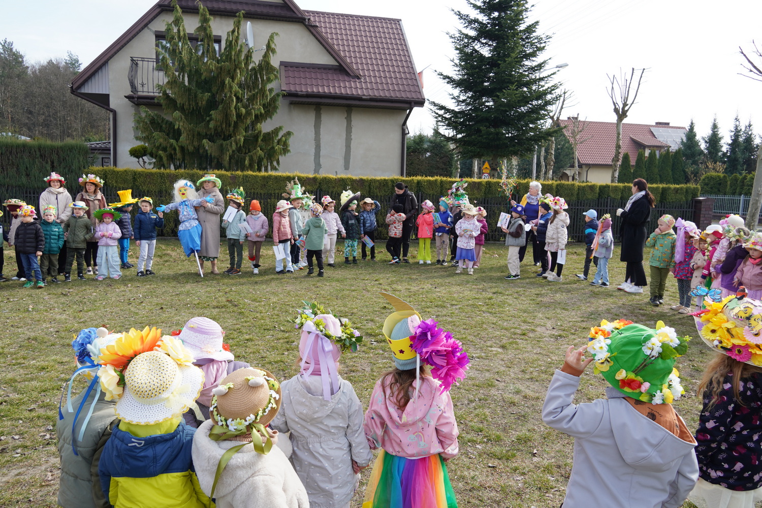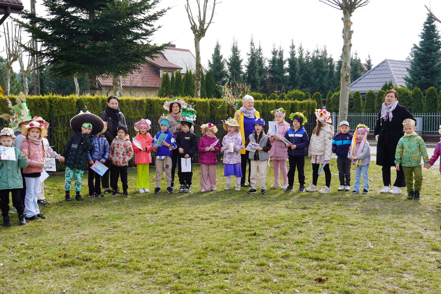 20 marca w naszym przedszkolu odbyło się radosne wydarzenie, podczas którego dzieci żegnały zimę i witały wiosnę. Były wspólne zabawy, śpiewanie piosenek o wiośnie oraz tańce. Ważnym punktem tego spotkania była „Wiosenna parada kapeluszy Bonnet Hat”, podczas której dzieci zaprezentowały swoje piękne nakrycia głowy. Po zabawach w budynku dzieci niosąc Marzannę przeszły ulicami Kleszczowa, aby symbolicznie pożegnać zimę. Zimową kukłę zostawiły pani Danusi, a wróciły do swoich sal z gaikiem-symbolem wiosny.