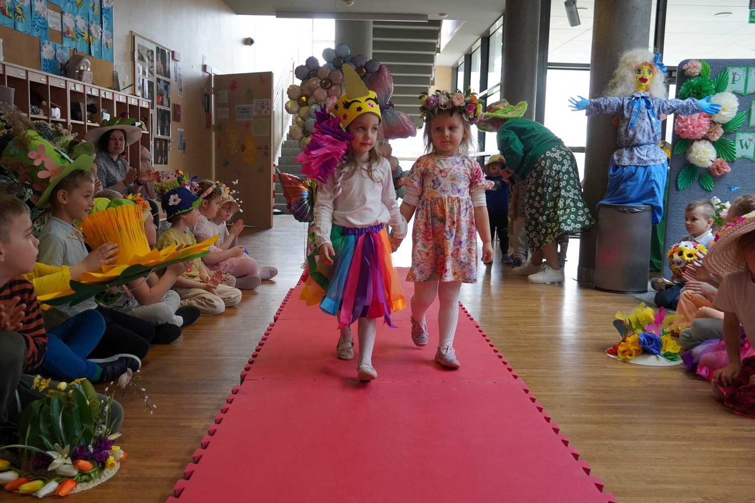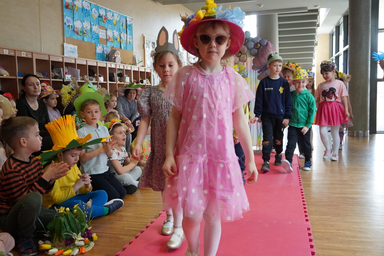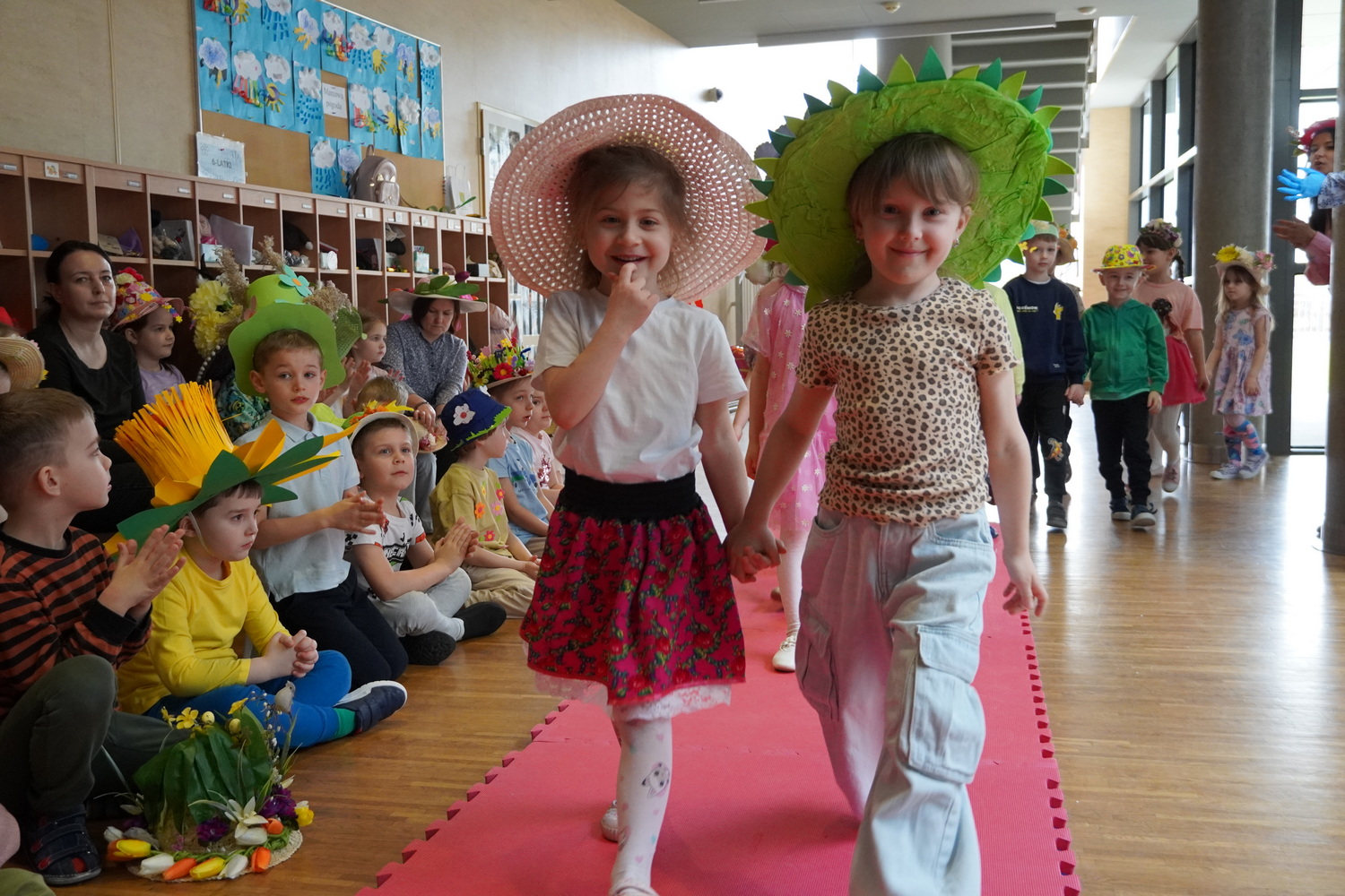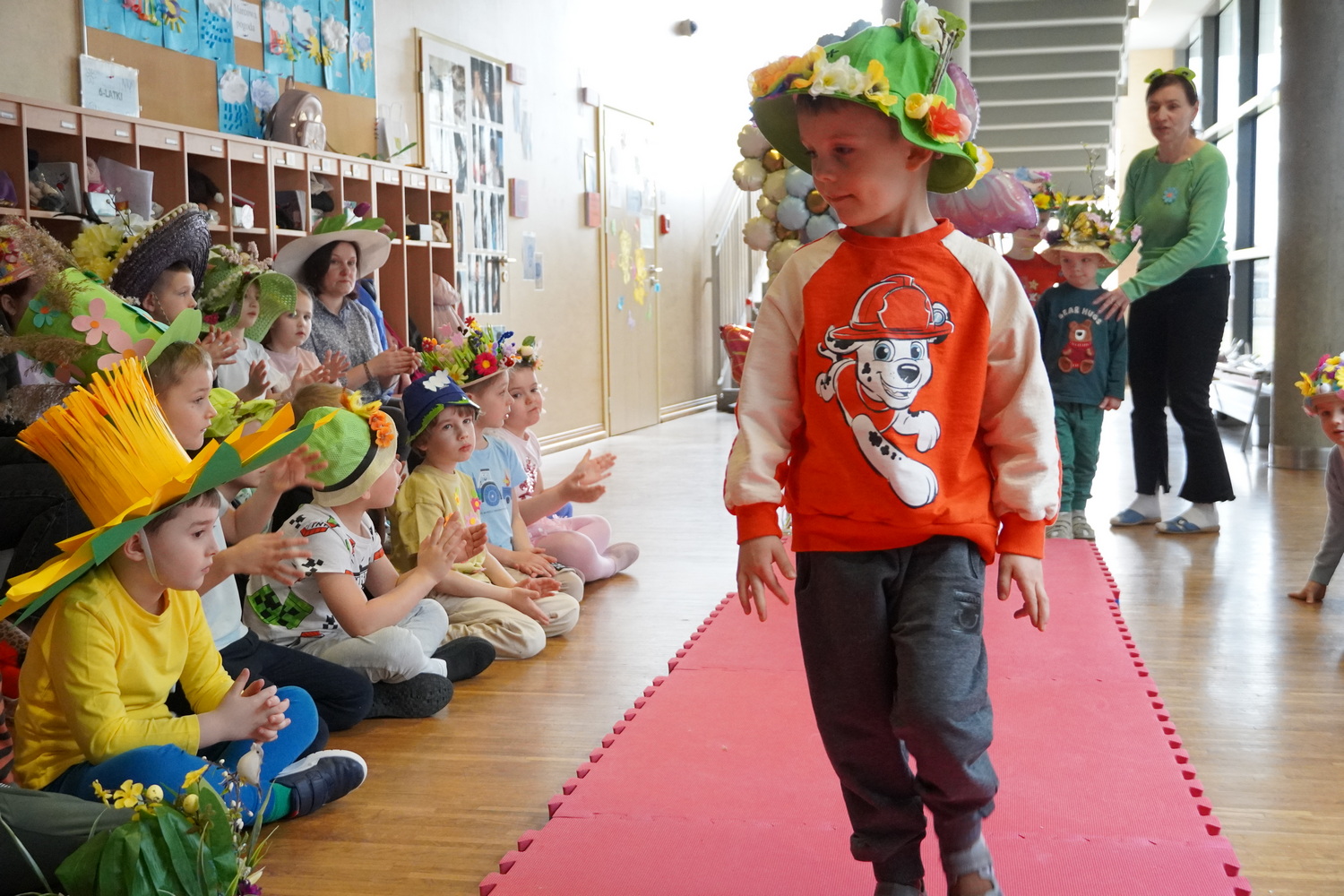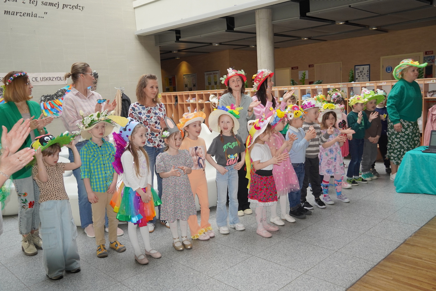 20 marca w naszym przedszkolu odbyło się radosne wydarzenie, podczas którego dzieci żegnały zimę i witały wiosnę. Były wspólne zabawy, śpiewanie piosenek o wiośnie oraz tańce. Ważnym punktem tego spotkania była „Wiosenna parada kapeluszy Bonnet Hat”, podczas której dzieci zaprezentowały swoje piękne nakrycia głowy. Po zabawach w budynku dzieci niosąc Marzannę przeszły ulicami Kleszczowa, aby symbolicznie pożegnać zimę. Zimową kukłę zostawiły pani Danusi, a wróciły do swoich sal z gaikiem-symbolem wiosny.