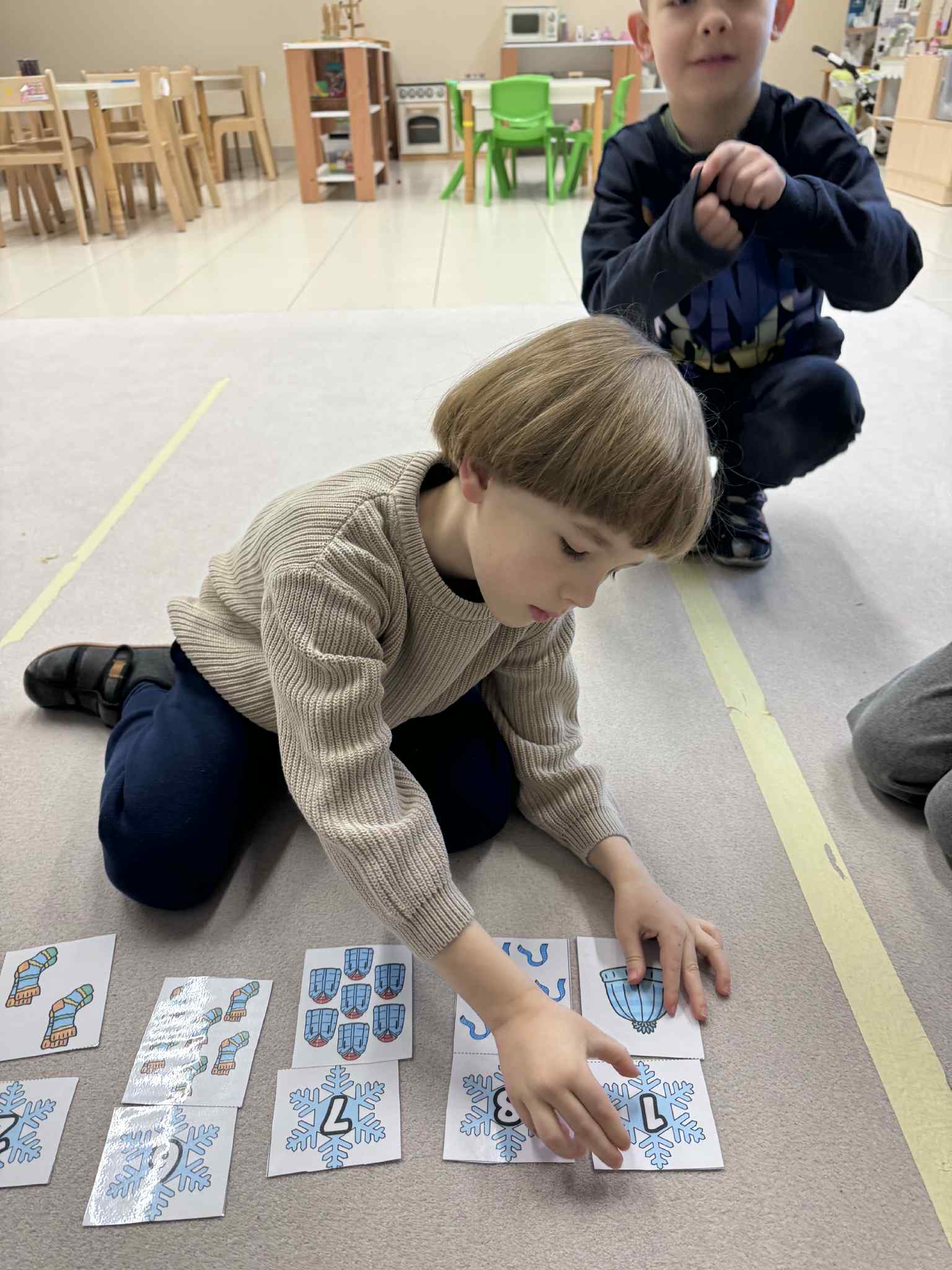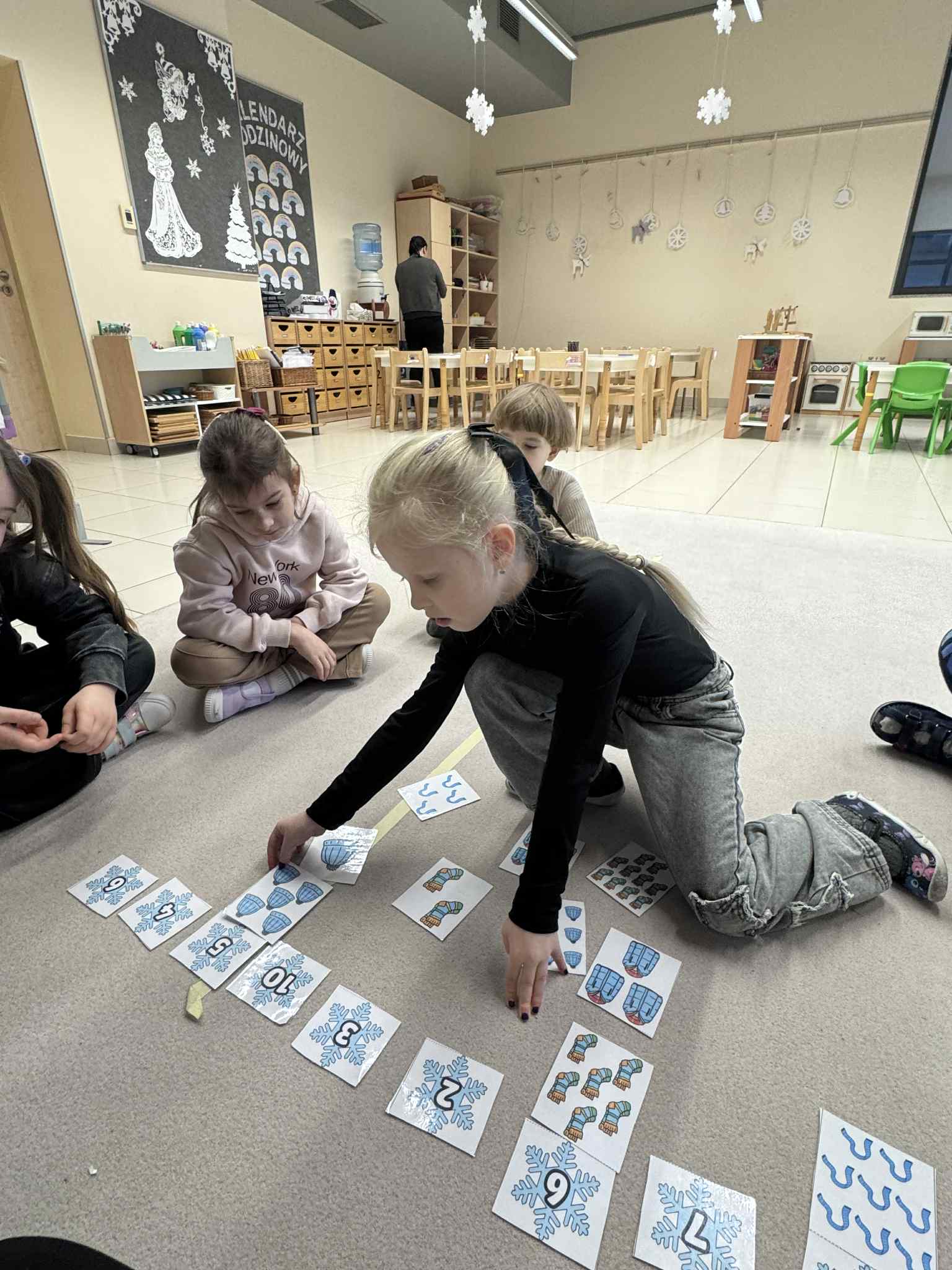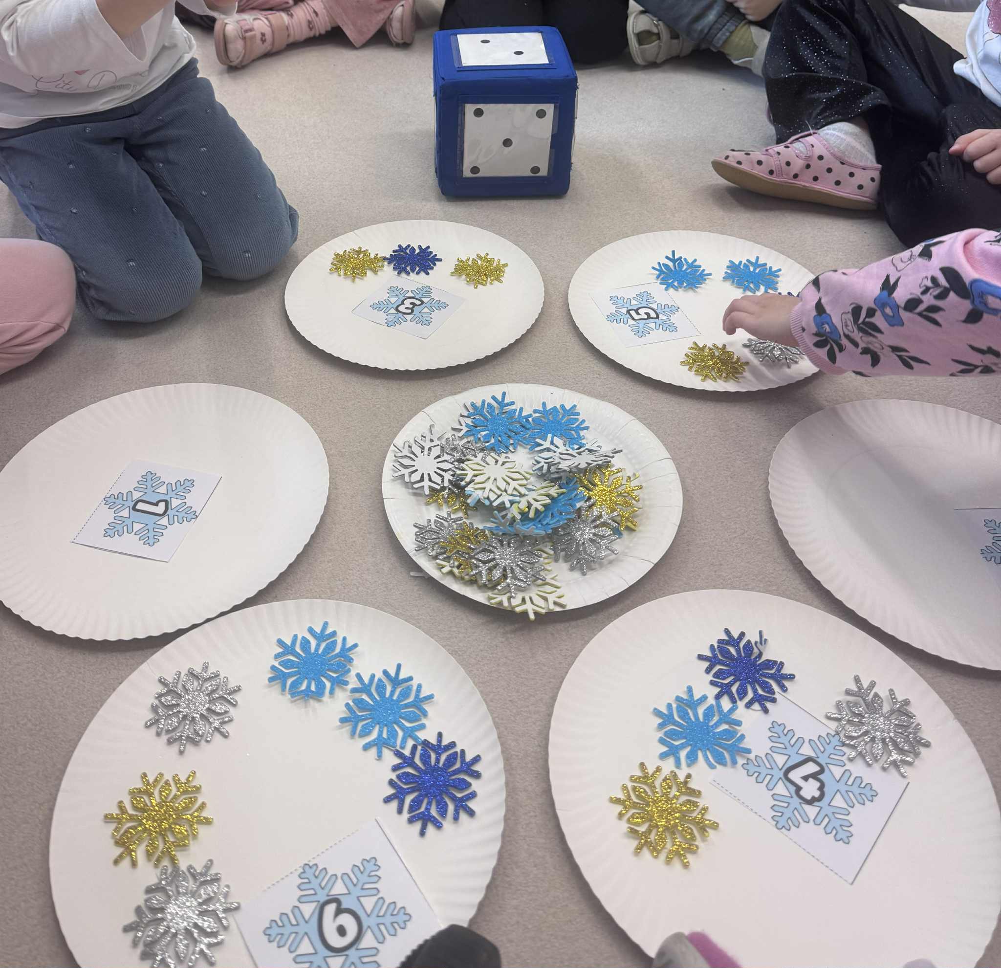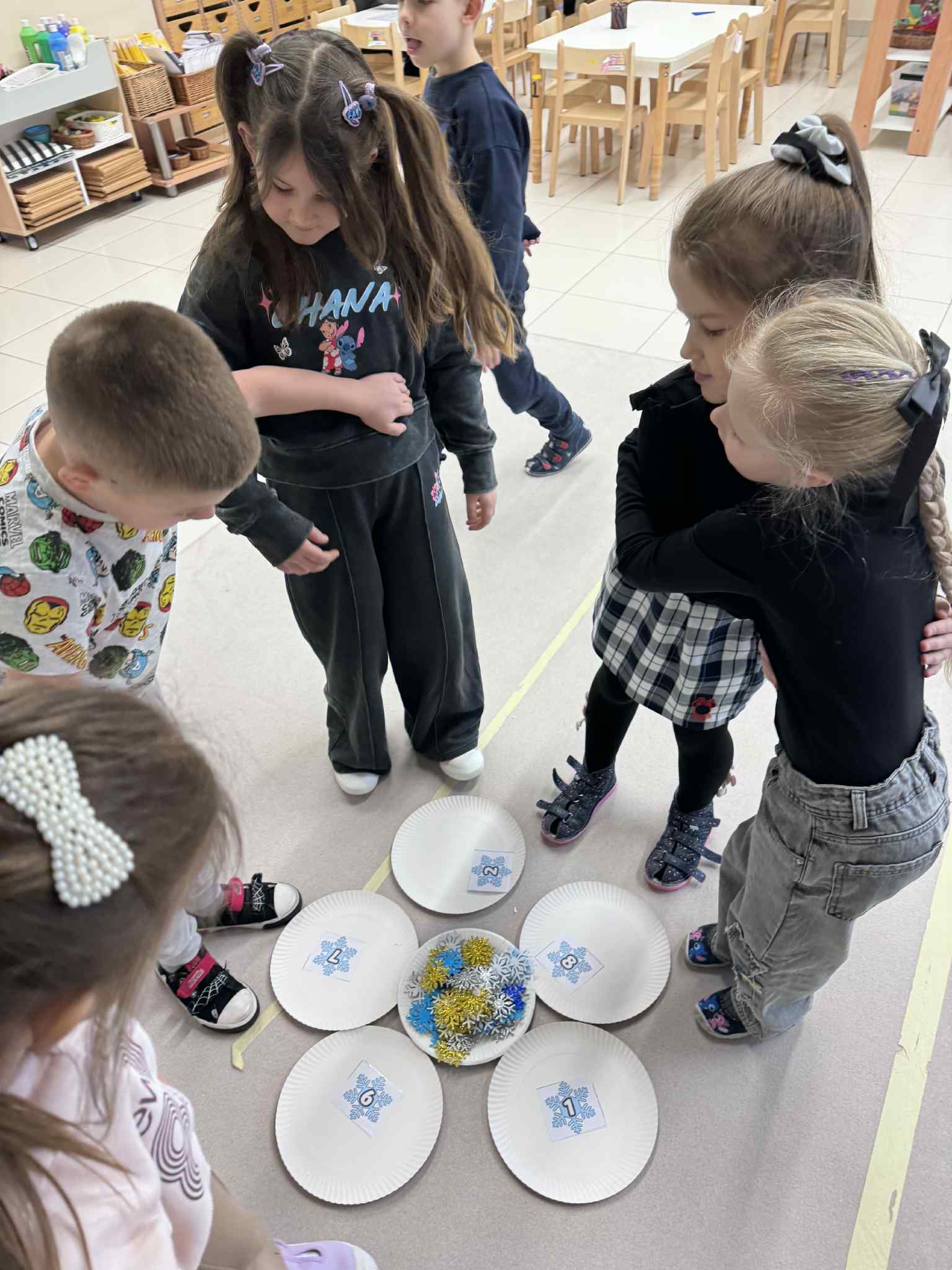 W ramach realizacji zadania 4 „Maths is Action” dzieci uczestniczyły w zabawie matematyczno-ruchowej, podczas której aktywnie liczyły śnieżynki. Nauka odbywała się poprzez ruch i działanie, co sprzyjało zaangażowaniu i radości z odkrywania matematyki.Następnie dzieci liczyły i nazywały w języku angielskim zimowe ubrania, utrwalając słownictwo związane z porą zimową. Połączenie aktywności ruchowej z elementami językowymi pozwoliło na naturalne przyswajanie treści matematycznych i językowych.