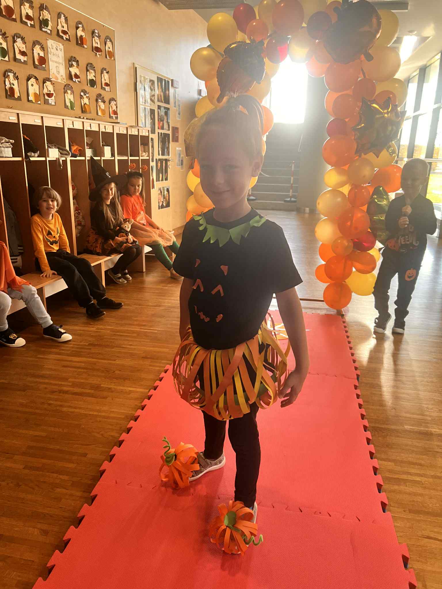W ubiegły piątek 31 października jak co roku obchodziliśmy w naszym przedszkolu Dzień Dyni. Z tej okazji odbył się wyjątkowy Pokaz Mody – "Pumpkin Fashion Show", podczas którego każde dziecko zaprezentowało swój pomysłowy strój. Dodatkowo przedszkolaki wzięły udział w dyniowym korowodzie, przechodząc korytarzami ZSPP im. Jana Pawła II w Kleszczowie, gdzie ich kolorowe kreacje podziwiali nauczyciele i uczniowie.