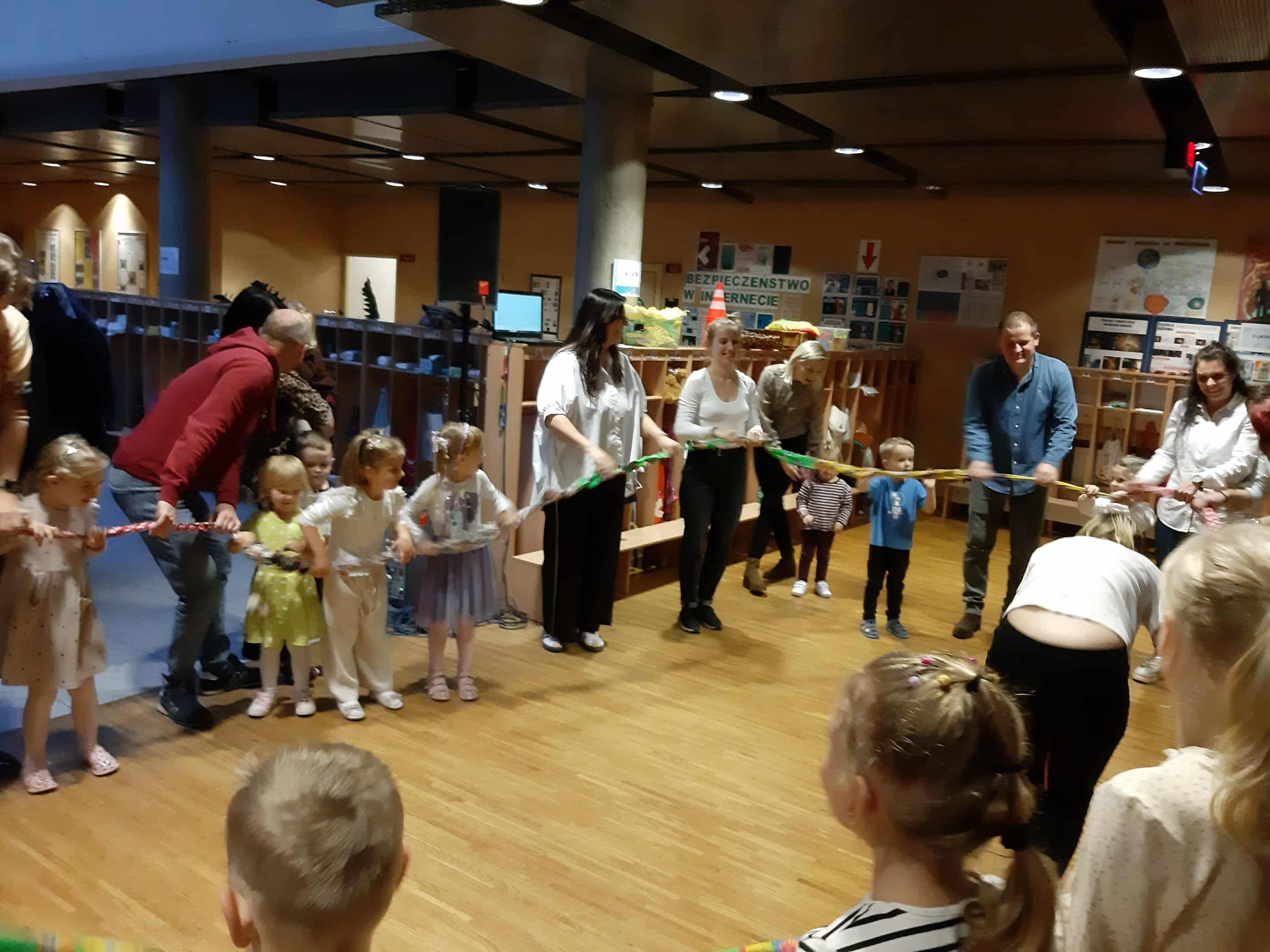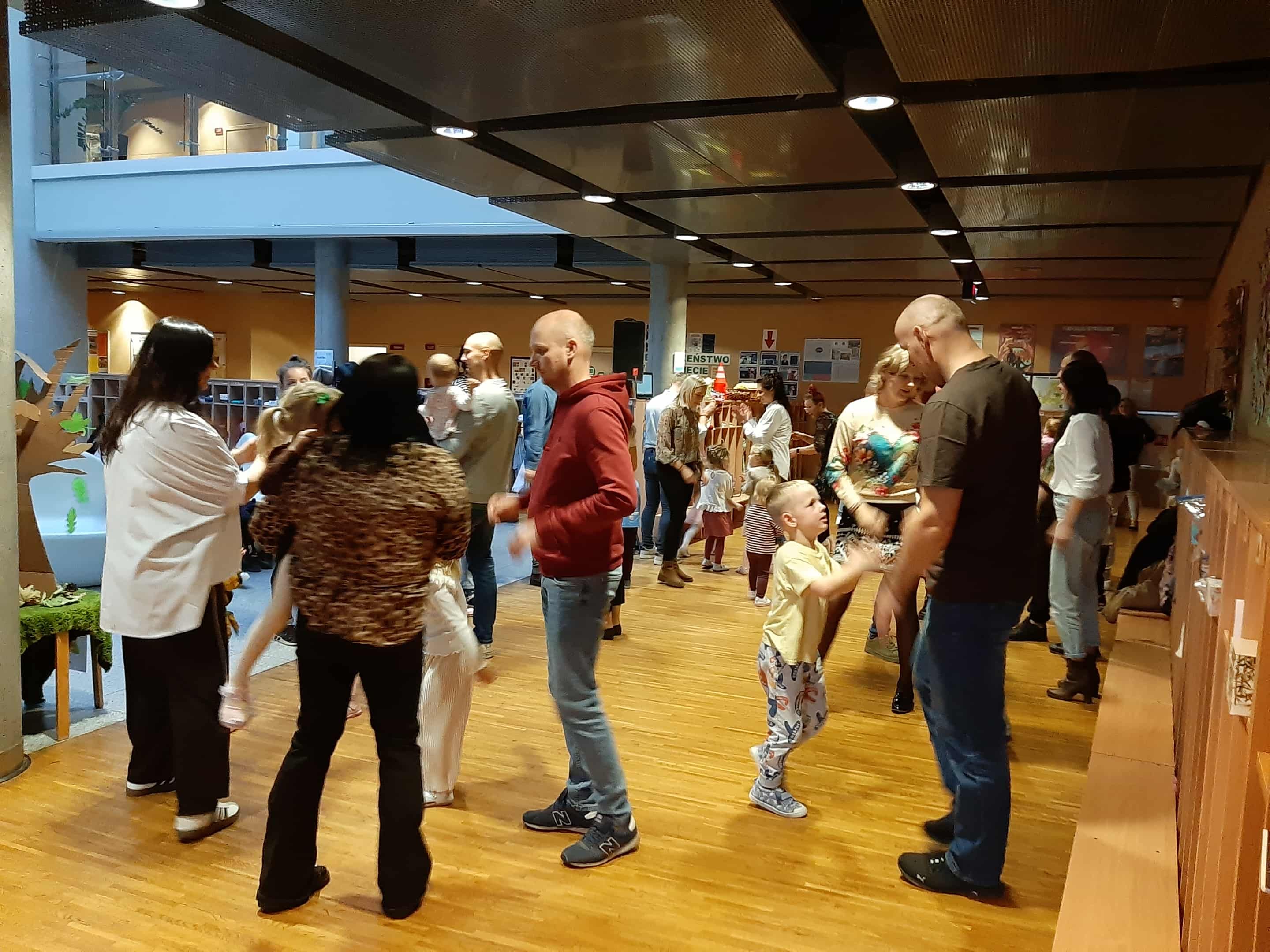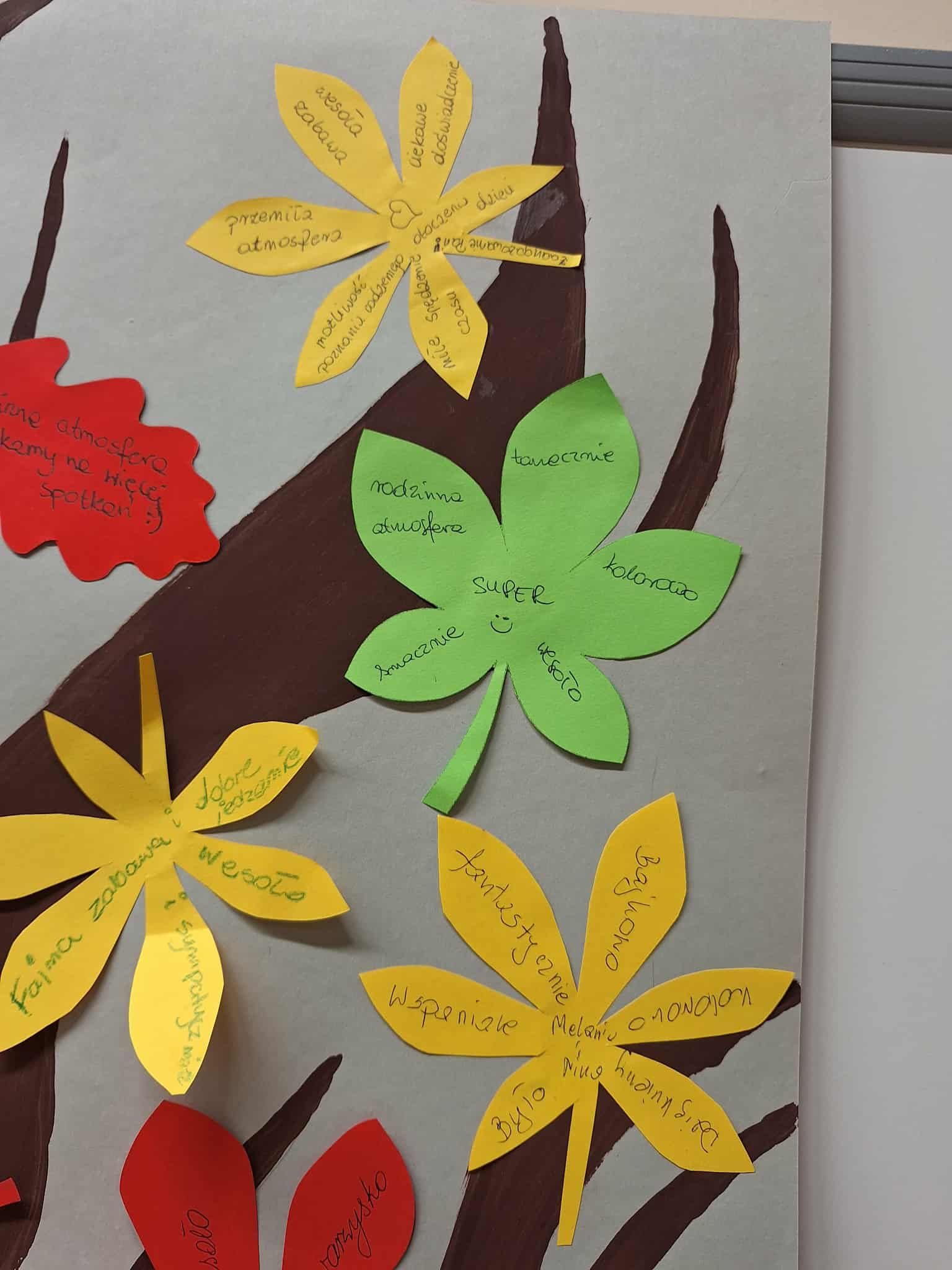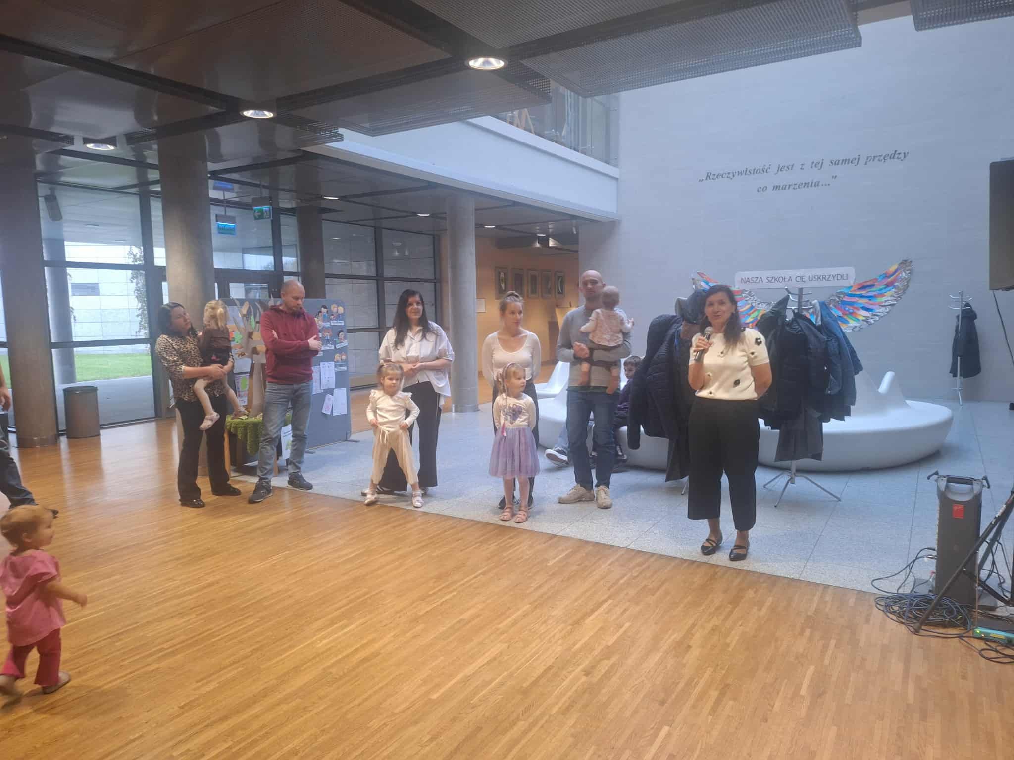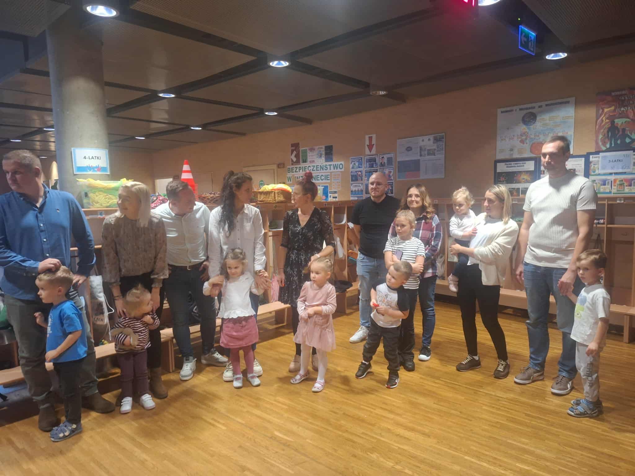 W środę, 22 października, po godzinach pracy przedszkola, odbyło się wyjątkowe spotkanie integracyjne pod hasłem „Rodzinna kawiarenka jesiennych smaków”. W wydarzeniu wzięli udział chętni rodzice wraz z dziećmi, całe rodziny, a także nasi absolwenci, którzy wspólnie z nauczycielami i paniami z obsługi, spędzili miły, pełen ciepła i radości wieczór. Każdy uczestnik przyniósł coś pysznego do wspólnego stołu – nie zabrakło domowych ciast, deserów, owoców z własnych ogrodów oraz świeżych soków. Jak przystało na prawdziwą kawiarenkę, była aromatyczna kawa dla dorosłych, a dla dzieci – herbatka z miodem. Sala została pięknie udekorowana w jesiennym klimacie – przygotowano stoliki z ozdobami z liści, kasztanów i żołędzi, przy których zasiadły rodziny. W centralnej części sali ustawiono szwedzki stół z przysmakami, z którego każdy mógł się częstować. Na początku spotkania panie nauczycielki zaprosiły wszystkich na korytarz do wspólnych zabaw integracyjnych. Były zabawy w parach, z chustą animacyjną, Si gumą, a także slalom z kasztanami i wiele innych aktywności, które dostarczyły uczestnikom mnóstwo radości. Gdy wszyscy byli już rozgrzani i rozbawieni, symbolicznie „wjechaliśmy pociągiem” do naszej kawiarenki, gdzie rozpoczęły się rozmowy, wspólne zabawy i chwile spędzone przy stolikach w miłej, rodzinnej atmosferze. Na zakończenie spotkania odbyła się ewaluacja w formie jesiennego drzewka. Rodzice zawieszali na nim kolorowe liście z podziękowaniami i swoimi spostrzeżeniami na temat spotkania. Wszystkie wpisy były pełne ciepłych słów i wdzięczności za możliwość wspólnego spędzenia czasu. Spotkanie przebiegło w bardzo serdecznej i radosnej atmosferze, a wspólne chwile z pewnością na długo pozostaną w pamięci zarówno dzieci, jak i dorosłych.