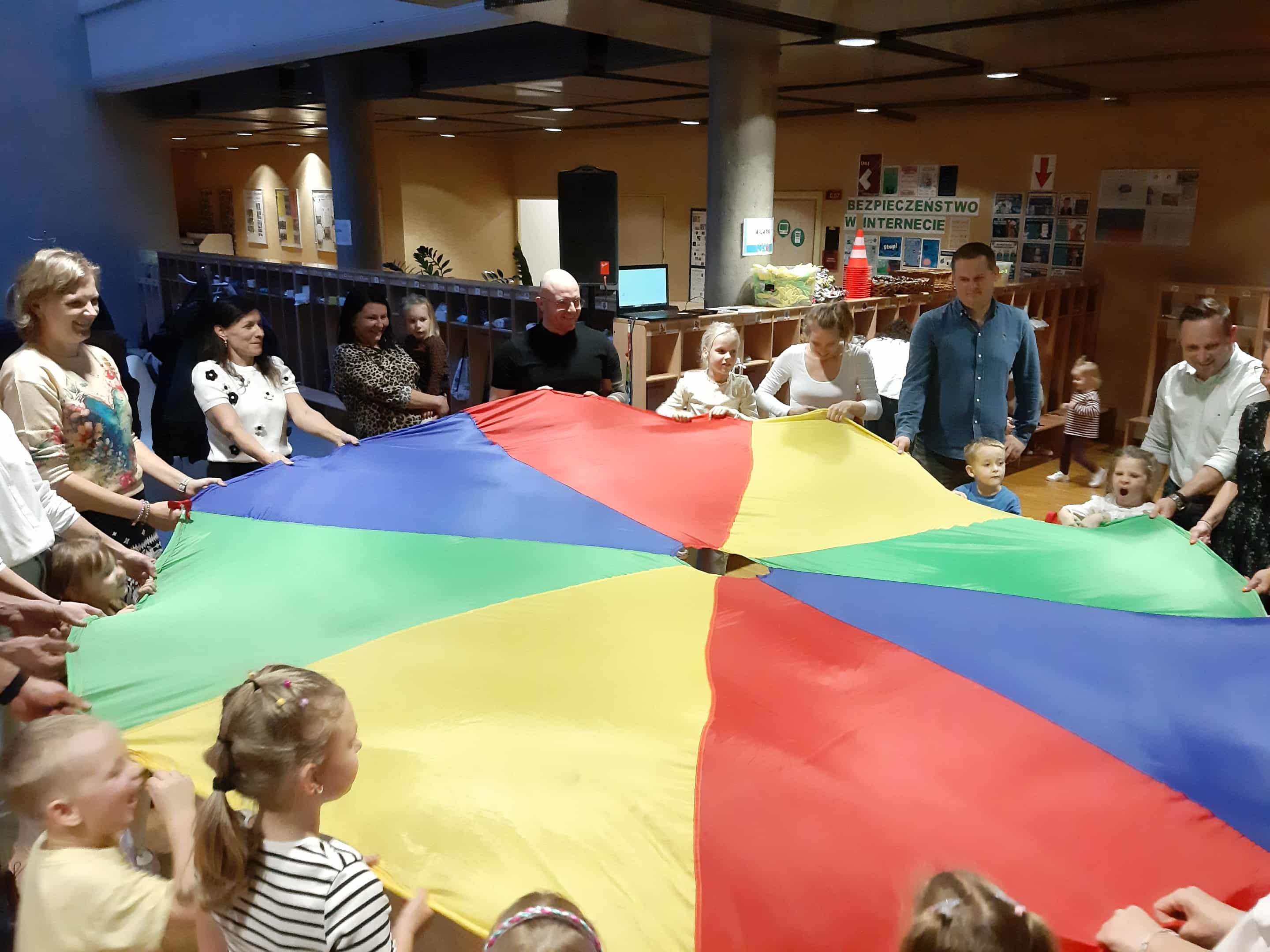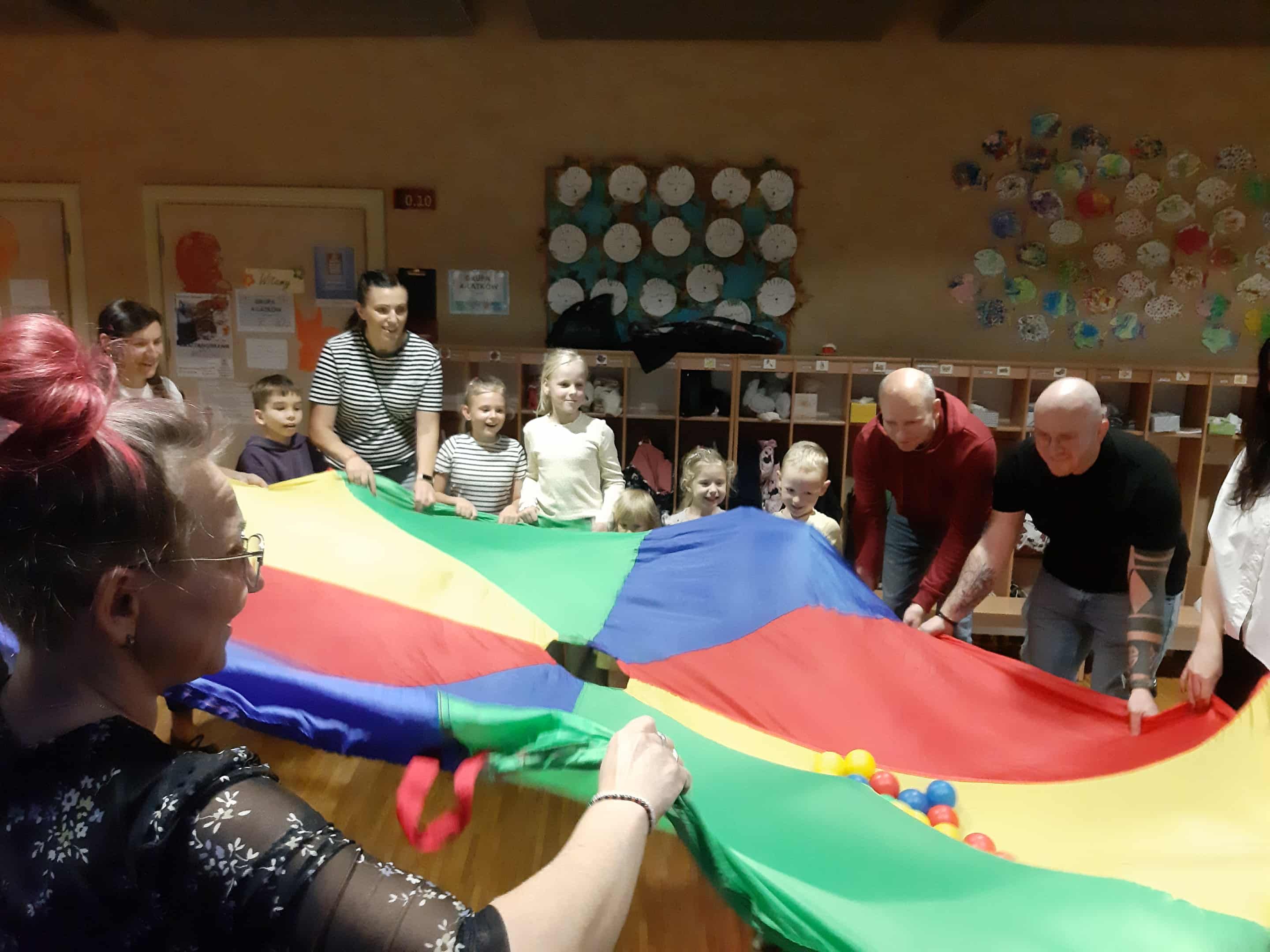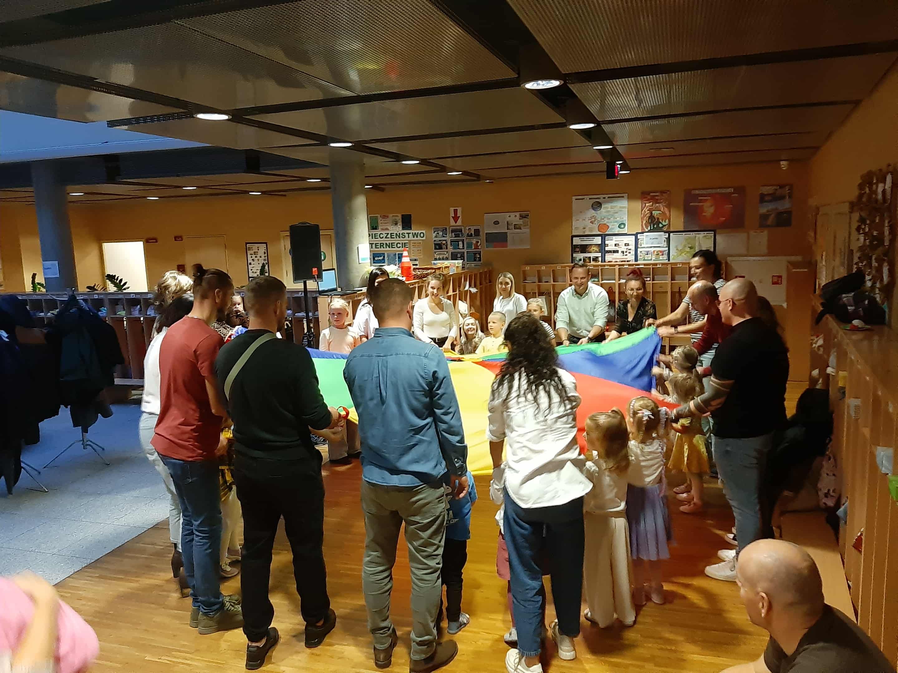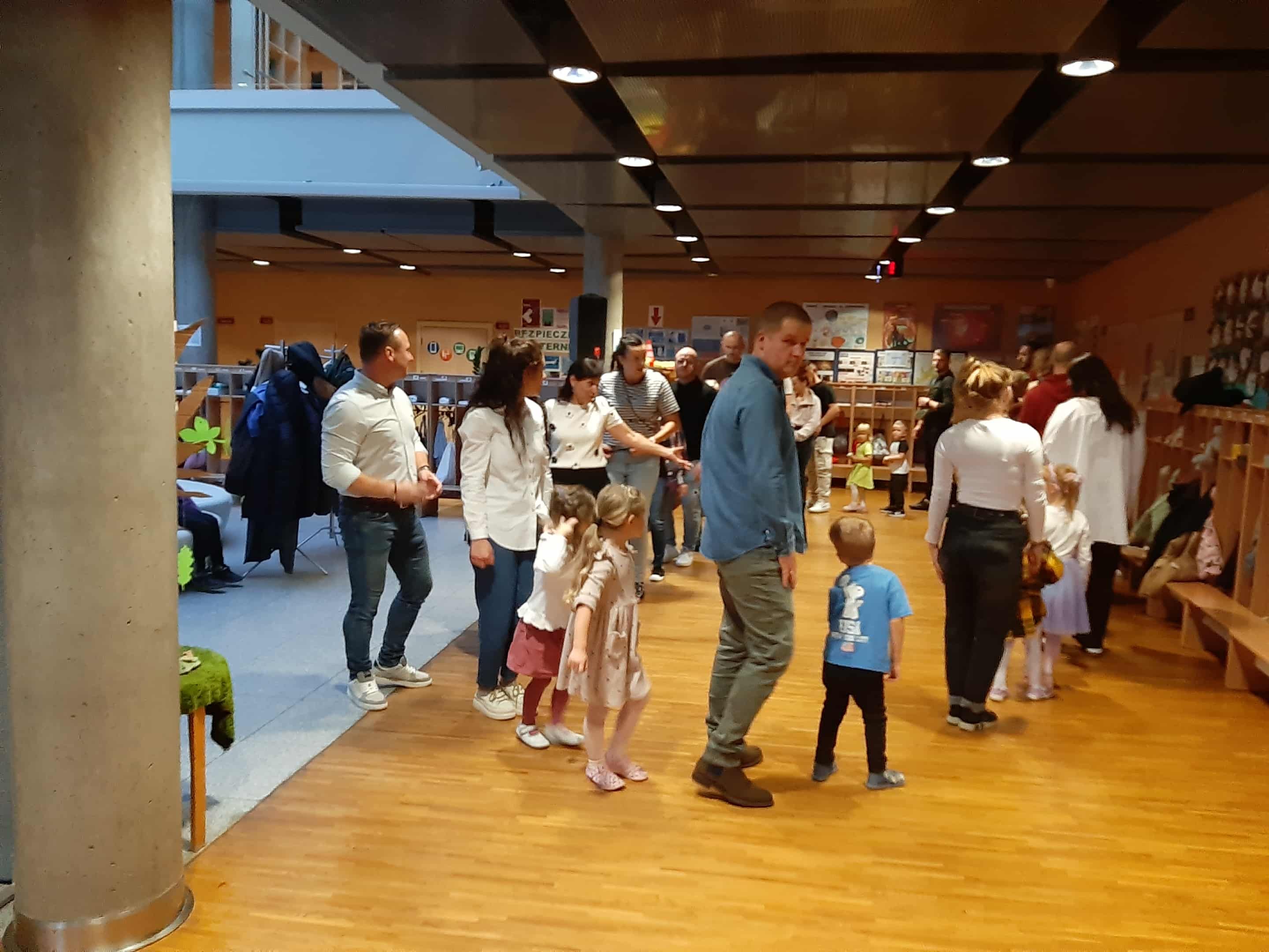 W środę, 22 października, po godzinach pracy przedszkola, odbyło się wyjątkowe spotkanie integracyjne pod hasłem „Rodzinna kawiarenka jesiennych smaków”. W wydarzeniu wzięli udział chętni rodzice wraz z dziećmi, całe rodziny, a także nasi absolwenci, którzy wspólnie z nauczycielami i paniami z obsługi, spędzili miły, pełen ciepła i radości wieczór. Każdy uczestnik przyniósł coś pysznego do wspólnego stołu – nie zabrakło domowych ciast, deserów, owoców z własnych ogrodów oraz świeżych soków. Jak przystało na prawdziwą kawiarenkę, była aromatyczna kawa dla dorosłych, a dla dzieci – herbatka z miodem. Sala została pięknie udekorowana w jesiennym klimacie – przygotowano stoliki z ozdobami z liści, kasztanów i żołędzi, przy których zasiadły rodziny. W centralnej części sali ustawiono szwedzki stół z przysmakami, z którego każdy mógł się częstować. Na początku spotkania panie nauczycielki zaprosiły wszystkich na korytarz do wspólnych zabaw integracyjnych. Były zabawy w parach, z chustą animacyjną, Si gumą, a także slalom z kasztanami i wiele innych aktywności, które dostarczyły uczestnikom mnóstwo radości. Gdy wszyscy byli już rozgrzani i rozbawieni, symbolicznie „wjechaliśmy pociągiem” do naszej kawiarenki, gdzie rozpoczęły się rozmowy, wspólne zabawy i chwile spędzone przy stolikach w miłej, rodzinnej atmosferze. Na zakończenie spotkania odbyła się ewaluacja w formie jesiennego drzewka. Rodzice zawieszali na nim kolorowe liście z podziękowaniami i swoimi spostrzeżeniami na temat spotkania. Wszystkie wpisy były pełne ciepłych słów i wdzięczności za możliwość wspólnego spędzenia czasu. Spotkanie przebiegło w bardzo serdecznej i radosnej atmosferze, a wspólne chwile z pewnością na długo pozostaną w pamięci zarówno dzieci, jak i dorosłych.