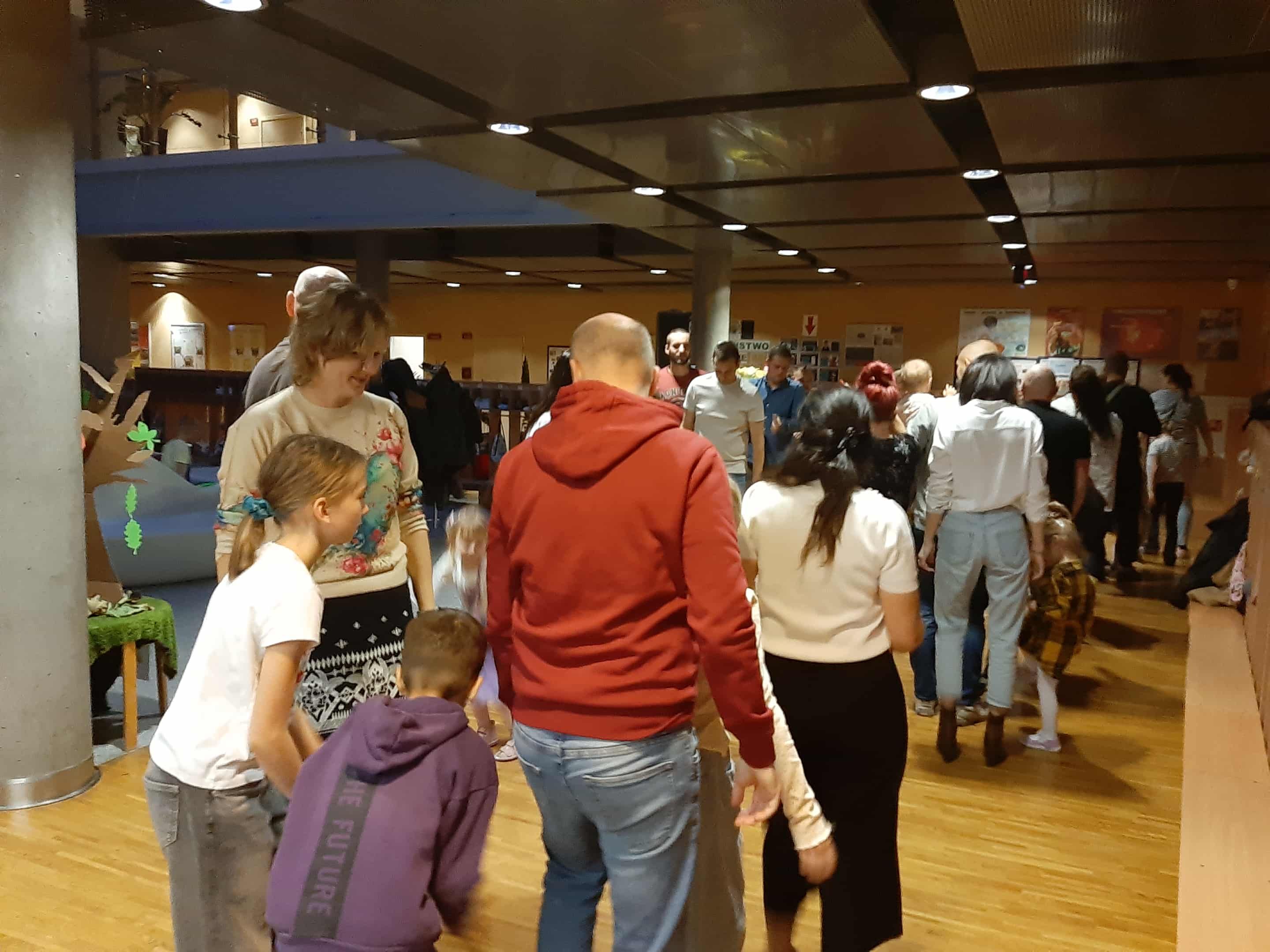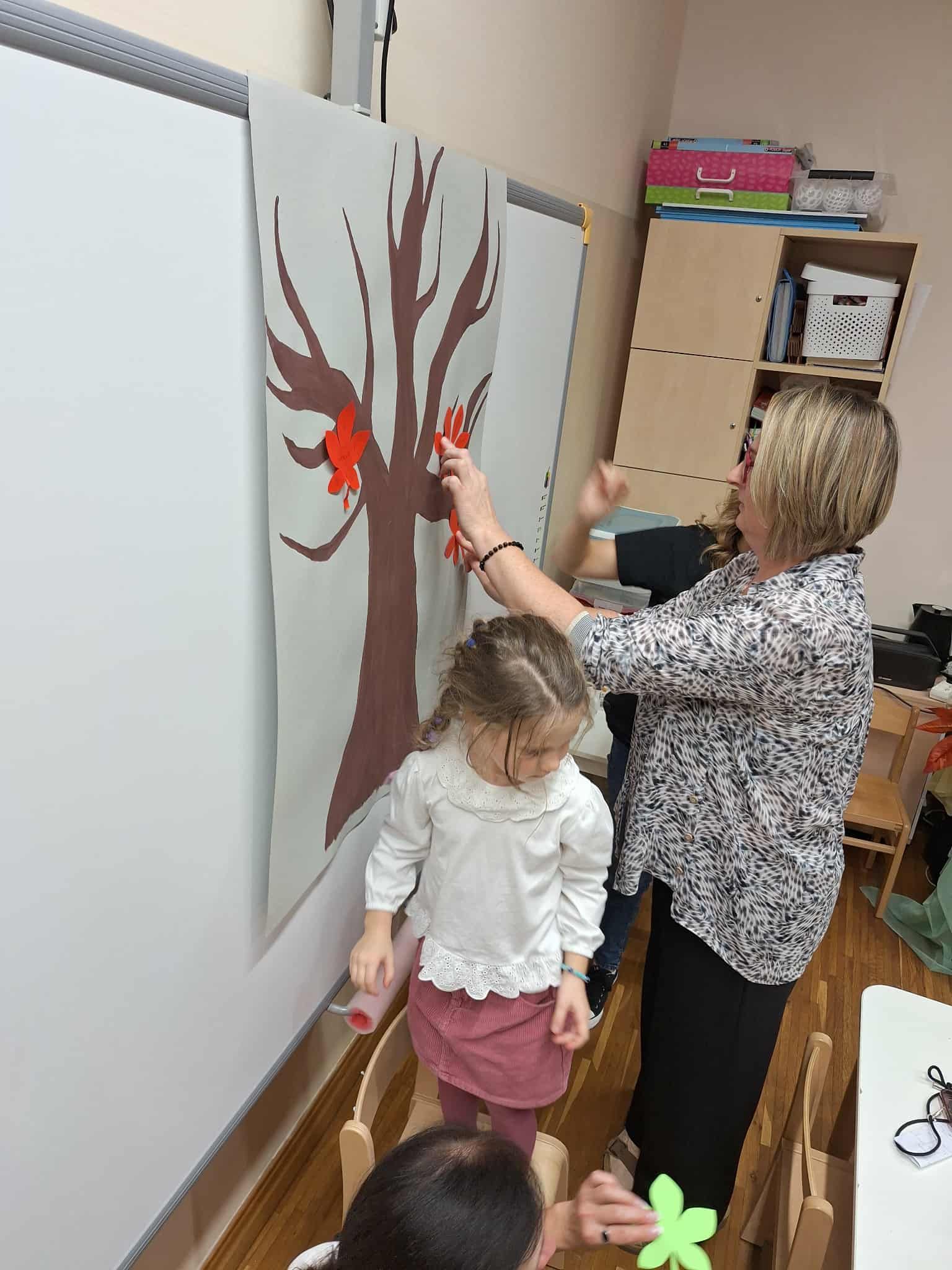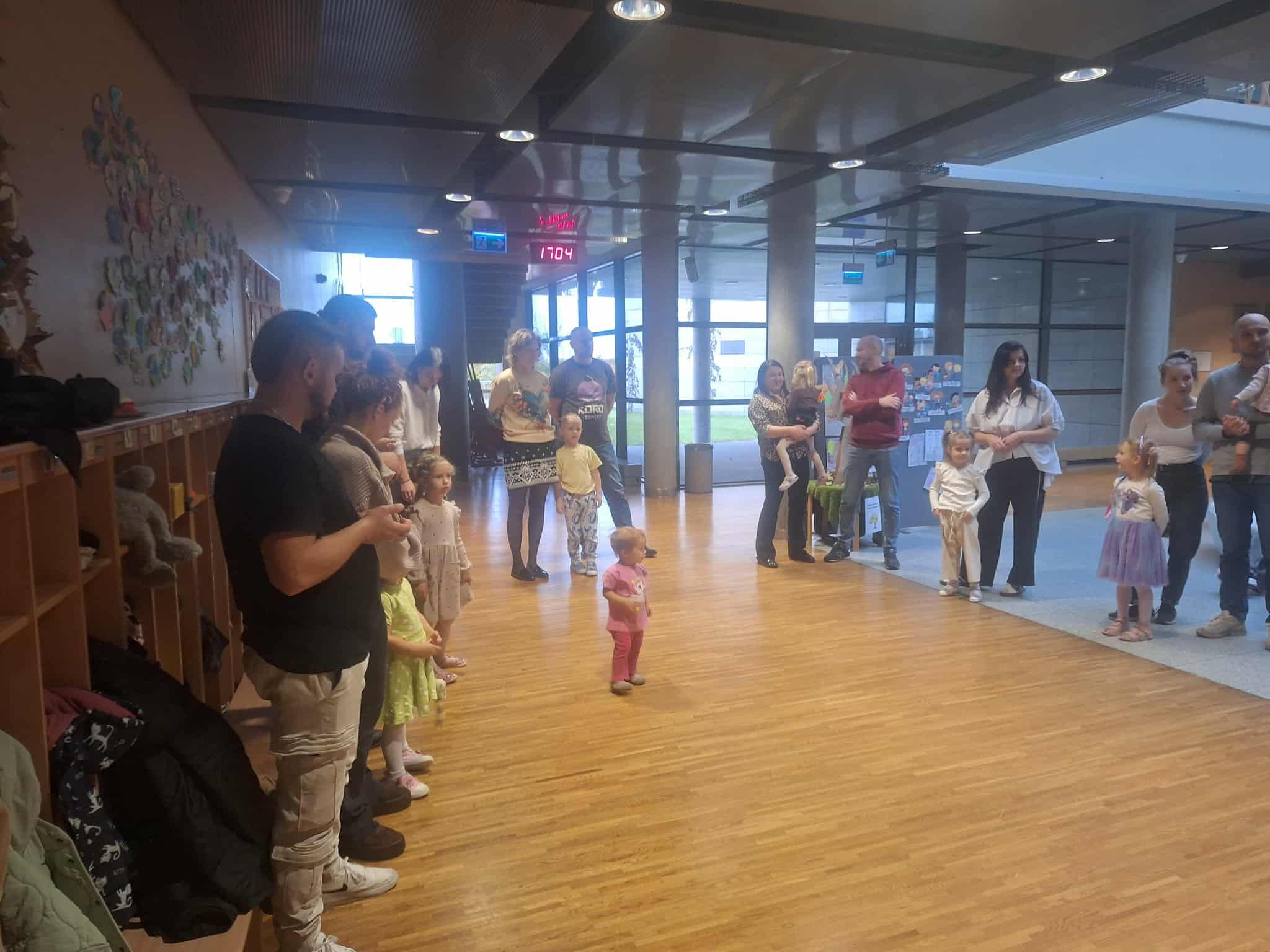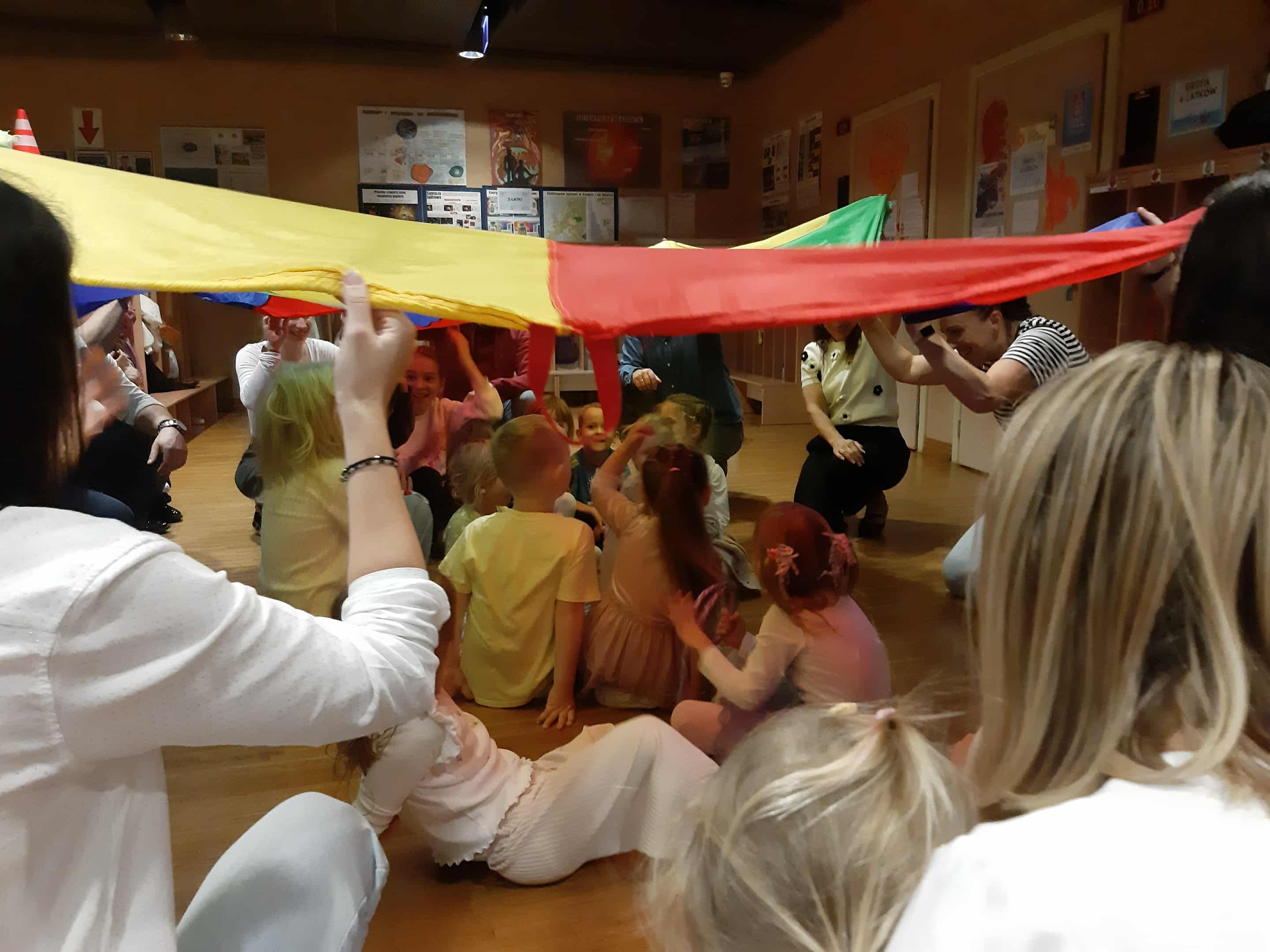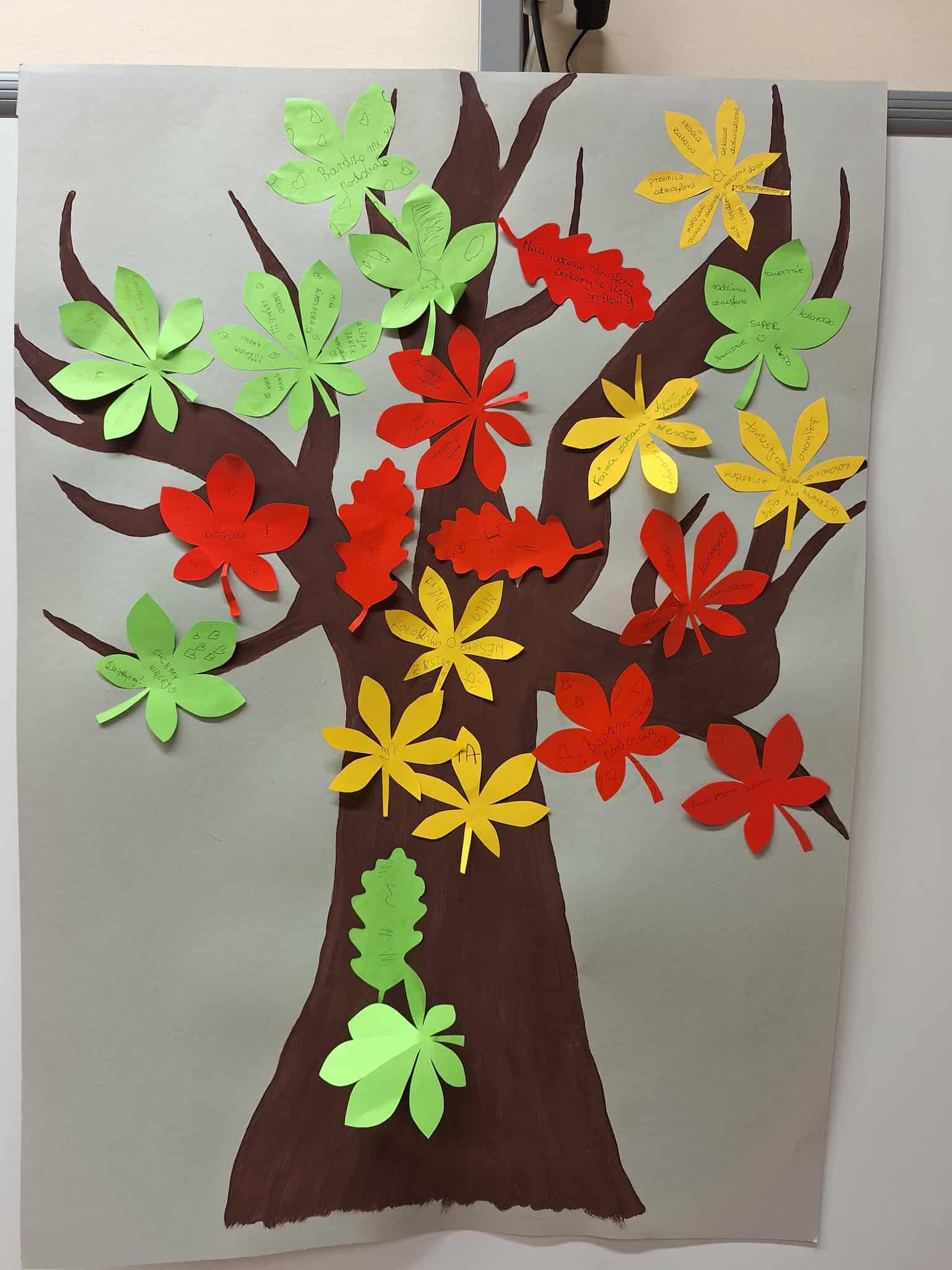 W środę, 22 października, po godzinach pracy przedszkola, odbyło się wyjątkowe spotkanie integracyjne pod hasłem „Rodzinna kawiarenka jesiennych smaków”. W wydarzeniu wzięli udział chętni rodzice wraz z dziećmi, całe rodziny, a także nasi absolwenci, którzy wspólnie z nauczycielami i paniami z obsługi, spędzili miły, pełen ciepła i radości wieczór. Każdy uczestnik przyniósł coś pysznego do wspólnego stołu – nie zabrakło domowych ciast, deserów, owoców z własnych ogrodów oraz świeżych soków. Jak przystało na prawdziwą kawiarenkę, była aromatyczna kawa dla dorosłych, a dla dzieci – herbatka z miodem. Sala została pięknie udekorowana w jesiennym klimacie – przygotowano stoliki z ozdobami z liści, kasztanów i żołędzi, przy których zasiadły rodziny. W centralnej części sali ustawiono szwedzki stół z przysmakami, z którego każdy mógł się częstować. Na początku spotkania panie nauczycielki zaprosiły wszystkich na korytarz do wspólnych zabaw integracyjnych. Były zabawy w parach, z chustą animacyjną, Si gumą, a także slalom z kasztanami i wiele innych aktywności, które dostarczyły uczestnikom mnóstwo radości. Gdy wszyscy byli już rozgrzani i rozbawieni, symbolicznie „wjechaliśmy pociągiem” do naszej kawiarenki, gdzie rozpoczęły się rozmowy, wspólne zabawy i chwile spędzone przy stolikach w miłej, rodzinnej atmosferze. Na zakończenie spotkania odbyła się ewaluacja w formie jesiennego drzewka. Rodzice zawieszali na nim kolorowe liście z podziękowaniami i swoimi spostrzeżeniami na temat spotkania. Wszystkie wpisy były pełne ciepłych słów i wdzięczności za możliwość wspólnego spędzenia czasu. Spotkanie przebiegło w bardzo serdecznej i radosnej atmosferze, a wspólne chwile z pewnością na długo pozostaną w pamięci zarówno dzieci, jak i dorosłych.