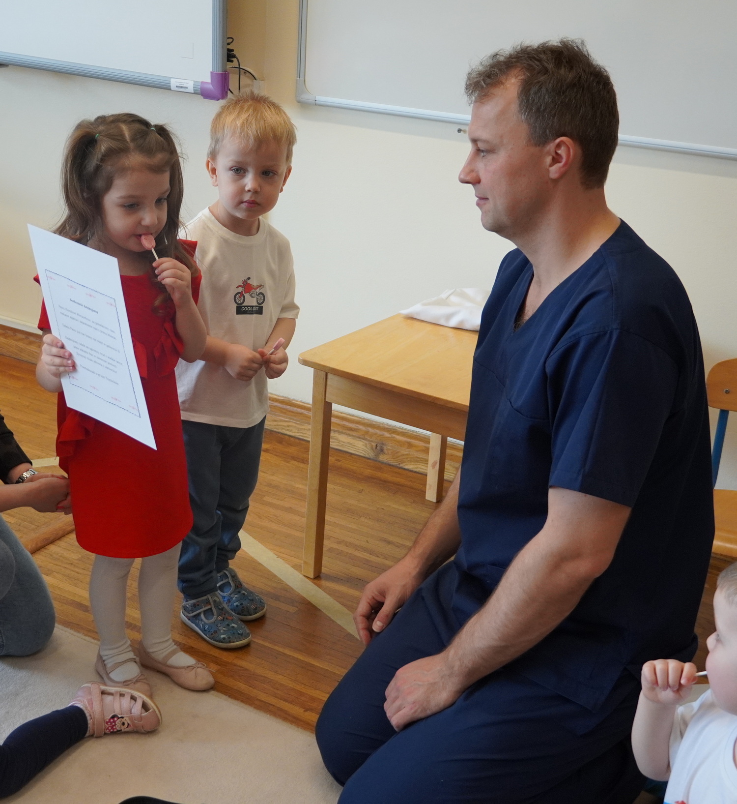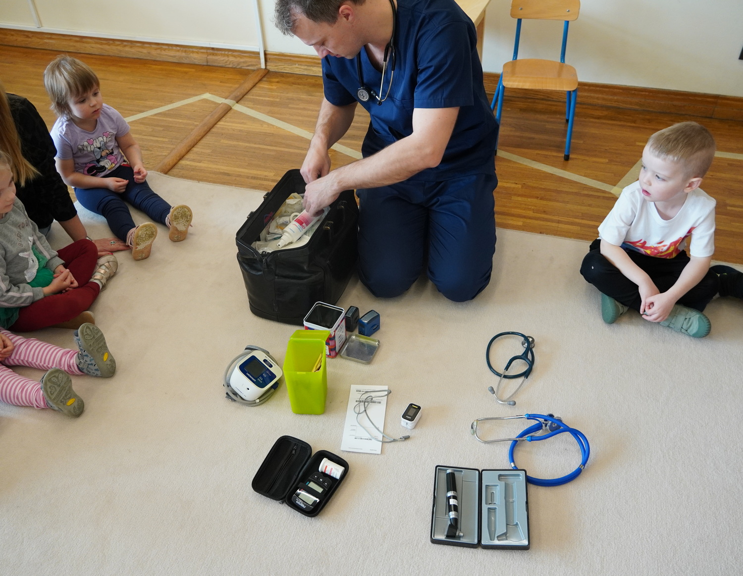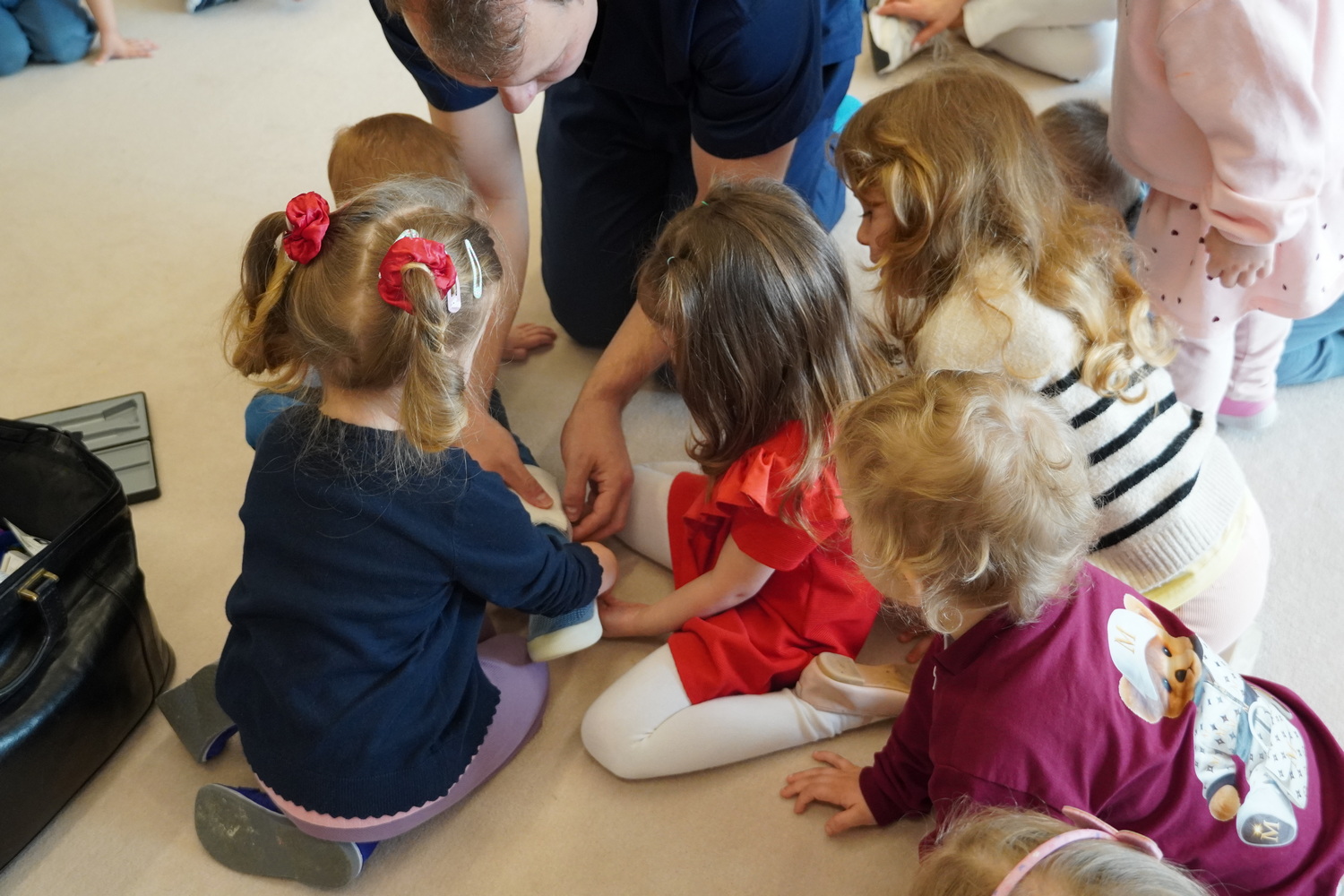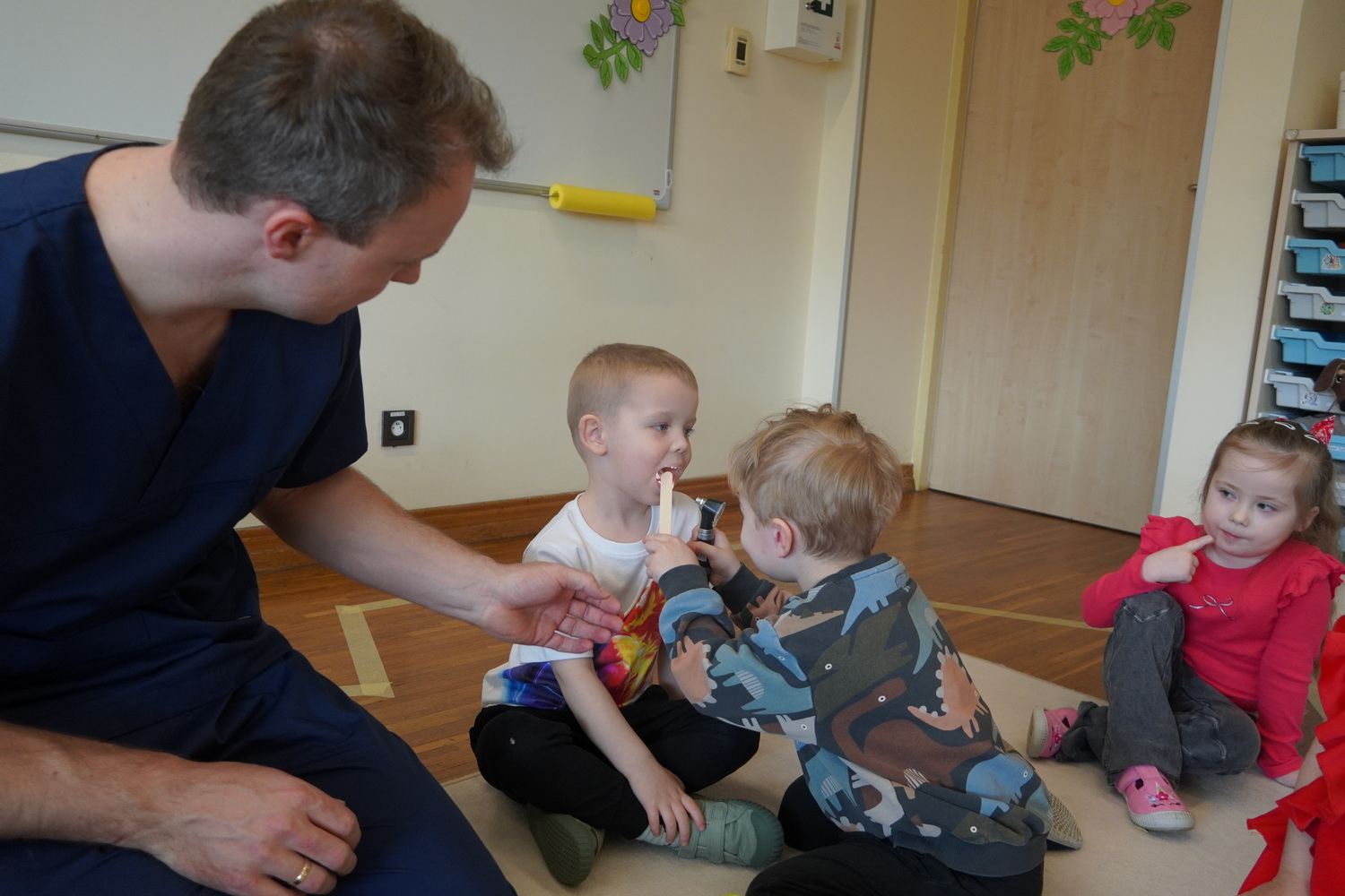 W ramach obchodów Światowego Dnia Zdrowia, naszą grupę odwiedził tata Marcelka, który jest lekarzem. Celem wizyty było poznanie zawodu lekarza i zachęcenie dzieci do dbania o zdrowie. Dzieci miały niepowtarzalną okazję do obejrzenia stetoskopu, ciśnieniomierza oraz innych akcesoriów medycznych. Przedszkolaki bardzo aktywnie uczestniczyły w spotkaniu. W nagrodę Pan Kamil obdarował dzieci naklejkami i lizakami. Spotkanie upłynęło w bardzo miłej atmosferze. Mamy nadzieję, że w przyszłości wizyta dzieci w gabinecie lekarskim nie będzie budziła nieprzyjemnych uczuć.