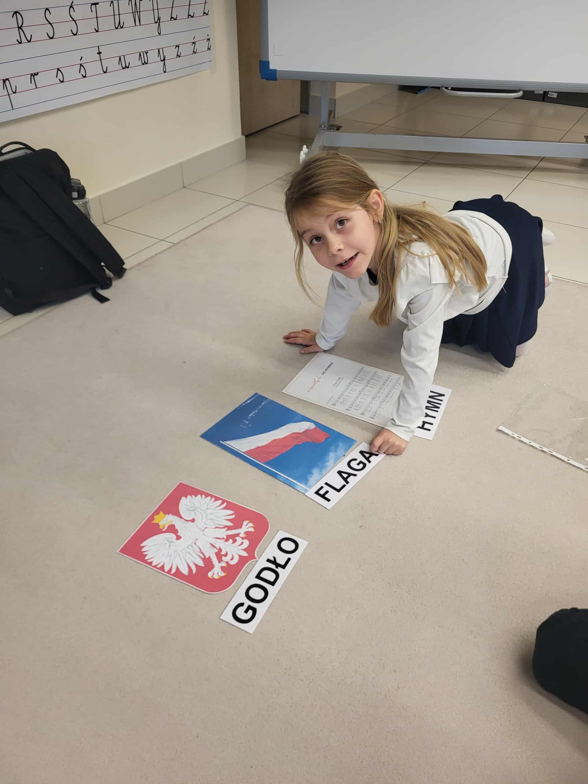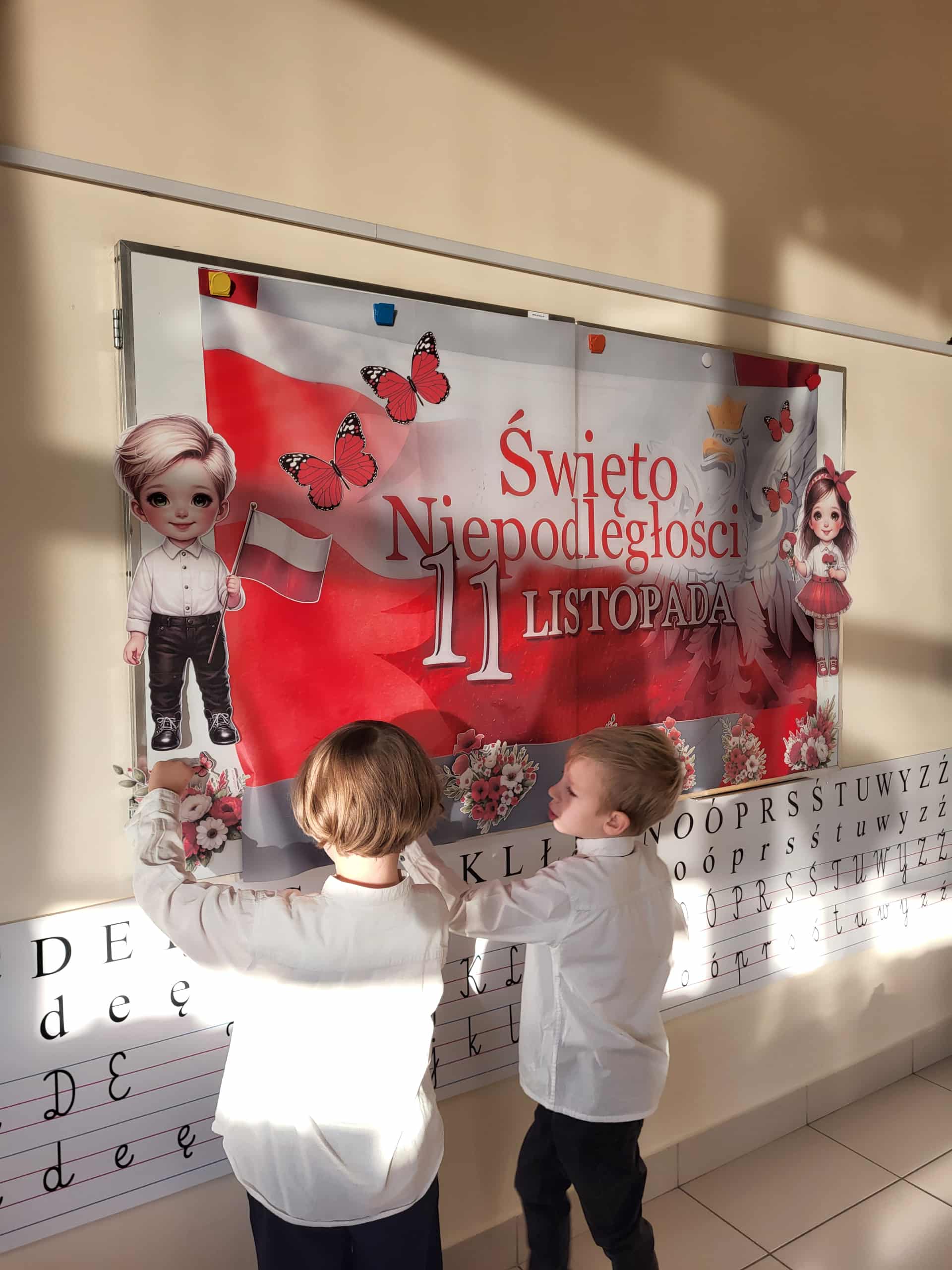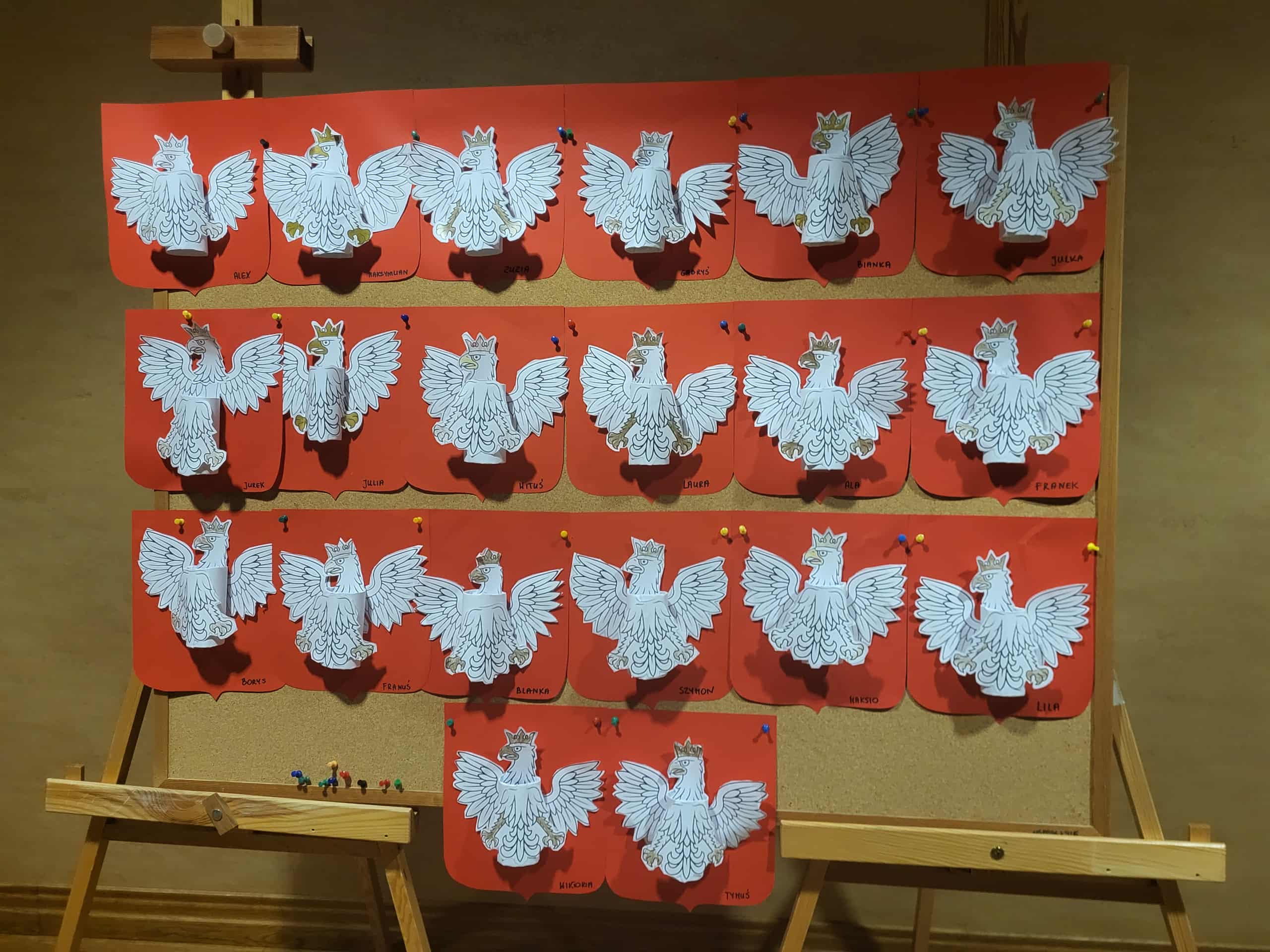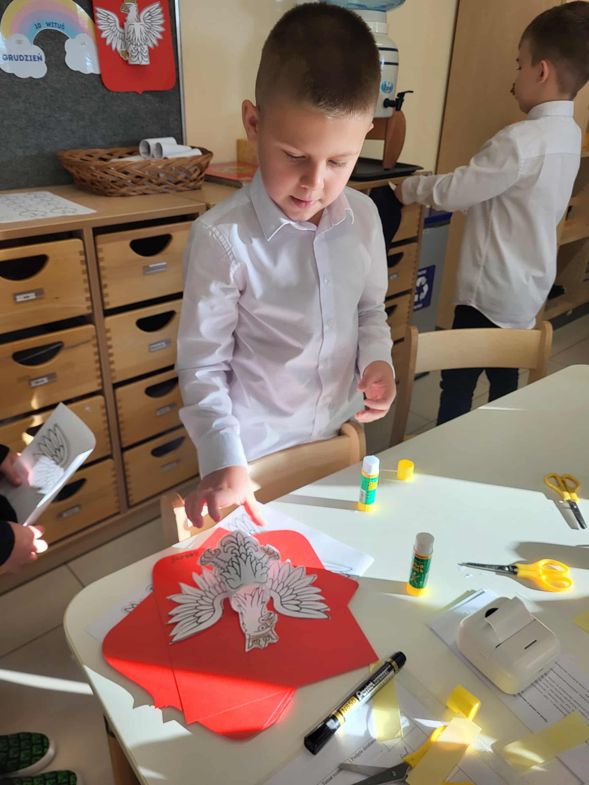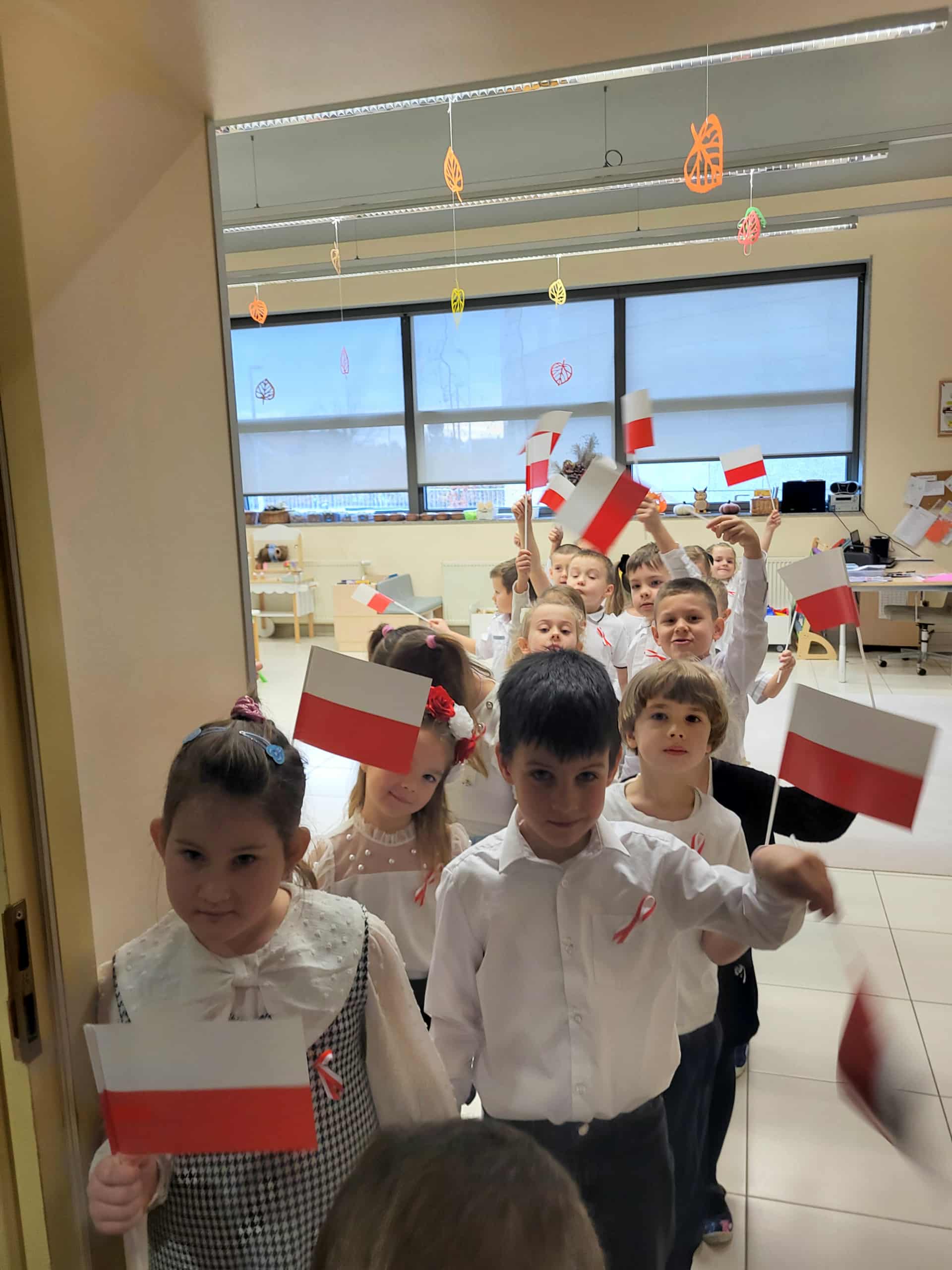 Grupa 6-latków aktywnie świętowała odzyskanie przez Polskę Niepodległości. Dzieci brały udział w grach i zabawach o Polsce, rozpoznawały i podpisywały najważniejsze symbole narodowe. Uczestniczyły także we wspólnych występach przygotowanych przez grupę 5-latków oraz licealistów. Odbył się również wyjazd pod pomnik, aby oddać hołd bohaterom. Przedszkolaki wykonały pracę plastyczną przedstawiającą godło Polski, pogłębiając swoją wiedzę i postawę patriotyczną.