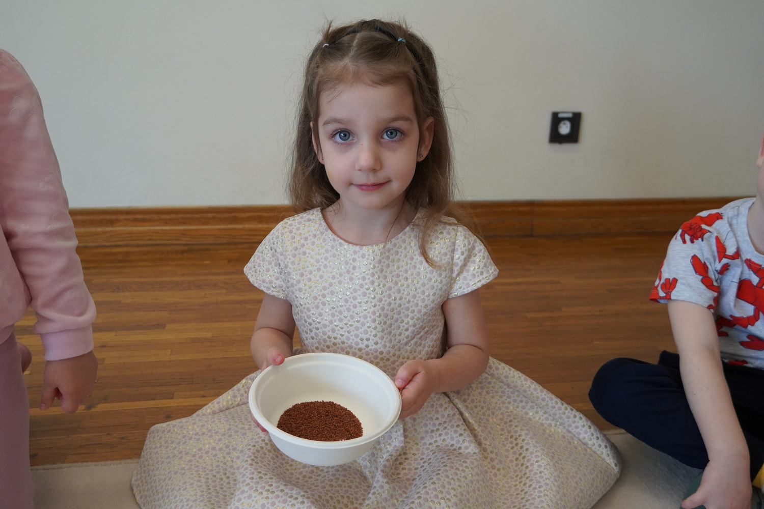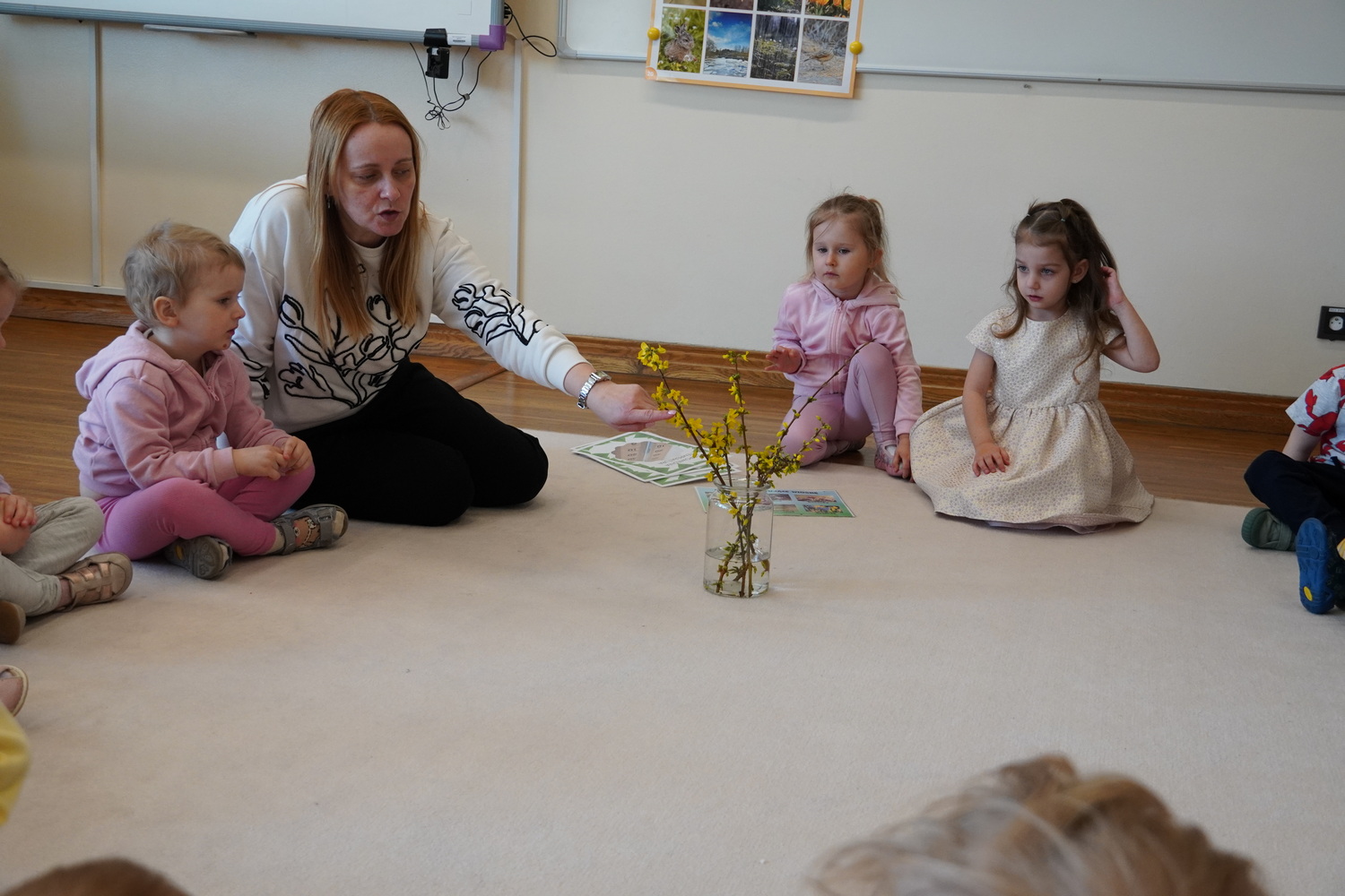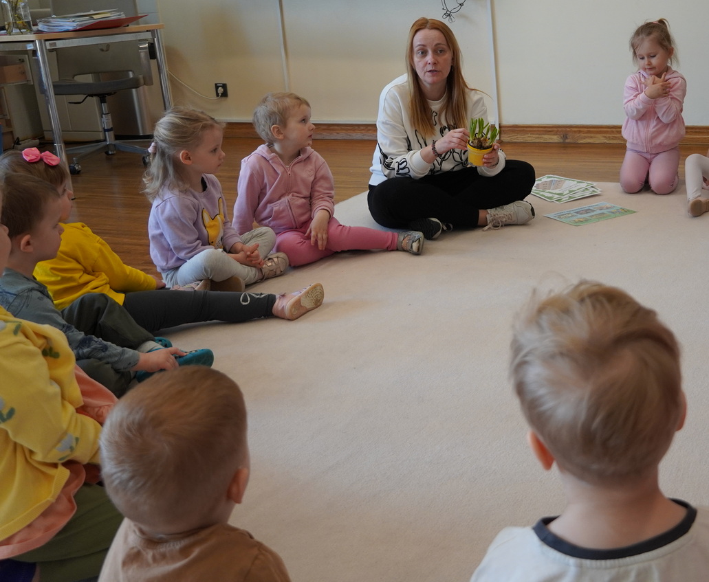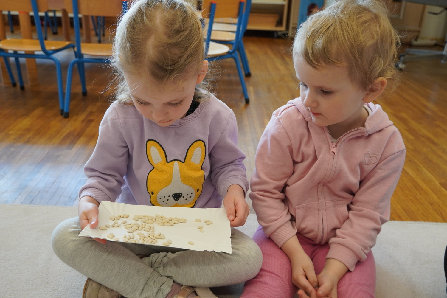 Chcąc przyśpieszyć przyjście wiosny maluszki postanowiły założyć w sali zielony, wiosenny ogródek. Zgromadziły potrzebne przybory (pojemniczki, doniczki, konewki), ziemię i nasionka. Przed przystąpieniem do pracy poznały warunki potrzebne roślinom do wzrostu. Następnie siały rzeżuchę, fasolkę i owies oraz sadziły cebulkę na szczypiorek. Po zasianiu i podlaniu rośliny zostały umieszczone na parapecie, a dzieci muszą pamiętać o ich podlewaniu oraz obserwować ich wzrost. Kiedy wyrosną będą źródłem witamin na kanapkach.