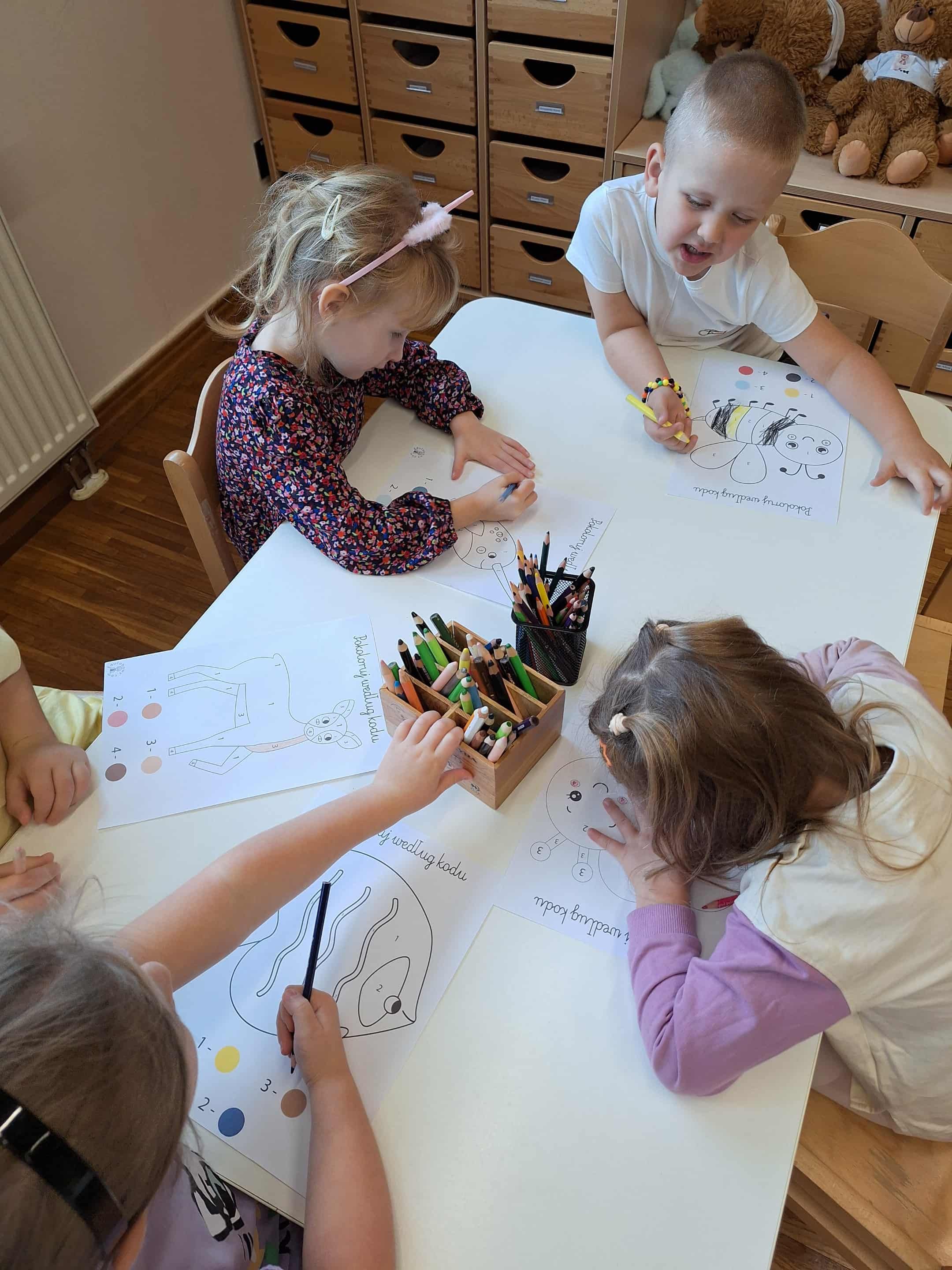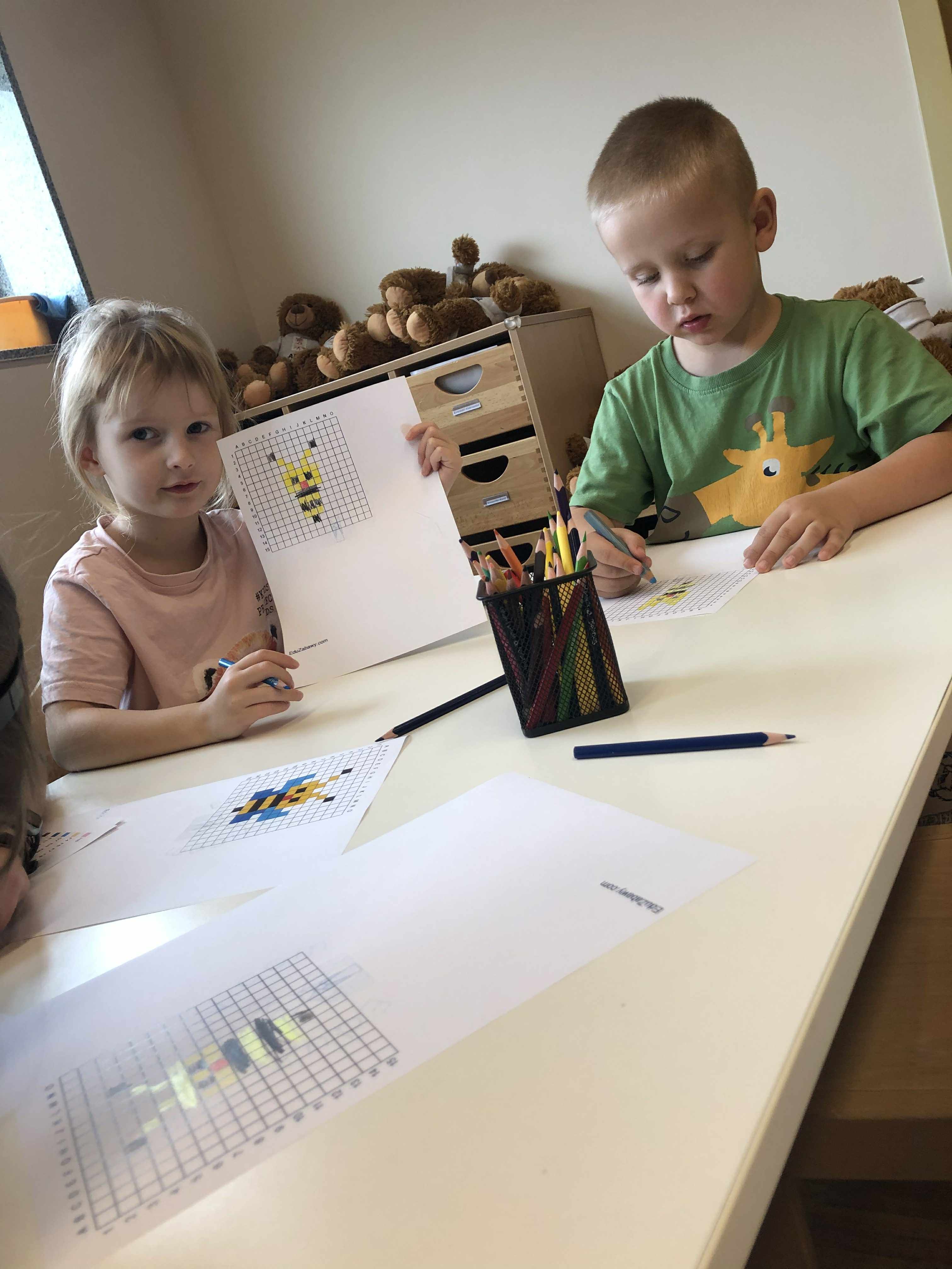 W minionym tygodniu w naszej grupie obchodziliśmy Tydzień Kodowania. Każdego dnia dzieci otrzymywały różnorodne materiały i zadania, dzięki którym mogły rozwijać umiejętność logicznego myślenia i spostrzegawczości. Dzieci dopasowywały obrazki do odpowiednich miejsc zgodnie z podanymi wskazówkami, rozwiązywały karty pracy z szyfrowaniem, a także wykonywały zadania typu „policz i dopasuj” o jesiennej tematyce. W jednym z dni odwiedzili nas licealiści, którzy przygotowali dla przedszkolaków ciekawe zadania z kodowania – dzieci malowały obrazki zgodnie z podanym kodem, układały sekwencje i brały udział w zabawach ruchowych z kolorami. To był bardzo ciekawy i twórczy tydzień, pełen zabawy, nauki i nowych doświadczeń!