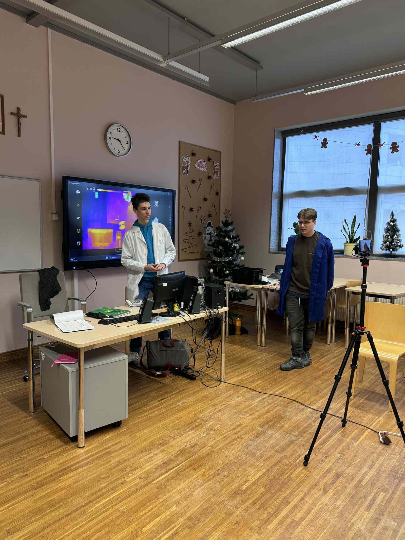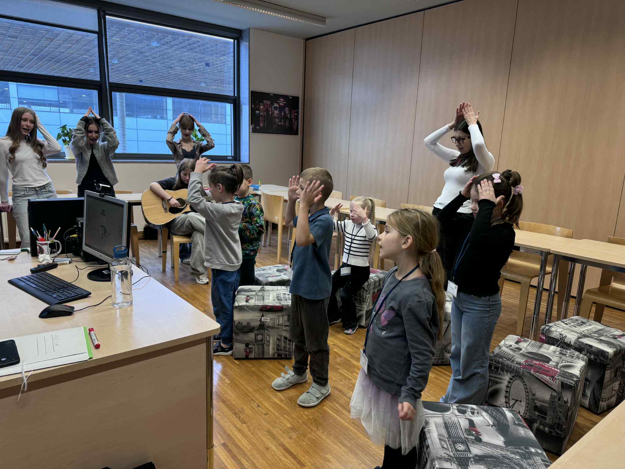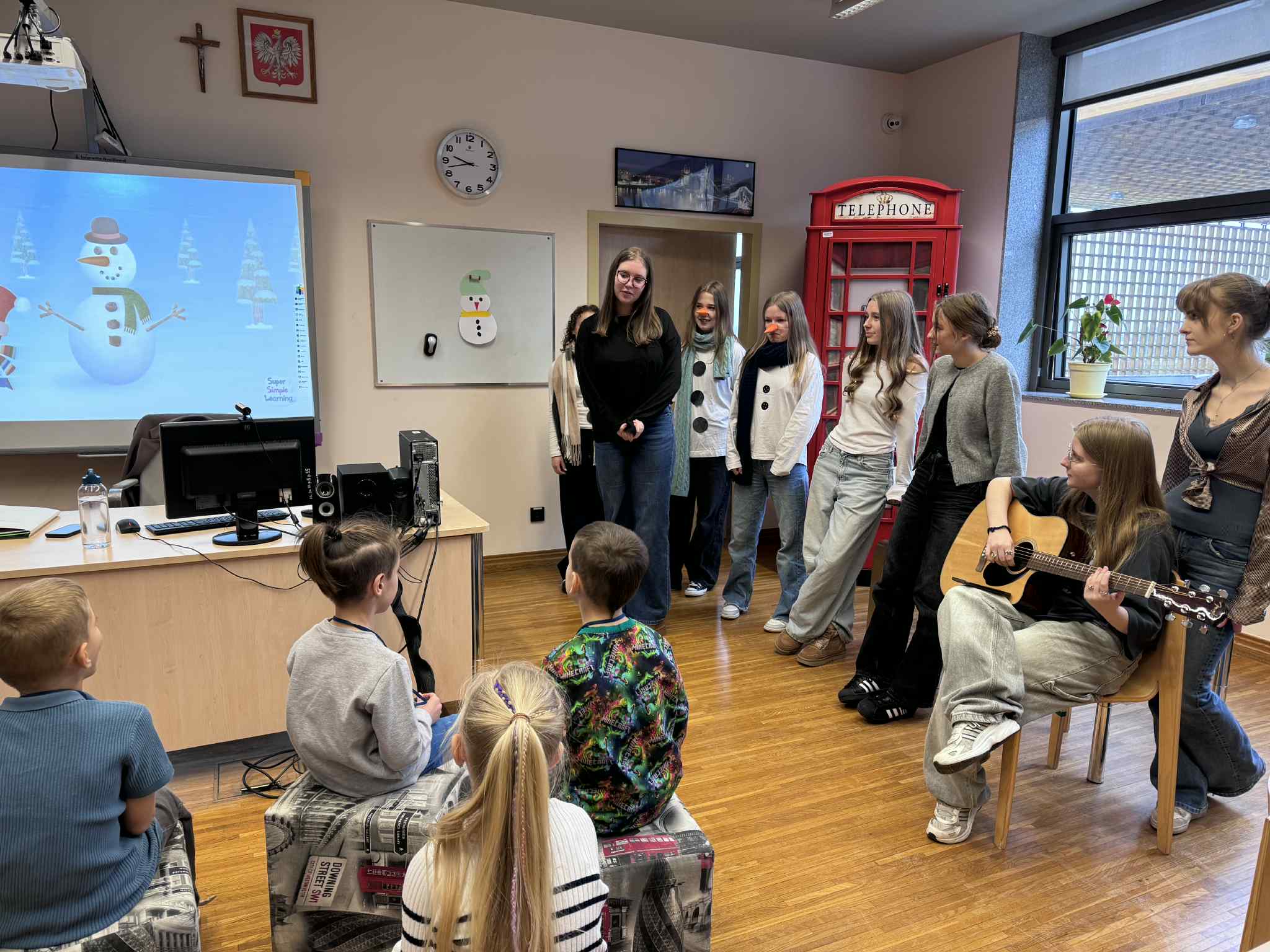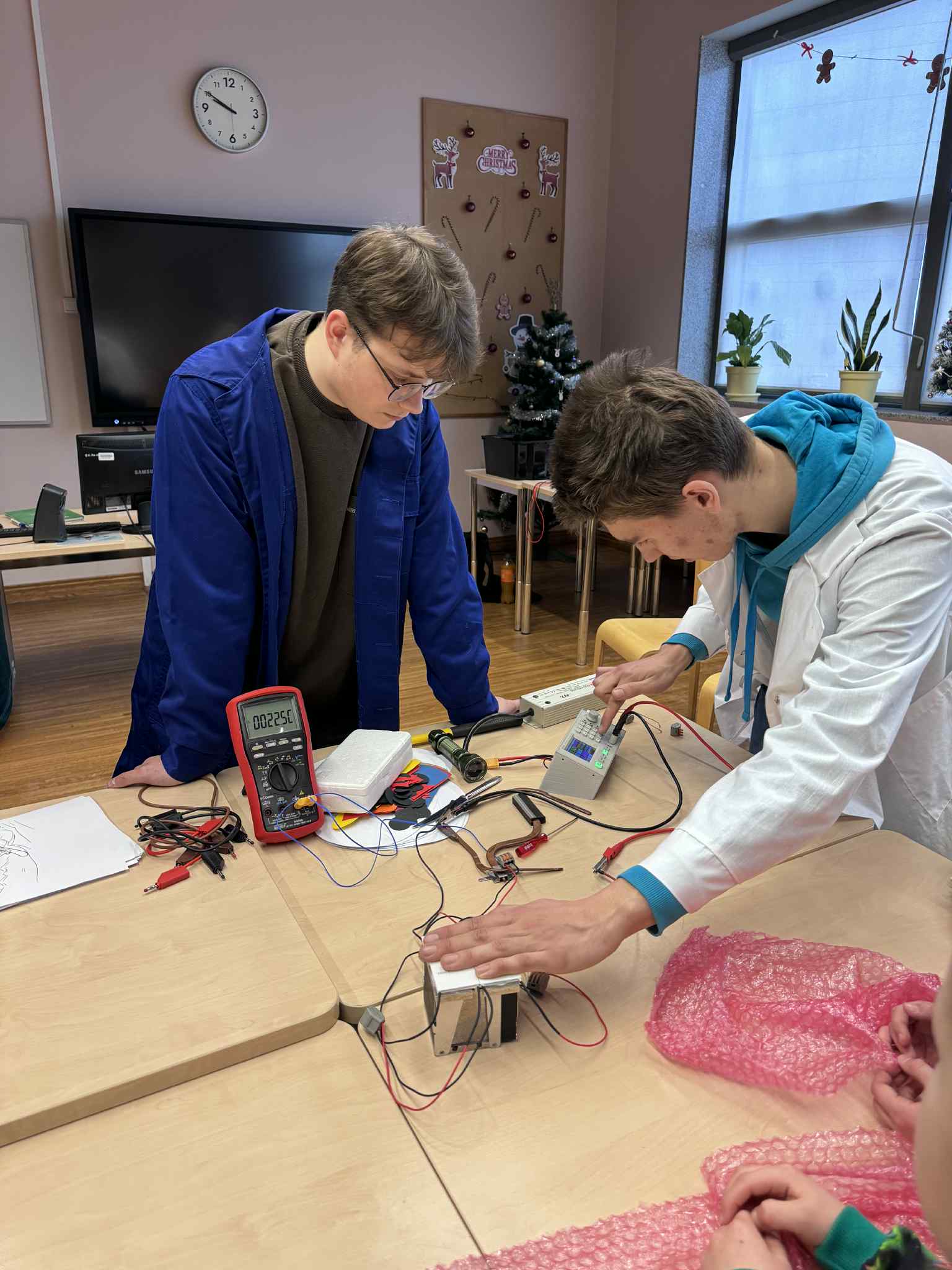 Szóste spotkanie w ramach Uniwersytetu Dziecięcego było pełne radości, ruchu i naukowych emocji. Podczas części językowej dzieci utrwalały nazwy części ciała oraz elementów ubrań w języku angielskim. Wykorzystując kreatywne zadania z bałwankami, mali studenci nazywali, dopasowywali i „ubierali” swoje postacie, ucząc się poprzez działanie, ruch i zabawę. Dzięki temu nauka słownictwa była naturalna i bardzo angażująca. Część zajęć z fizyki poprowadzona została przez uczniów technikum, którzy zaprezentowali dzieciom różnorodne eksperymenty naukowe. Pokazy wywołały ogromne zainteresowanie, zachwyt i mnóstwo pytań. Dzieci mogły obserwować zjawiska fizyczne z bliska, a nauka stała się prawdziwym widowiskiem.