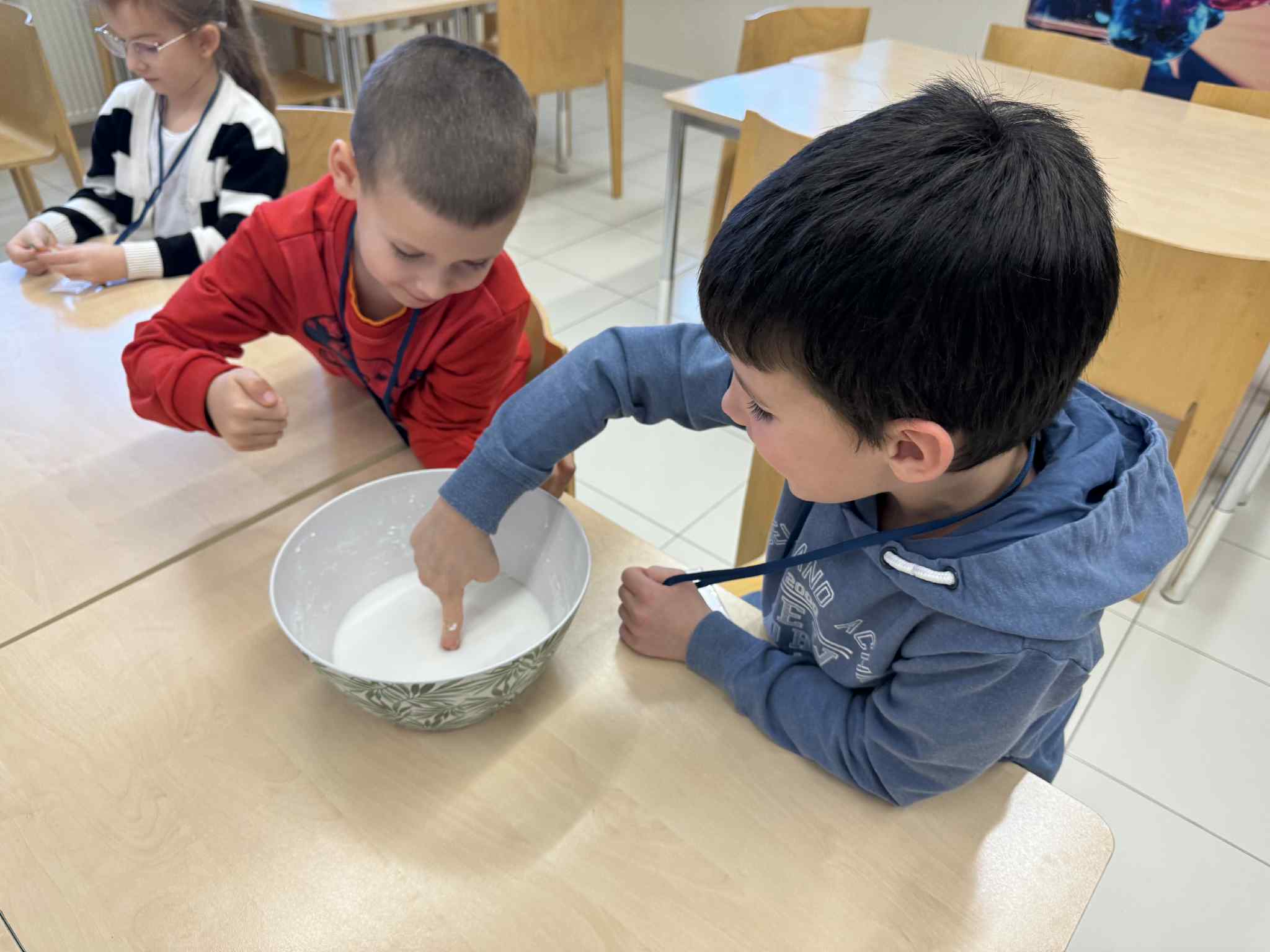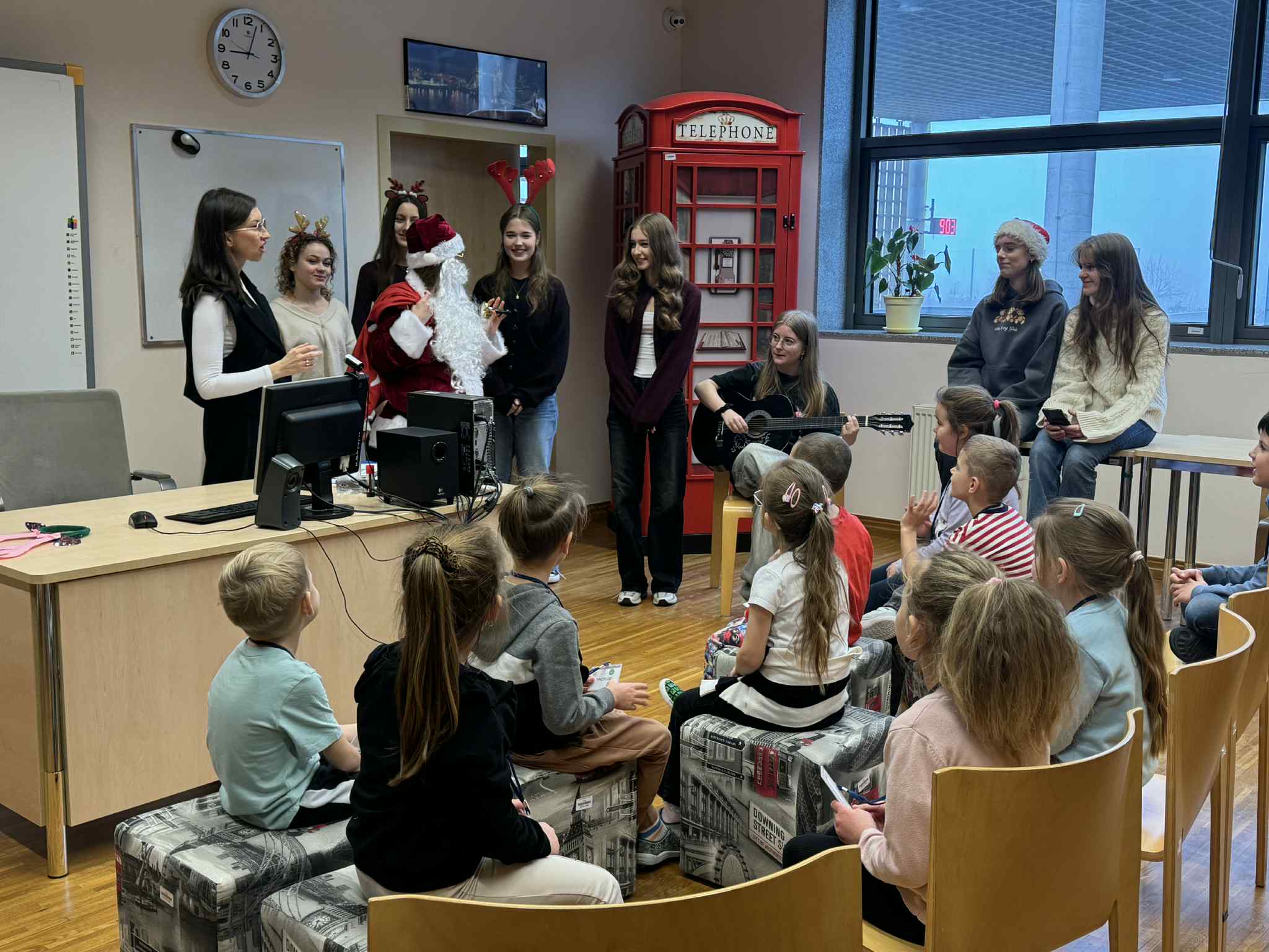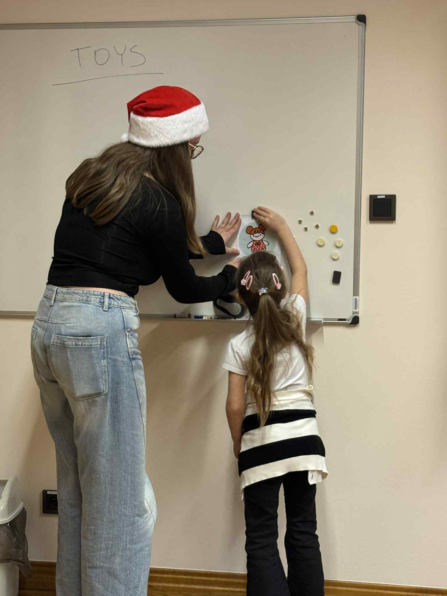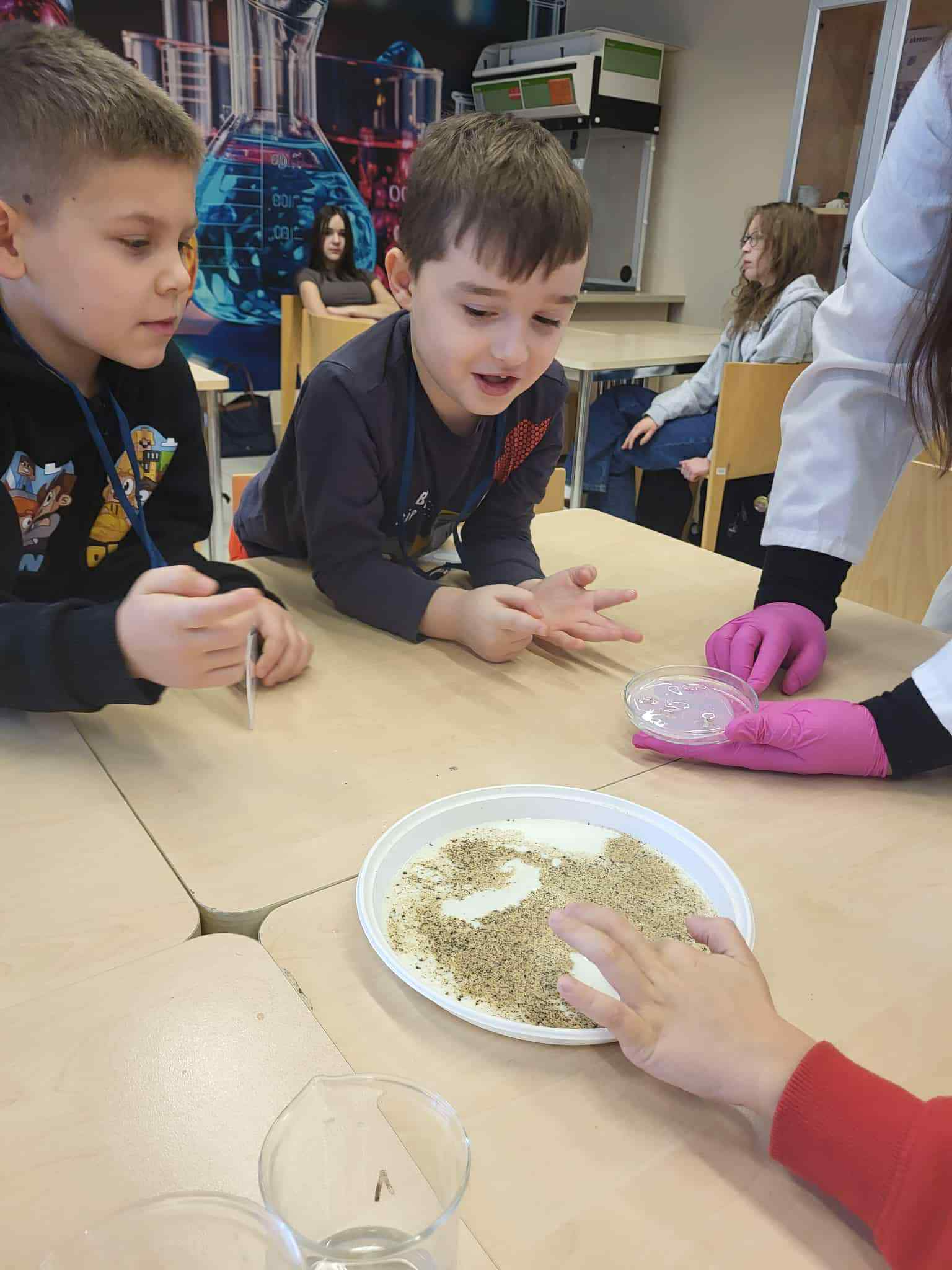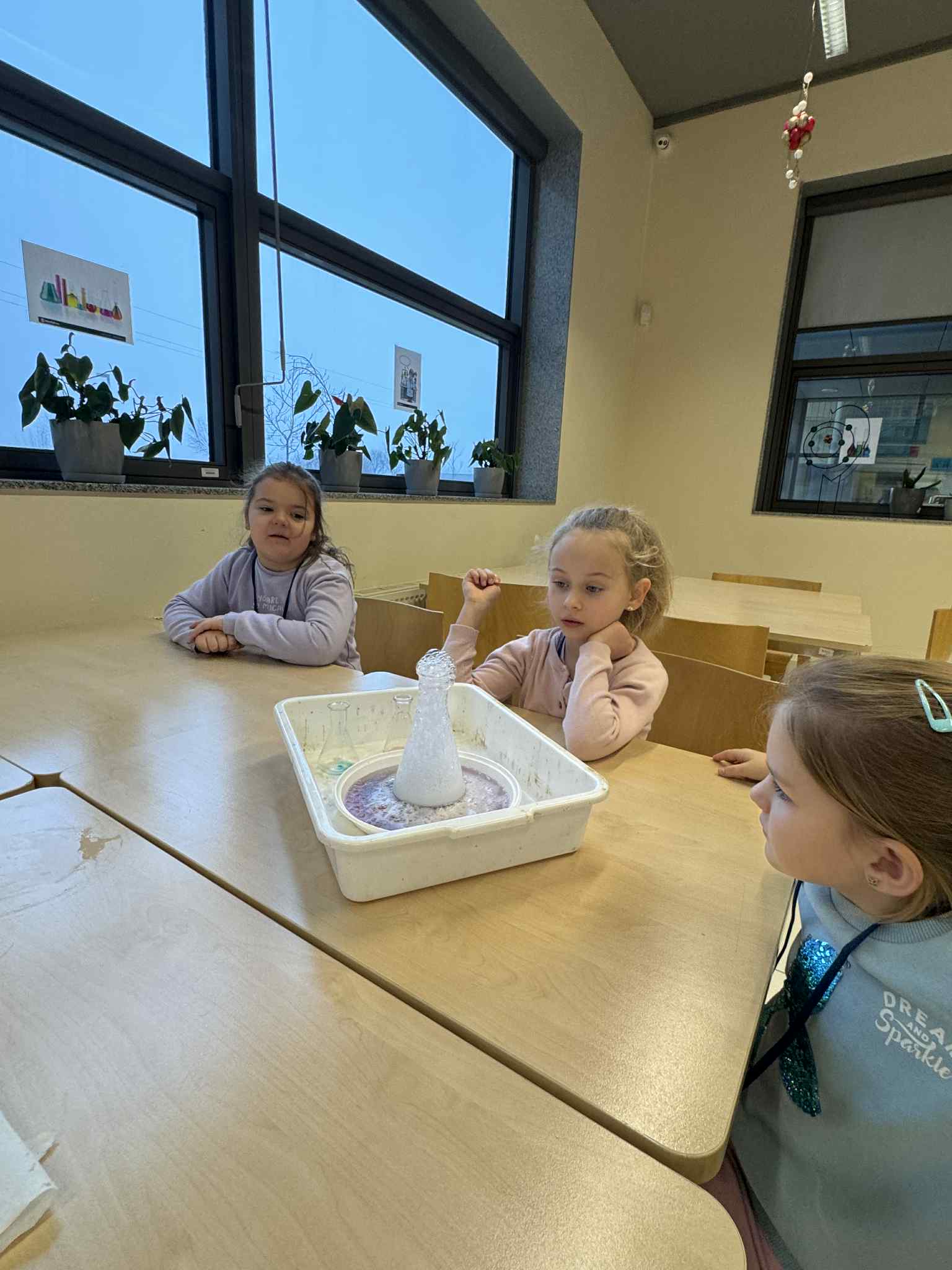 Podczas trzeciego spotkania w ramach Uniwersytetu Dziecięcego przedszkolaki uczestniczyły w wyjątkowych zajęciach chemicznych połączonych z nauką języka angielskiego. Dzieci miały okazję samodzielnie poznawać właściwości cieczy nienewtonowskiej, dotykając i obserwując, jak zmienia się jej zachowanie pod wpływem siły. Dużo emocji wzbudziło również tworzenie domowego wulkanu, który efektownie „wybuchał” dzięki reakcji chemicznej. Kolejnym doświadczeniem było eksperymentowanie z pieprzem i wodą, podczas którego dzieci obserwowały, jak powierzchnia wody reaguje na dodanie detergentu. Część językowa zajęć również była pełna wrażeń, ponieważ odwiedził nas prawdziwy Mikołaj! Wspólne spotkanie pozwoliło dzieciom utrwalić i poszerzyć słownictwo związane z zabawkami w języku angielskim. Przedszkolaki aktywnie uczestniczyły w zabawach językowych, nazywając otrzymane prezenty oraz przedmioty umieszczone w świątecznym worku.Zajęcia były pełne radości, odkryć i świątecznej atmosfery, a dzieci z zaangażowaniem brały udział zarówno w eksperymentach, jak i aktywnościach językowych.