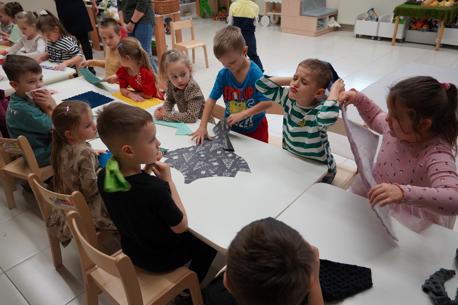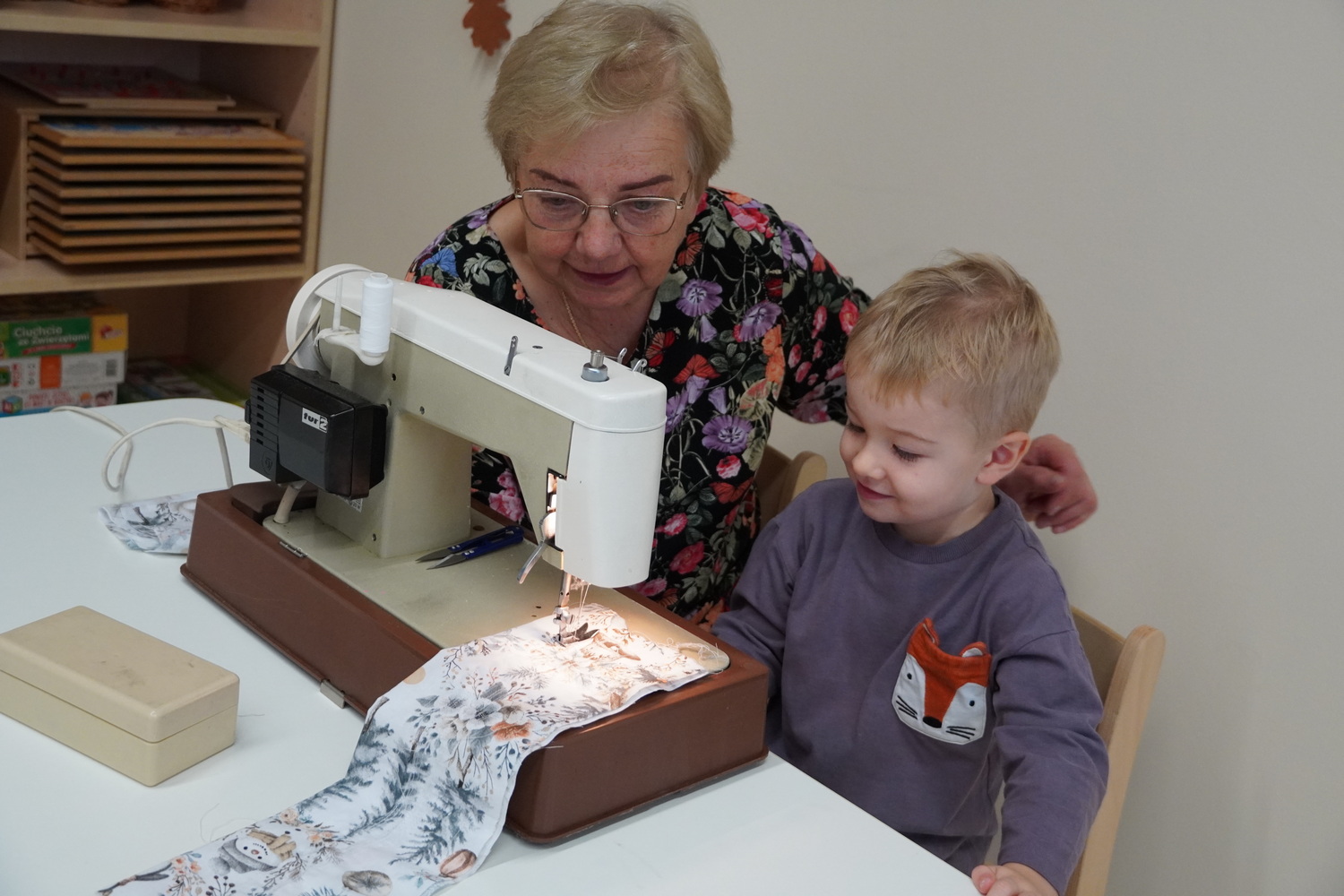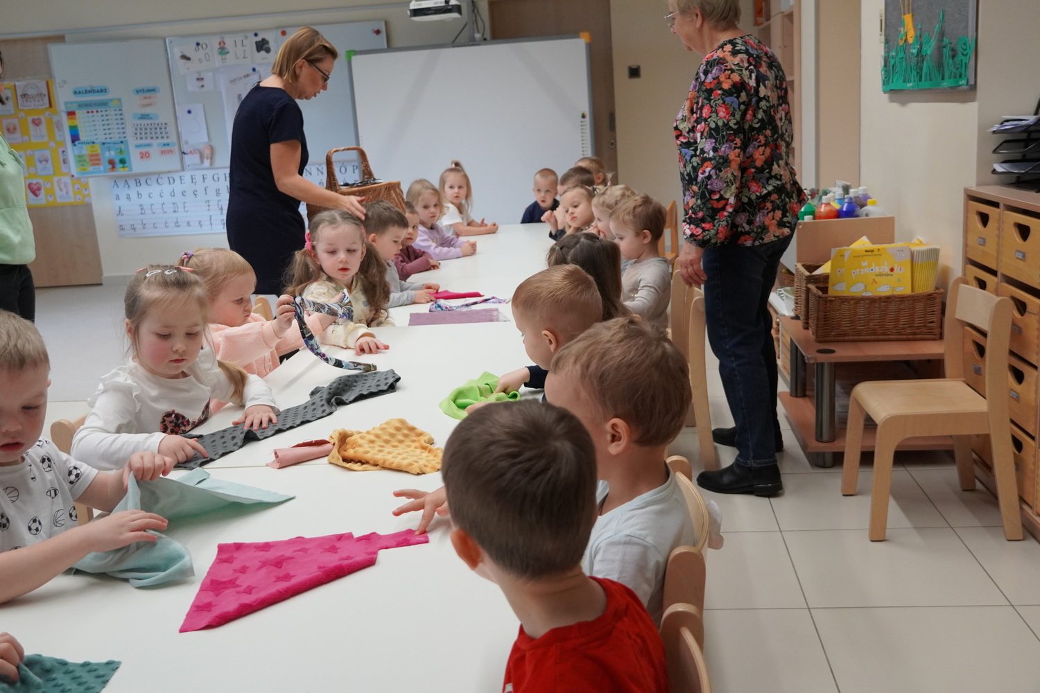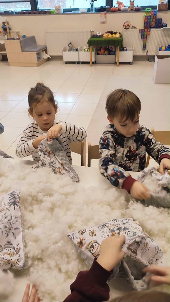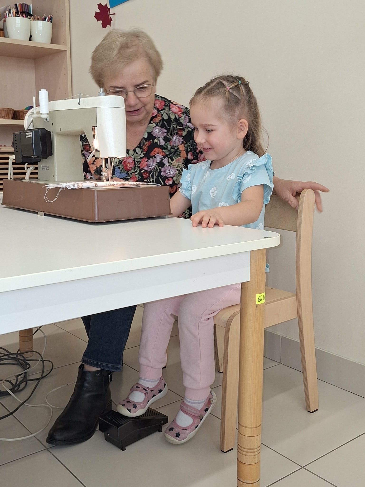 Dzisiaj w naszym przedszkolu odbyły się warsztaty krawieckie . Na początek dzieci zapoznały się z praca krawcowej mogły samodzielnie usiąść przy maszynie i przeszyć kawałek materiału . Kolejnym zadaniem było zrobienie korali z guzików i nitki dzieci bardzo dobrze sobie z tym poradziły z tym wyzwaniem .Na zakończenie dzieci wypełniły poduszki specjalnym wypełniaczem , które następnie panie krawcowe pięknie zaszyły . Zajęcia pozwoliły na rozwijanie zdolności manualnych dzieci kreatywności oraz współpracy. Poduszki, które wykonały dzieci będzie można zakupić 7 grudnia na kiermaszu Charytatywnym a dochód z nich zostanie przekazany dla podopiecznych Fundacji Gajusz .