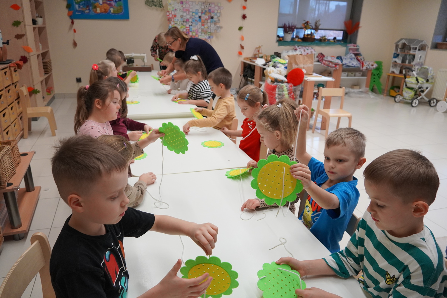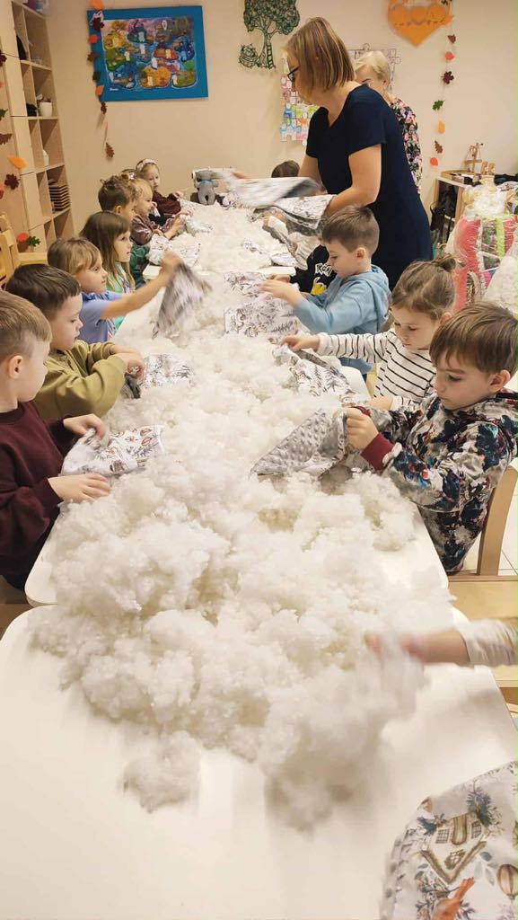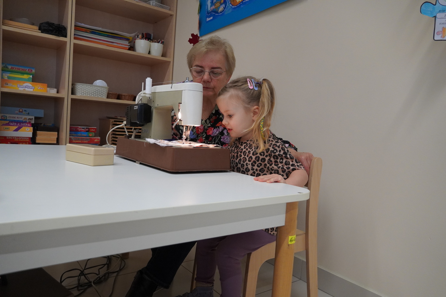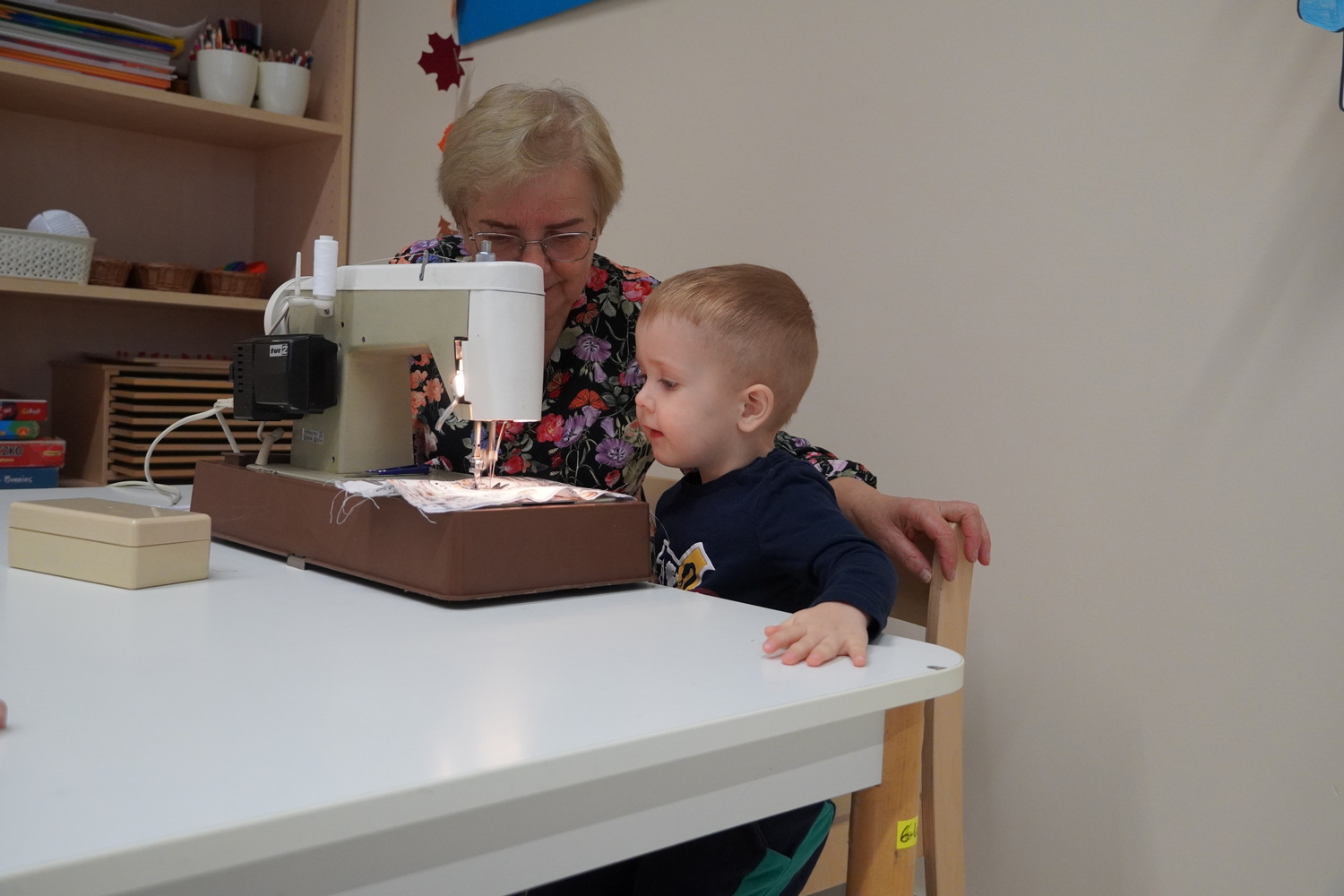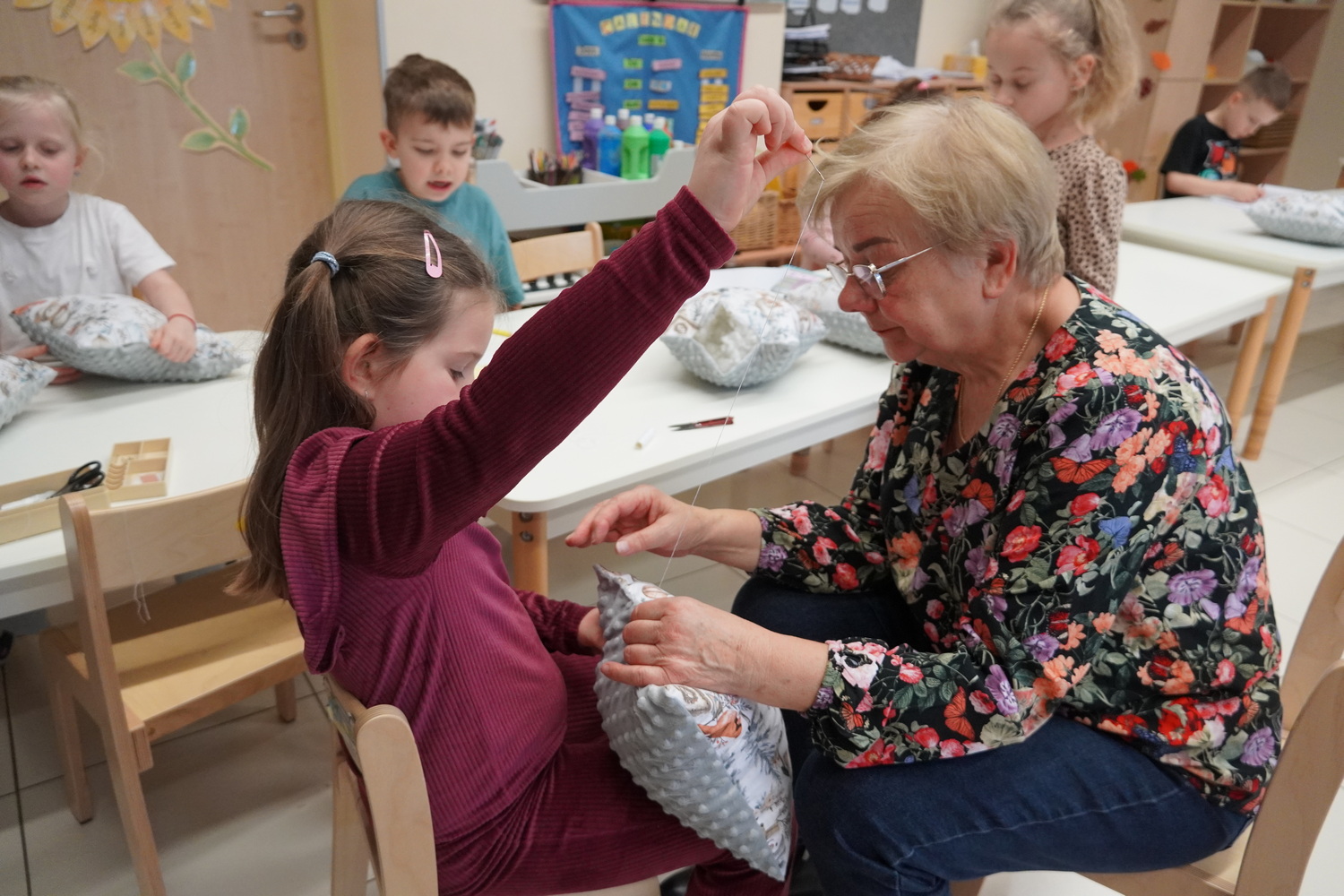 Dzisiaj w naszym przedszkolu odbyły się warsztaty krawieckie . Na początek dzieci zapoznały się z praca krawcowej mogły samodzielnie usiąść przy maszynie i przeszyć kawałek materiału . Kolejnym zadaniem było zrobienie korali z guzików i nitki dzieci bardzo dobrze sobie z tym poradziły z tym wyzwaniem .Na zakończenie dzieci wypełniły poduszki specjalnym wypełniaczem , które następnie panie krawcowe pięknie zaszyły . Zajęcia pozwoliły na rozwijanie zdolności manualnych dzieci kreatywności oraz współpracy. Poduszki, które wykonały dzieci będzie można zakupić 7 grudnia na kiermaszu Charytatywnym a dochód z nich zostanie przekazany dla podopiecznych Fundacji Gajusz .