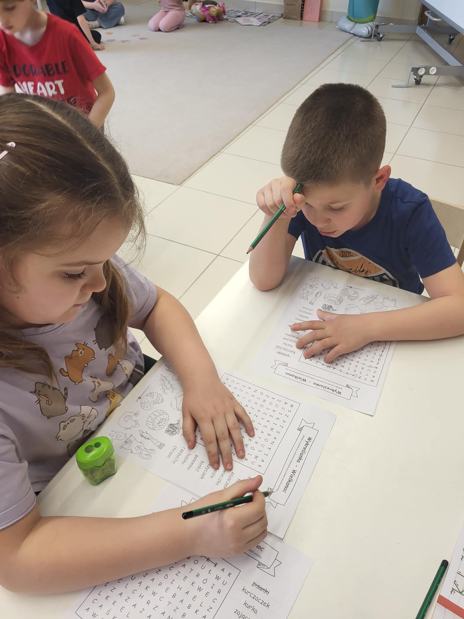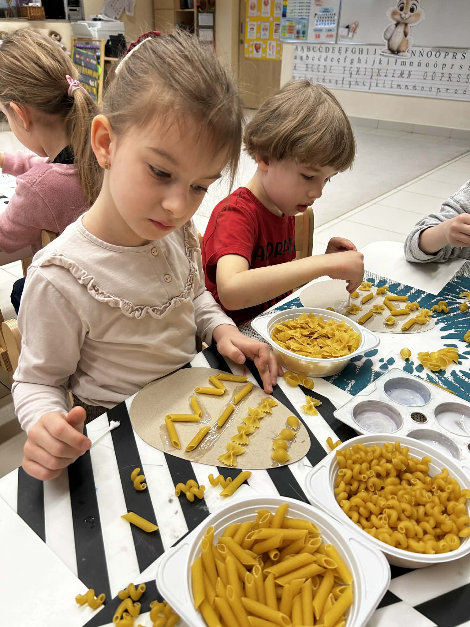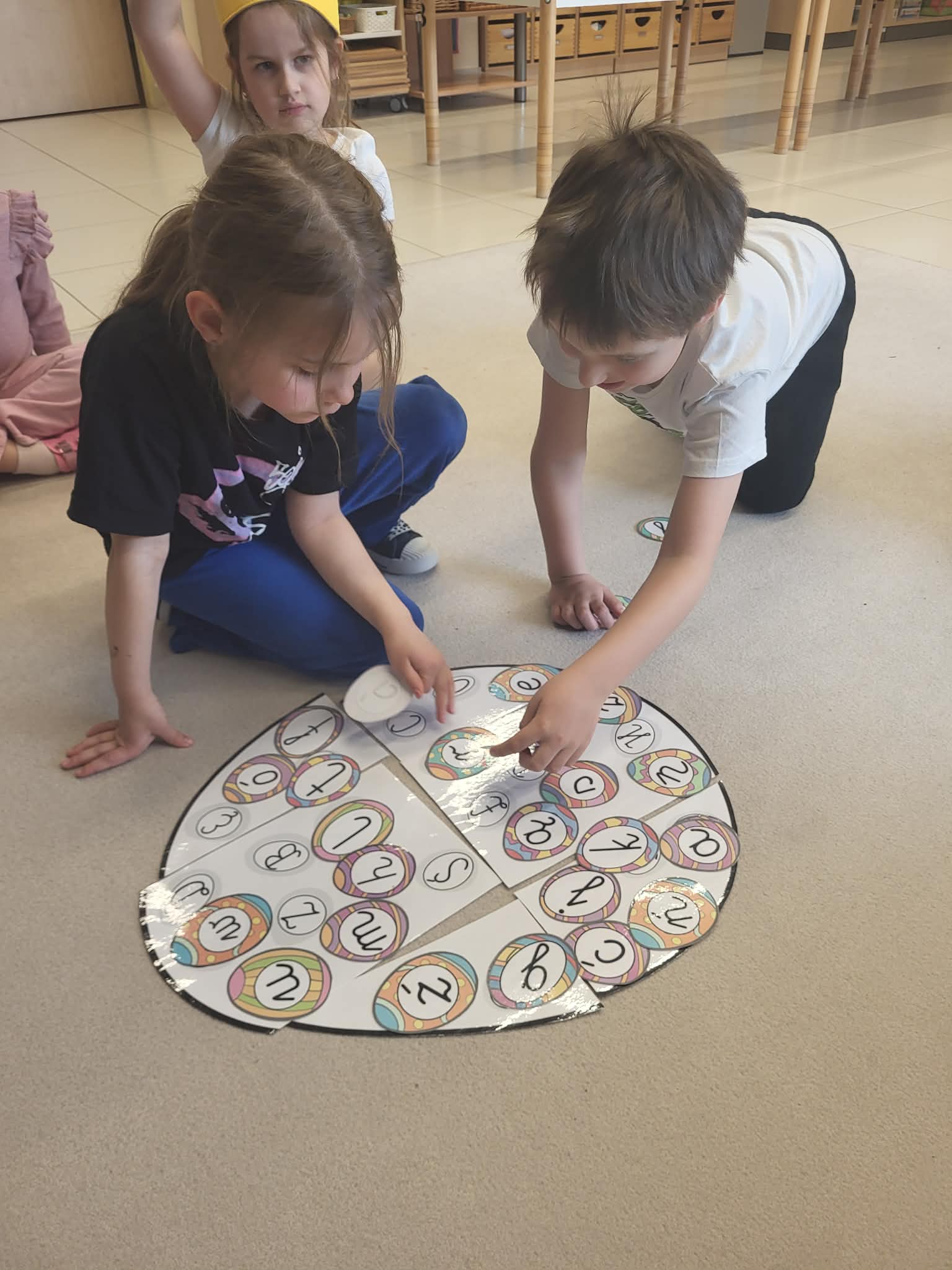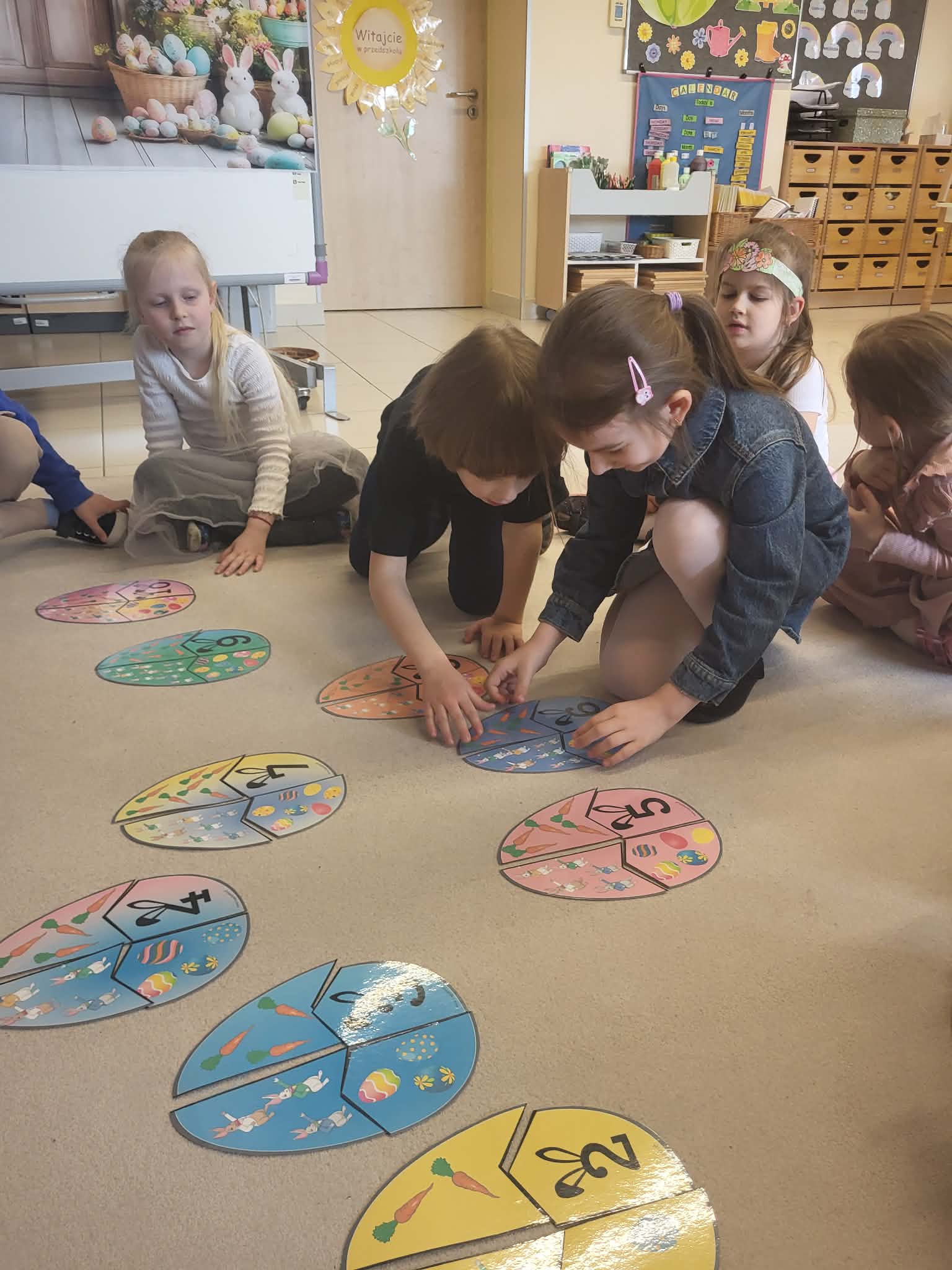 Miniony tydzień w przedszkolu upłynął nam w radosnej, świątecznej atmosferze przygotowań do Wielkanocy. Dzieci poprzez gry matematyczne, zabawy językowe oraz różnorodne działania plastyczne poznawały wielkanocne zwyczaje i tradycje. Przedszkolaki dowiedziały się, co znajduje się w świątecznym koszyczku, poznawały różne rodzaje pisanek i samodzielnie tworzyły własne ozdoby – między innymi pisanki z makaronu oraz papierowe kurczaczki. Nie zabrakło także zabaw dydaktycznych rozwijających spostrzegawczość i logiczne myślenie, takich jak dopasowywanie elementów, segregowanie jajek czy układanie sylabowych wyrazów.