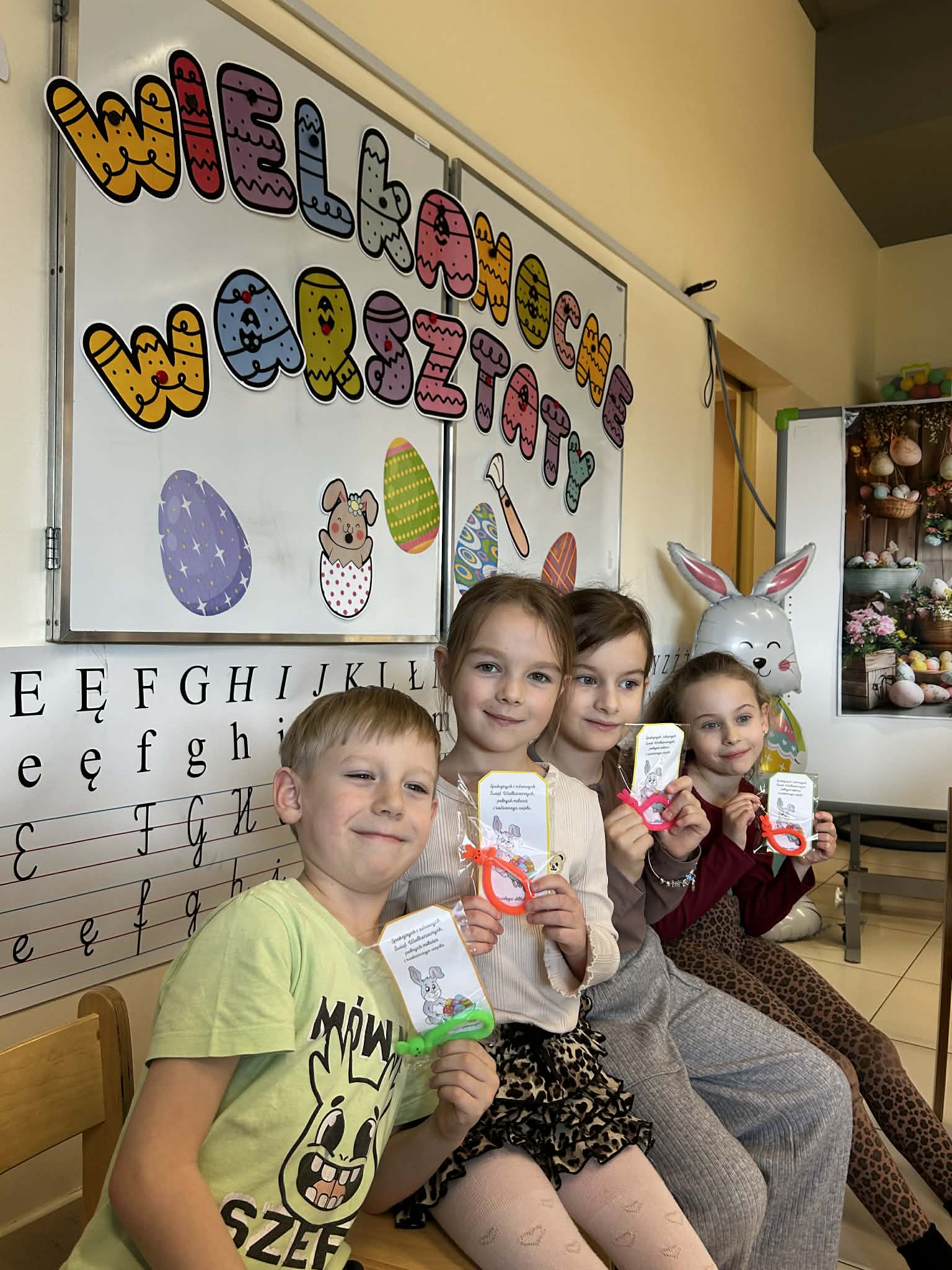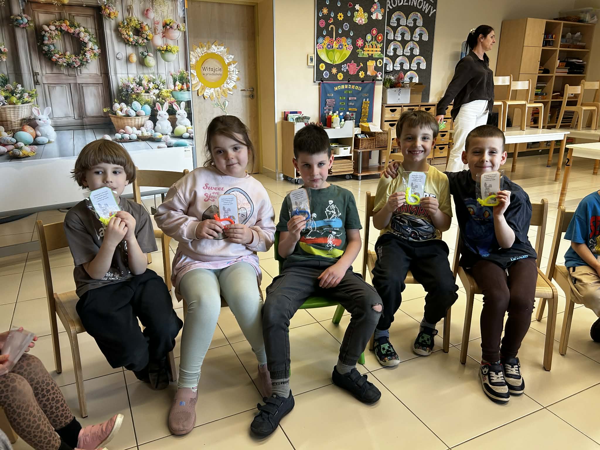 Dużym przeżyciem były warsztaty wielkanocne, podczas których dzieci stworzyły wyjątkowy „las w słoiku”. Na zakończenie tygodnia przedszkolaki otrzymały drobne upominki, a wspólne, pamiątkowe zdjęcie przy wielkanocnym zajączku było pięknym zwieńczeniem tego pełnego radości czasu.