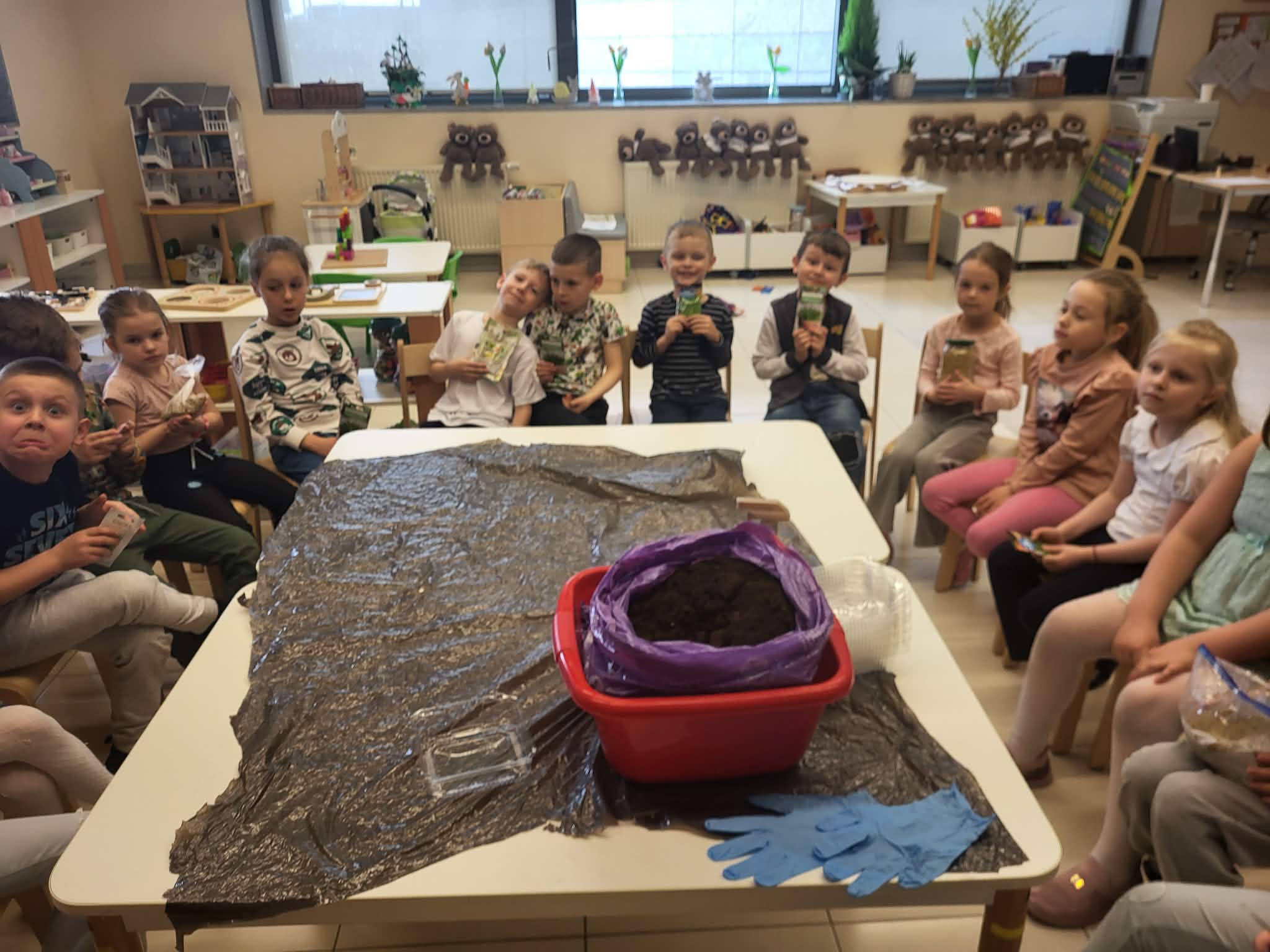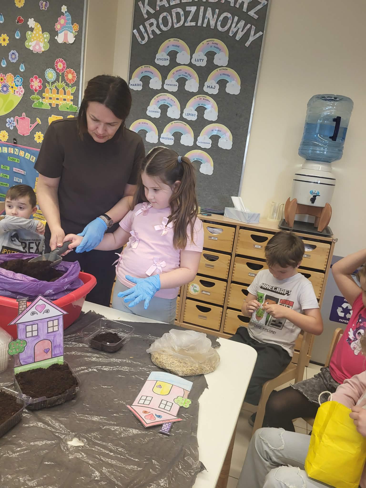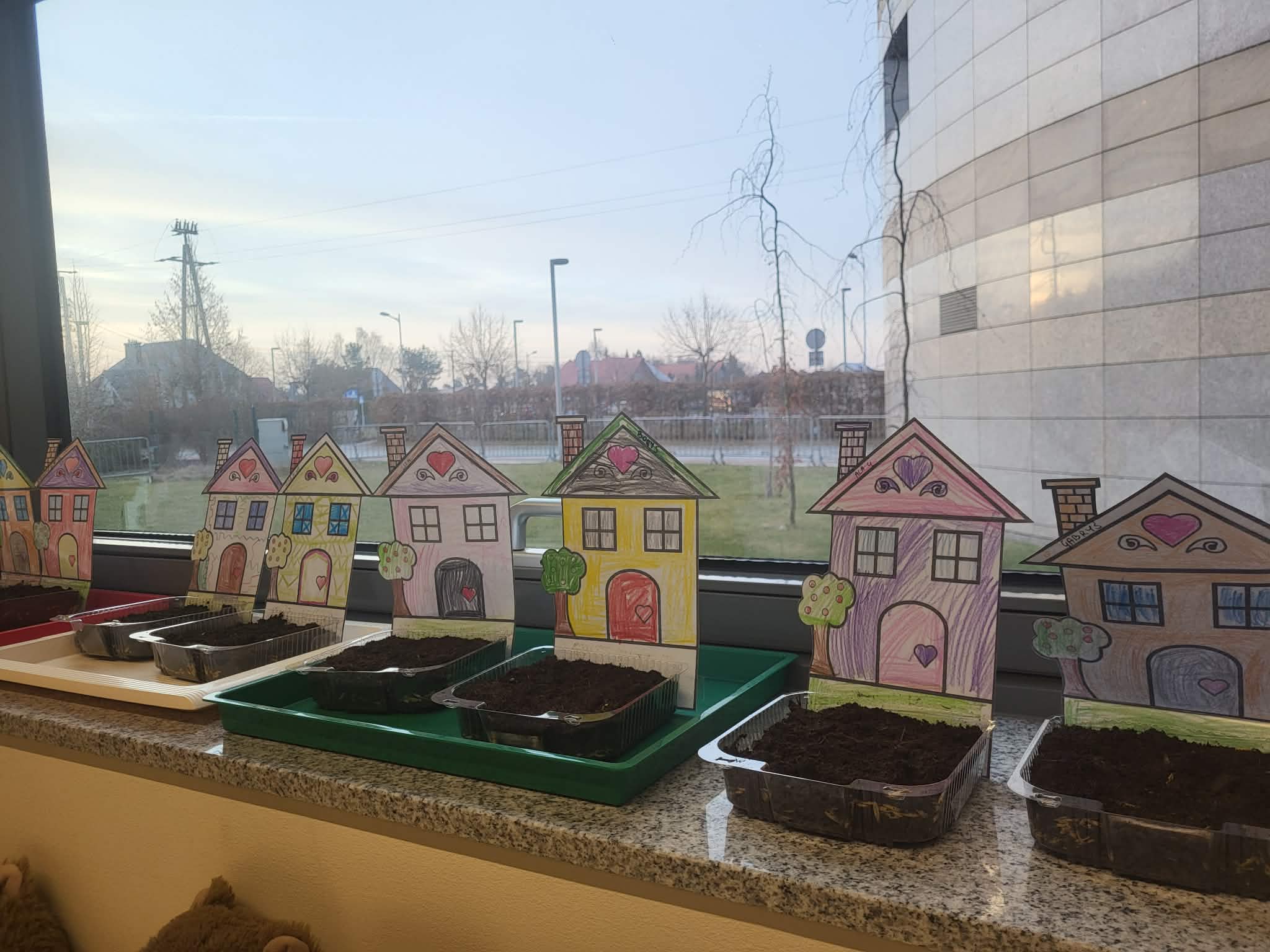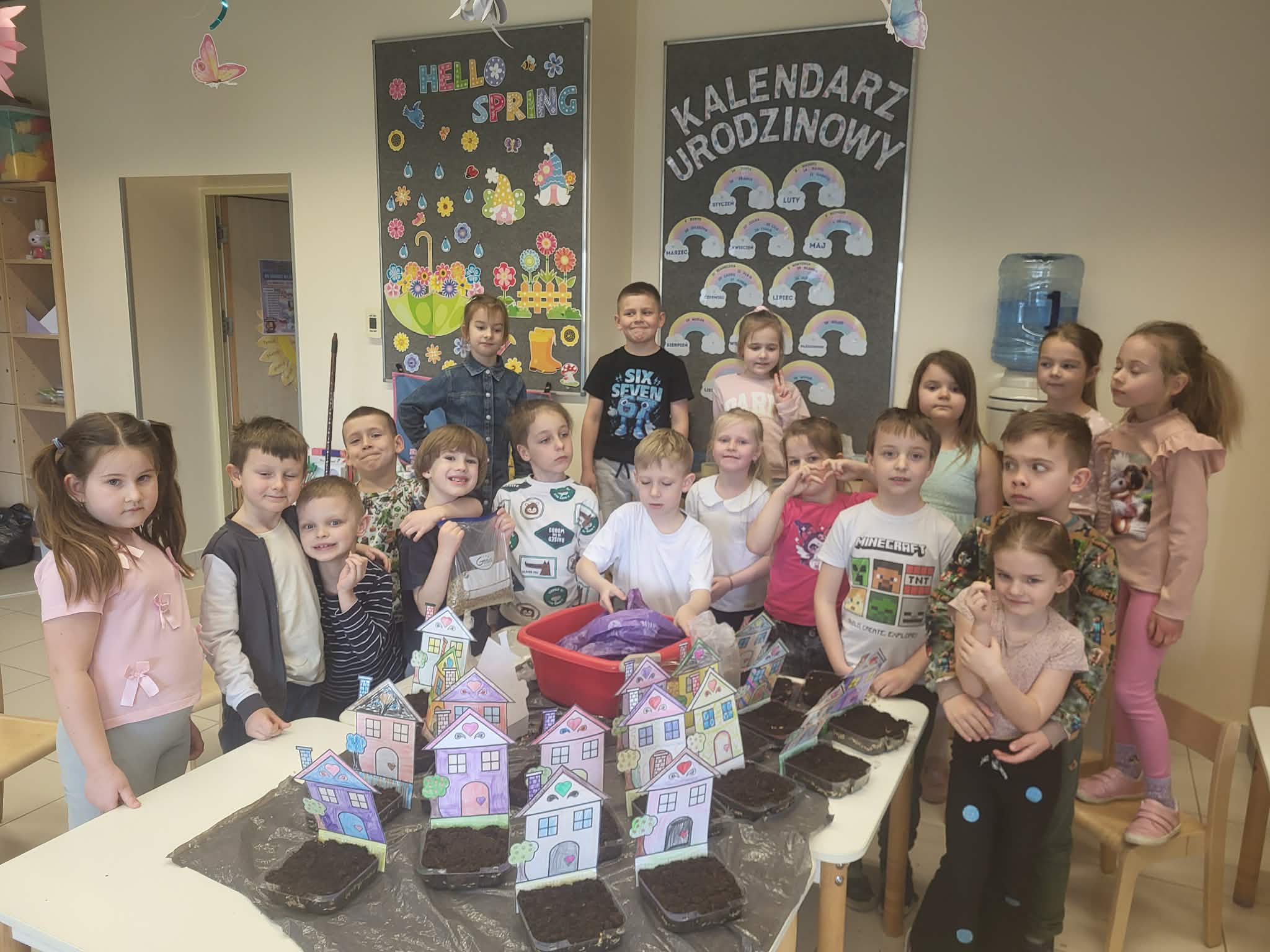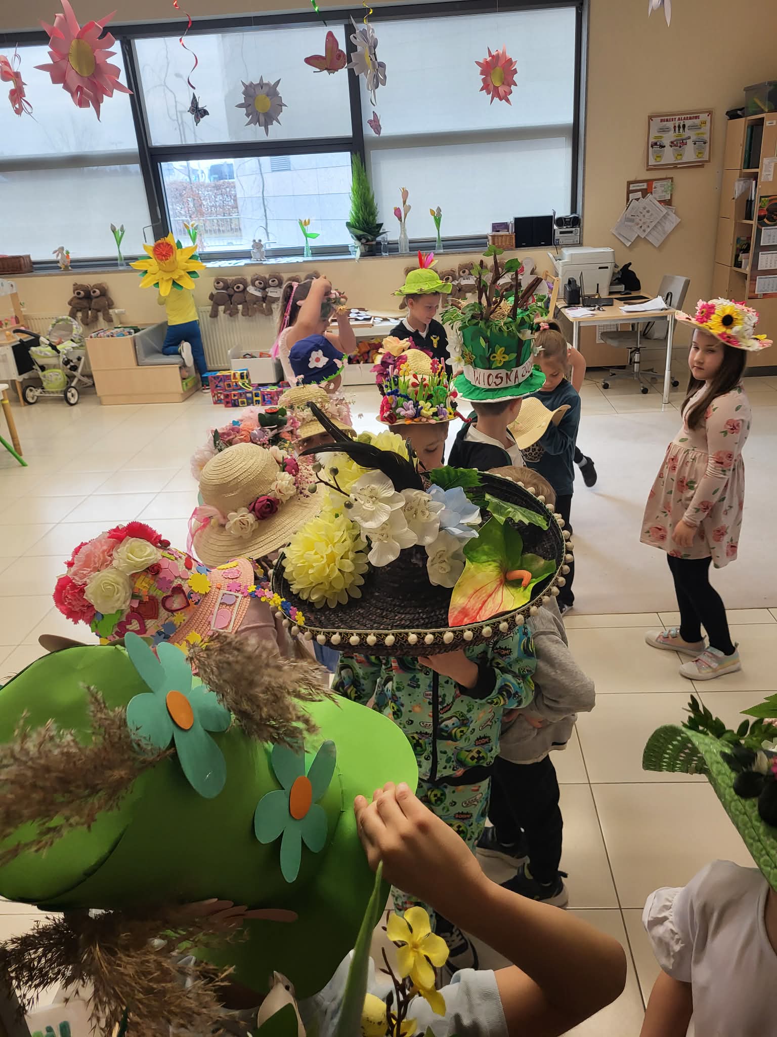 Wraz z nadejściem cieplejszych dni rozpoczęliśmy poszukiwania pierwszych oznak wiosny. Podczas spacerów dzieci z ciekawością wypatrywały pierwszych kwiatów oraz obserwowały przyrodę budzącą się do życia. Słuchaliśmy także śpiewu ptaków i przypomnieliśmy sobie, jakie ptaki wracają do nas wiosną. Przygotowując się do powitania wiosny, założyliśmy małe ogródki na parapetach. Dzieci samodzielnie zasiały owies i z dużym zainteresowaniem obserwują jego wzrost. W naszej sali pojawiły się również pierwsze wiosenne kwiaty – żonkile, tulipany i hiacynty, które wprowadziły prawdziwie wiosenny nastrój. Podczas zajęć przypomnieliśmy sobie, czego potrzebują rośliny, aby rosnąć, oraz poznaliśmy kolejne etapy ich wzrostu. Wspólne powitanie wiosny uświetnił kolorowy pokaz wiosennych kapeluszy przygotowanych przez dzieci. Korzystając z pięknej pogody, coraz częściej wychodzimy także na plac zabaw, ciesząc się pierwszymi ciepłymi promieniami słońca. W trakcie zajęć plastycznych powstały również wiosenne prace – kolorowe kwiaty oraz bociany witające nadchodzącą porę roku. Wiosna na dobre zagościła już w naszym przedszkolu!