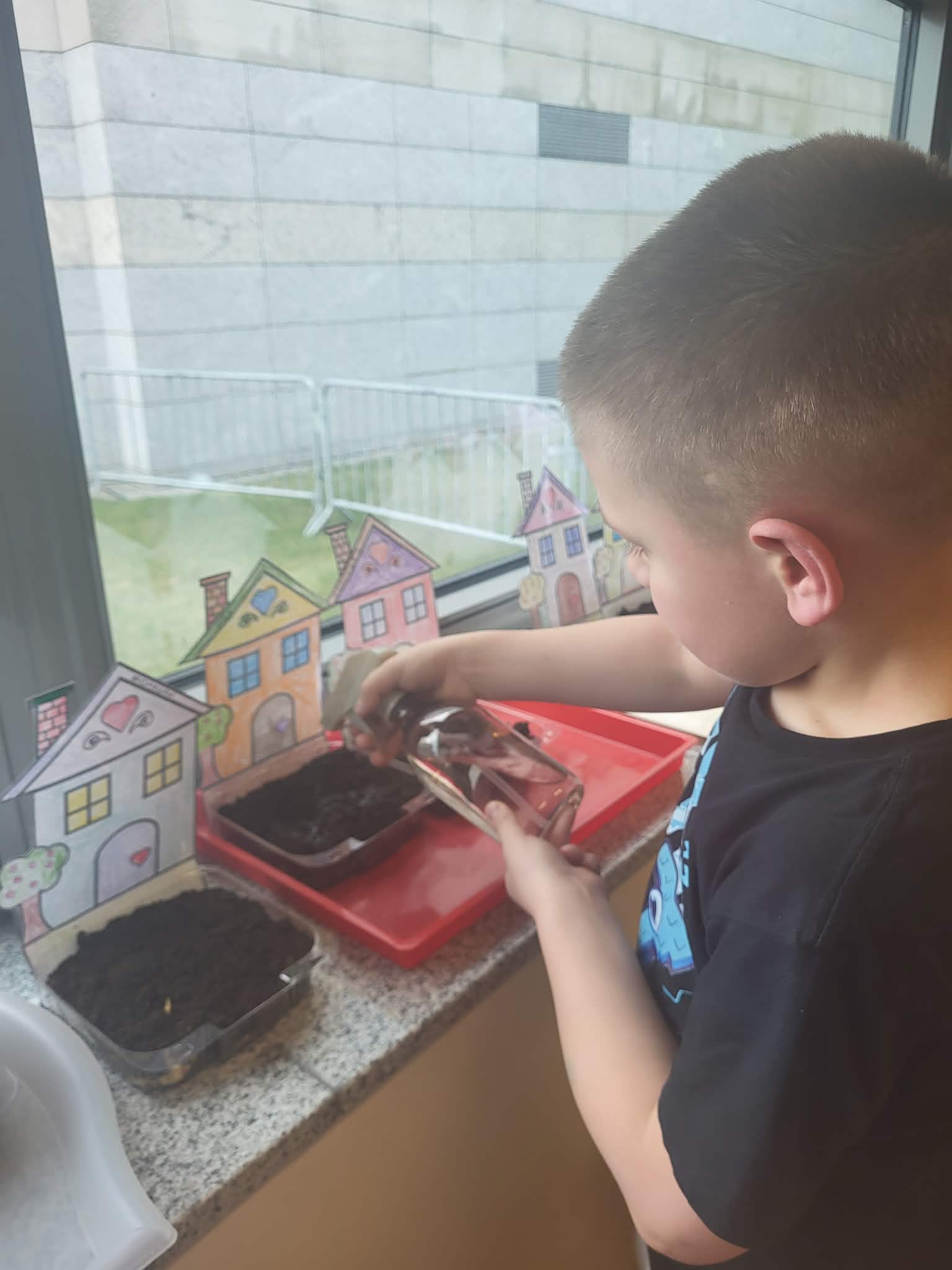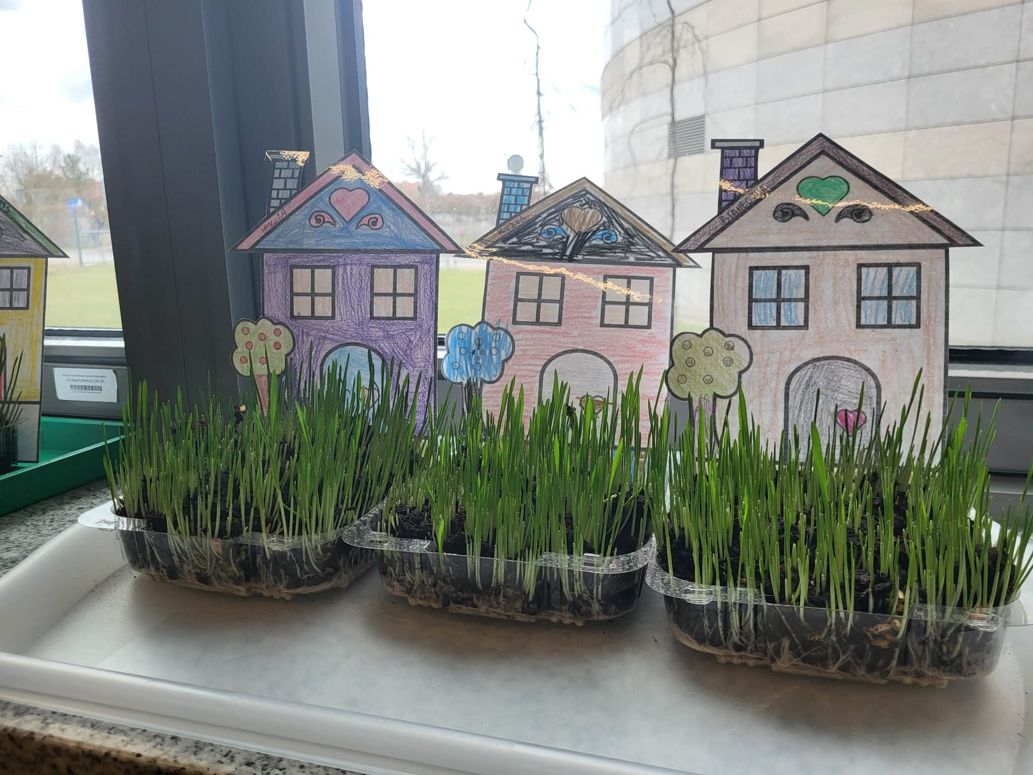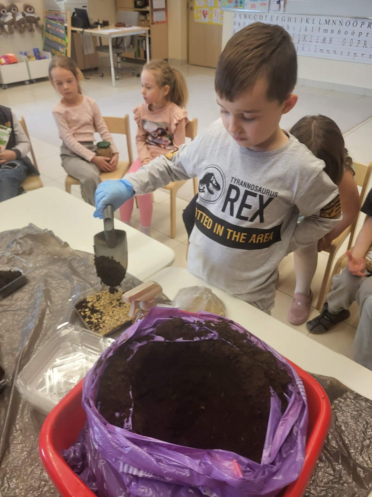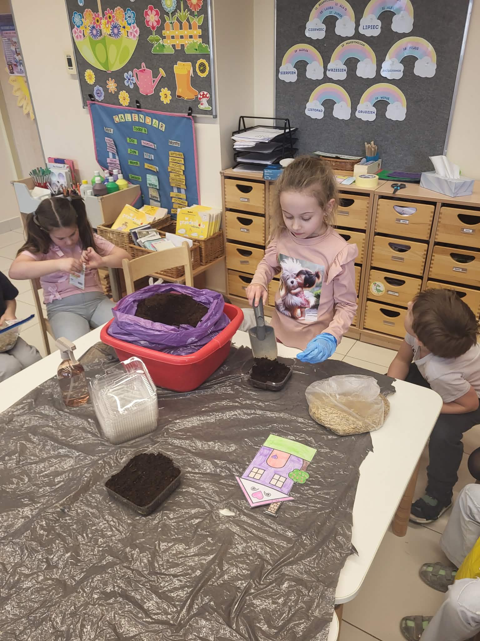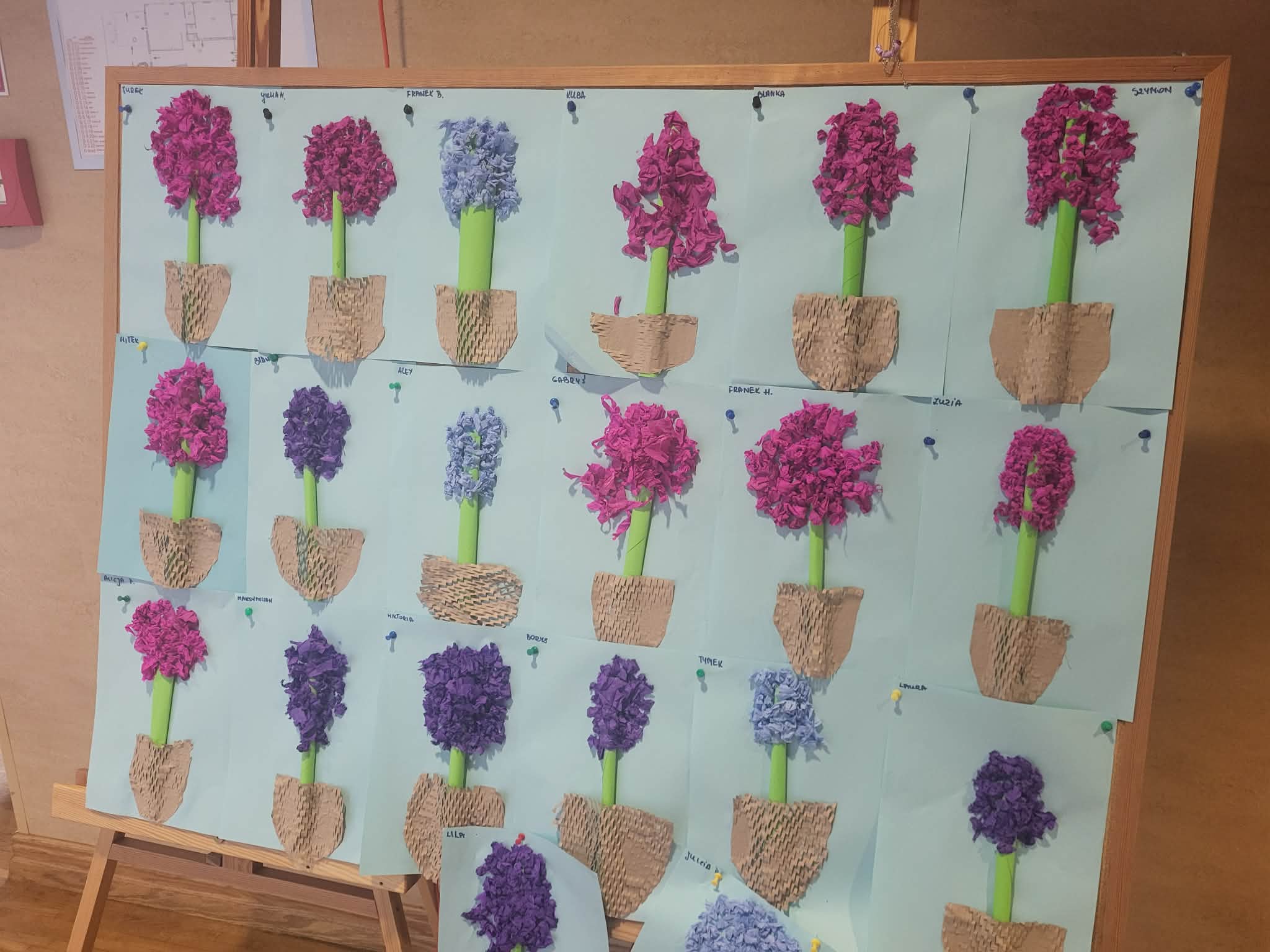 Wraz z nadejściem cieplejszych dni rozpoczęliśmy poszukiwania pierwszych oznak wiosny. Podczas spacerów dzieci z ciekawością wypatrywały pierwszych kwiatów oraz obserwowały przyrodę budzącą się do życia. Słuchaliśmy także śpiewu ptaków i przypomnieliśmy sobie, jakie ptaki wracają do nas wiosną. Przygotowując się do powitania wiosny, założyliśmy małe ogródki na parapetach. Dzieci samodzielnie zasiały owies i z dużym zainteresowaniem obserwują jego wzrost. W naszej sali pojawiły się również pierwsze wiosenne kwiaty – żonkile, tulipany i hiacynty, które wprowadziły prawdziwie wiosenny nastrój. Podczas zajęć przypomnieliśmy sobie, czego potrzebują rośliny, aby rosnąć, oraz poznaliśmy kolejne etapy ich wzrostu. Wspólne powitanie wiosny uświetnił kolorowy pokaz wiosennych kapeluszy przygotowanych przez dzieci. Korzystając z pięknej pogody, coraz częściej wychodzimy także na plac zabaw, ciesząc się pierwszymi ciepłymi promieniami słońca. W trakcie zajęć plastycznych powstały również wiosenne prace – kolorowe kwiaty oraz bociany witające nadchodzącą porę roku. Wiosna na dobre zagościła już w naszym przedszkolu!