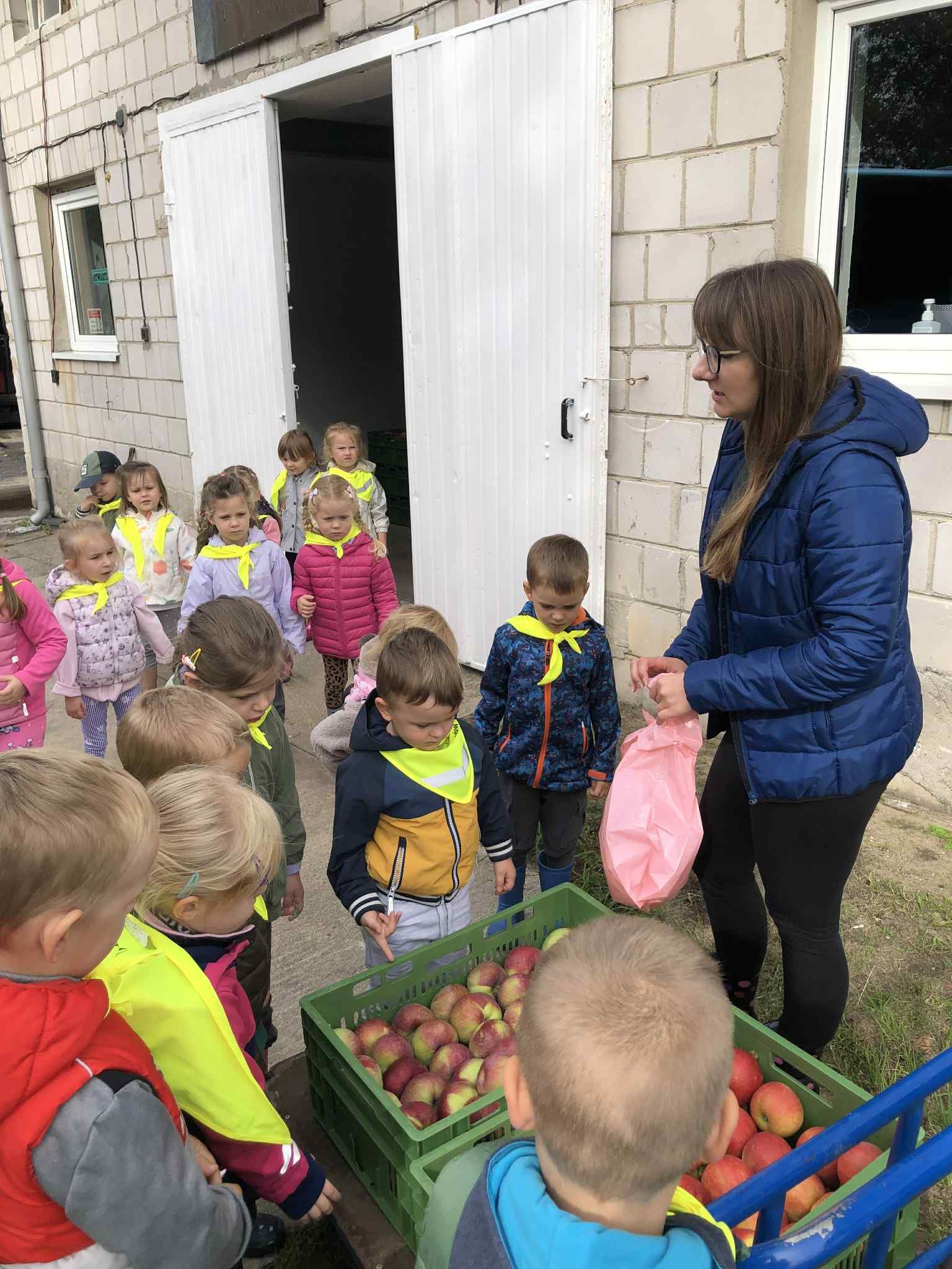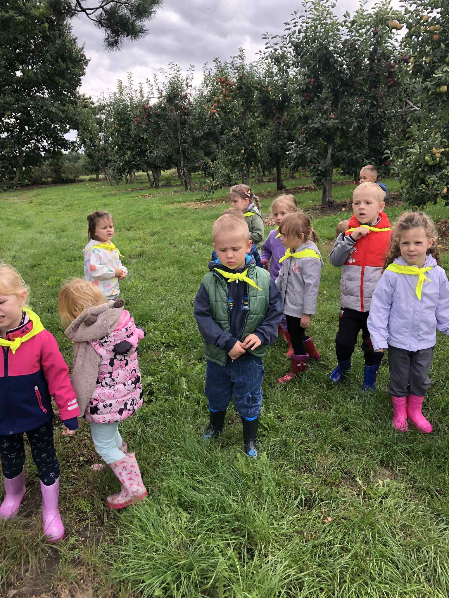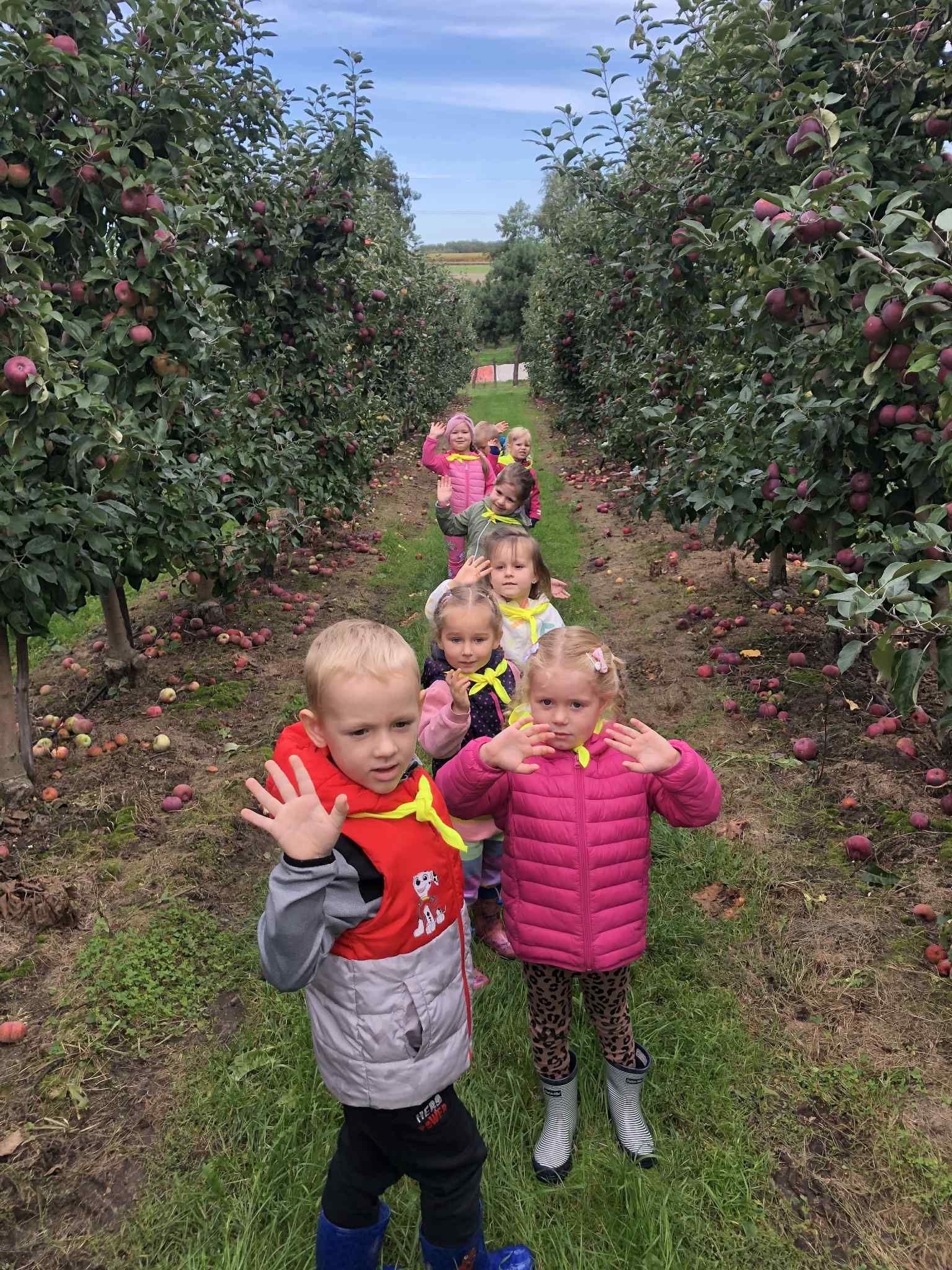 We wtorek, 16 września, dzieci z grupy 4-latków odwiedziły sad owocowy w Sulmierzycach należący do pana Wojciecha Musiała. Podczas wycieczki przedszkolaki miały okazję zwiedzić sad, obserwować drzewa pełne owoców oraz poznać prace wykonywane przez sadownika. Pan Maciej pokazał dzieciom także miejsca przechowywania jabłek i opowiedział o tym, jak dba się o owoce, aby jak najdłużej zachowały świeżość .Największą atrakcją okazała się degustacja soczystych jabłek prosto z sadu. Dzieci zajadały je ze smakiem, a sama możliwość skosztowania owoców w tak wyjątkowym miejscu sprawiła im ogromną radość. W drodze powrotnej, już w autokarze, maluchy z apetytem sięgały po kolejne jabłuszka, co również było dla nich dodatkową frajdą .Wycieczka okazała się wartościowym doświadczeniem edukacyjnym – dzieci nie tylko poszerzyły swoją wiedzę o pracy sadownika i uprawie owoców, ale także spędziły czas na świeżym powietrzu w pięknym otoczeniu przyrody.