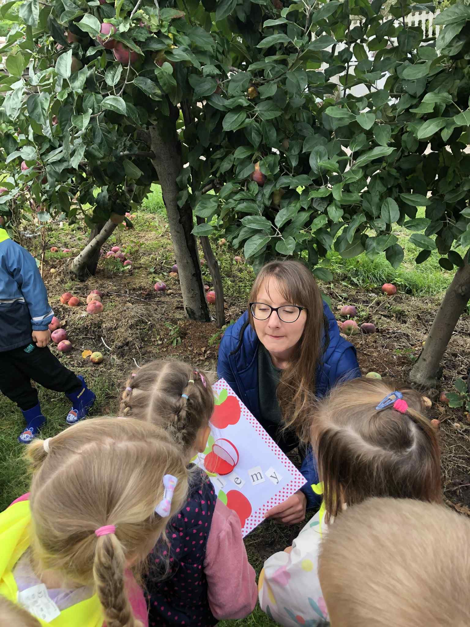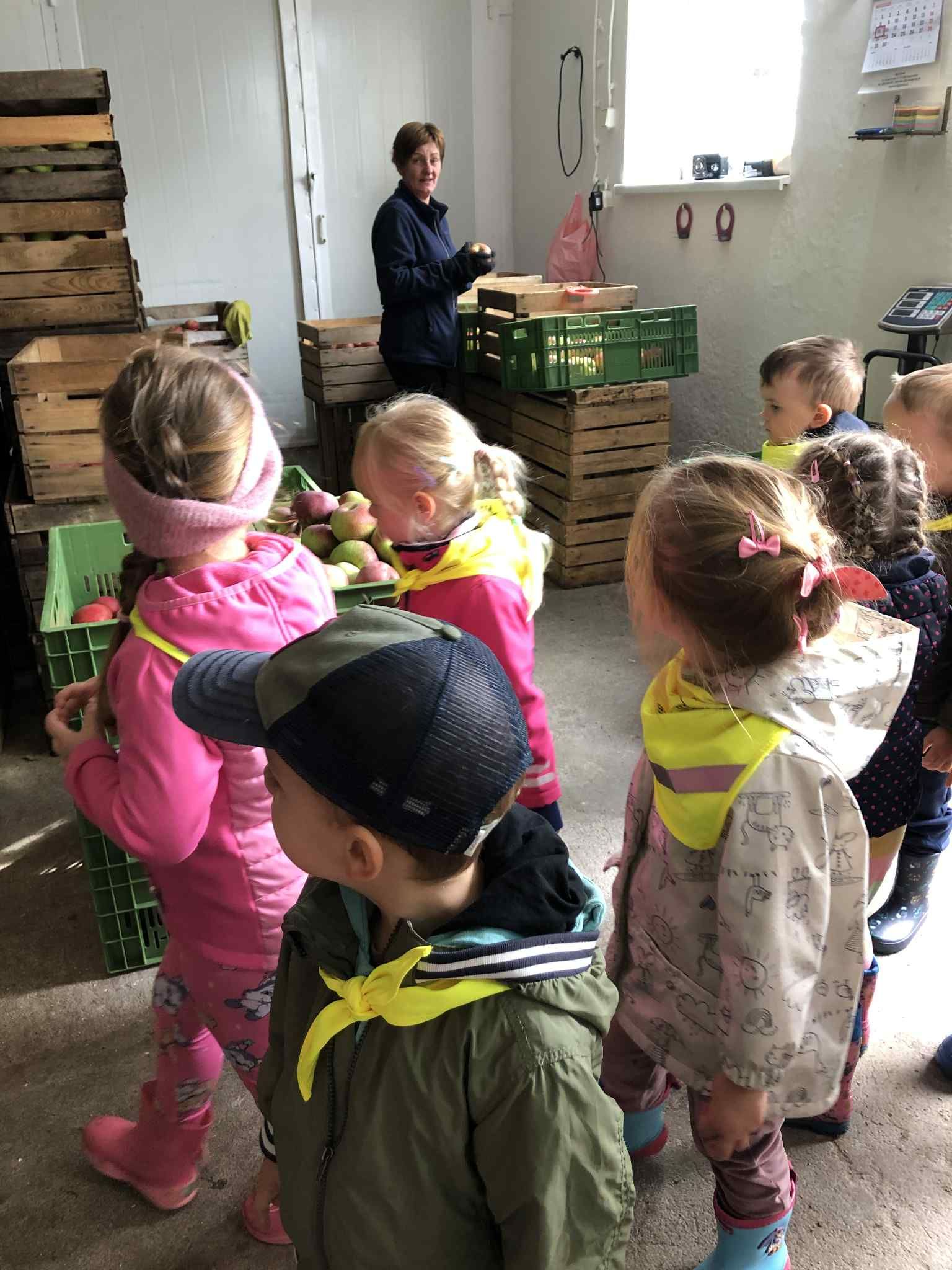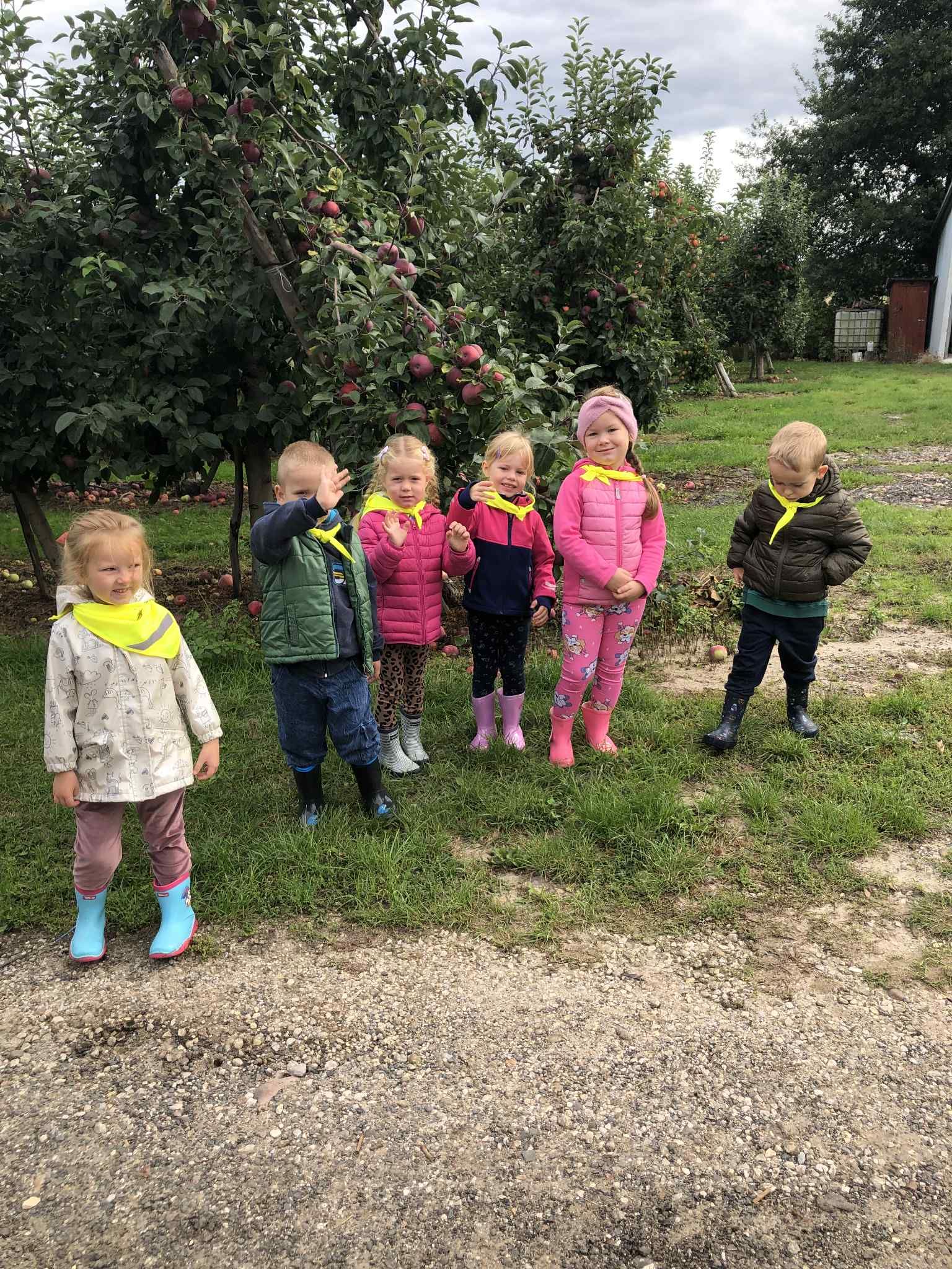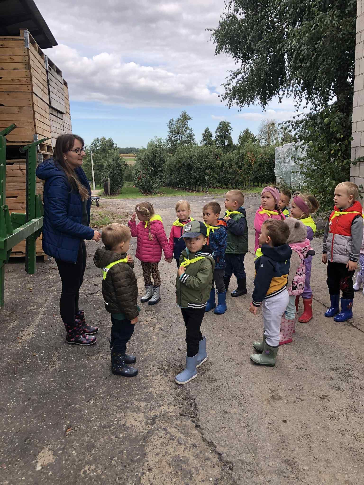We wtorek, 16 września, dzieci z grupy 4-latków odwiedziły sad owocowy w Sulmierzycach należący do pana Wojciecha Musiała. Podczas wycieczki przedszkolaki miały okazję zwiedzić sad, obserwować drzewa pełne owoców oraz poznać prace wykonywane przez sadownika. Pan Maciej pokazał dzieciom także miejsca przechowywania jabłek i opowiedział o tym, jak dba się o owoce, aby jak najdłużej zachowały świeżość .Największą atrakcją okazała się degustacja soczystych jabłek prosto z sadu. Dzieci zajadały je ze smakiem, a sama możliwość skosztowania owoców w tak wyjątkowym miejscu sprawiła im ogromną radość. W drodze powrotnej, już w autokarze, maluchy z apetytem sięgały po kolejne jabłuszka, co również było dla nich dodatkową frajdą .Wycieczka okazała się wartościowym doświadczeniem edukacyjnym – dzieci nie tylko poszerzyły swoją wiedzę o pracy sadownika i uprawie owoców, ale także spędziły czas na świeżym powietrzu w pięknym otoczeniu przyrody.