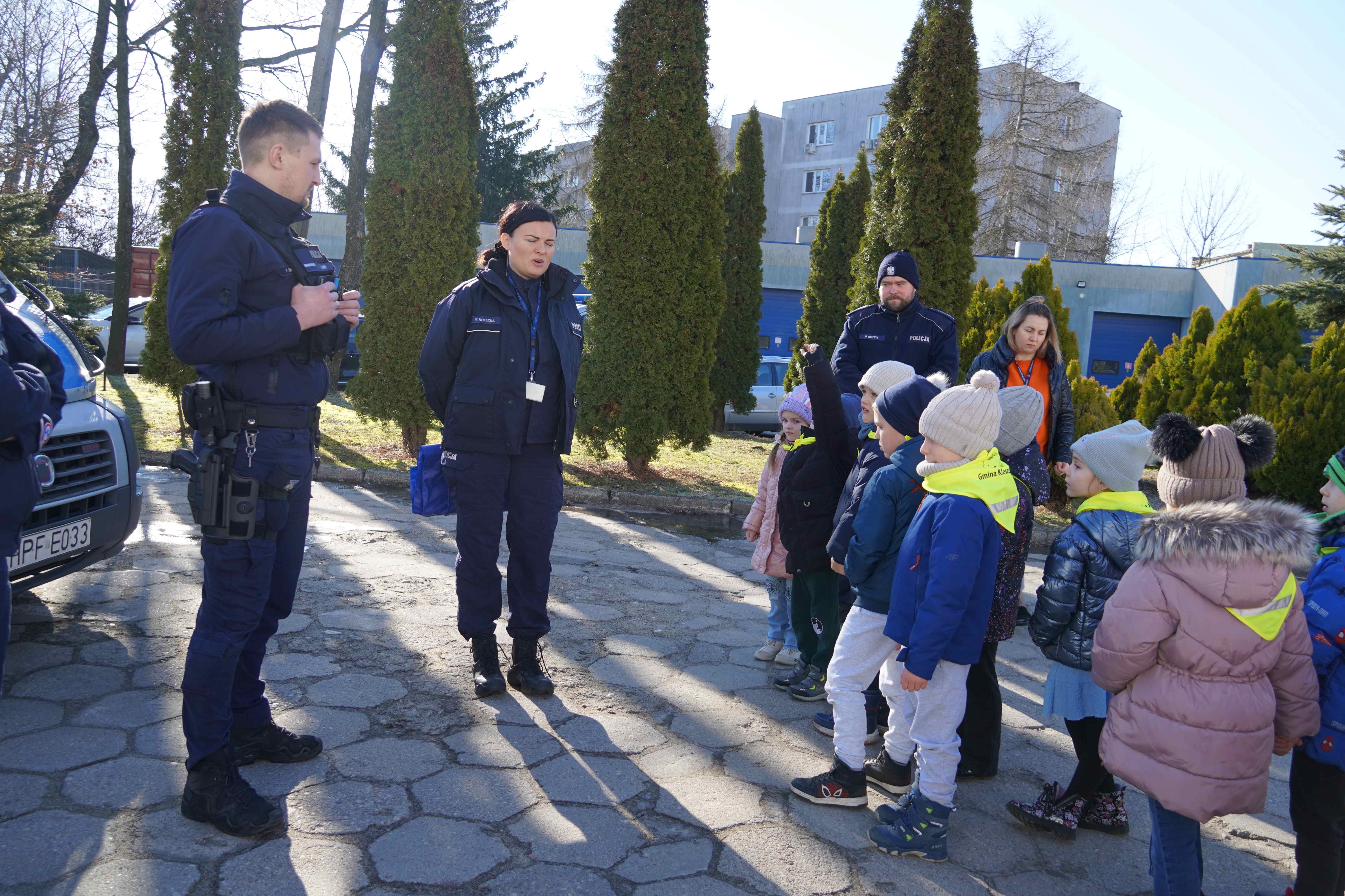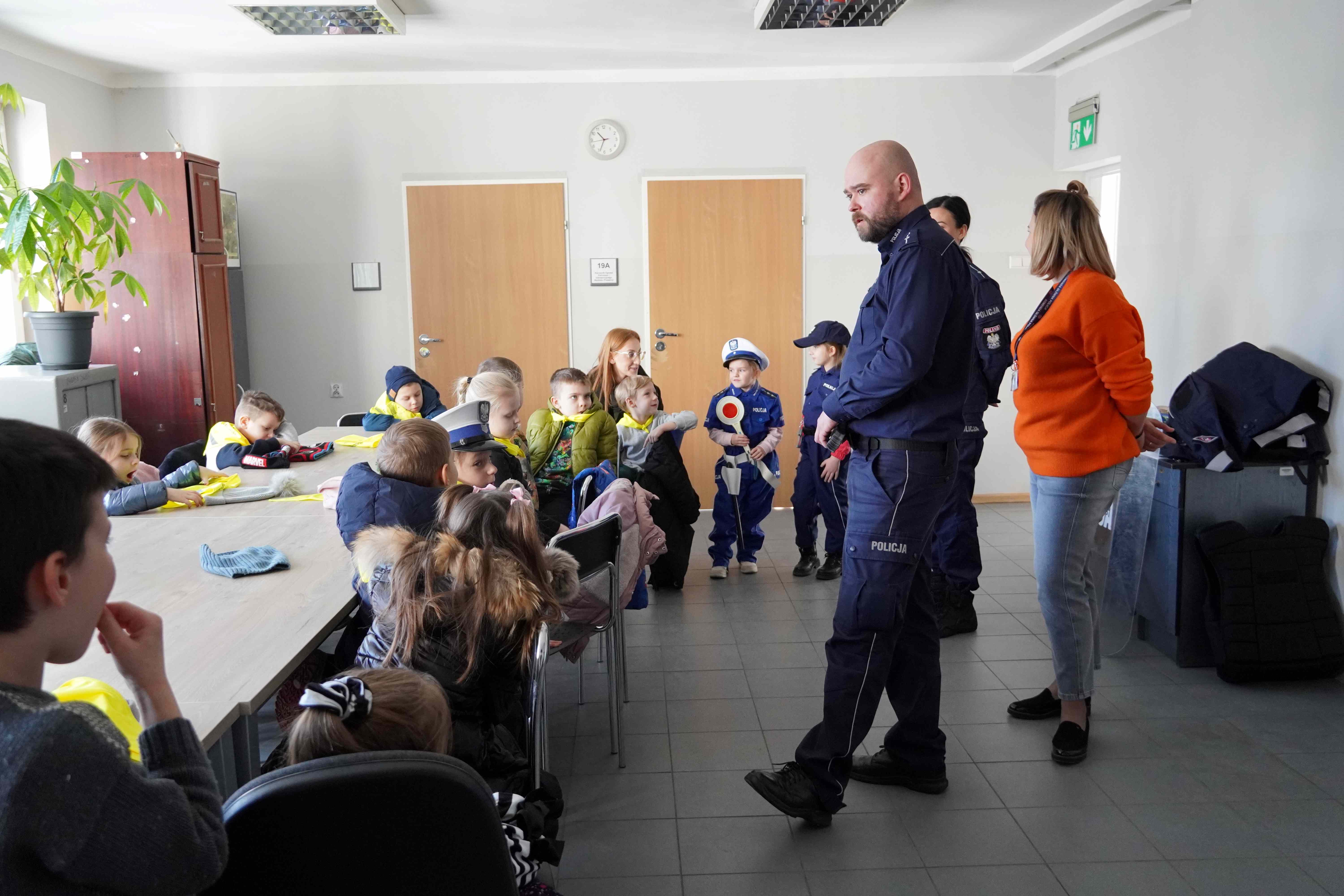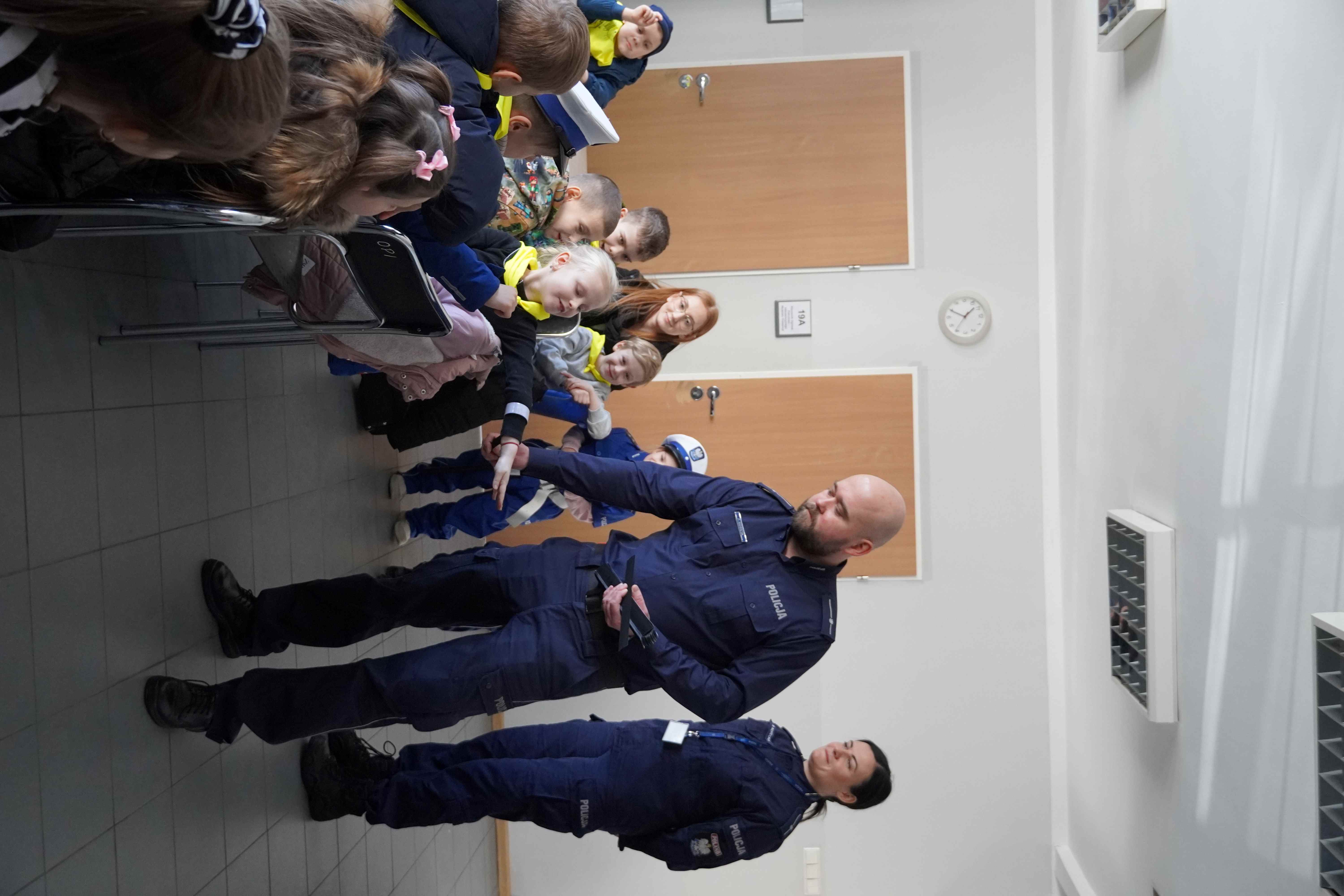 Sześciolatki odwiedziły dziś Komendę Policji Powiatowej w Bełchatowie. Podczas wizyty dzieci miały okazję z bliska zobaczyć radiowozy policyjne, poznać specyfikę pracy policjantów oraz dowiedzieć się, na czym polega zawód dyżurnego. Duże zainteresowanie wzbudziło zwiedzanie pomieszczeń komendy, w tym pokoju zatrzymań, a także możliwość przymierzenia elementów stroju policyjnego.
