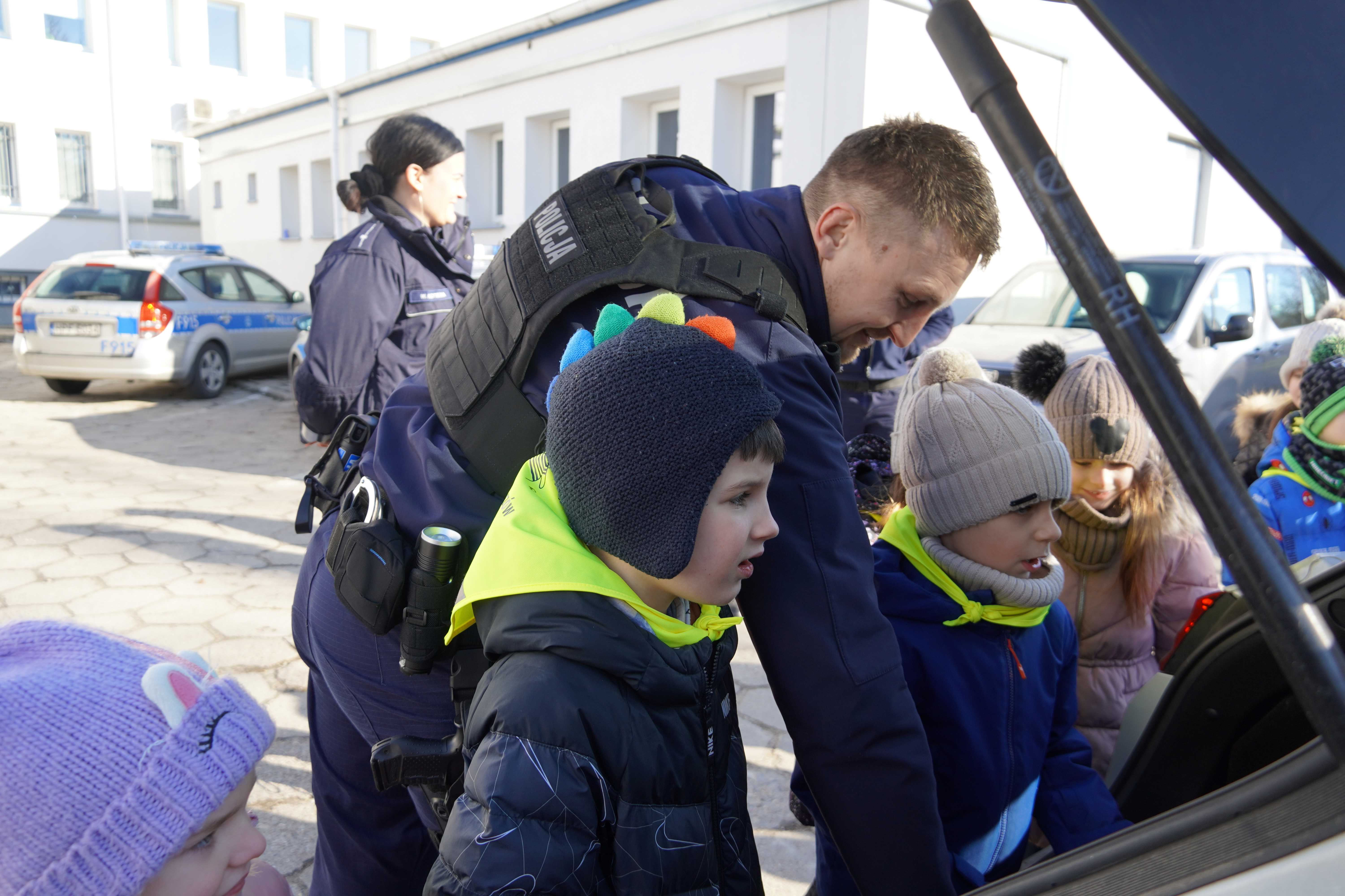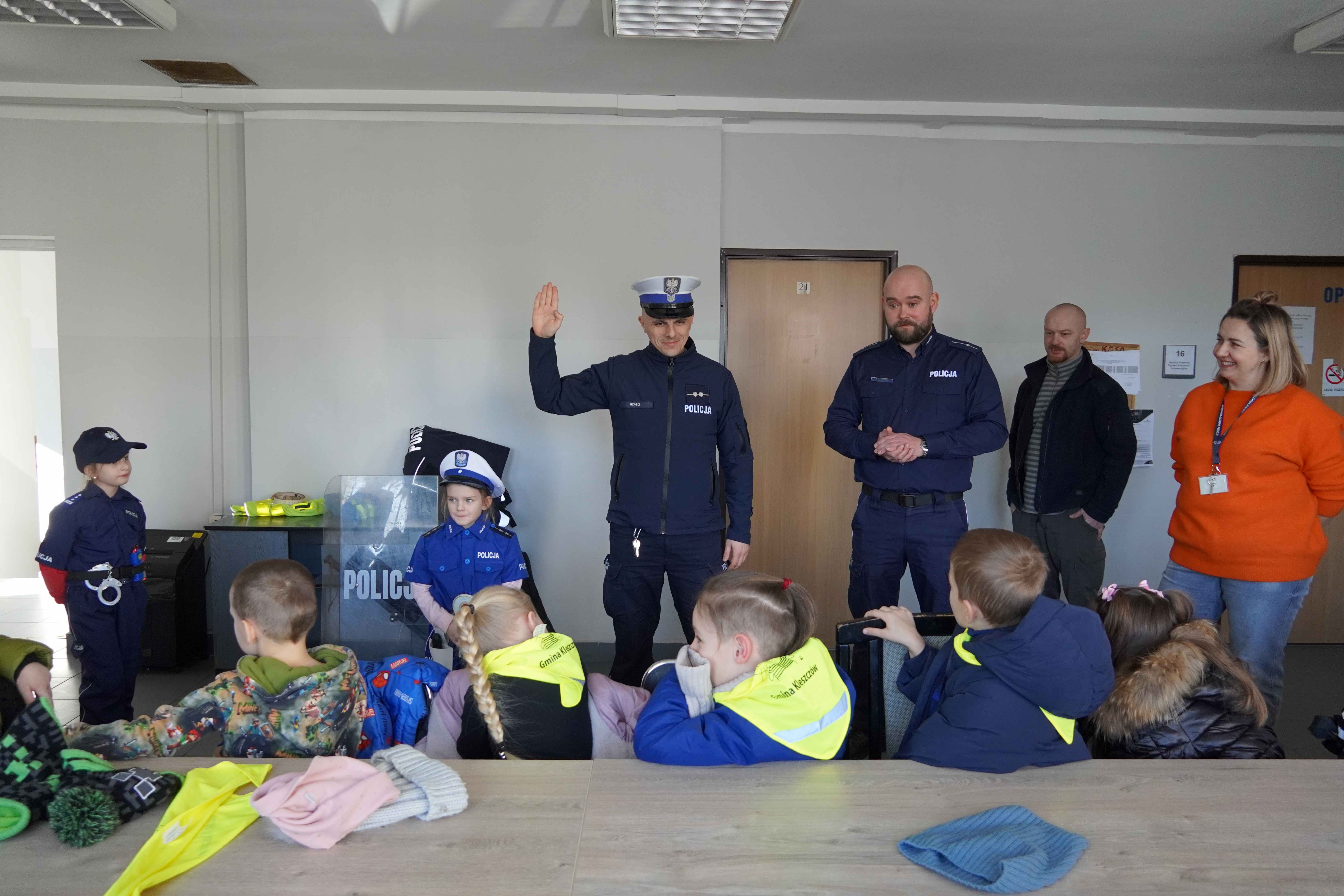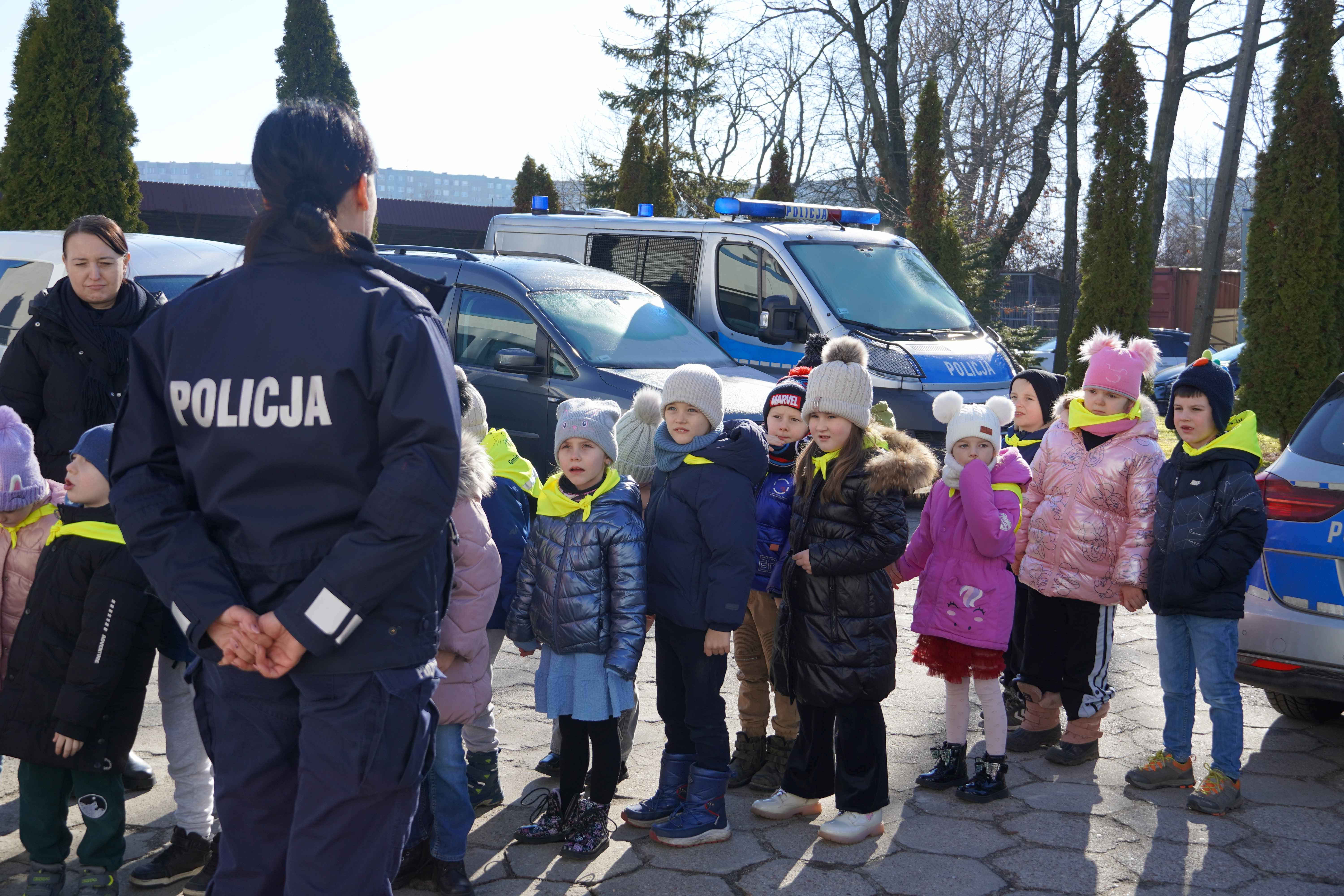 Sześciolatki odwiedziły dziś Komendę Policji Powiatowej w Bełchatowie. Podczas wizyty dzieci miały okazję z bliska zobaczyć radiowozy policyjne, poznać specyfikę pracy policjantów oraz dowiedzieć się, na czym polega zawód dyżurnego. Duże zainteresowanie wzbudziło zwiedzanie pomieszczeń komendy, w tym pokoju zatrzymań, a także możliwość przymierzenia elementów stroju policyjnego.