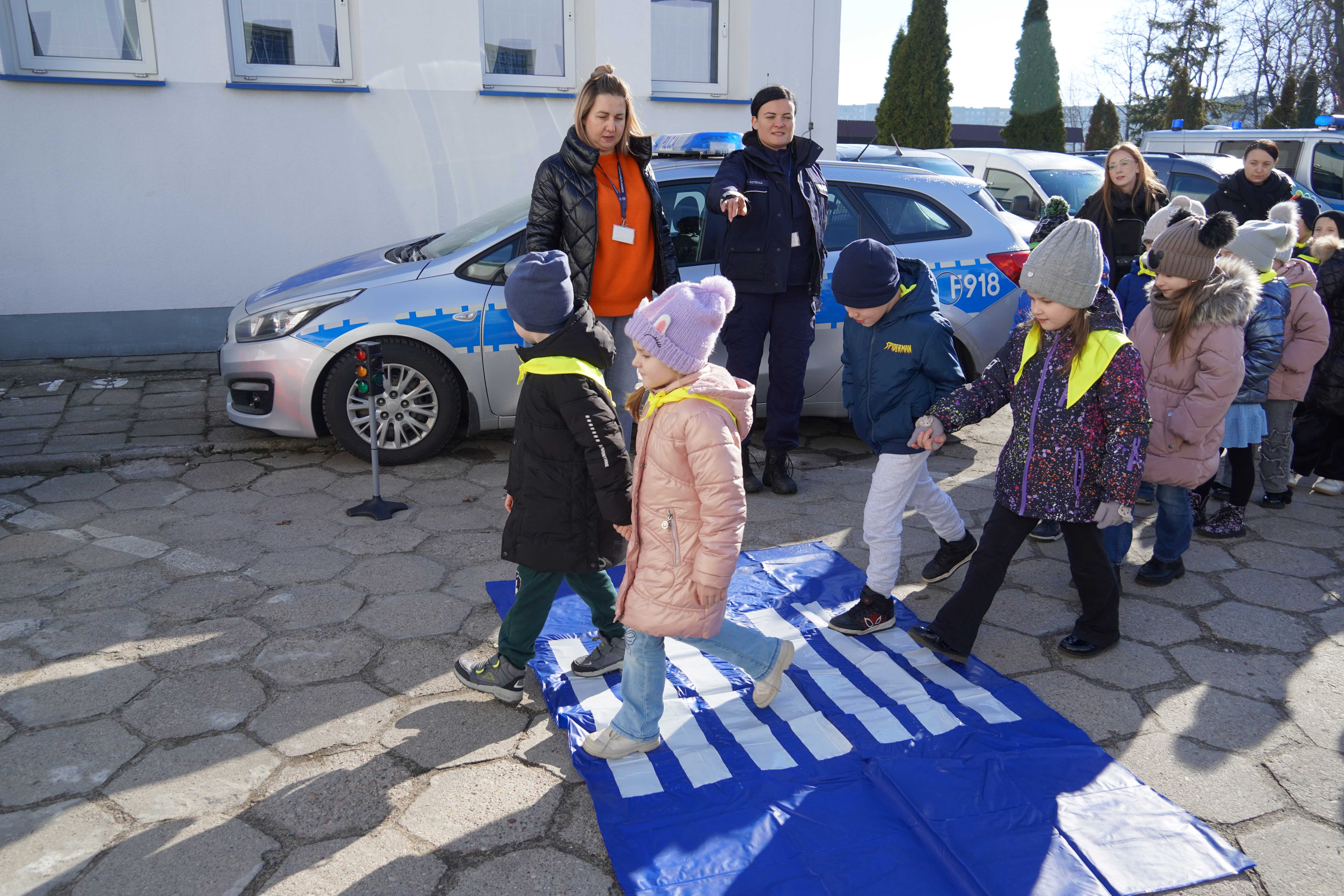 Spotkanie było nie tylko ciekawą przygodą, ale przede wszystkim ważną lekcją bezpieczeństwa. Policjanci przypomnieli dzieciom zasady prawidłowego i bezpiecznego przechodzenia przez jezdnię oraz zwrócili uwagę na znaczenie noszenia elementów odblaskowych.