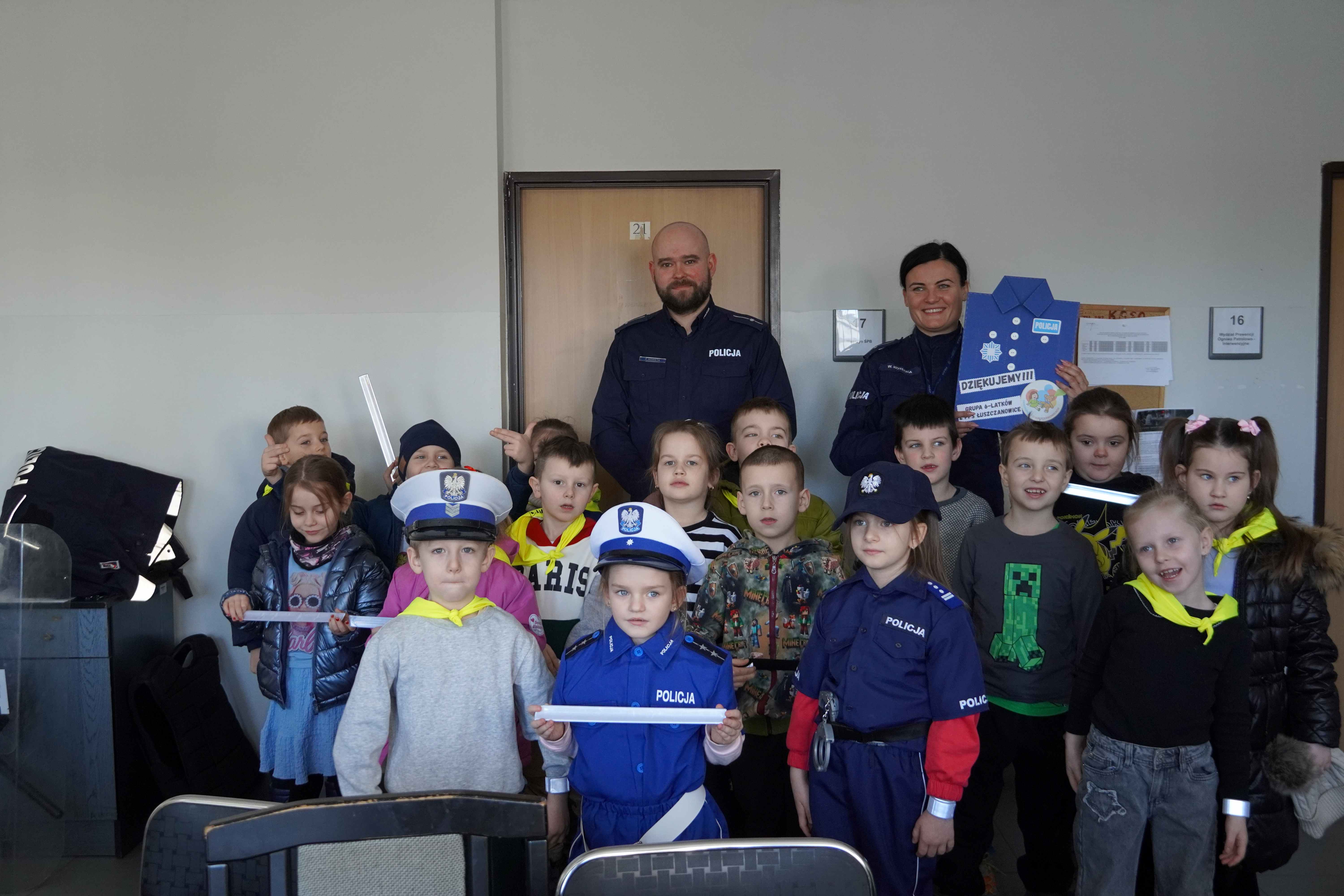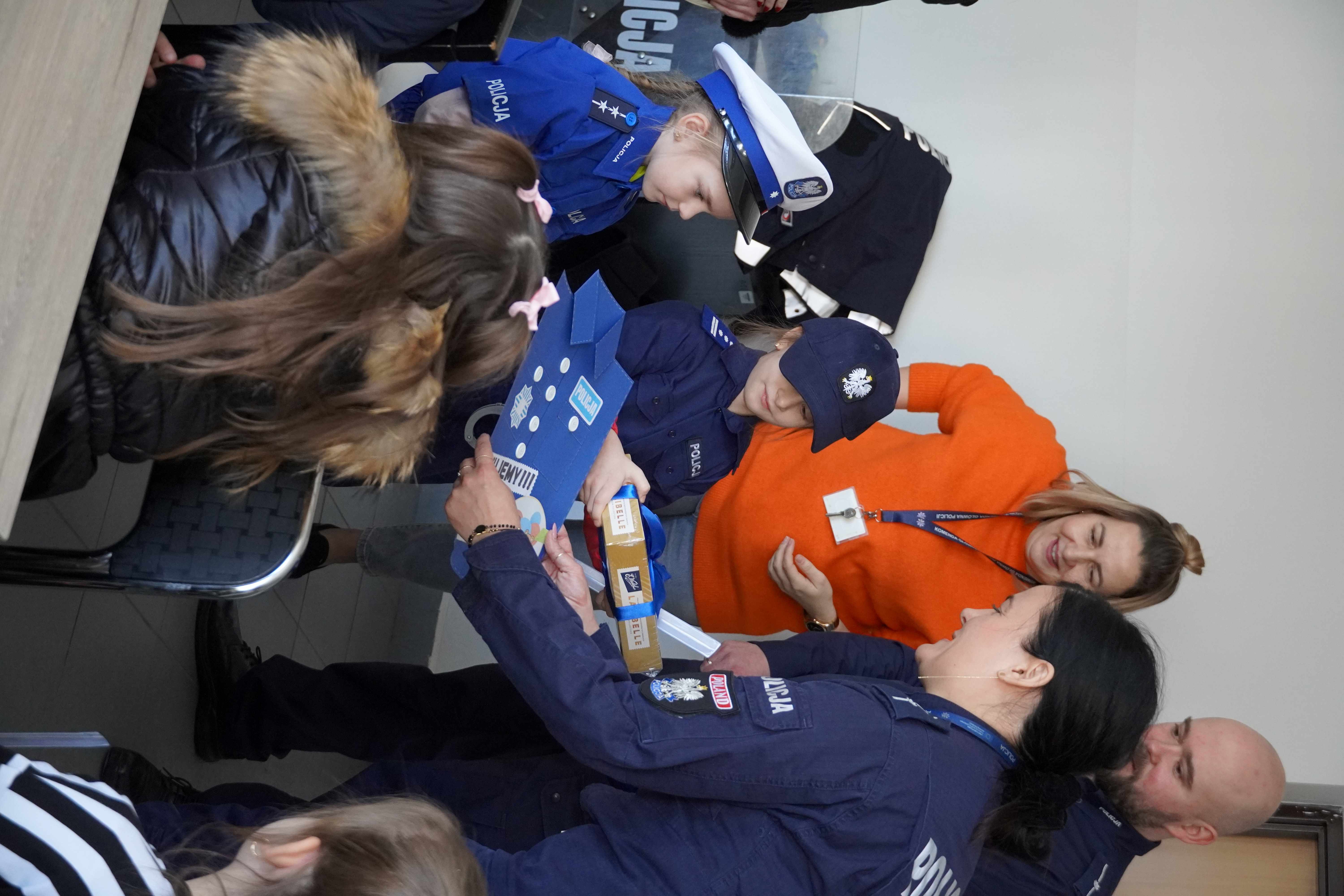 Na zakończenie przedszkolaki wręczyły funkcjonariuszom własnoręcznie przygotowaną laurkę w podziękowaniu za miłe spotkanie, a w zamian otrzymały od policjantów odblaski, które z pewnością pomogą im być bardziej widocznymi na drodze.