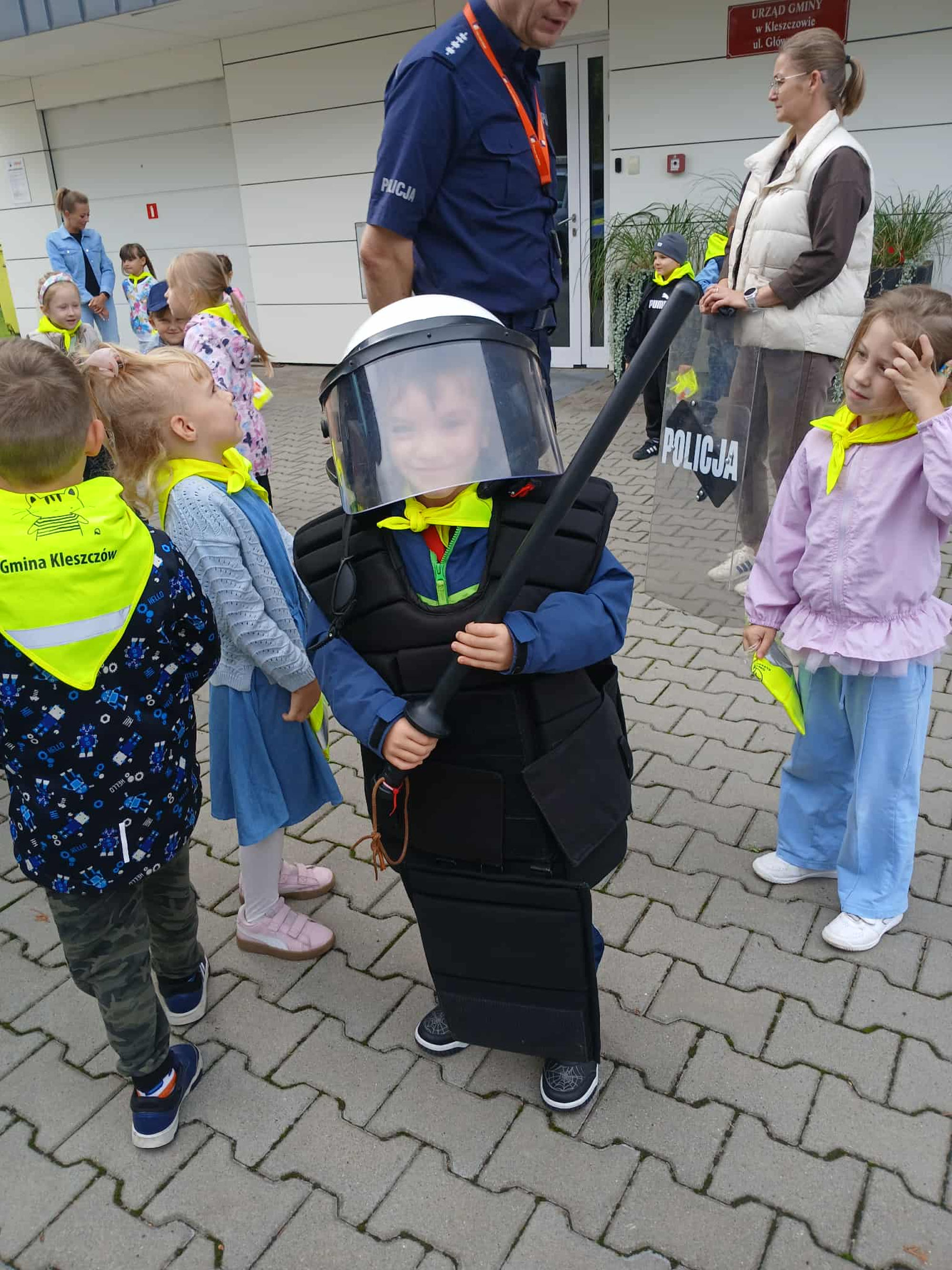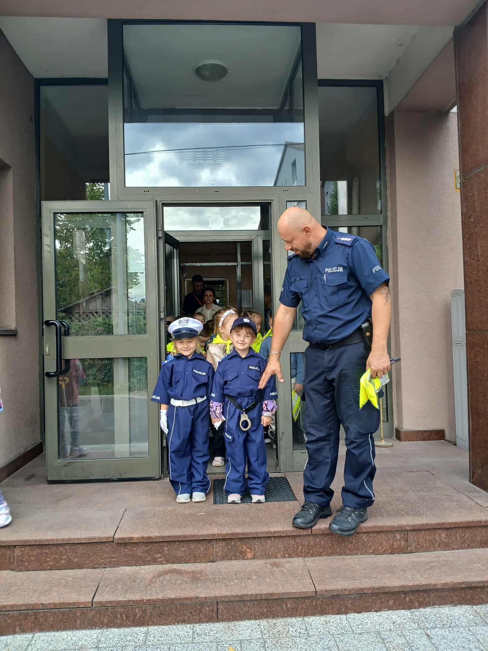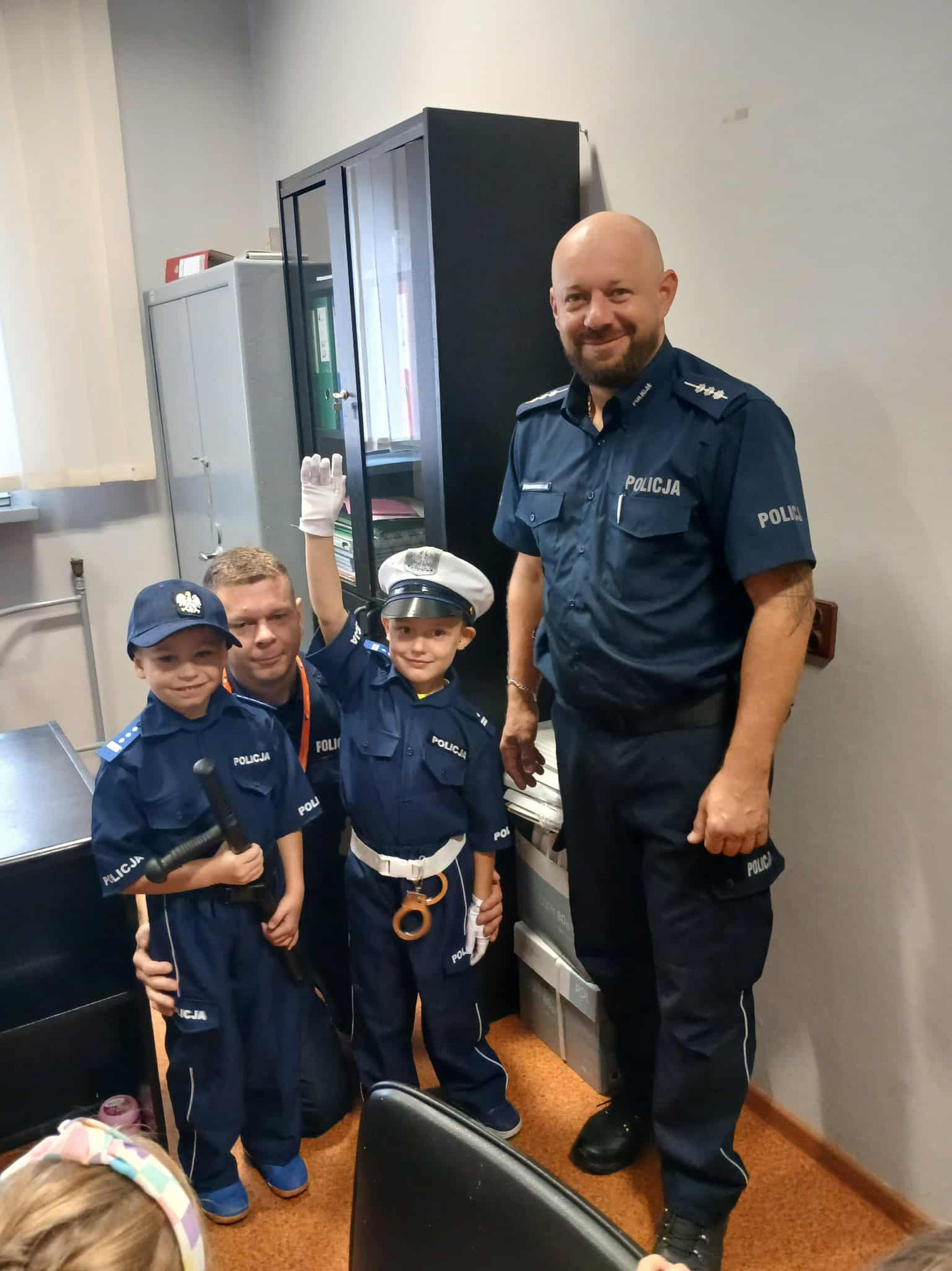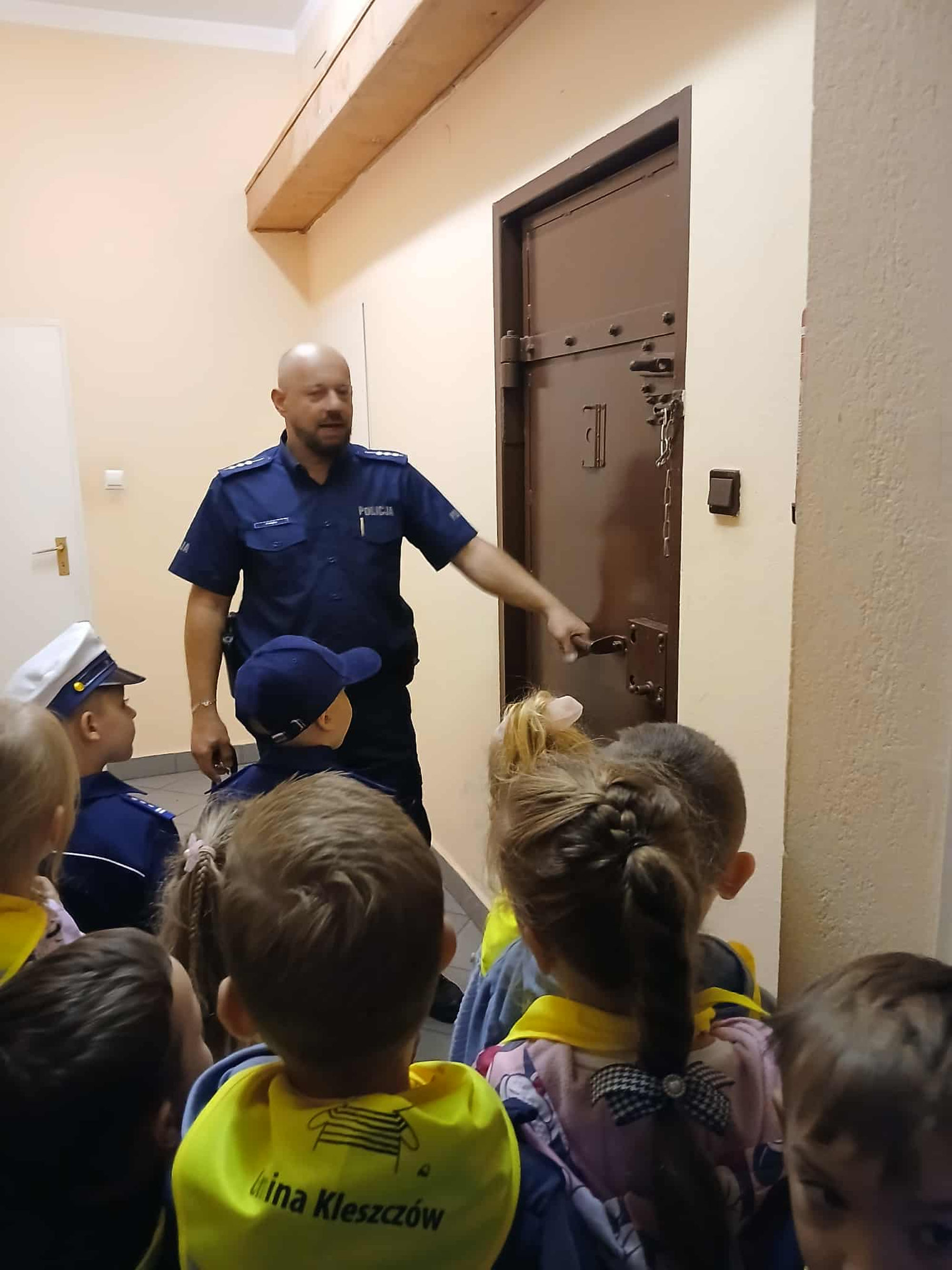 We wtorek 16.09 przedszkolaki z grupy 5-latków odwiedziły policjantów z Posterunku Policji w Kleszczowie. Panowie umożliwili zwiedzanie posterunku, opowiedzieli o swojej pracy, pokazali sprzęt i umundurowanie. Policjanci opowiedzieli także o zasadach bezpiecznego poruszania się po drodze. Na zakończenie dzieci oglądały radiowozy znajdujące się przed posterunkiem. Było to dla nich największą atrakcją, Bardzo dziękujemy za spotkanie.