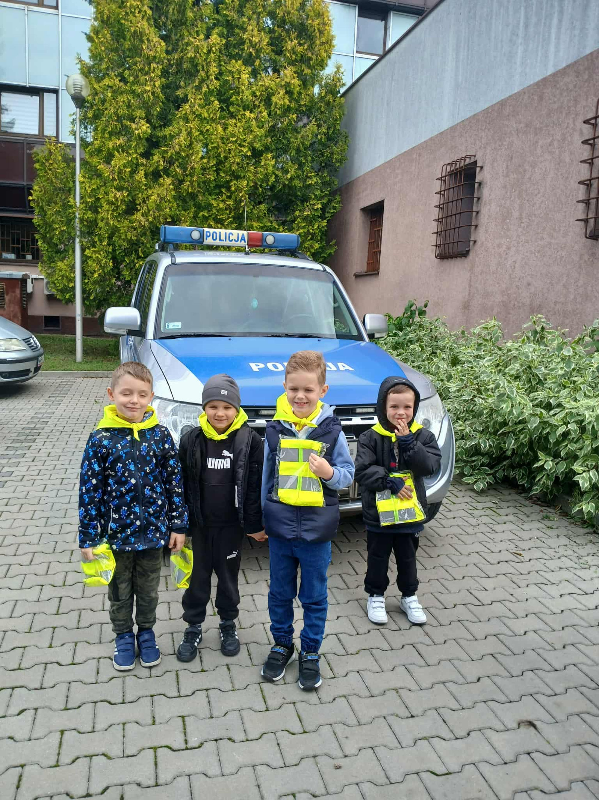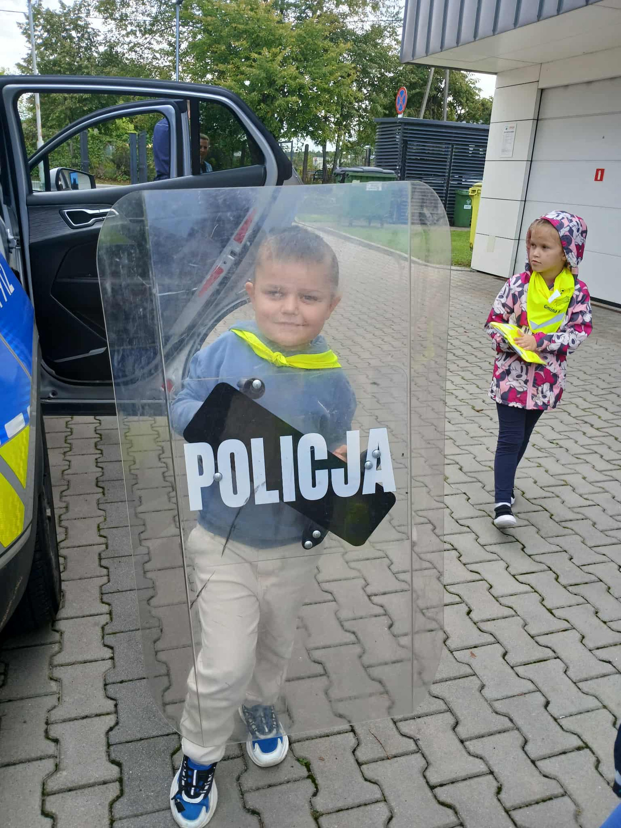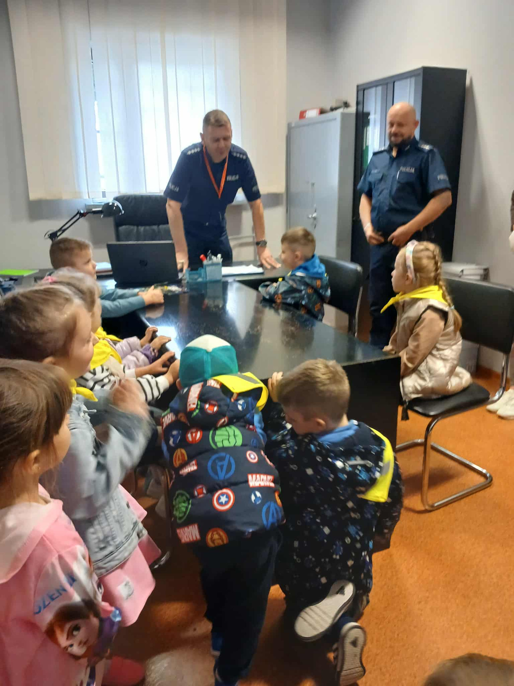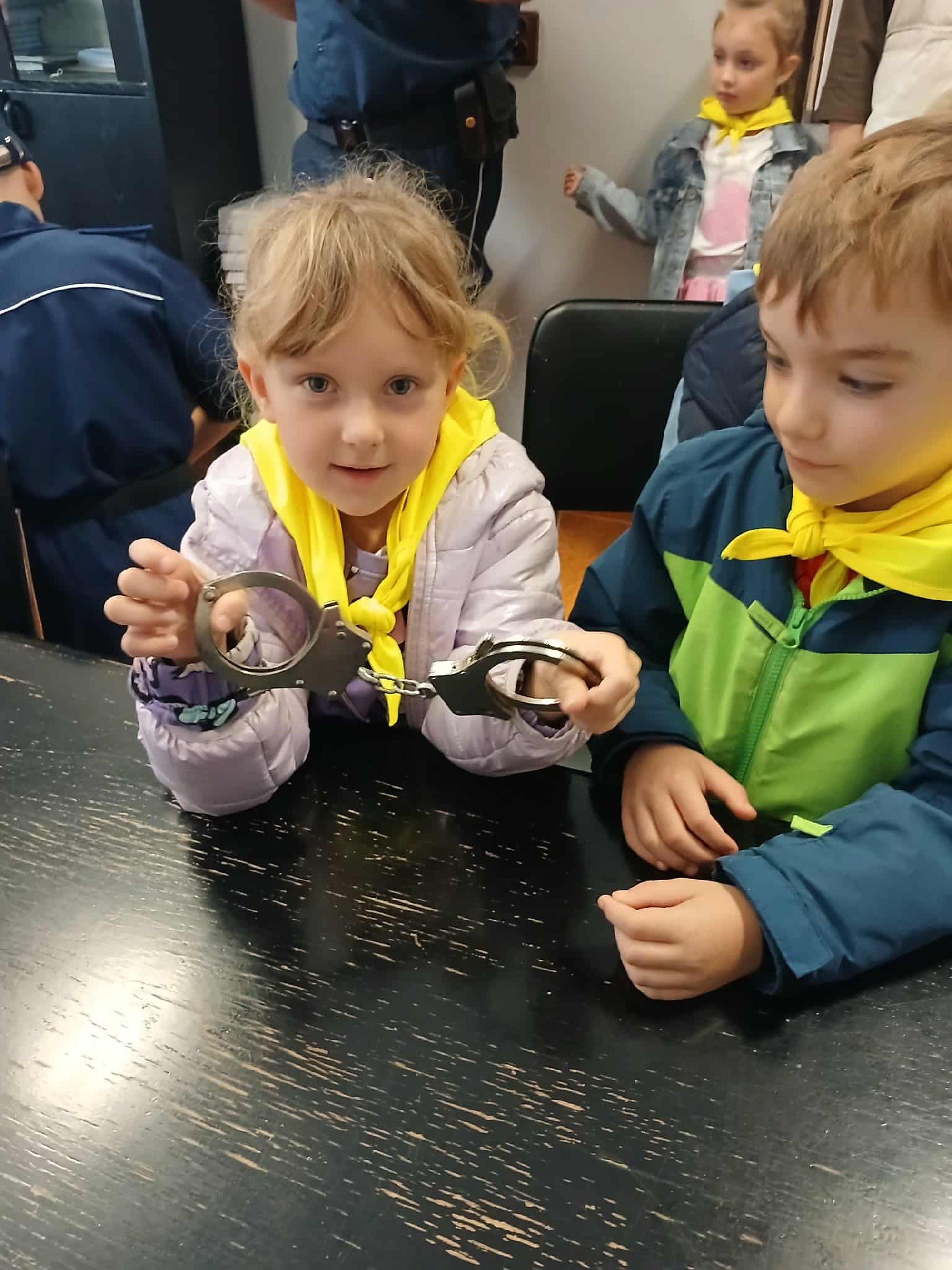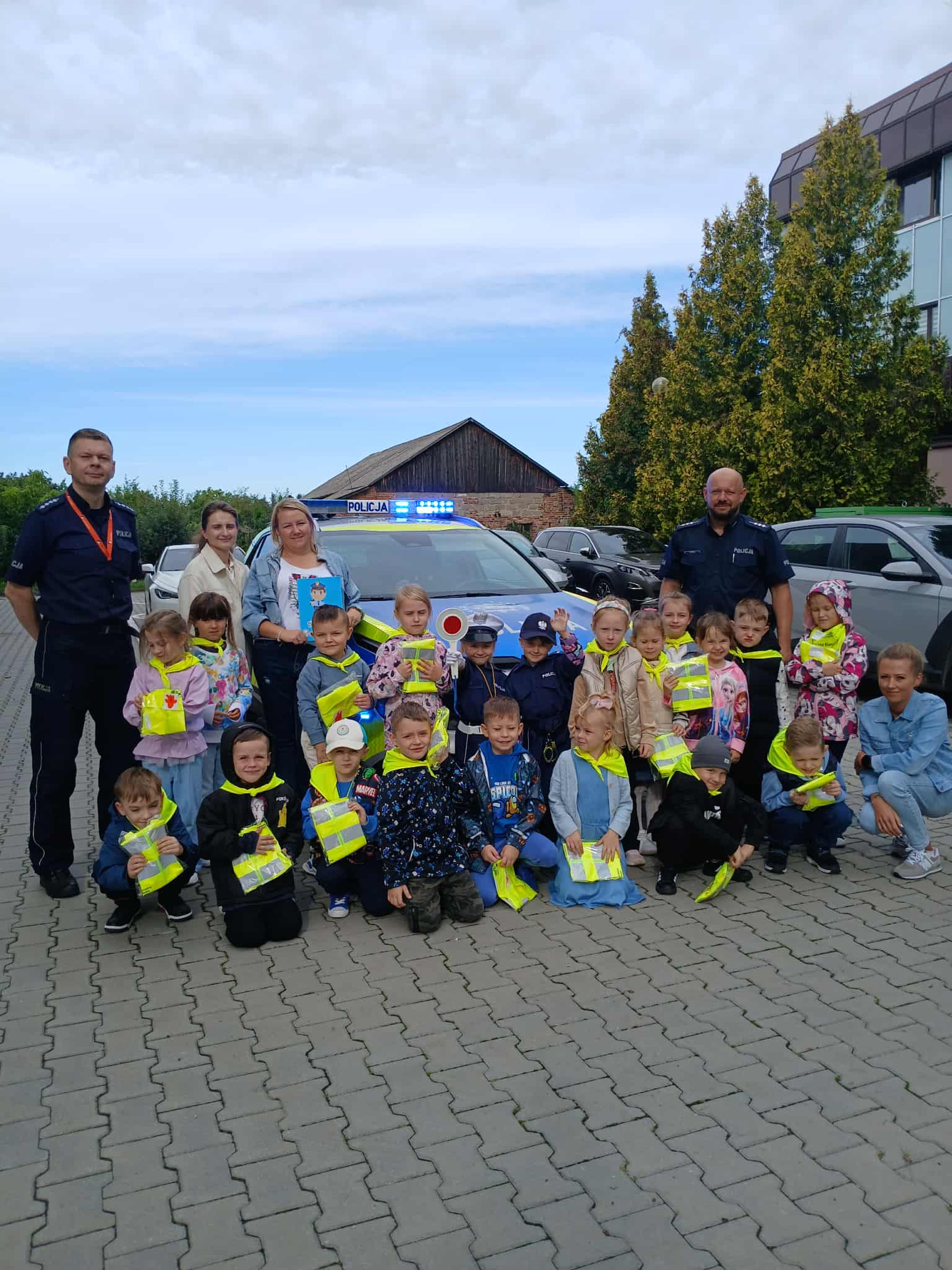 We wtorek 16.09 przedszkolaki z grupy 5-latków odwiedziły policjantów z Posterunku Policji w Kleszczowie. Panowie umożliwili zwiedzanie posterunku, opowiedzieli o swojej pracy, pokazali sprzęt i umundurowanie. Policjanci opowiedzieli także o zasadach bezpiecznego poruszania się po drodze. Na zakończenie dzieci oglądały radiowozy znajdujące się przed posterunkiem. Było to dla nich największą atrakcją, Bardzo dziękujemy za spotkanie.